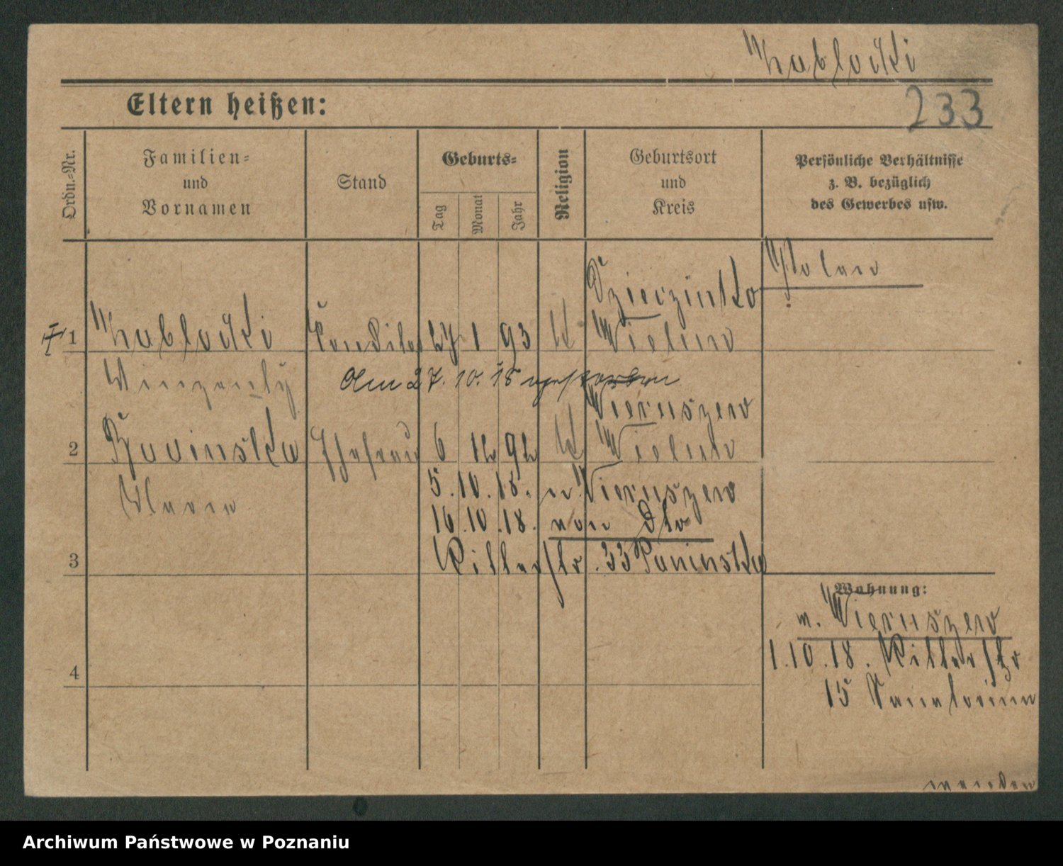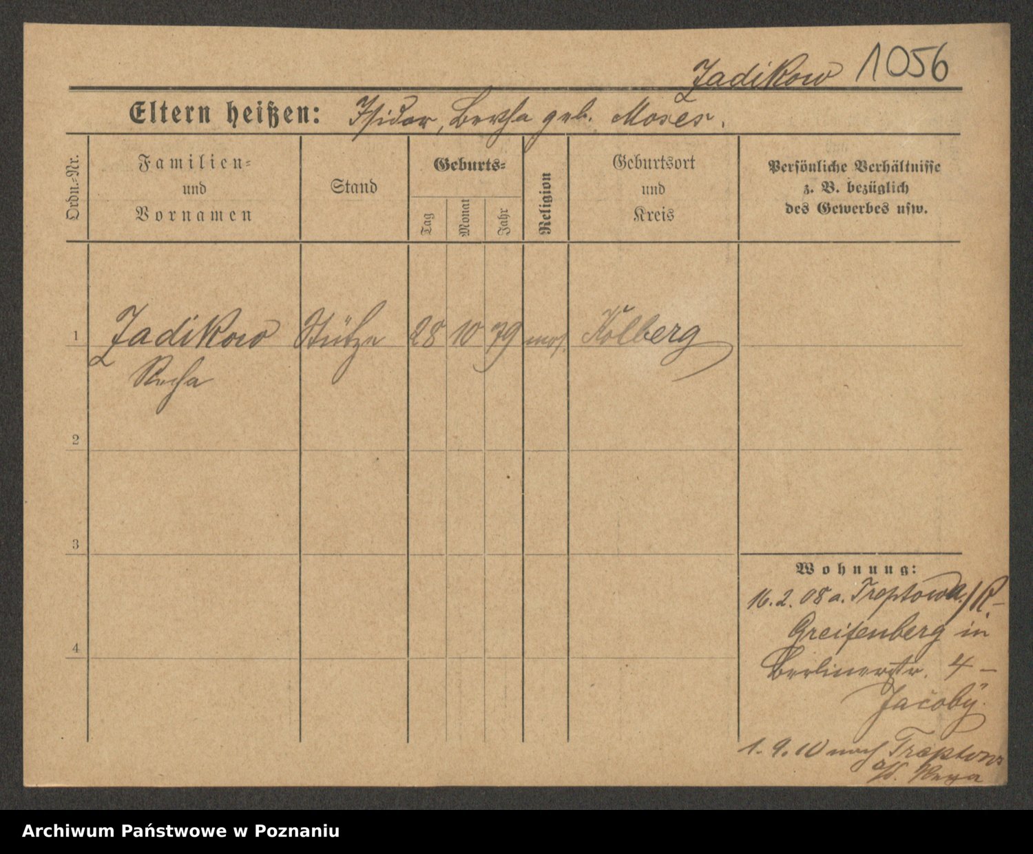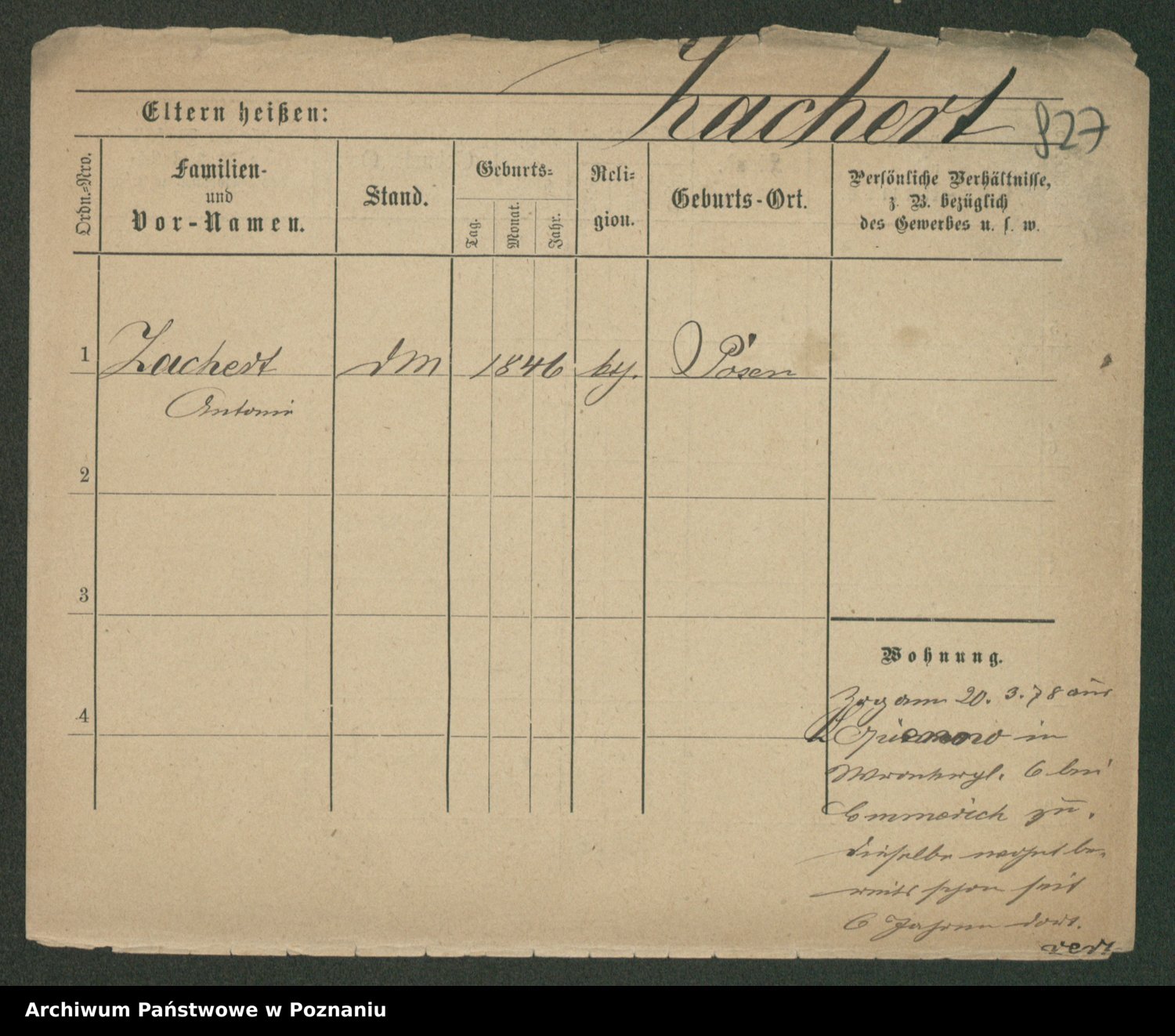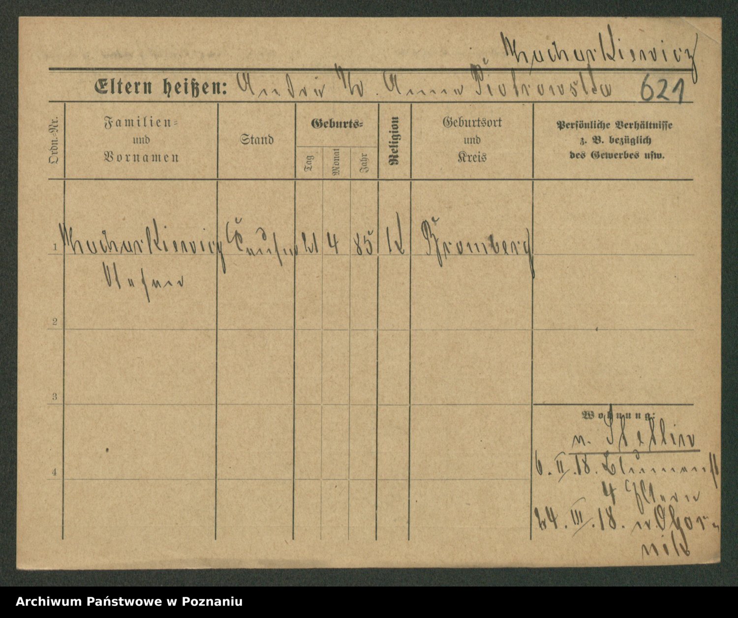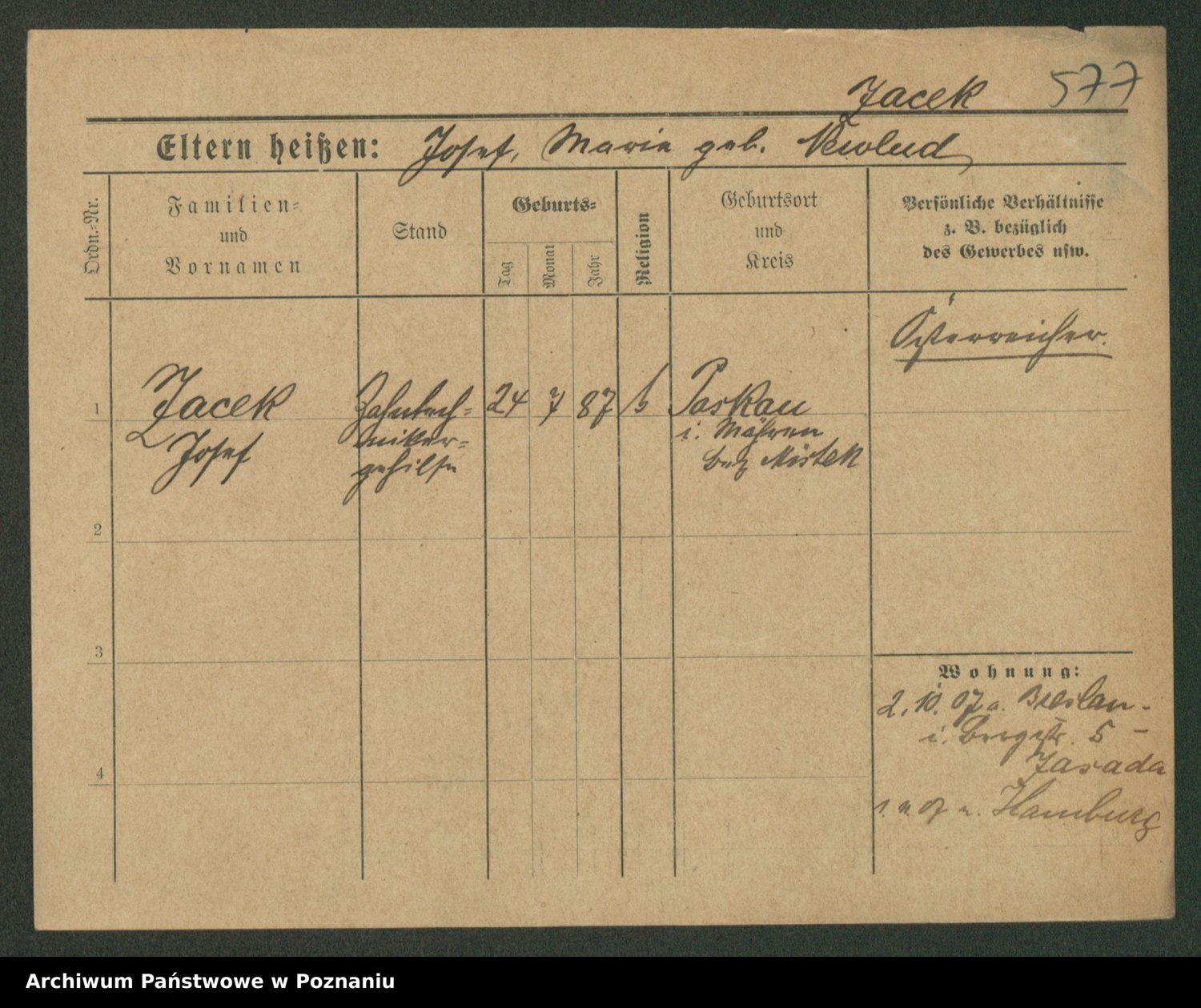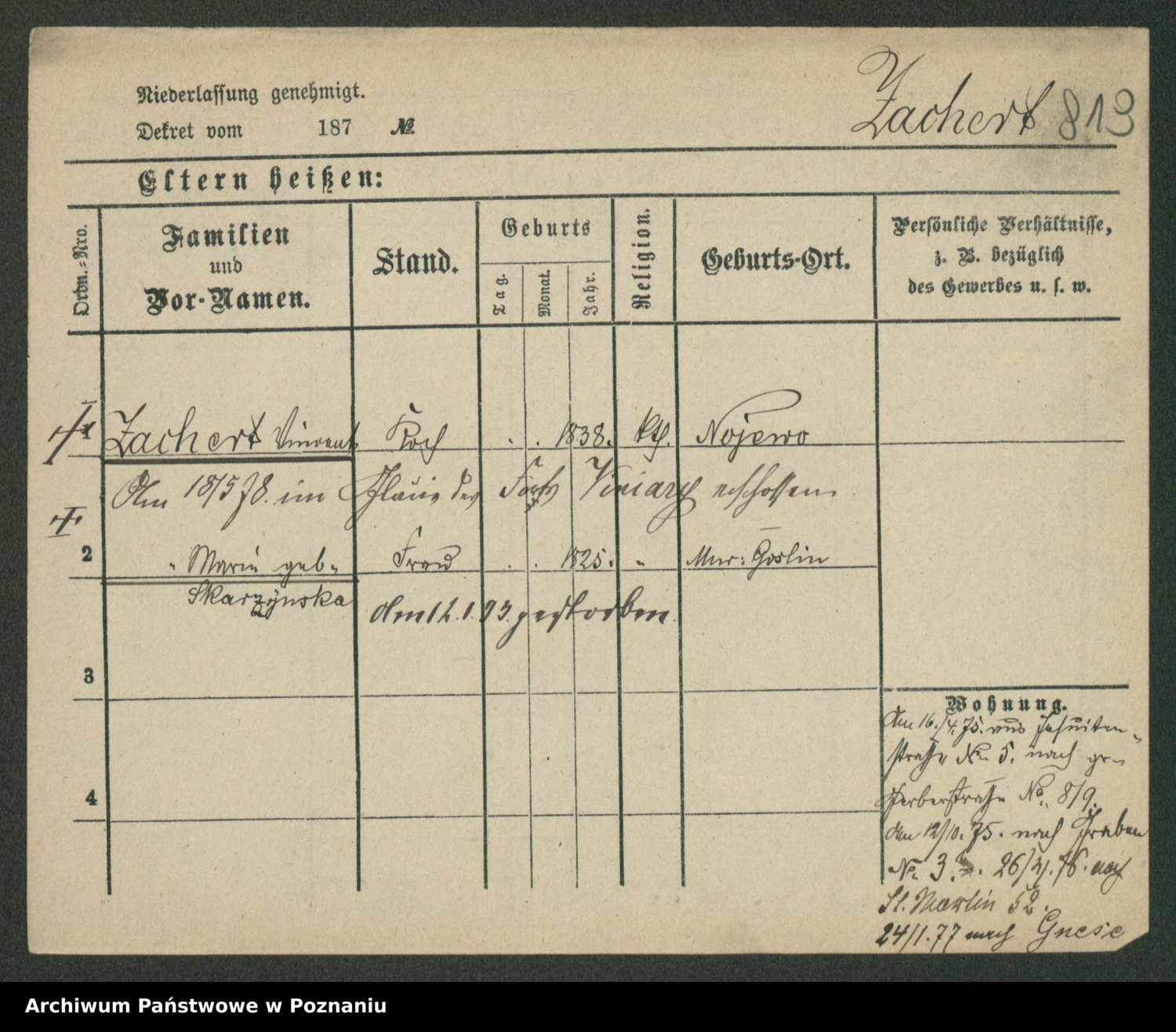 Podgląd karty osobowej dostępny jest po kliknięciu na nazwisko lub ikonkę karty. Można dokonywać powiększenia (ikony na górze) lub przechodzić między kolejnymi skanami (strzałki po bokach).