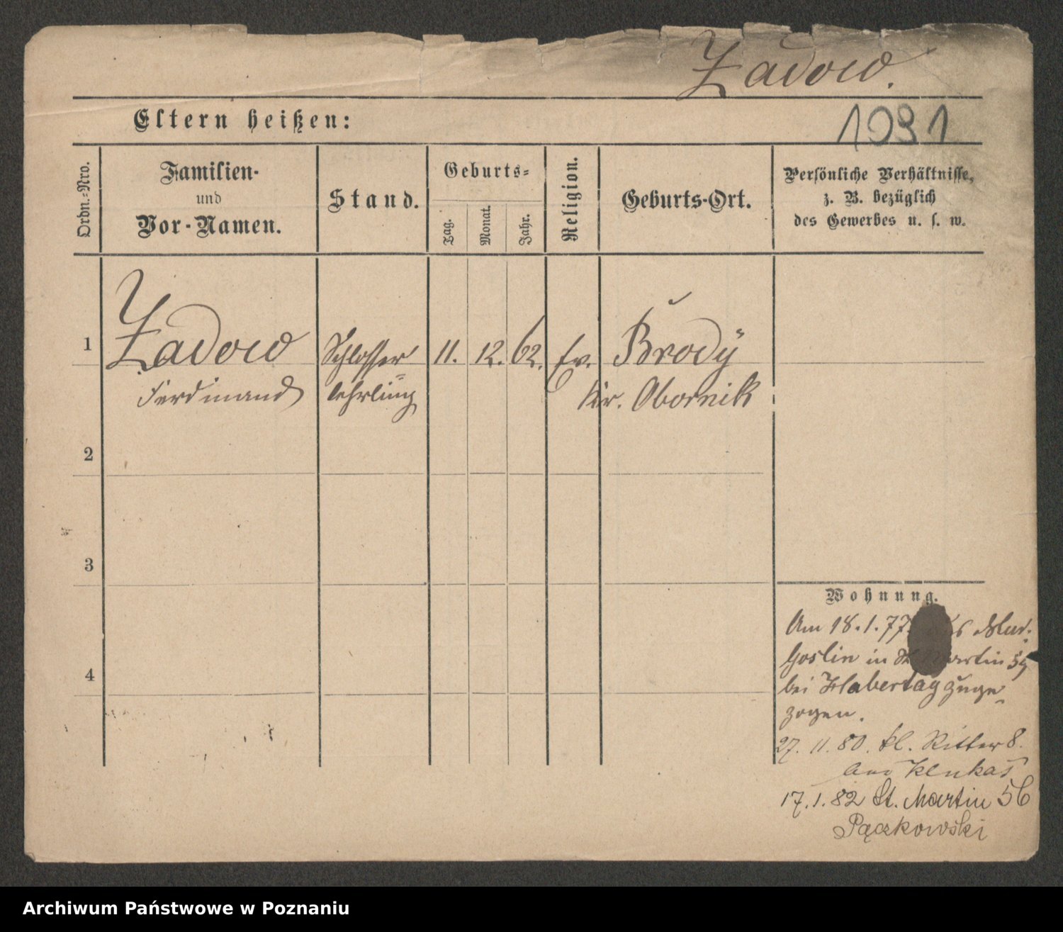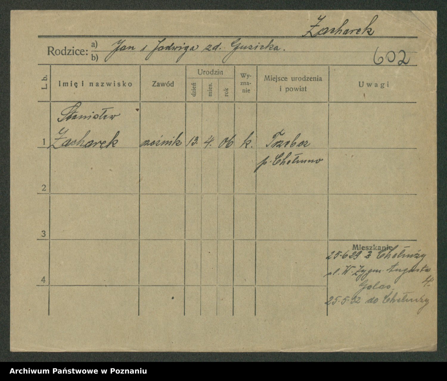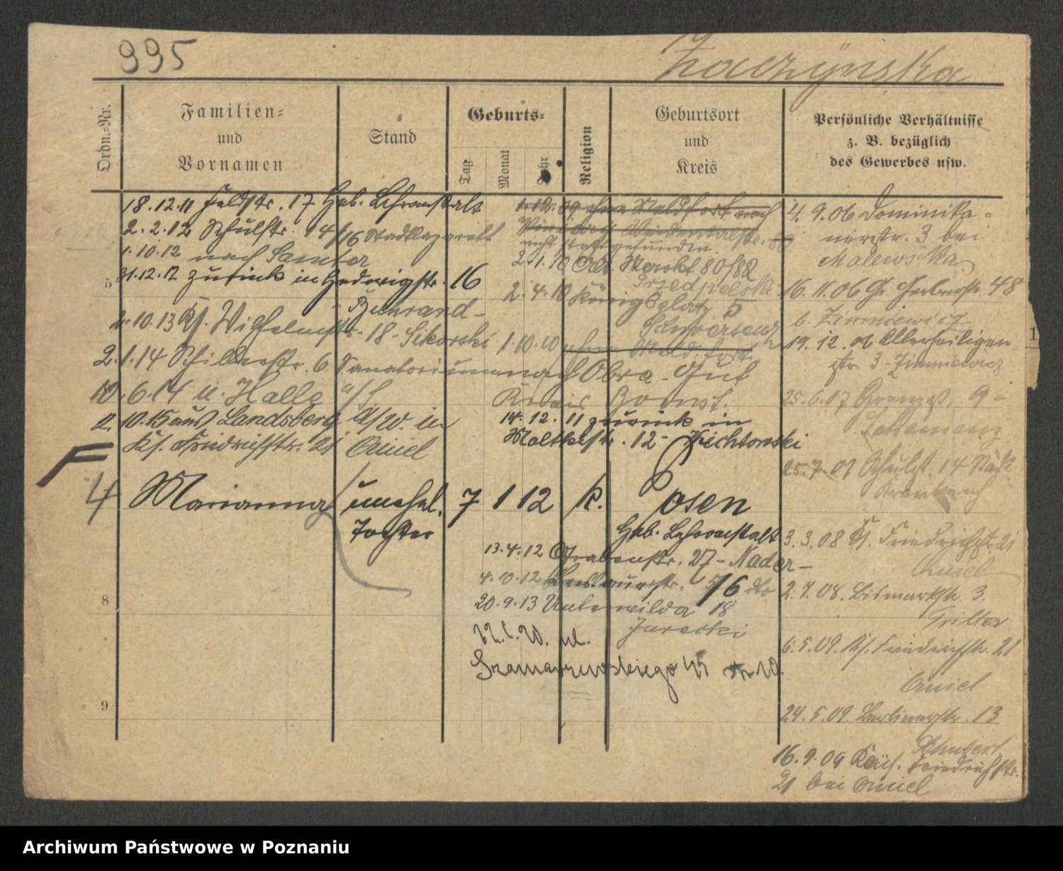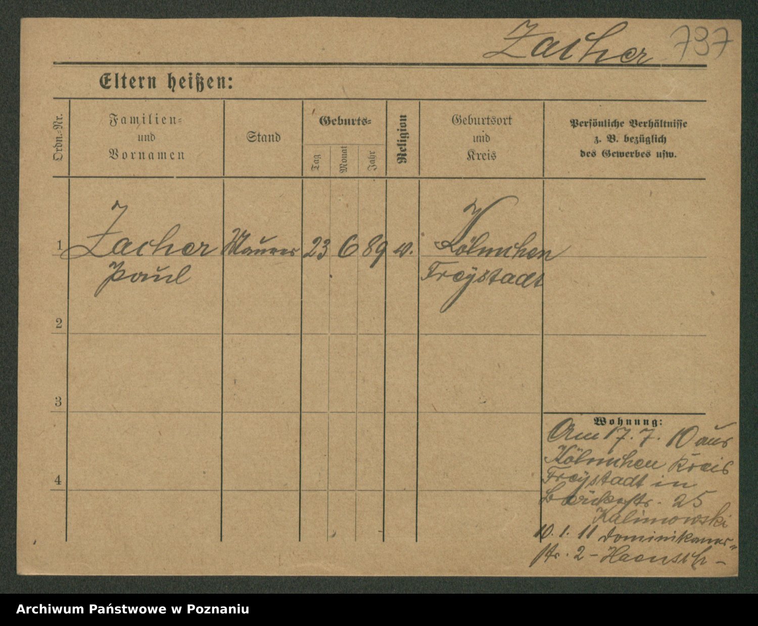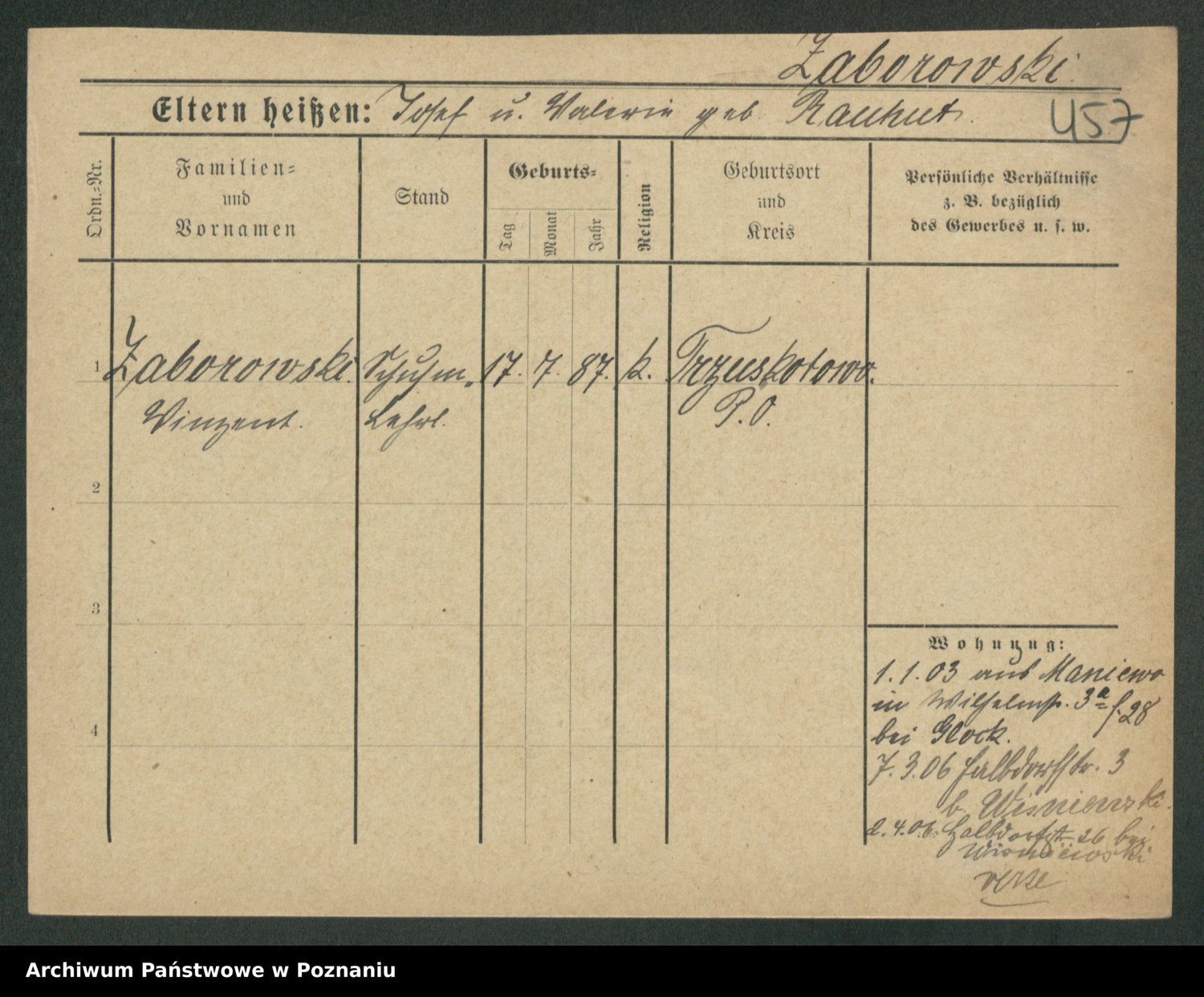 Podgląd karty osobowej dostępny jest po kliknięciu na nazwisko lub ikonkę karty. Można dokonywać powiększenia (ikony na górze) lub przechodzić między kolejnymi skanami (strzałki po bokach).