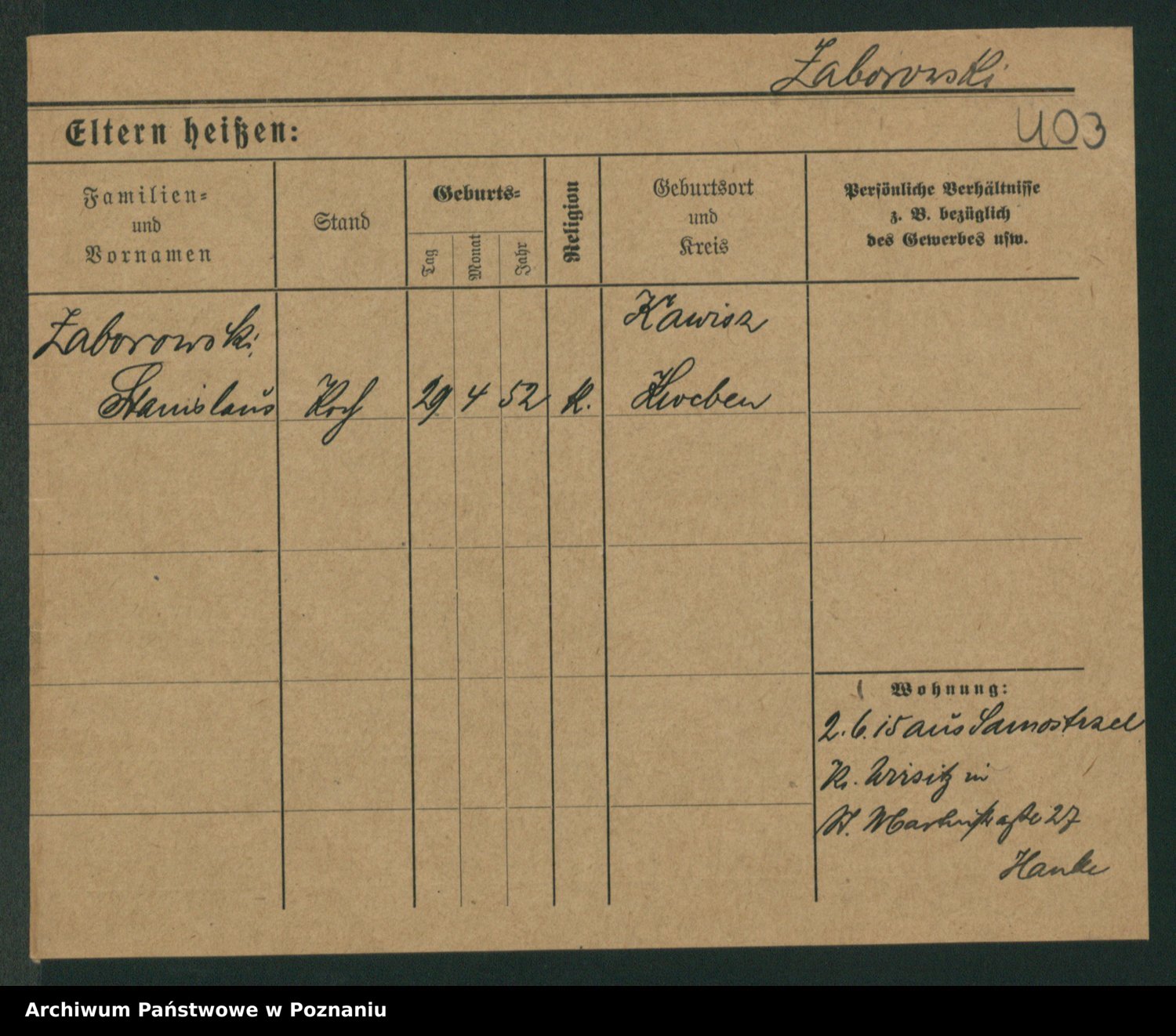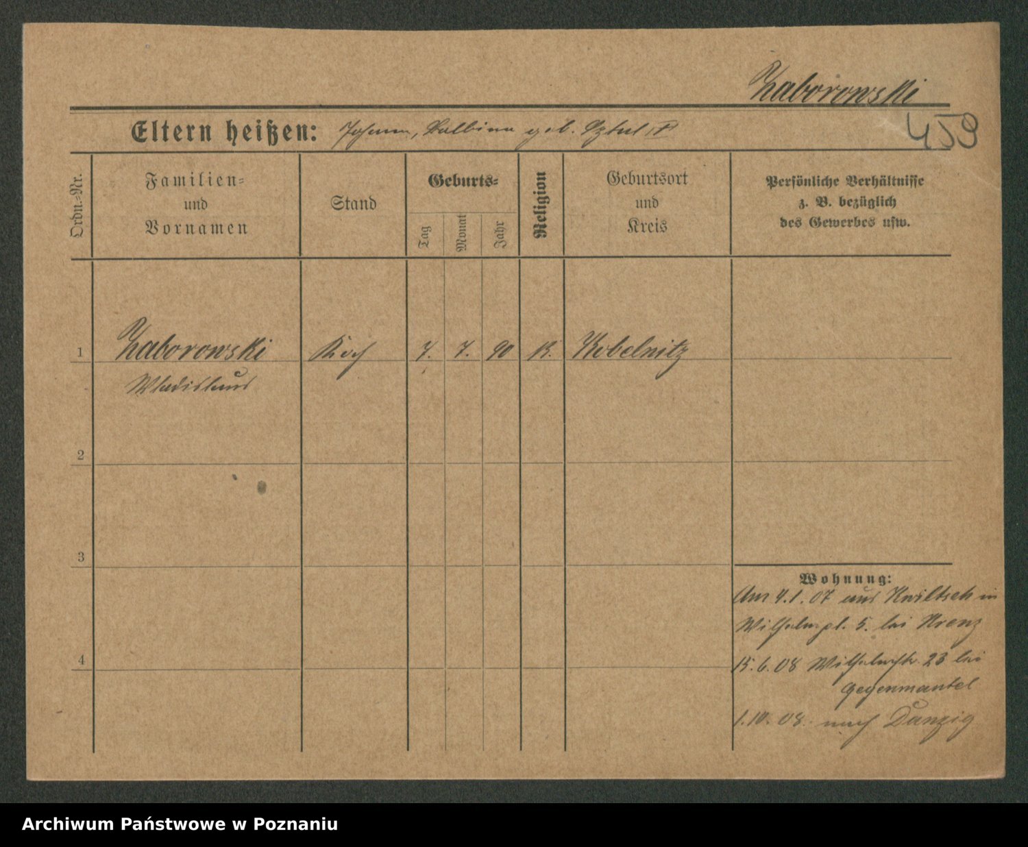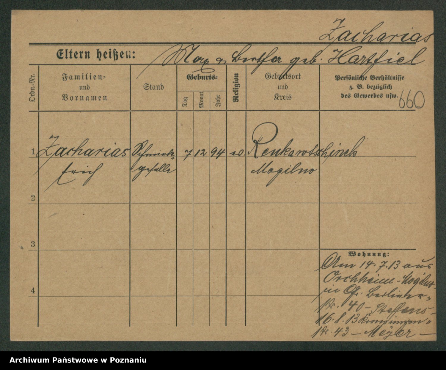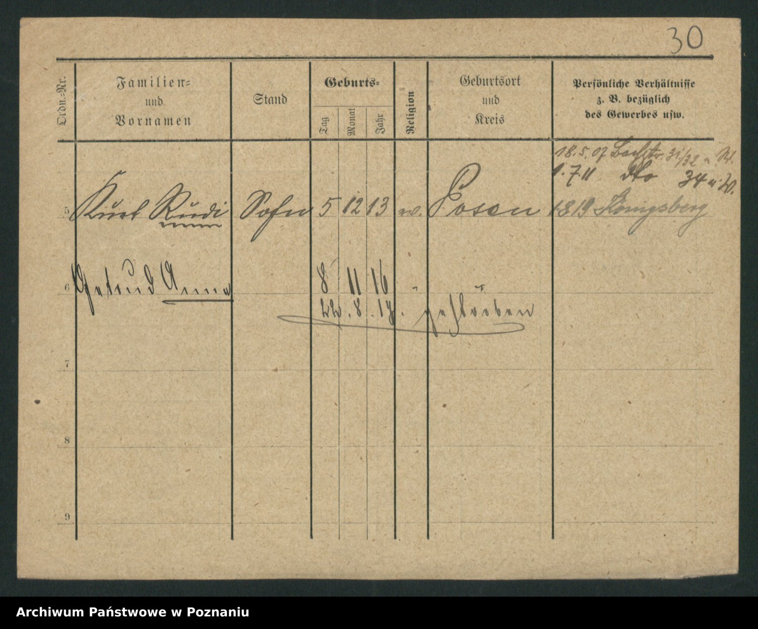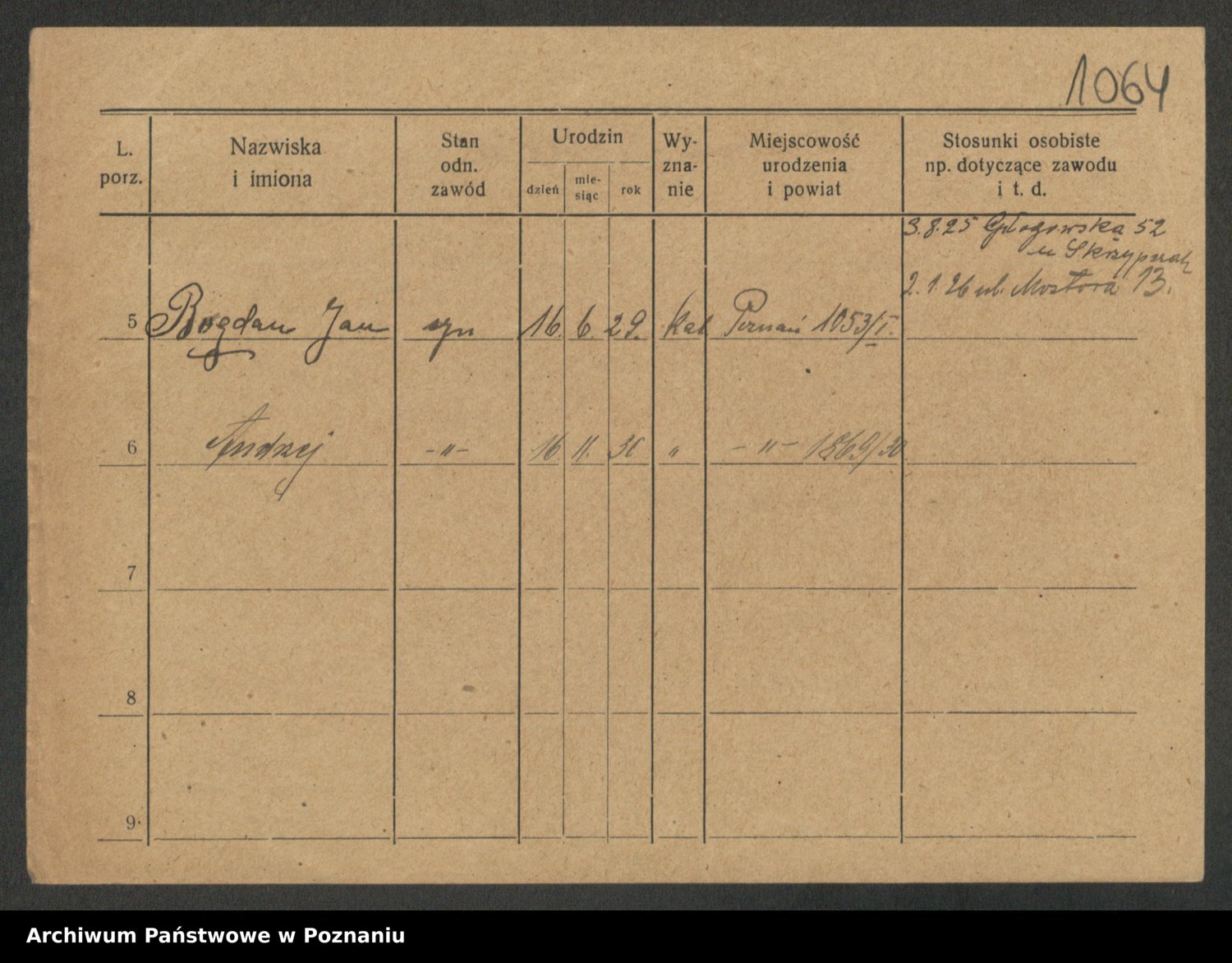 Podgląd karty osobowej dostępny jest po kliknięciu na nazwisko lub ikonkę karty. Można dokonywać powiększenia (ikony na górze) lub przechodzić między kolejnymi skanami (strzałki po bokach).