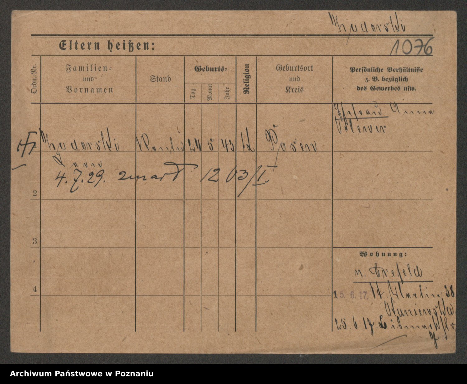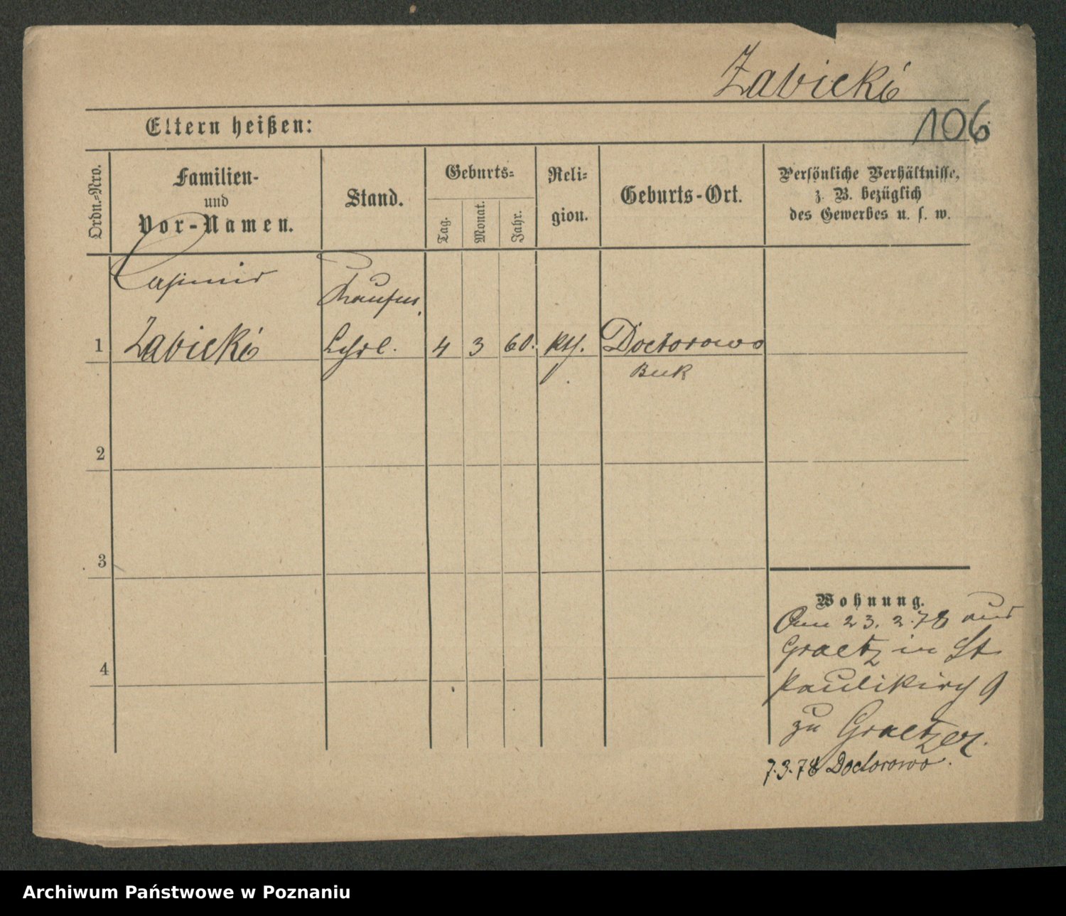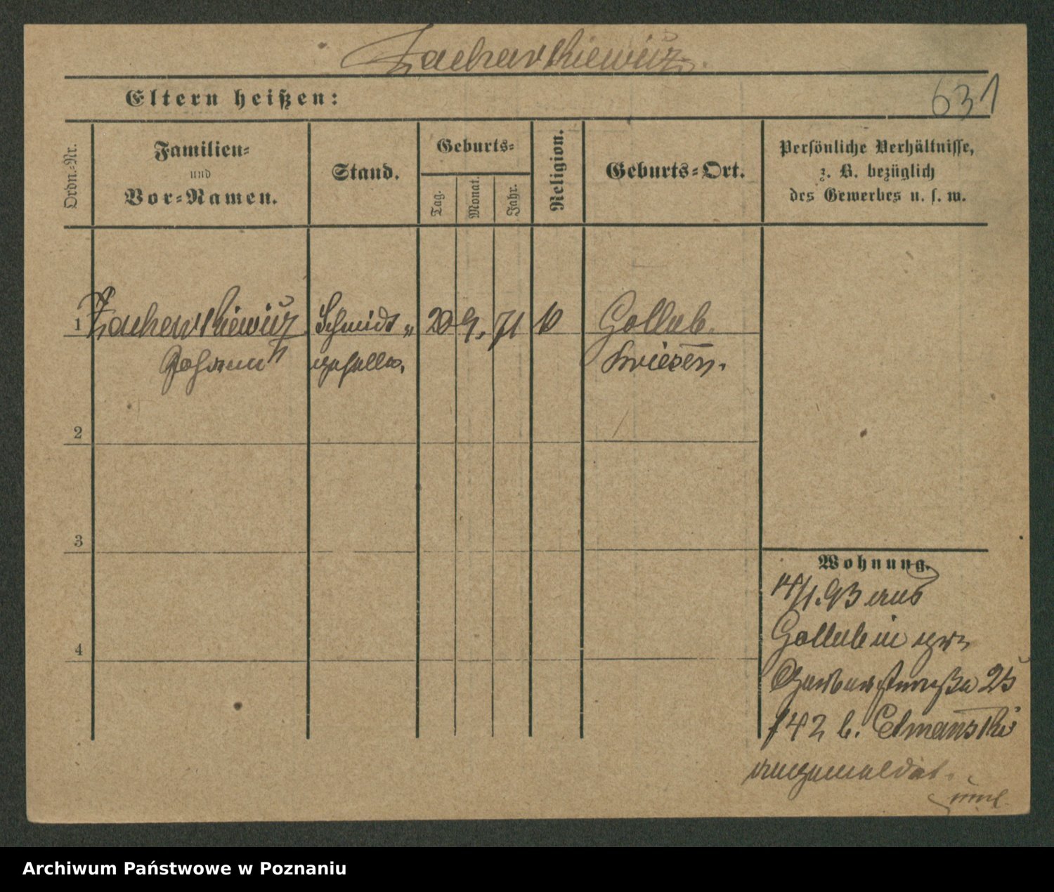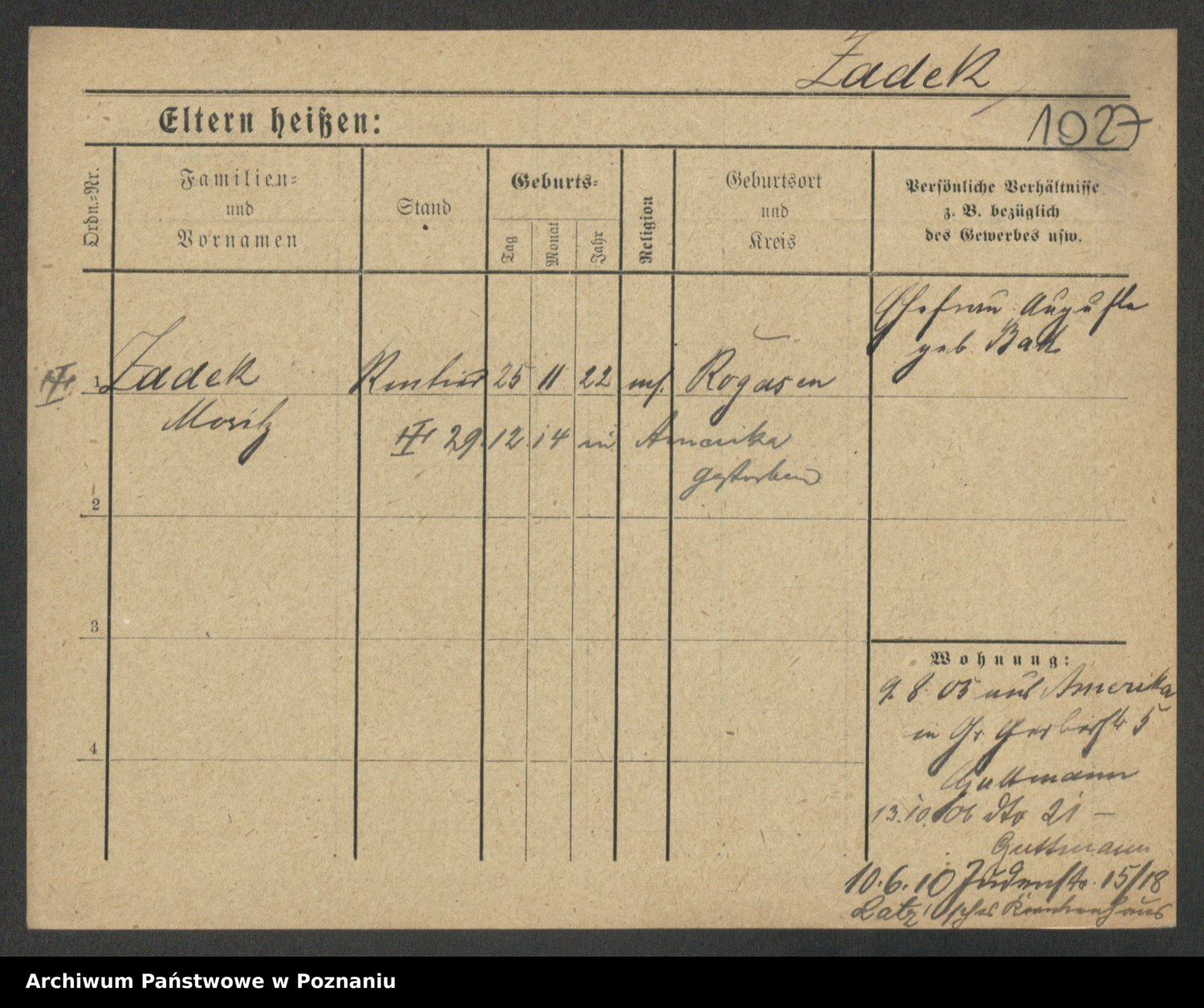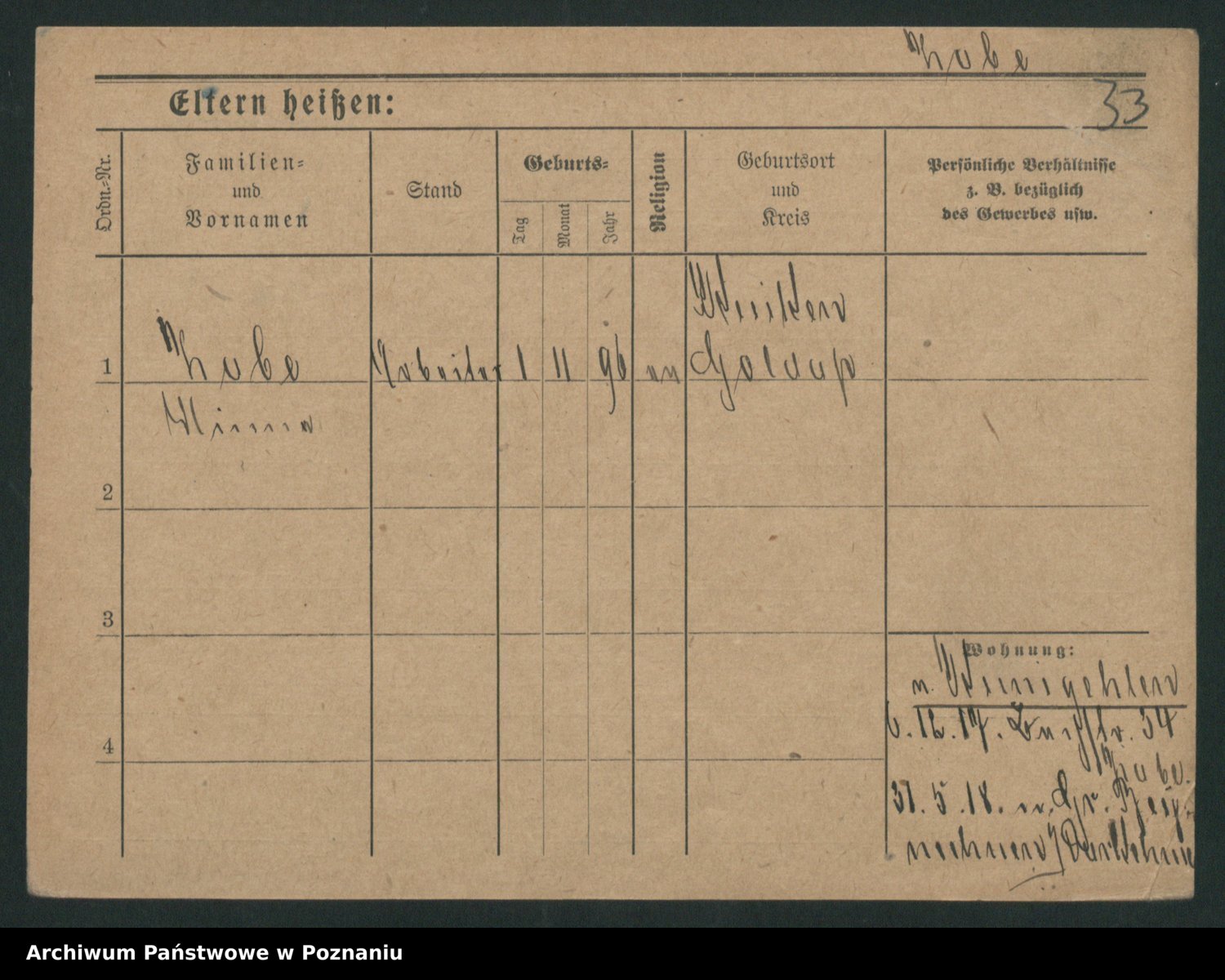 Podgląd karty osobowej dostępny jest po kliknięciu na nazwisko lub ikonkę karty. Można dokonywać powiększenia (ikony na górze) lub przechodzić między kolejnymi skanami (strzałki po bokach).
