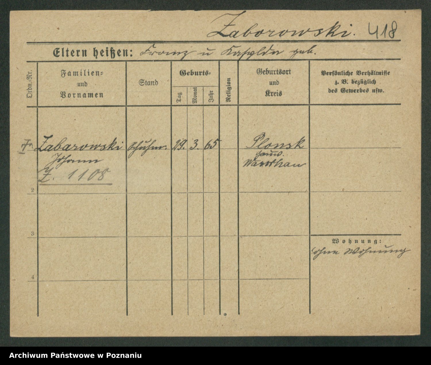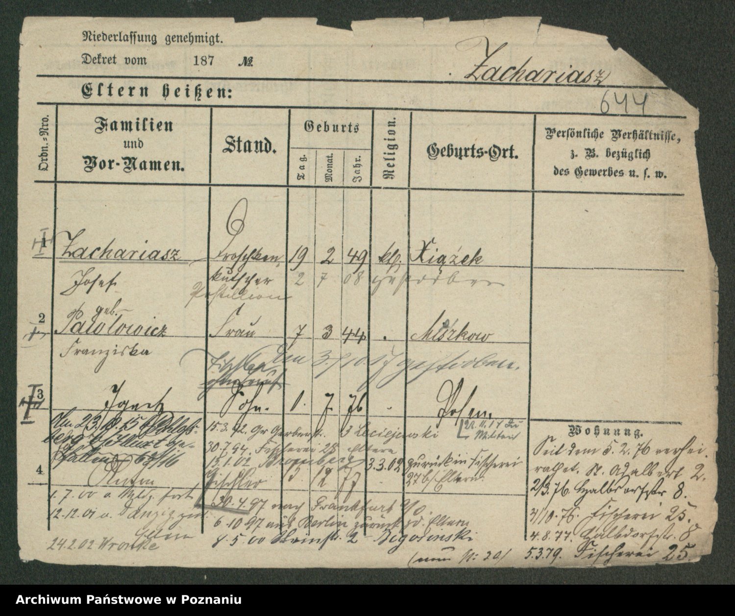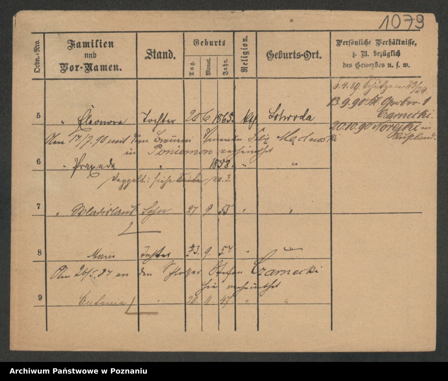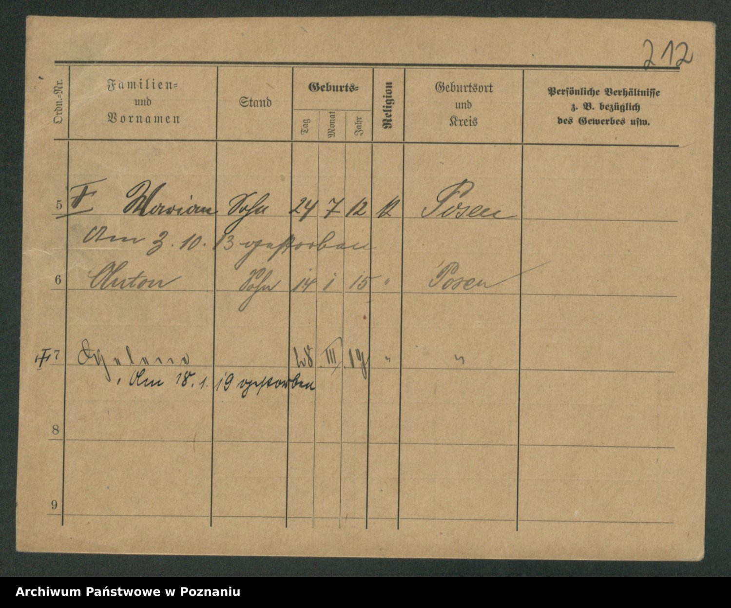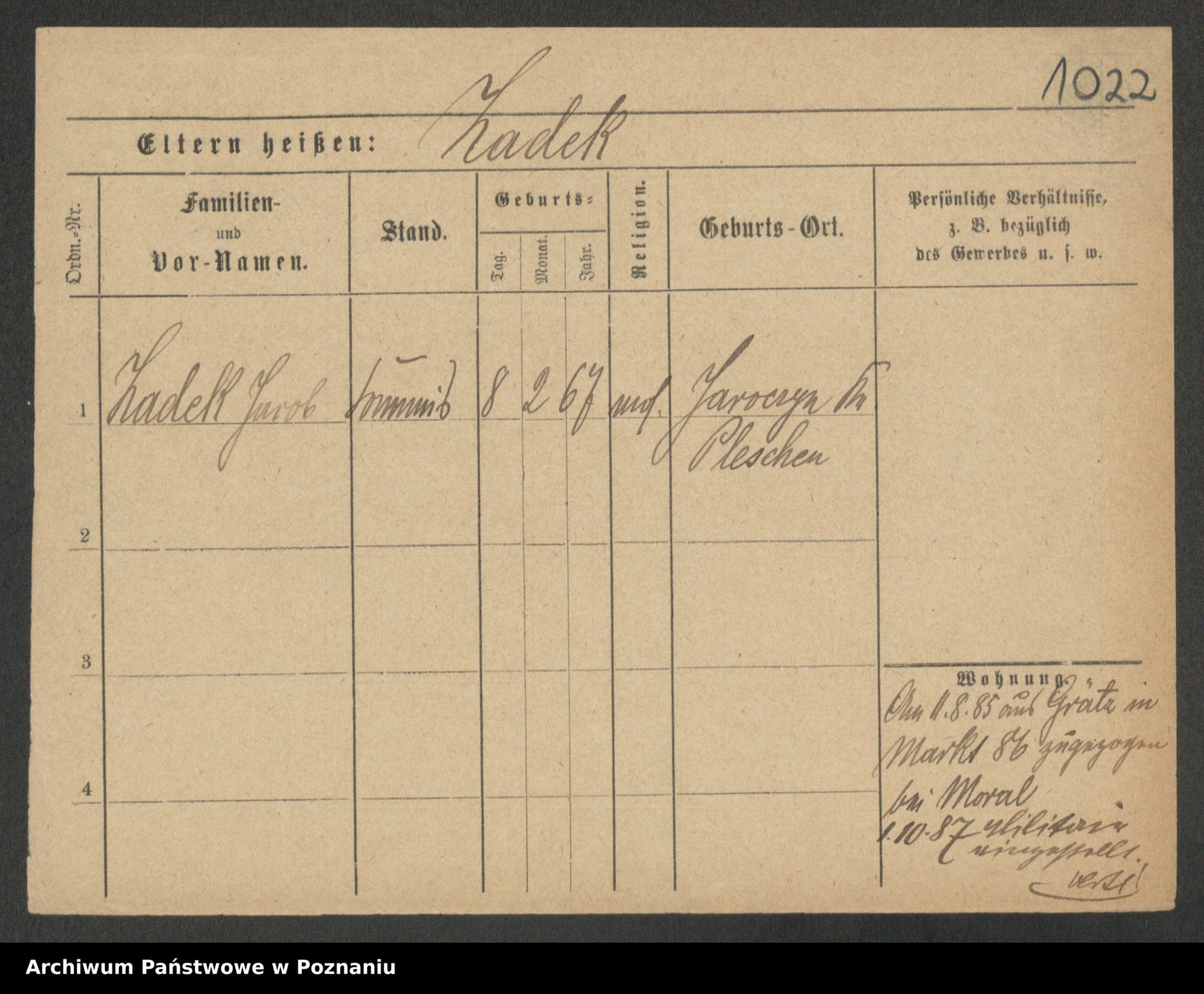 Podgląd karty osobowej dostępny jest po kliknięciu na nazwisko lub ikonkę karty. Można dokonywać powiększenia (ikony na górze) lub przechodzić między kolejnymi skanami (strzałki po bokach).