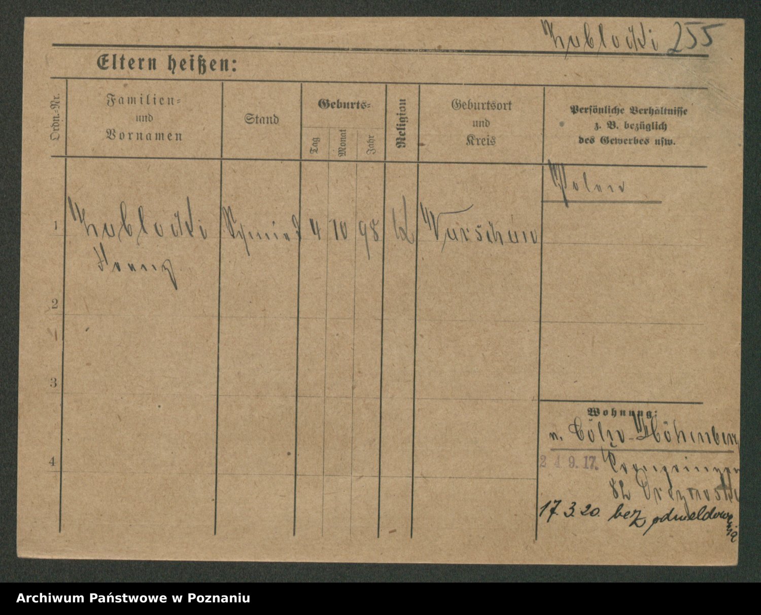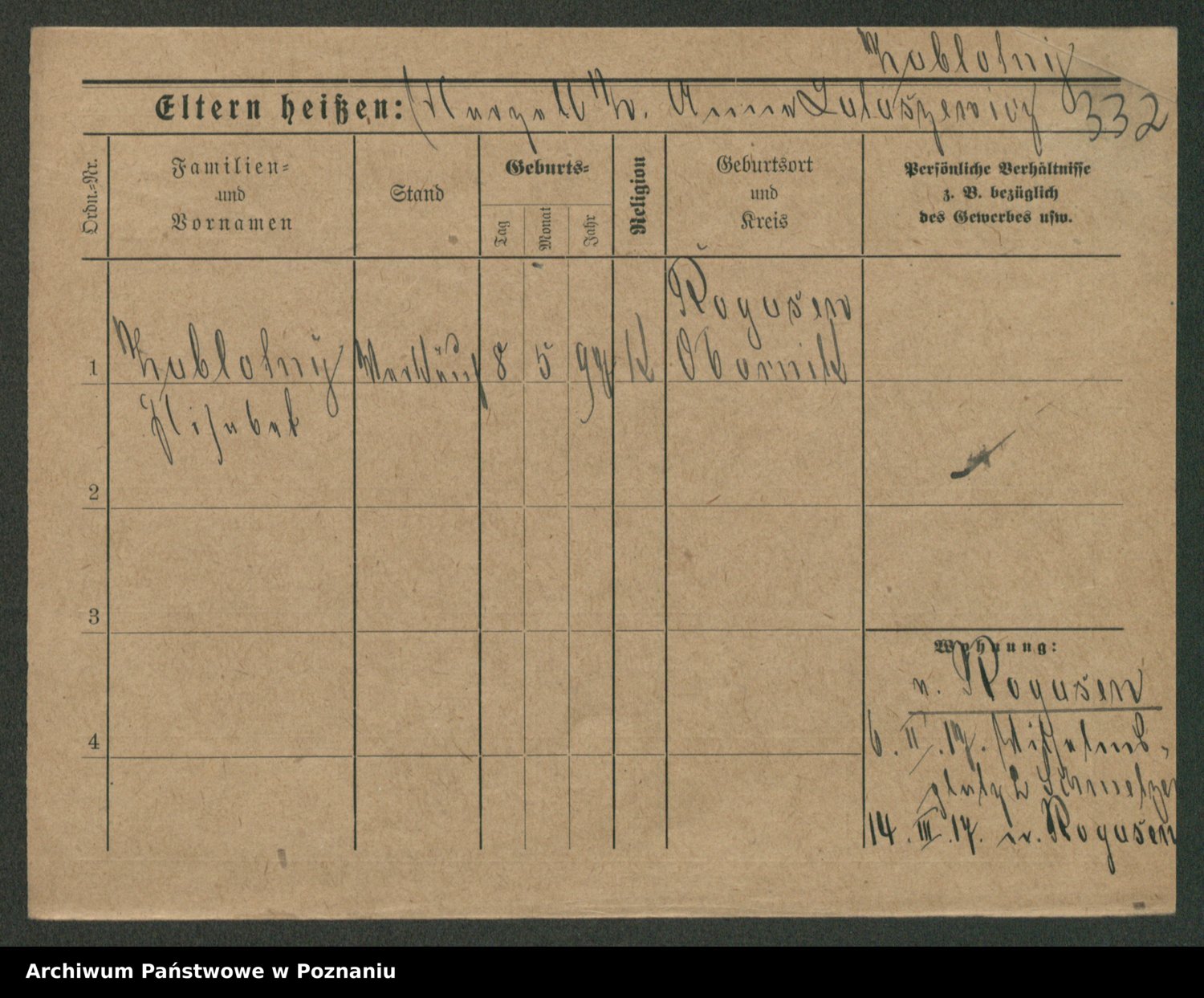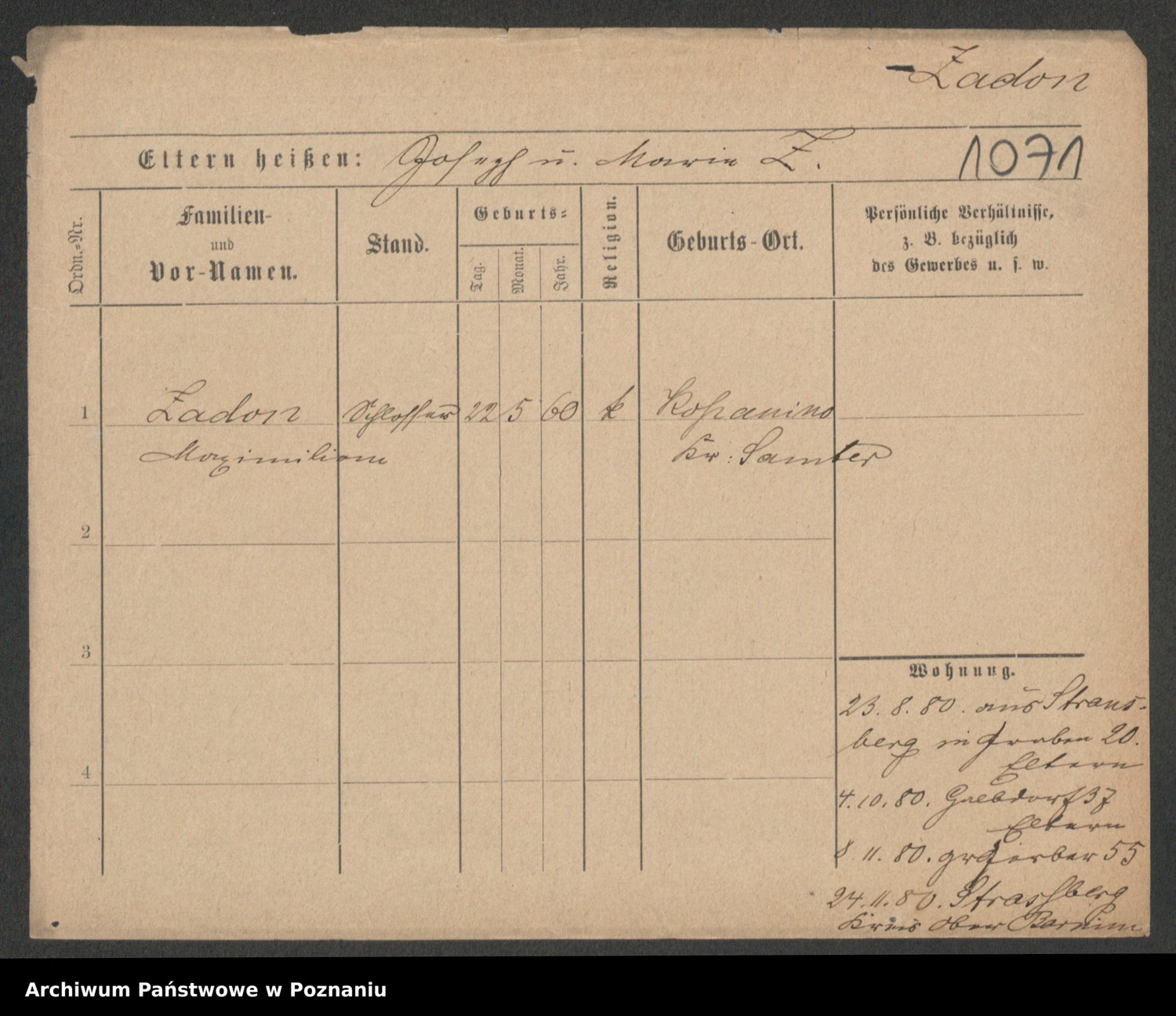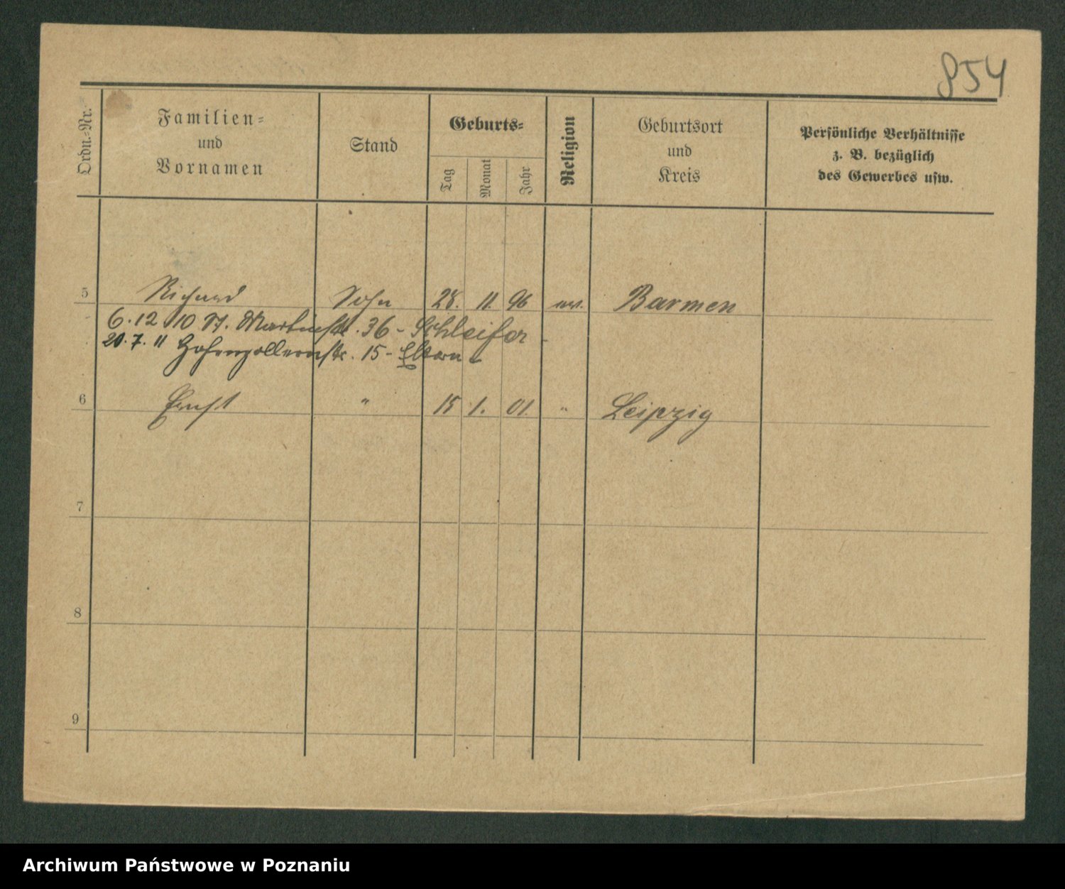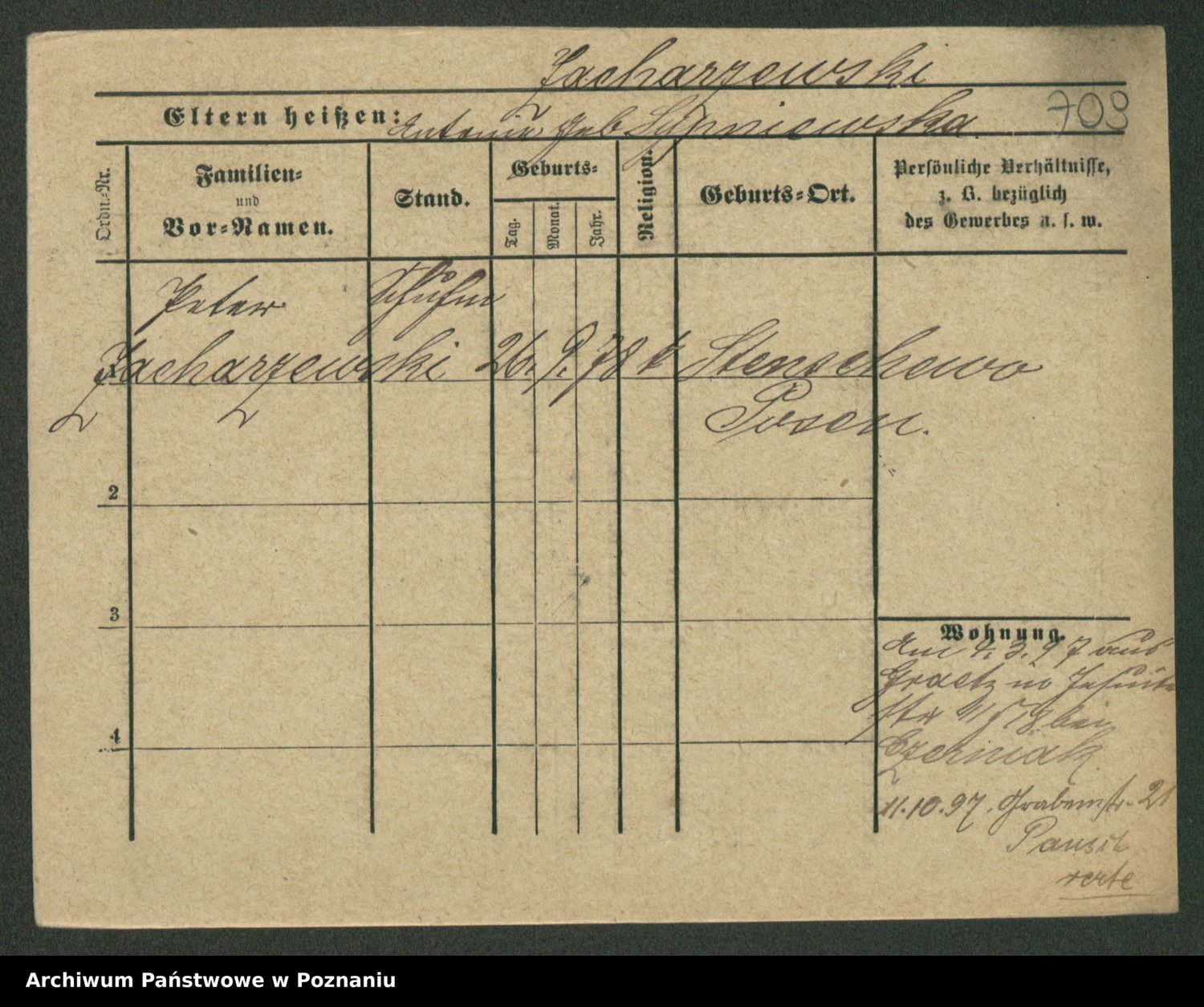 Podgląd karty osobowej dostępny jest po kliknięciu na nazwisko lub ikonkę karty. Można dokonywać powiększenia (ikony na górze) lub przechodzić między kolejnymi skanami (strzałki po bokach).