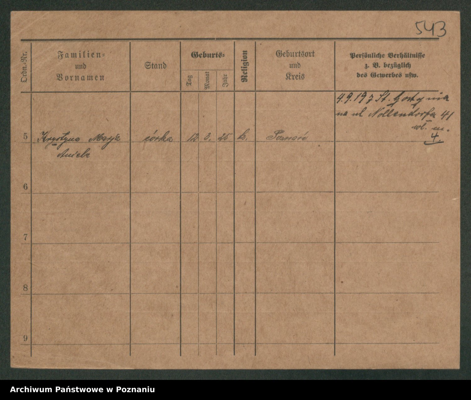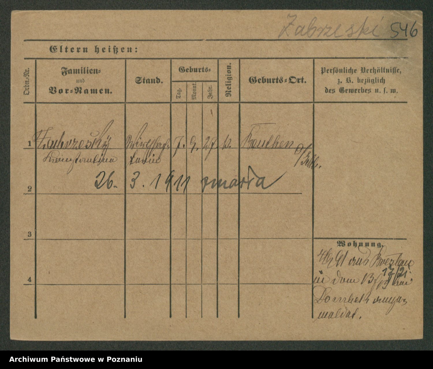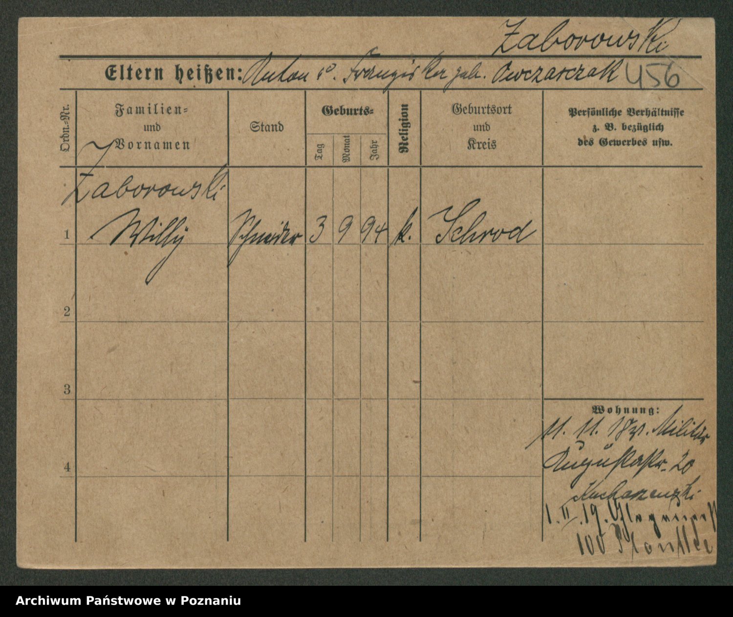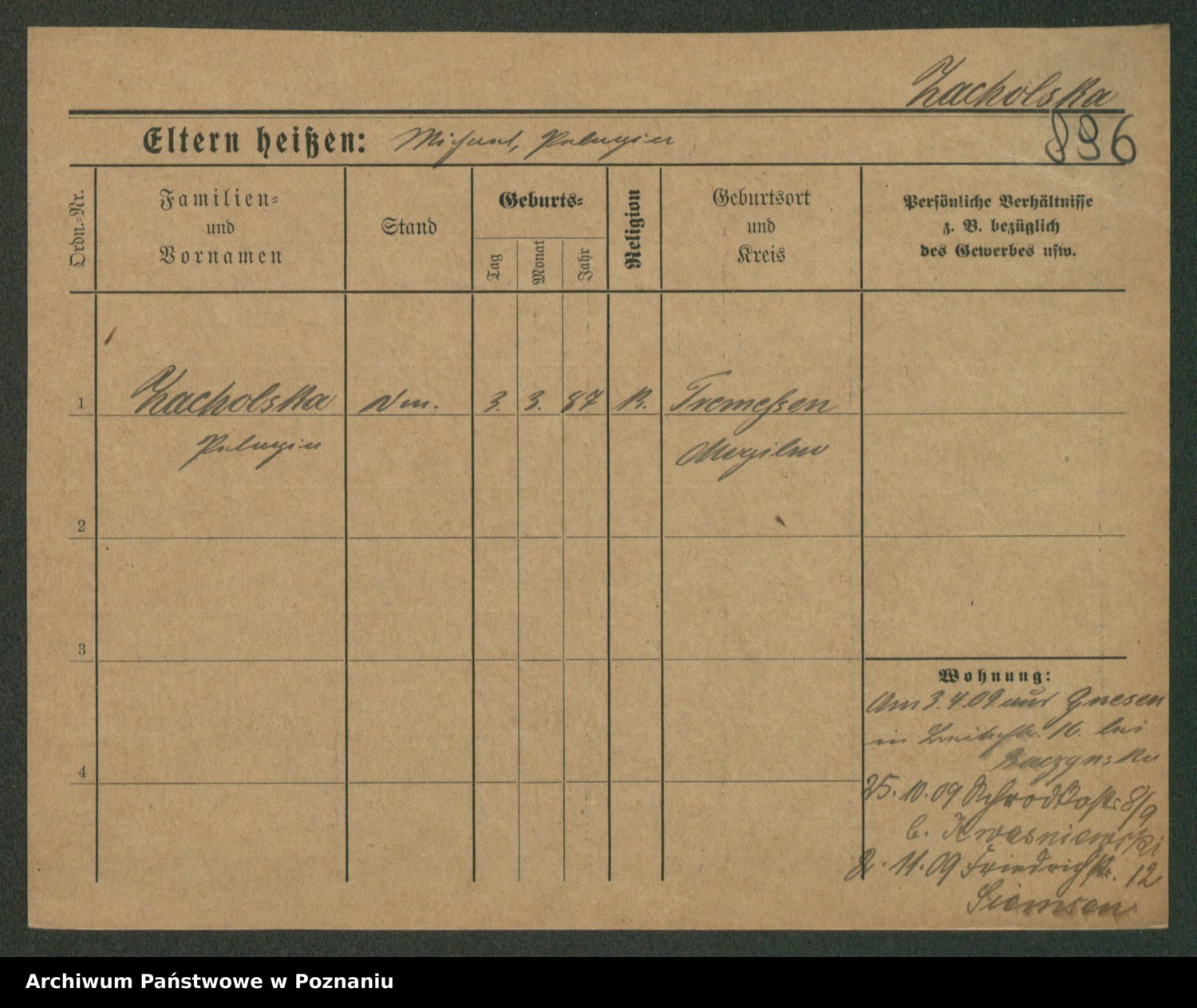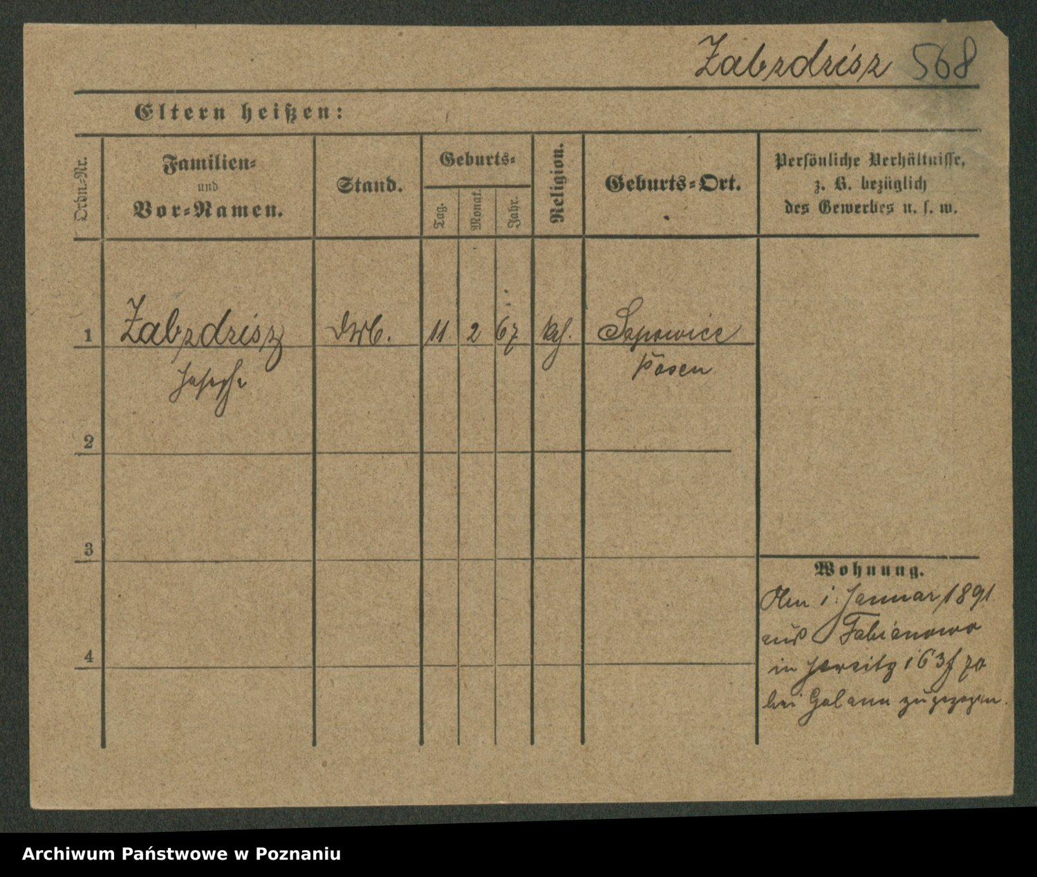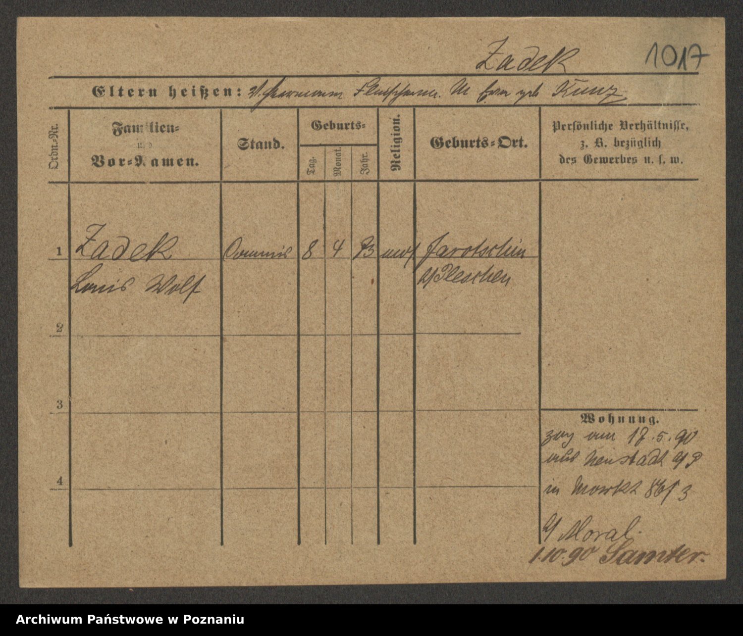 Podgląd karty osobowej dostępny jest po kliknięciu na nazwisko lub ikonkę karty. Można dokonywać powiększenia (ikony na górze) lub przechodzić między kolejnymi skanami (strzałki po bokach).