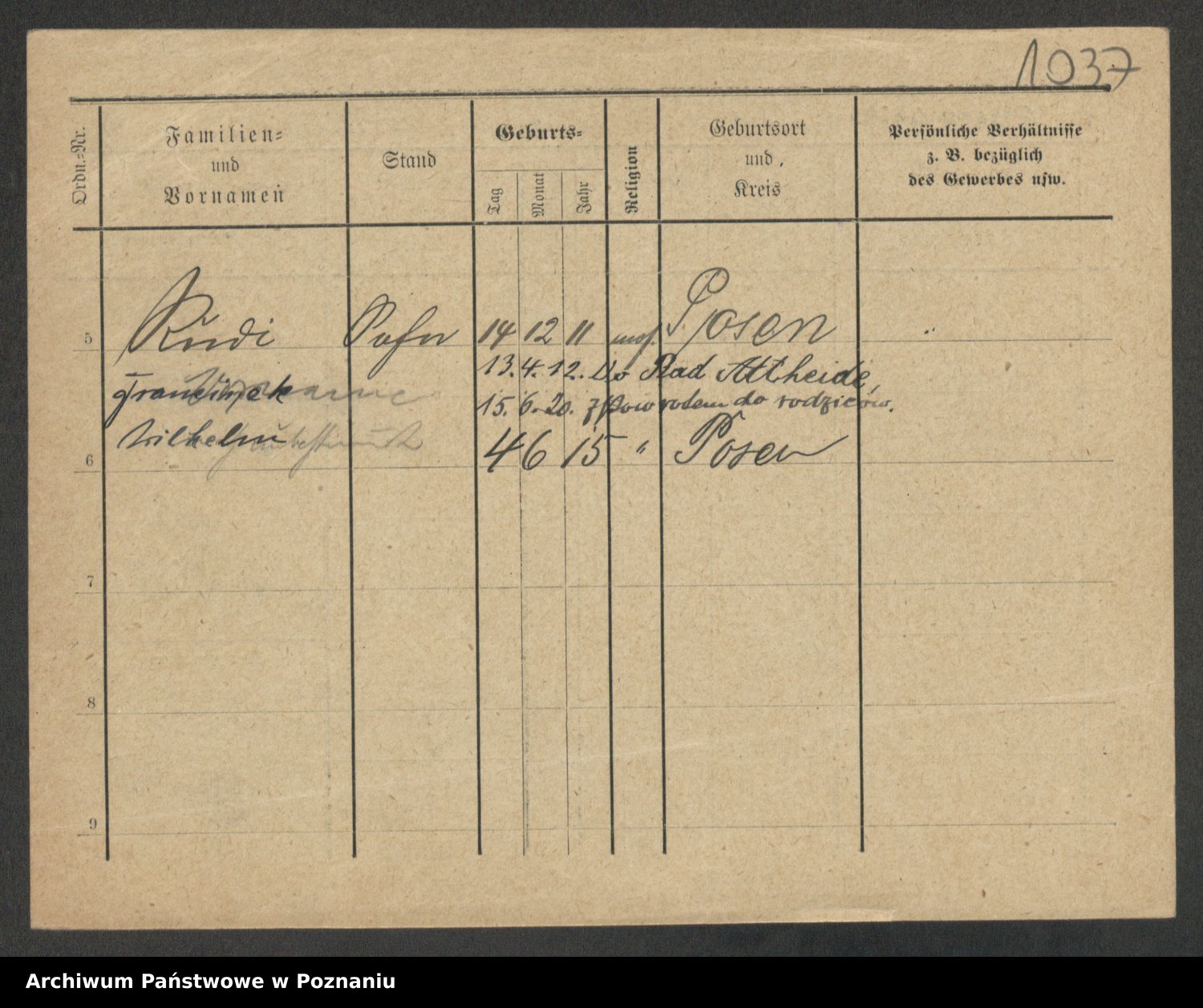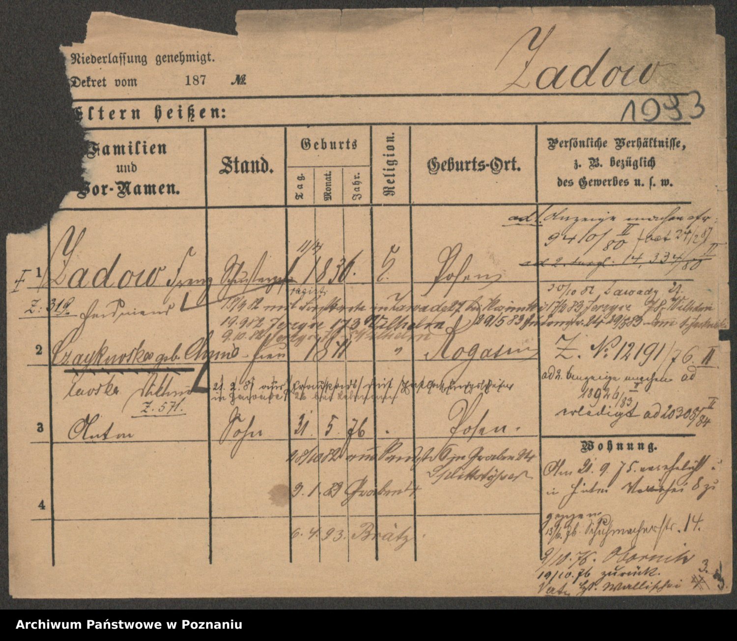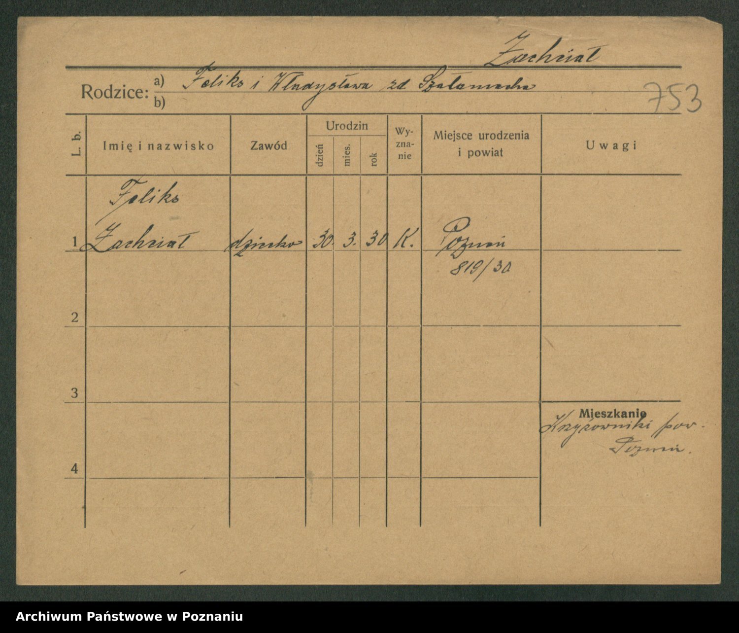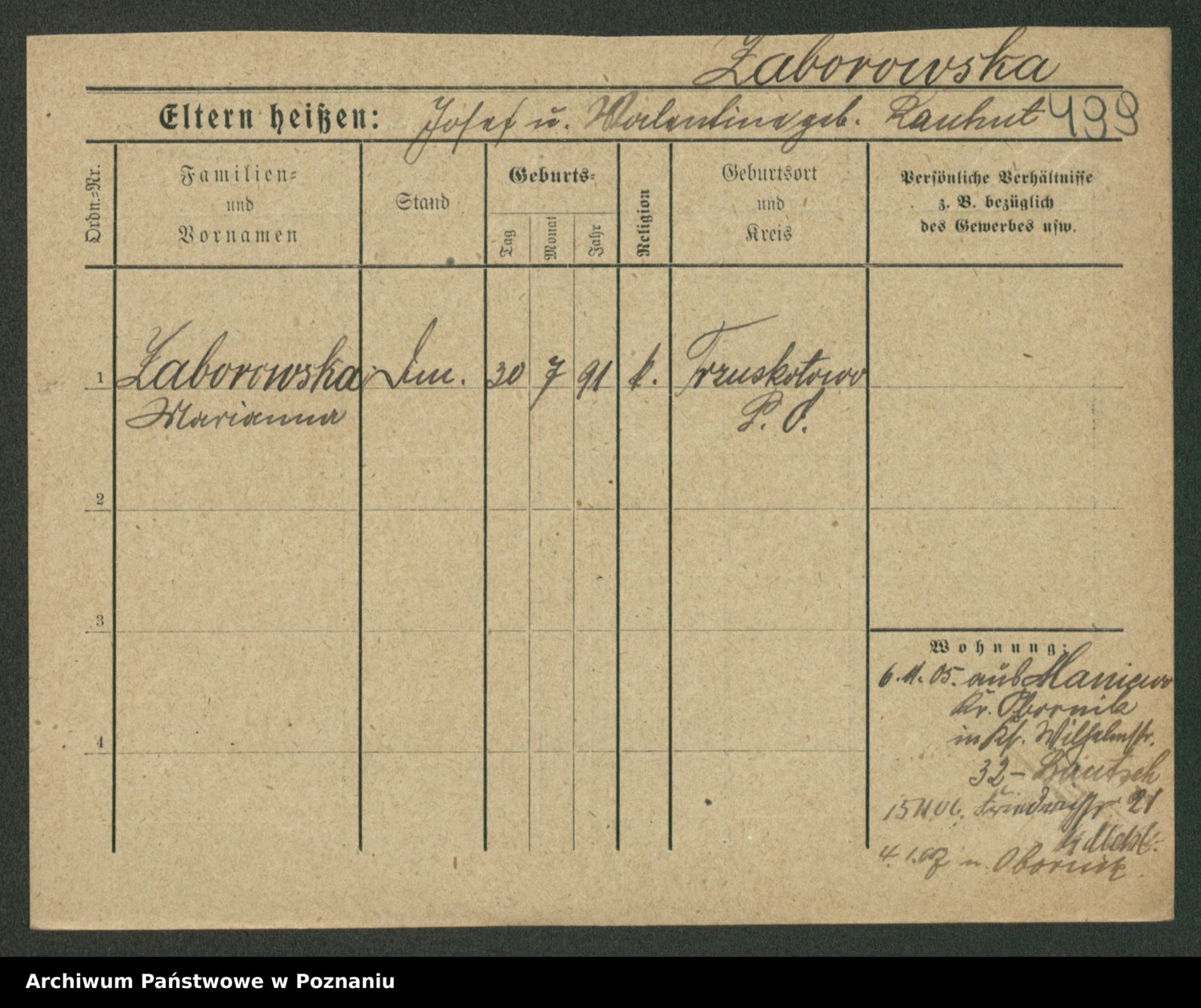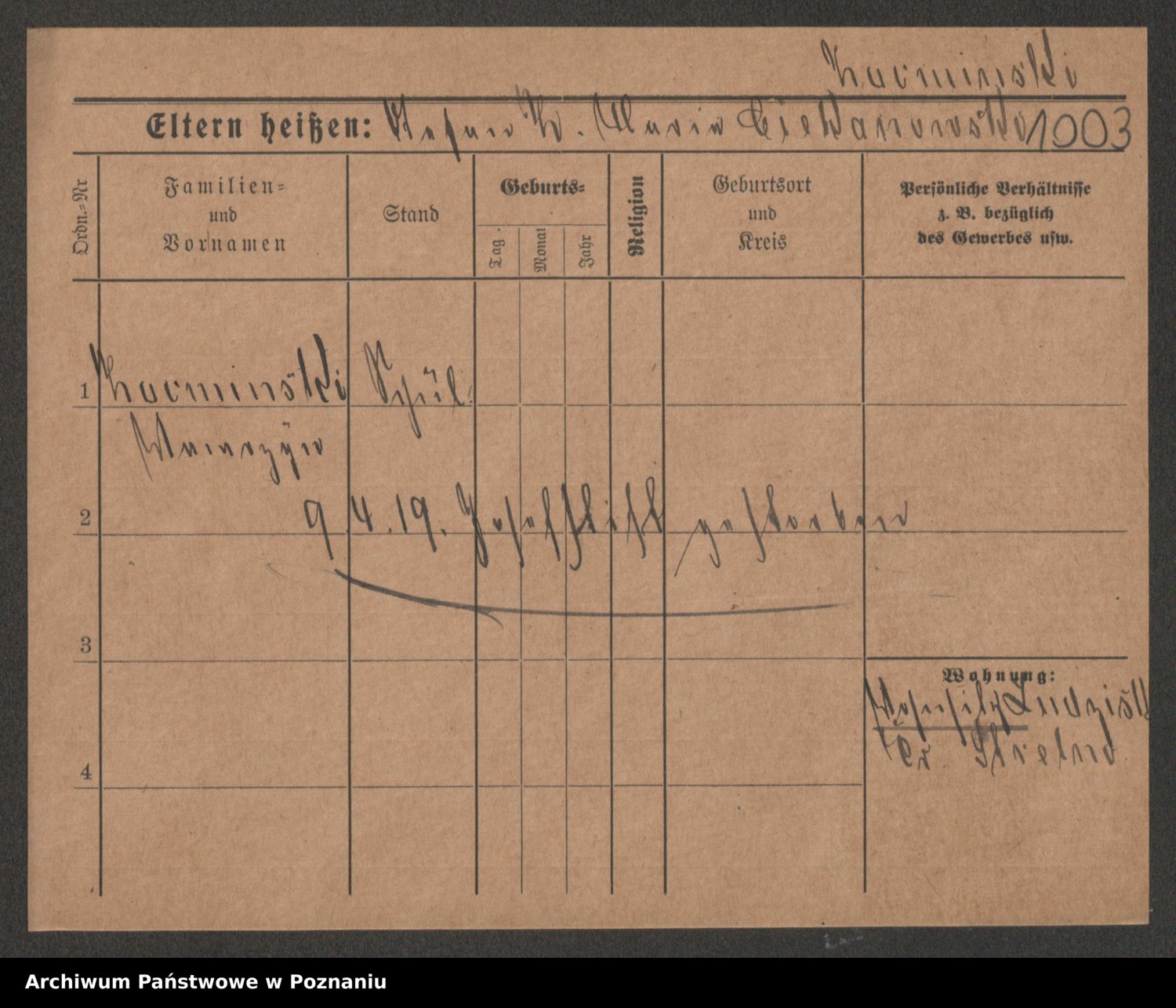 Podgląd karty osobowej dostępny jest po kliknięciu na nazwisko lub ikonkę karty. Można dokonywać powiększenia (ikony na górze) lub przechodzić między kolejnymi skanami (strzałki po bokach).