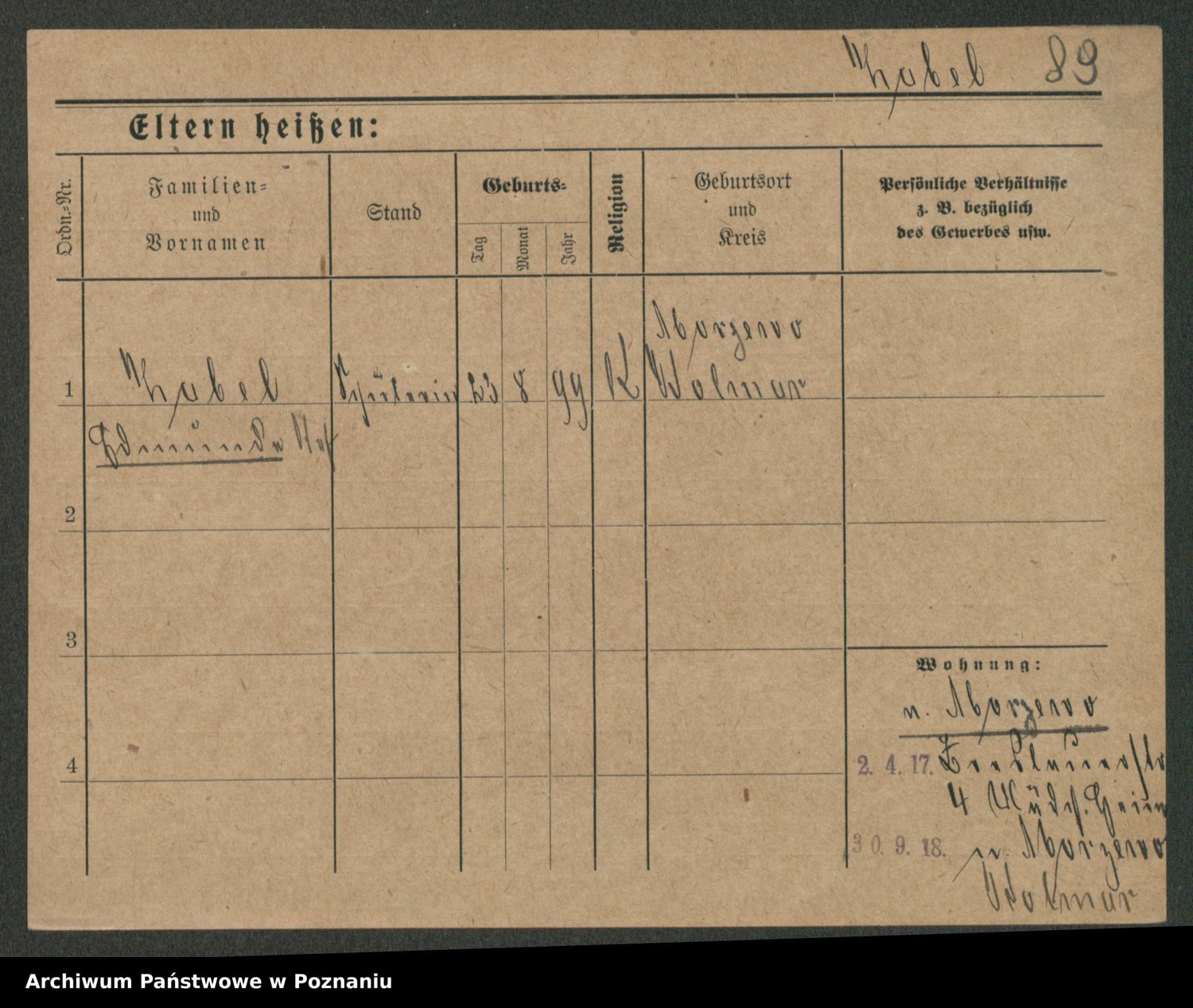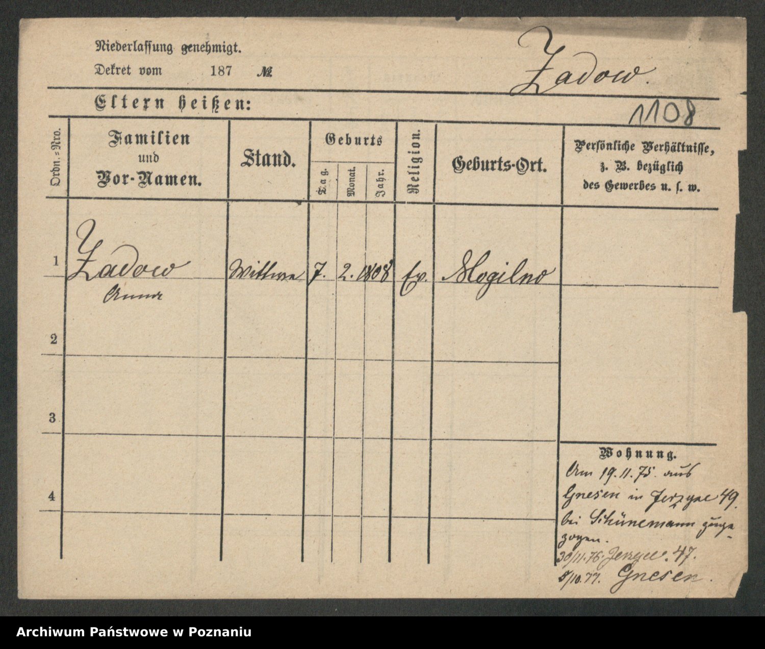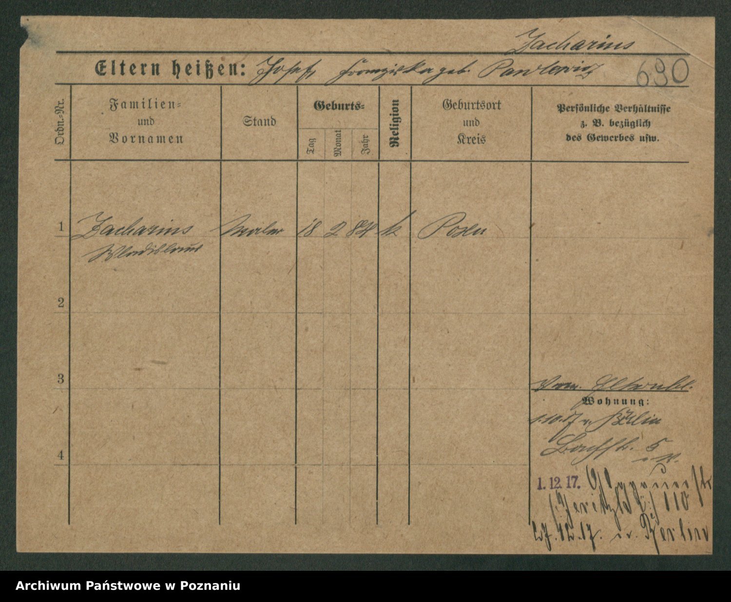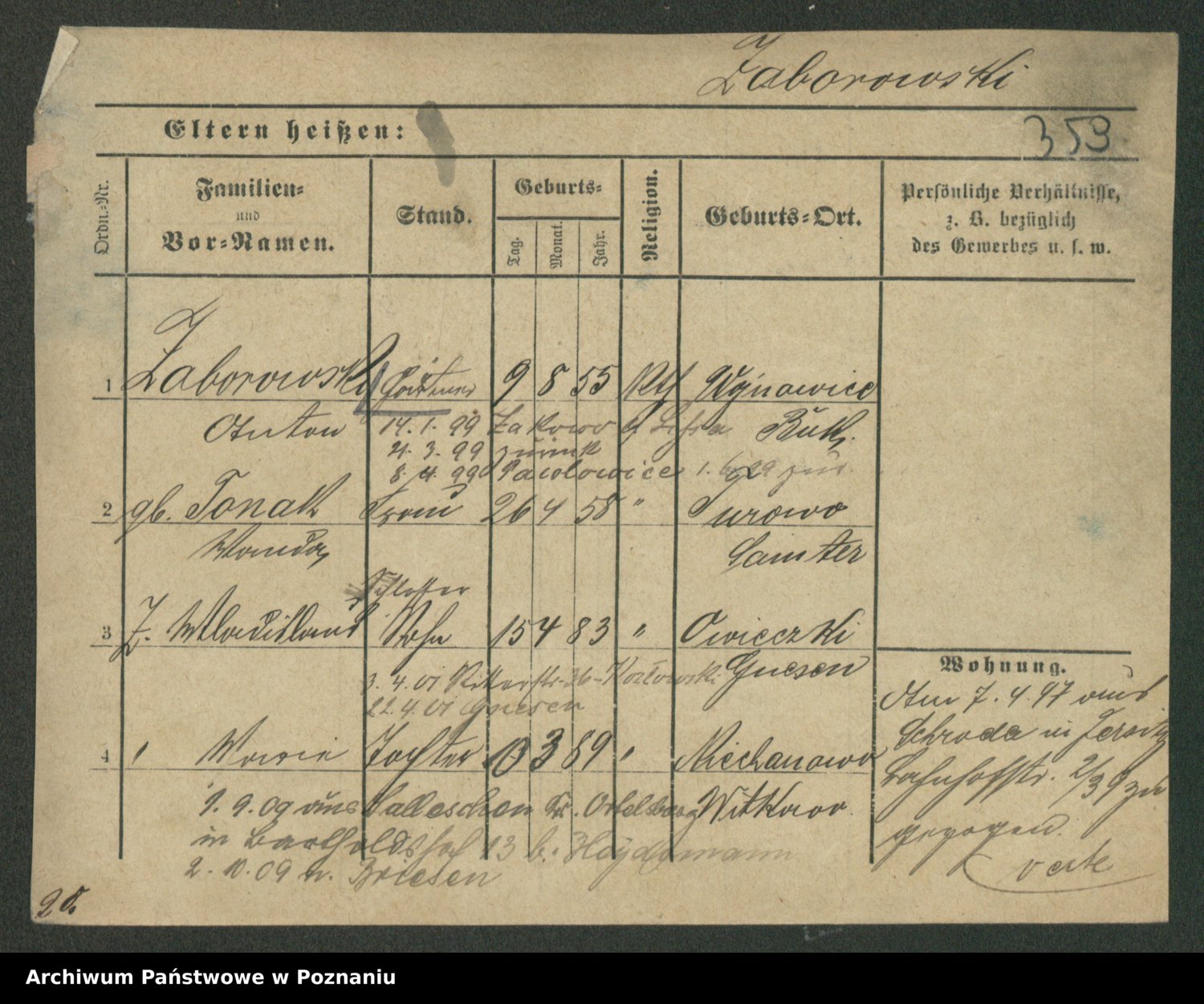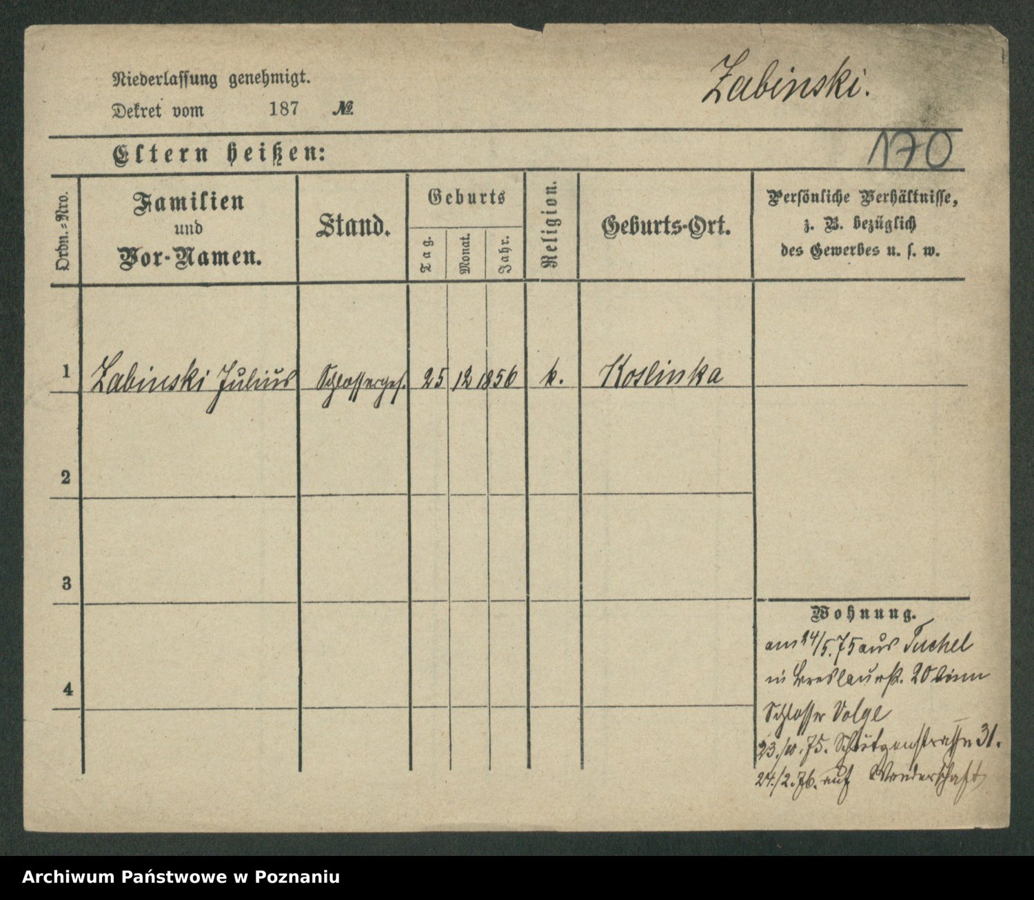 Podgląd karty osobowej dostępny jest po kliknięciu na nazwisko lub ikonkę karty. Można dokonywać powiększenia (ikony na górze) lub przechodzić między kolejnymi skanami (strzałki po bokach).