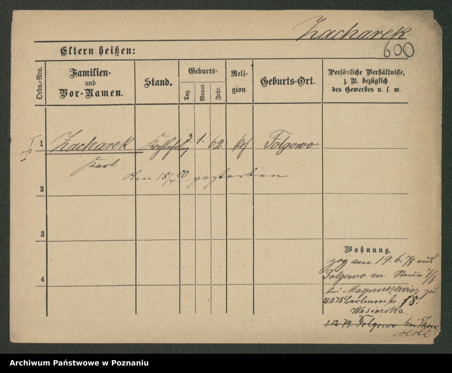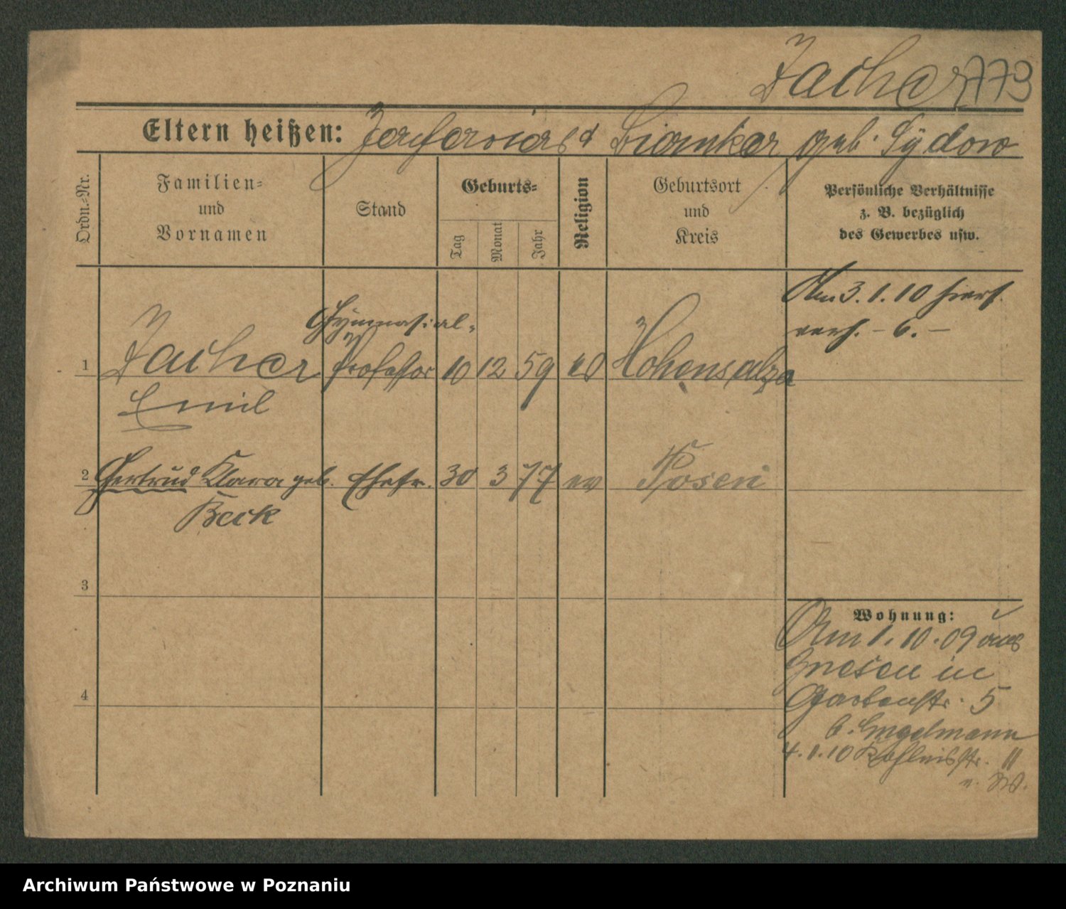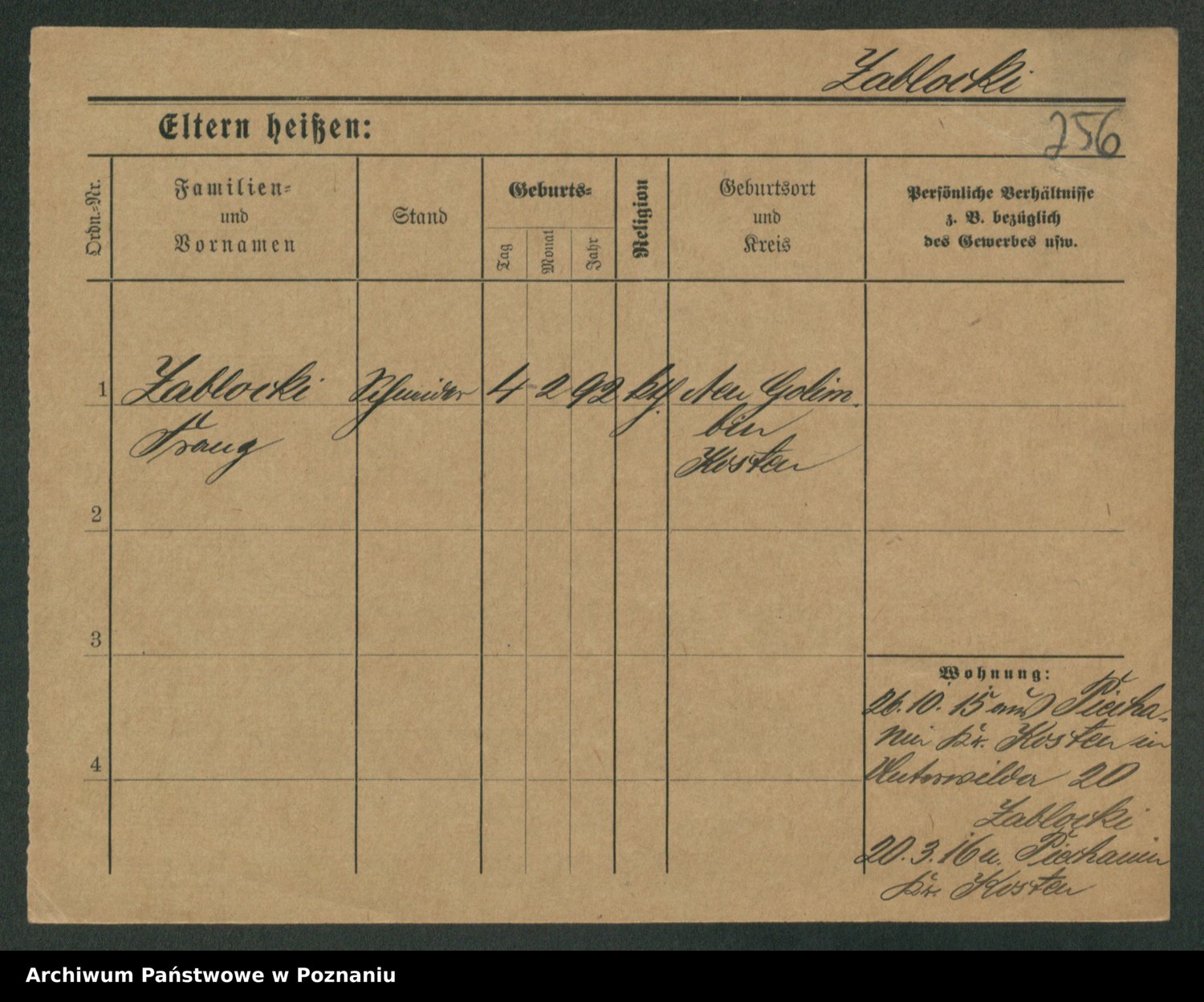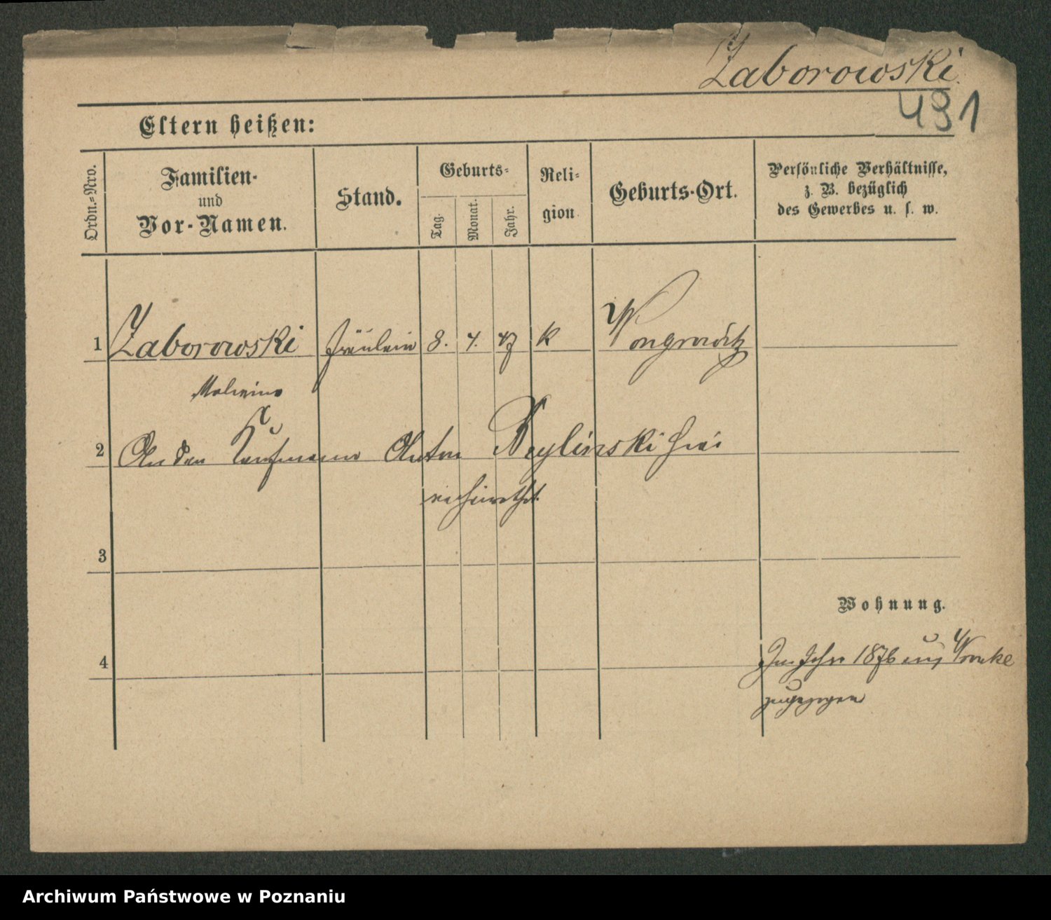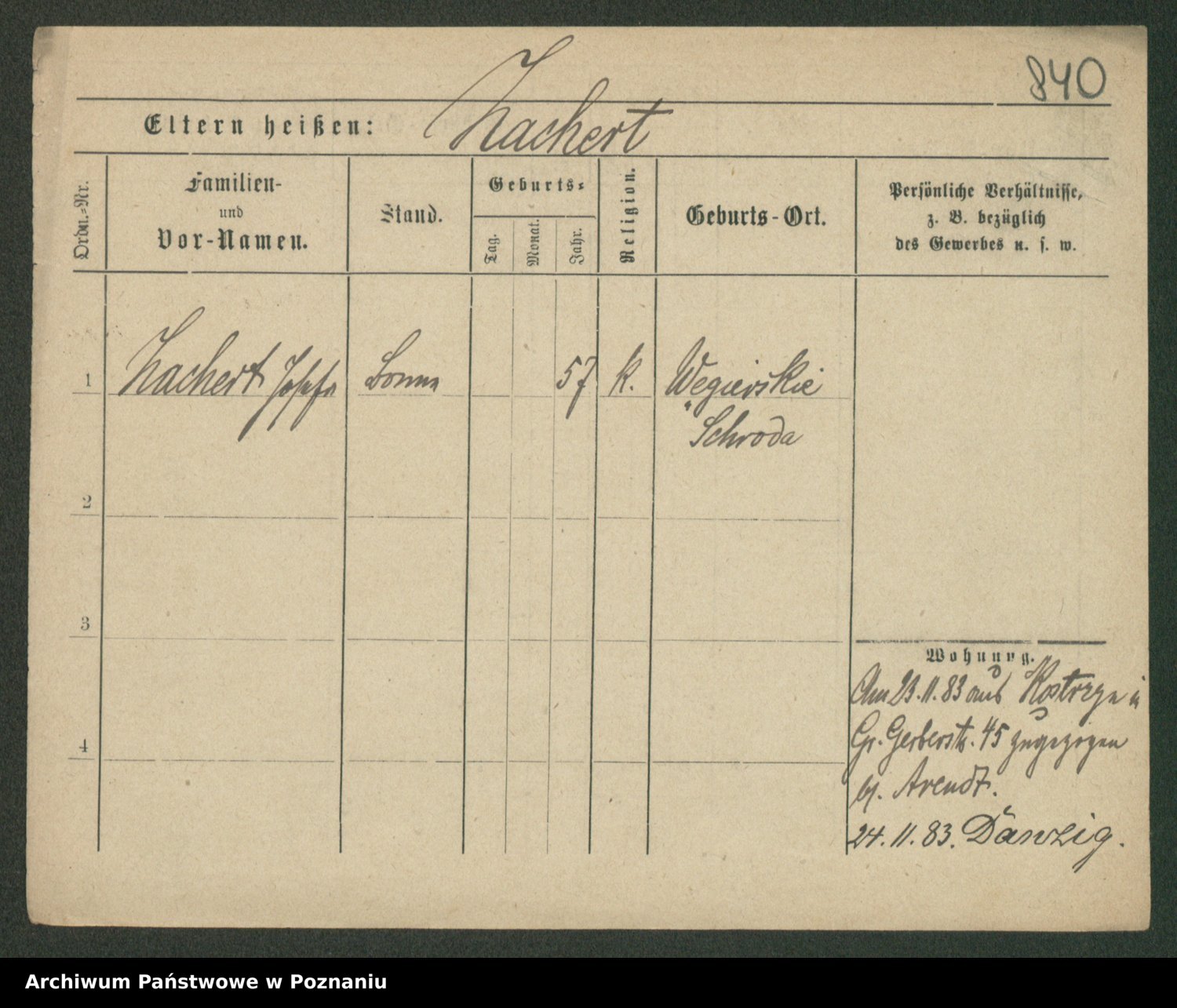Podgląd karty osobowej dostępny jest po kliknięciu na nazwisko lub ikonkę karty. Można dokonywać powiększenia (ikony na górze) lub przechodzić między kolejnymi skanami (strzałki po bokach).