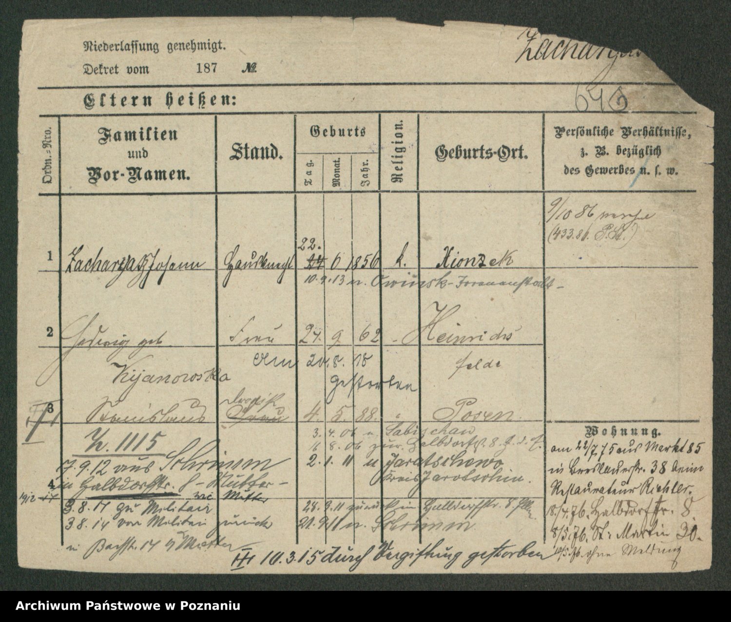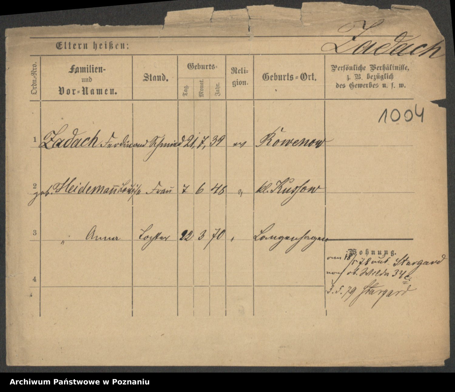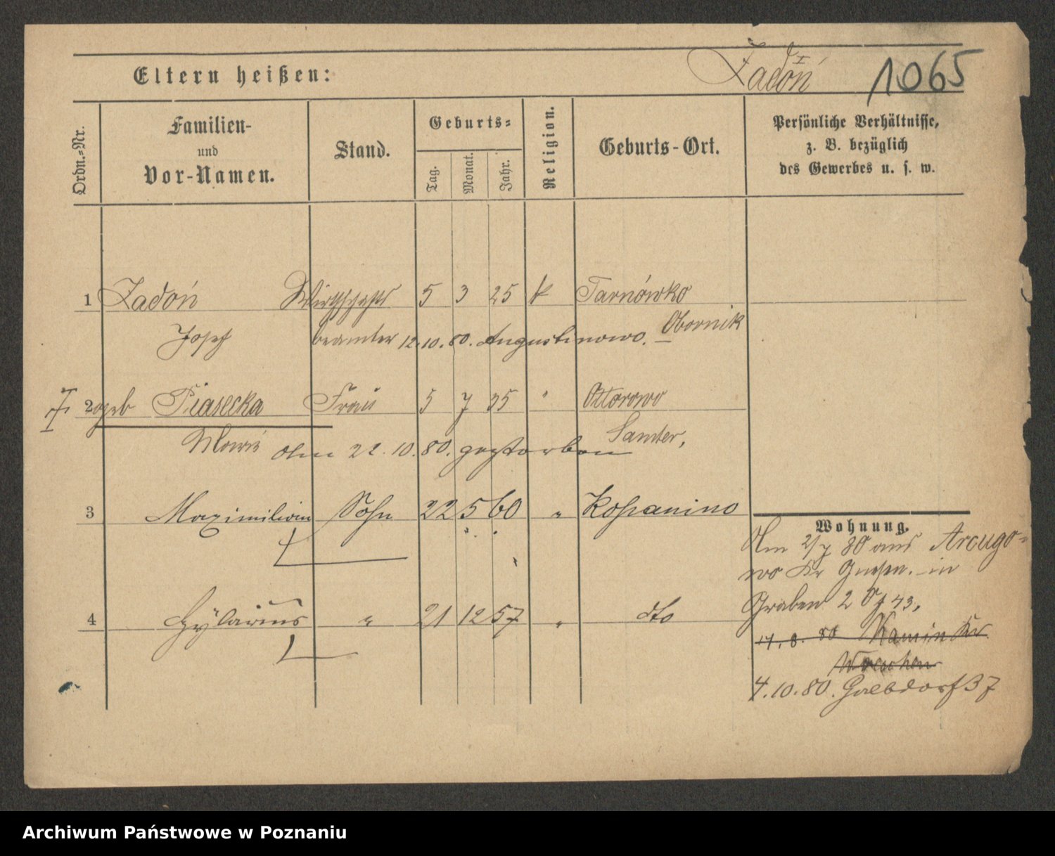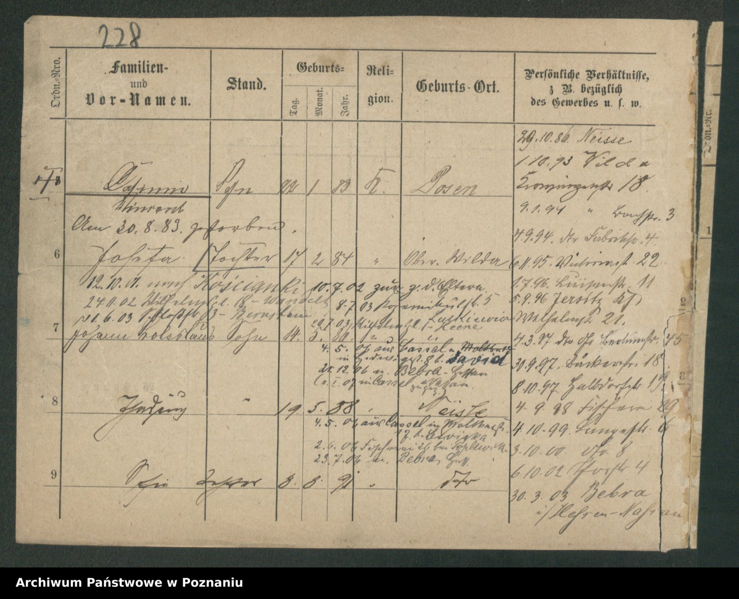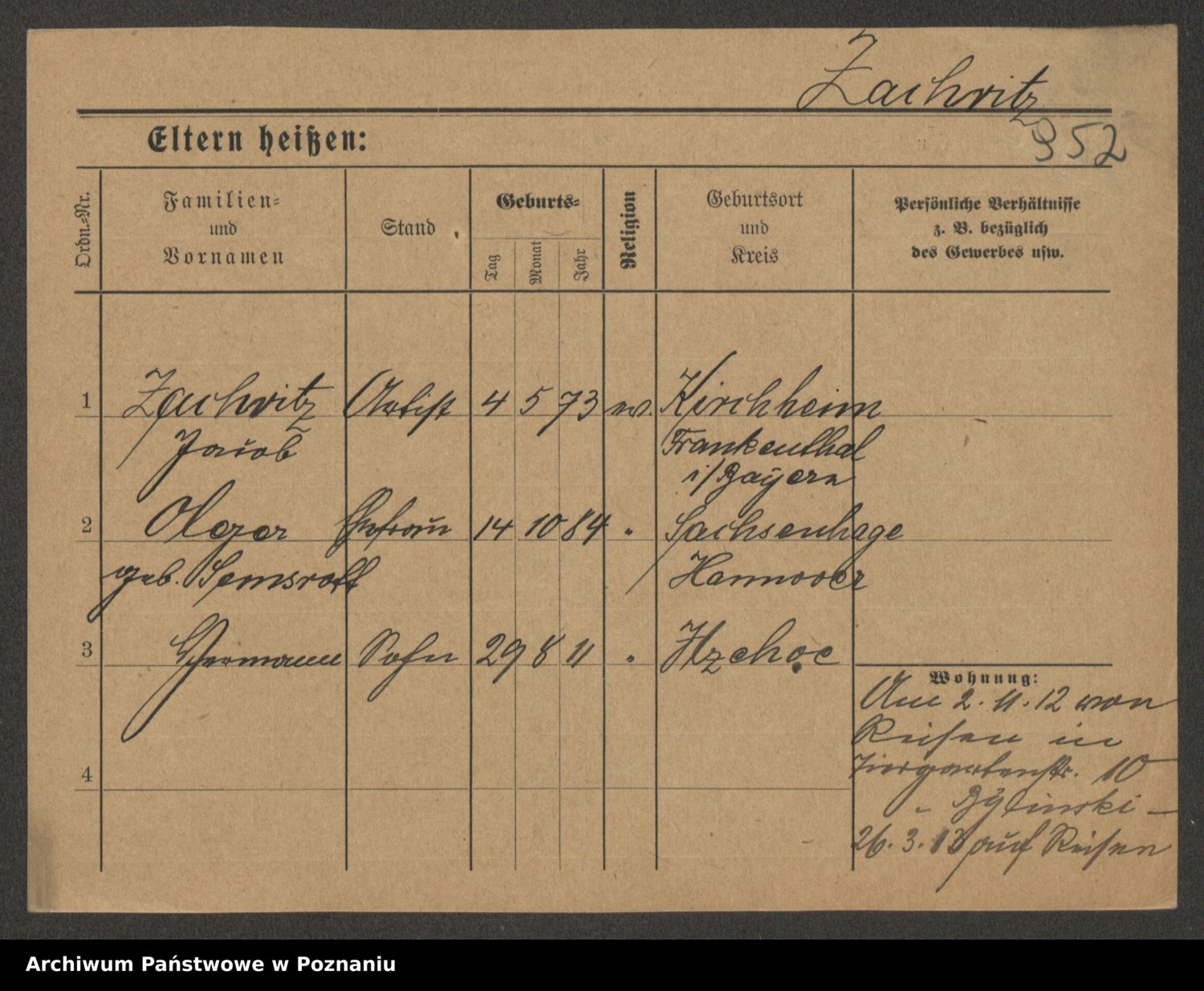 Podgląd karty osobowej dostępny jest po kliknięciu na nazwisko lub ikonkę karty. Można dokonywać powiększenia (ikony na górze) lub przechodzić między kolejnymi skanami (strzałki po bokach).