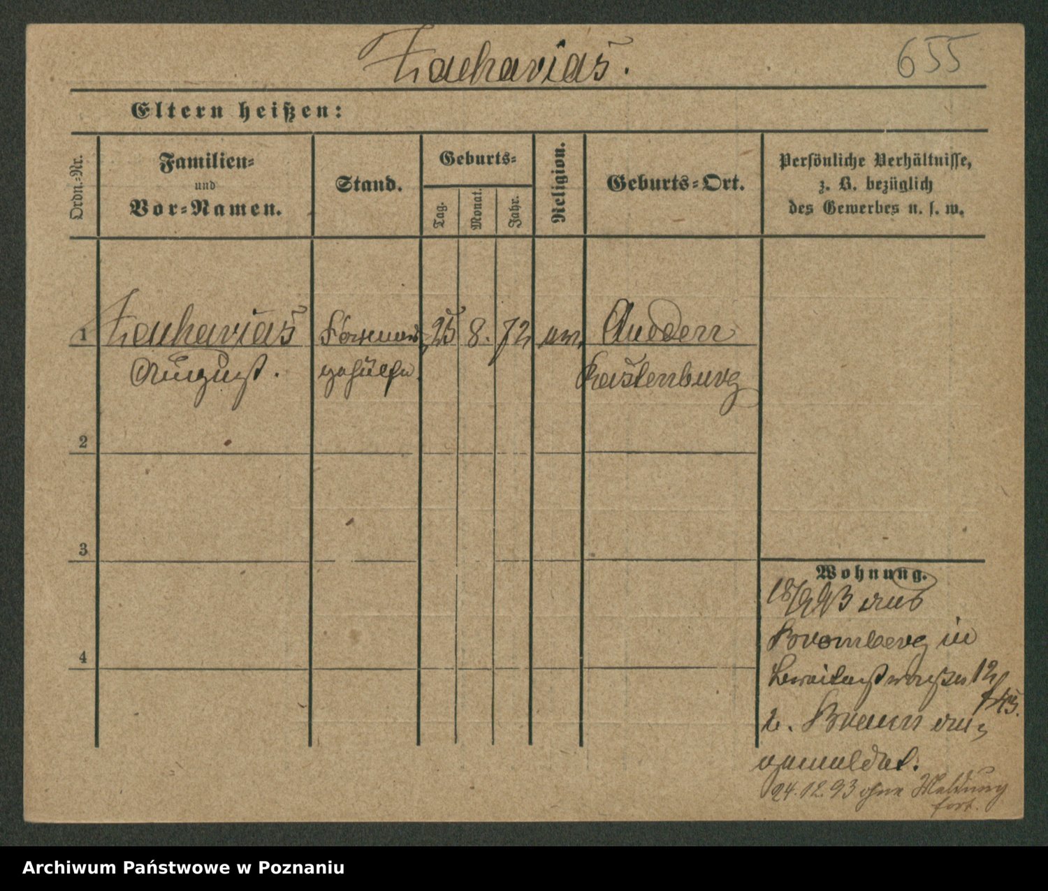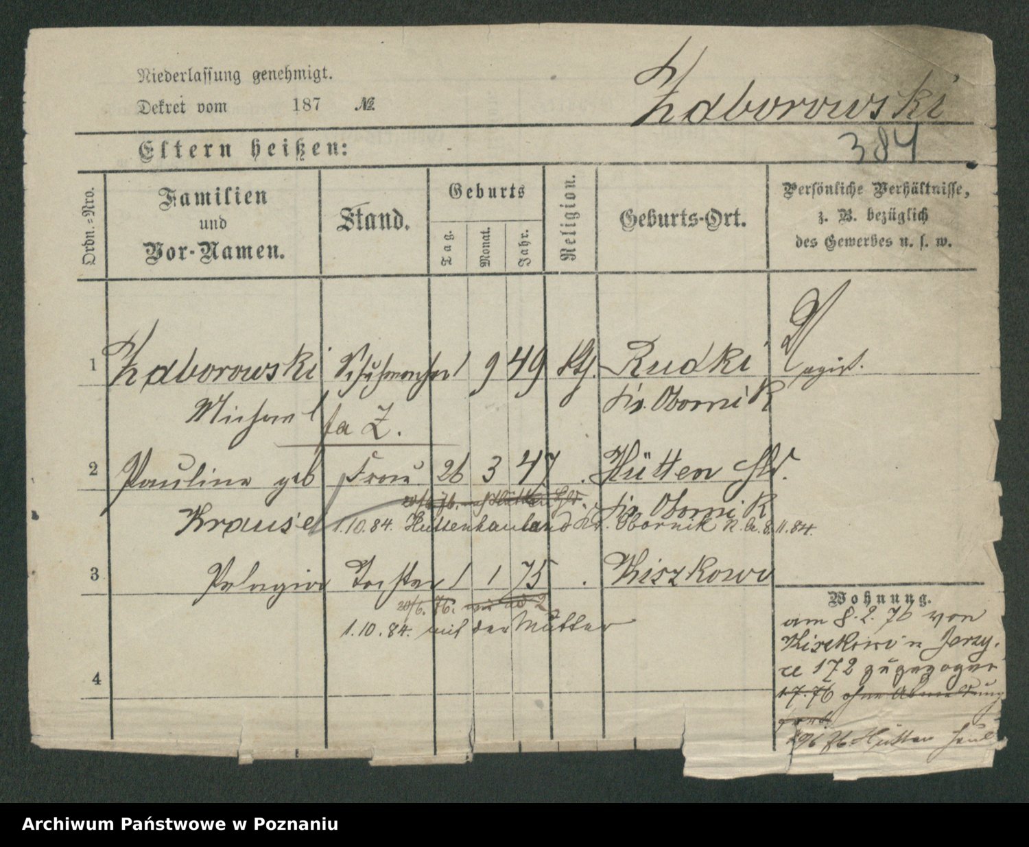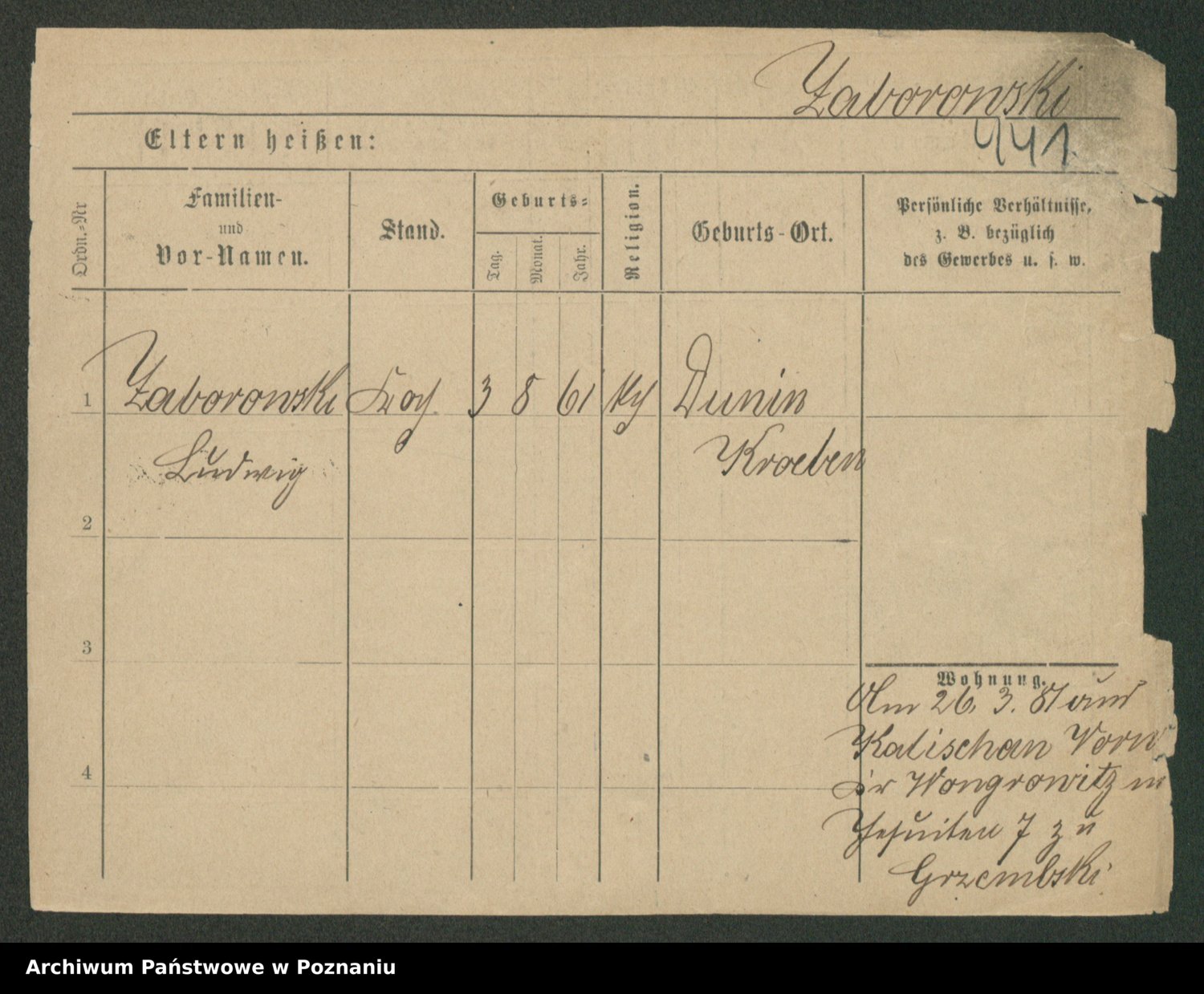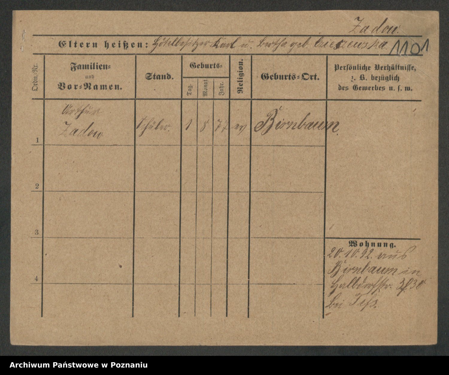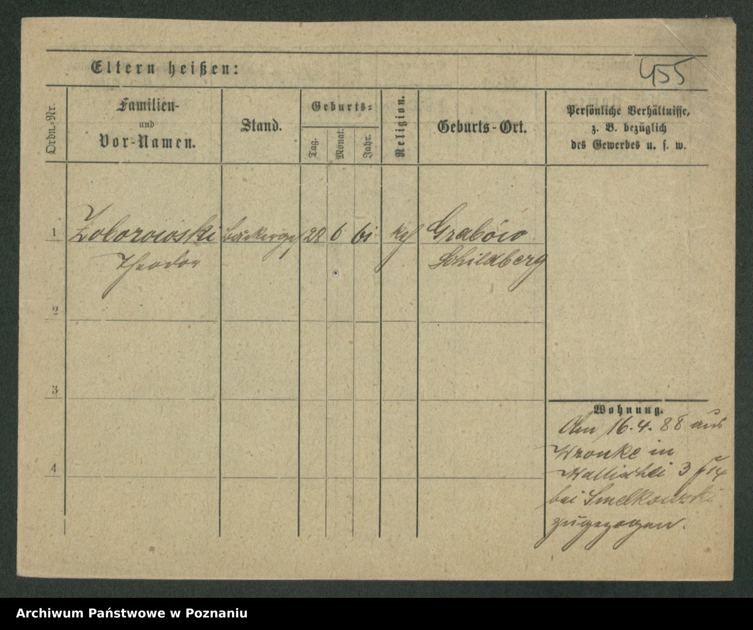 Podgląd karty osobowej dostępny jest po kliknięciu na nazwisko lub ikonkę karty. Można dokonywać powiększenia (ikony na górze) lub przechodzić między kolejnymi skanami (strzałki po bokach).