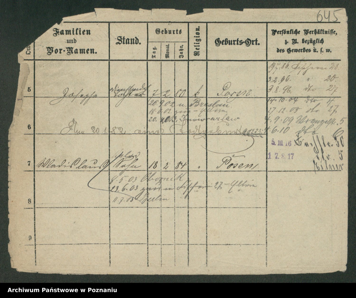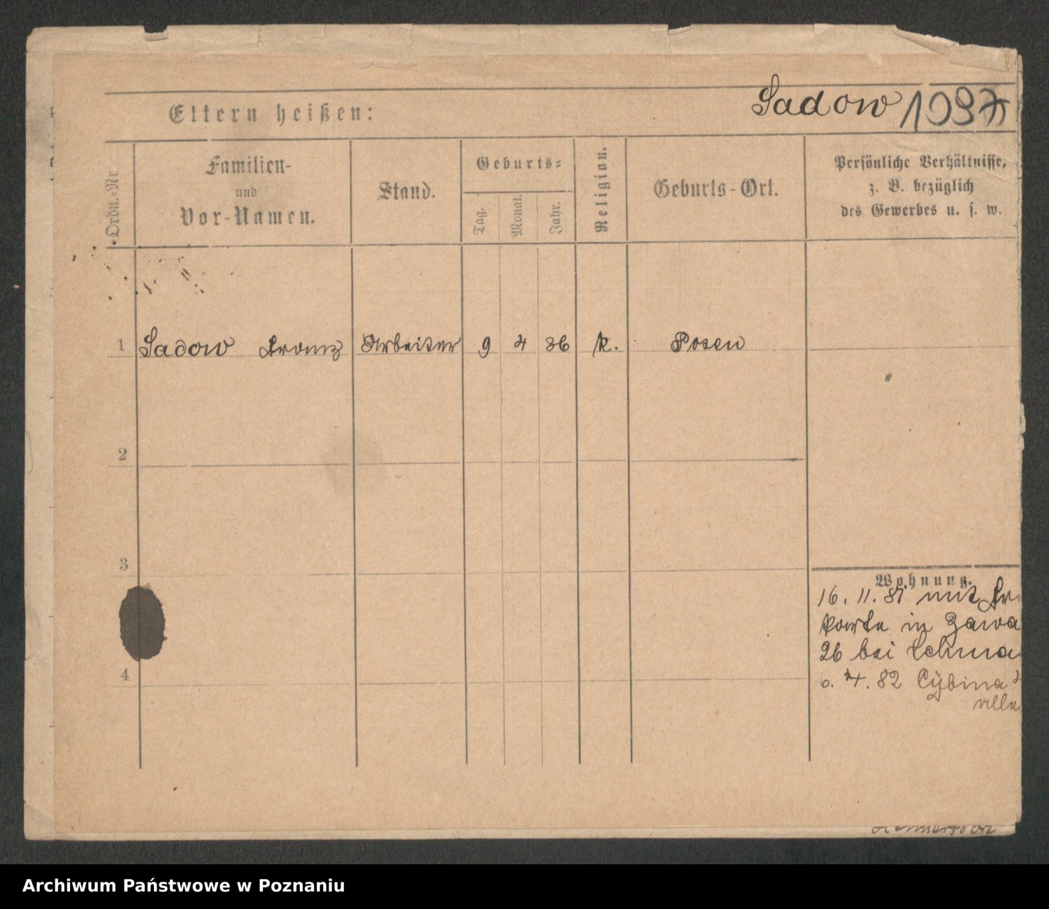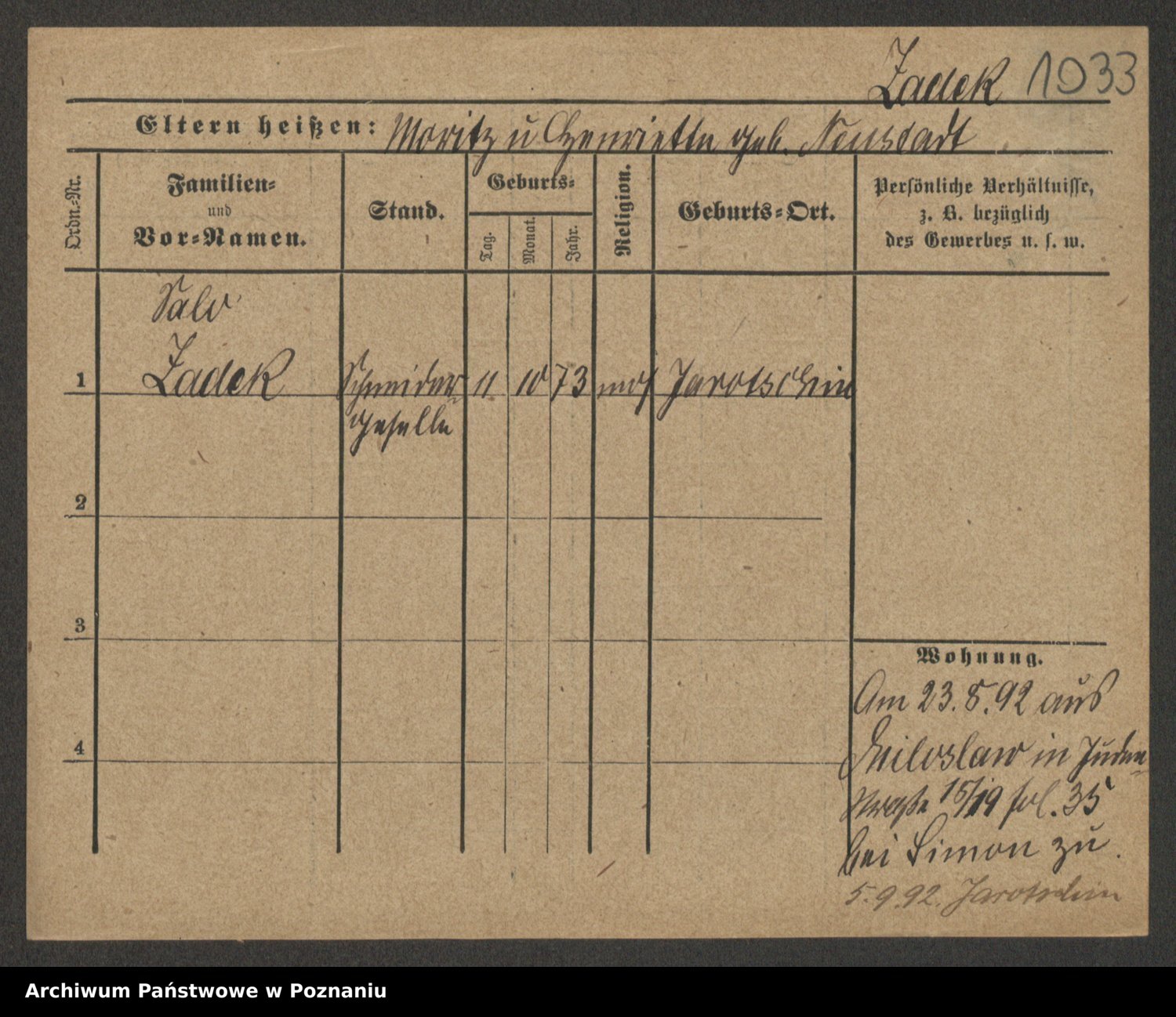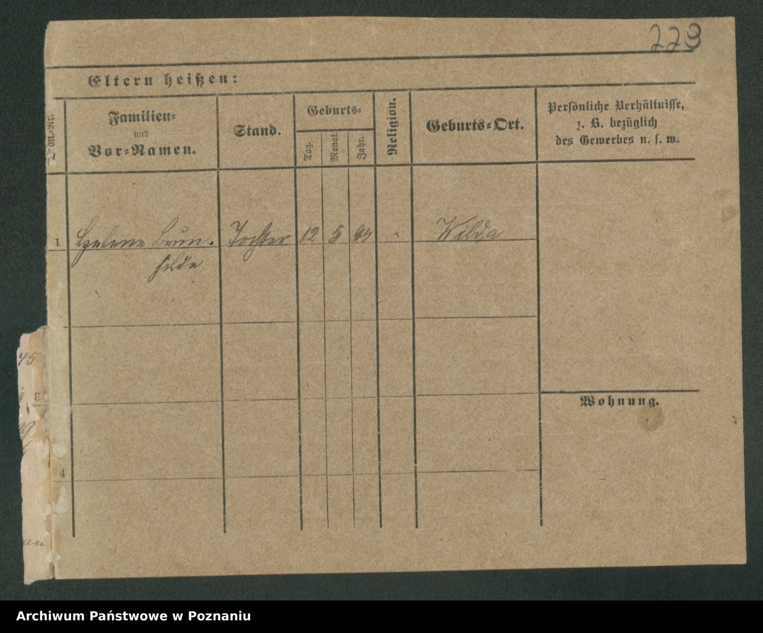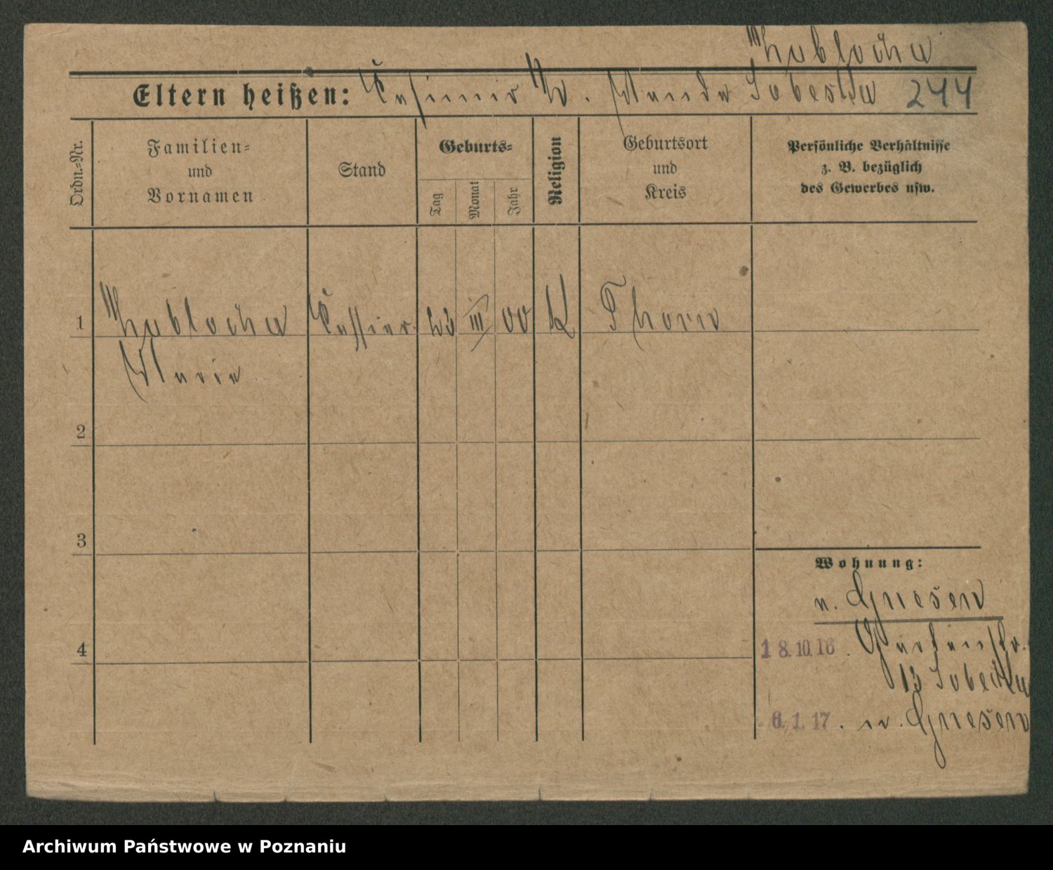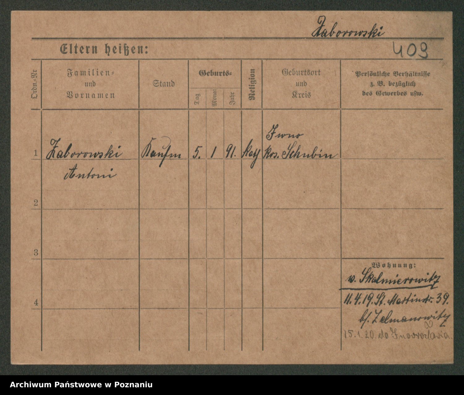 Podgląd karty osobowej dostępny jest po kliknięciu na nazwisko lub ikonkę karty. Można dokonywać powiększenia (ikony na górze) lub przechodzić między kolejnymi skanami (strzałki po bokach).