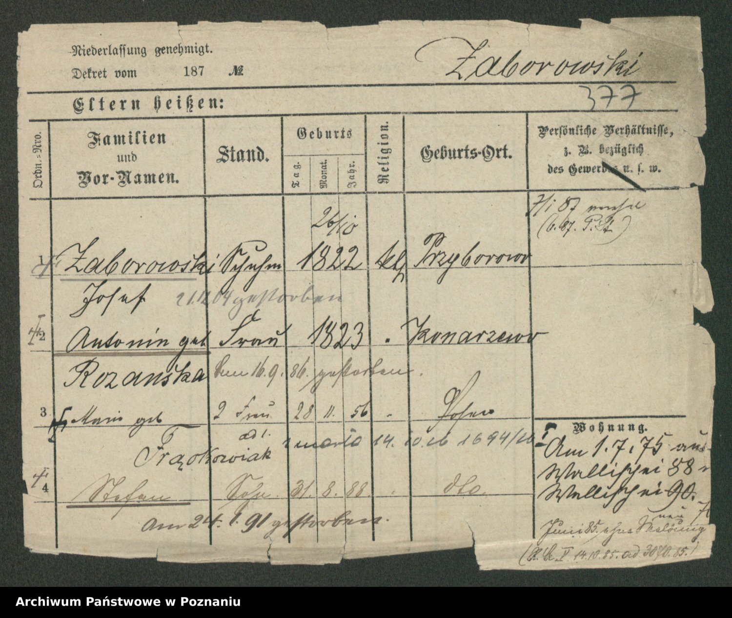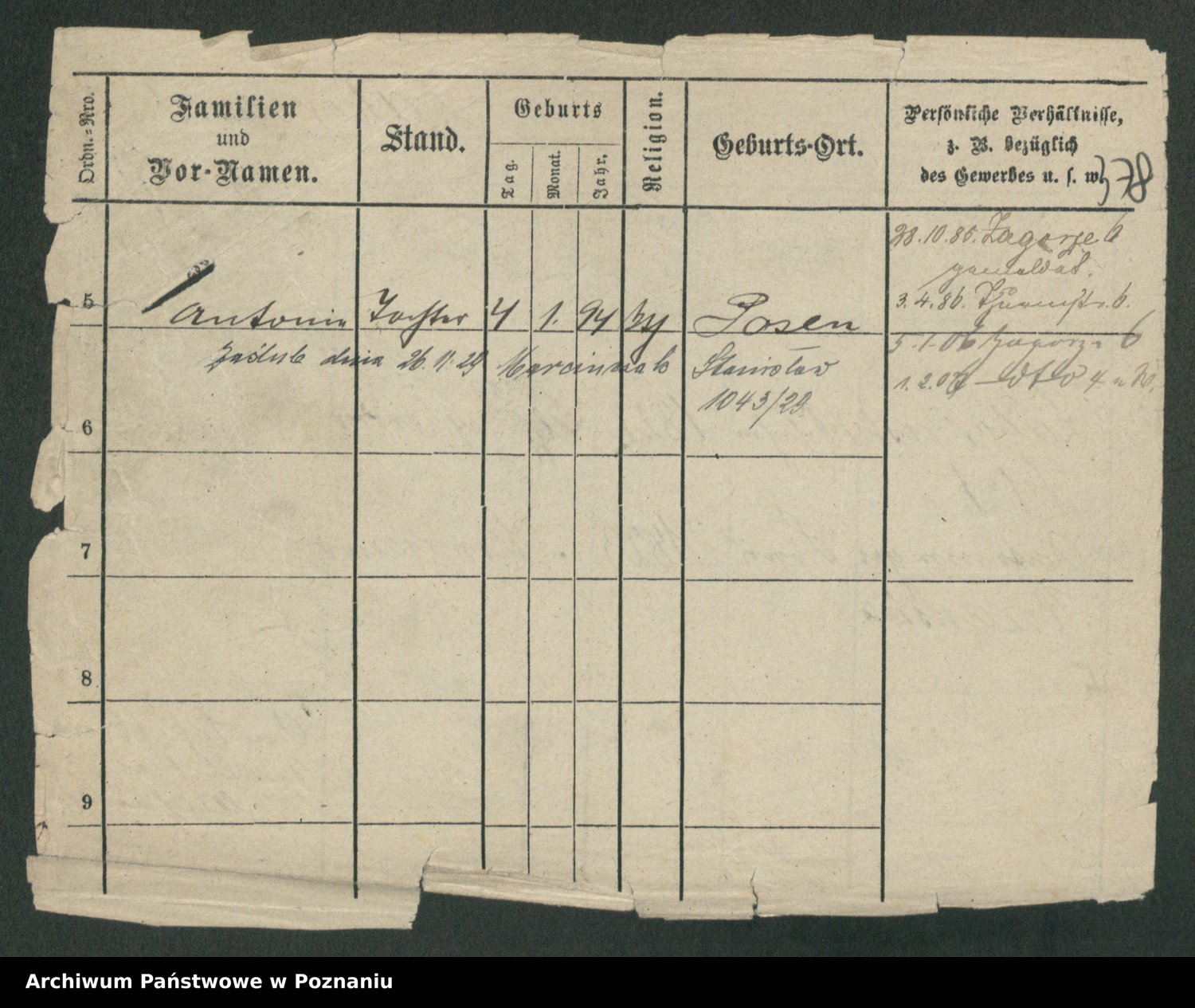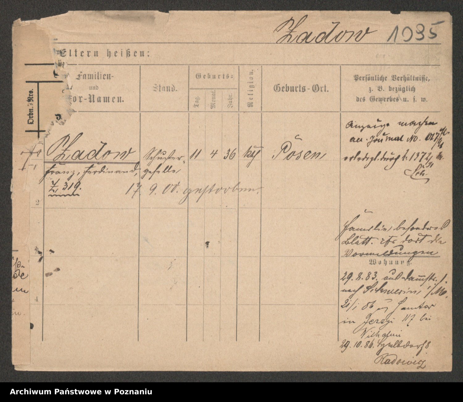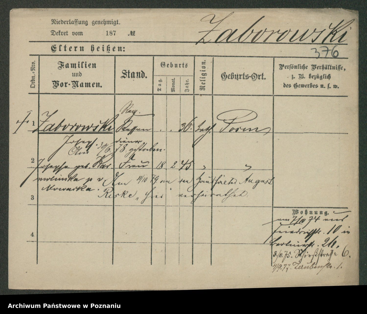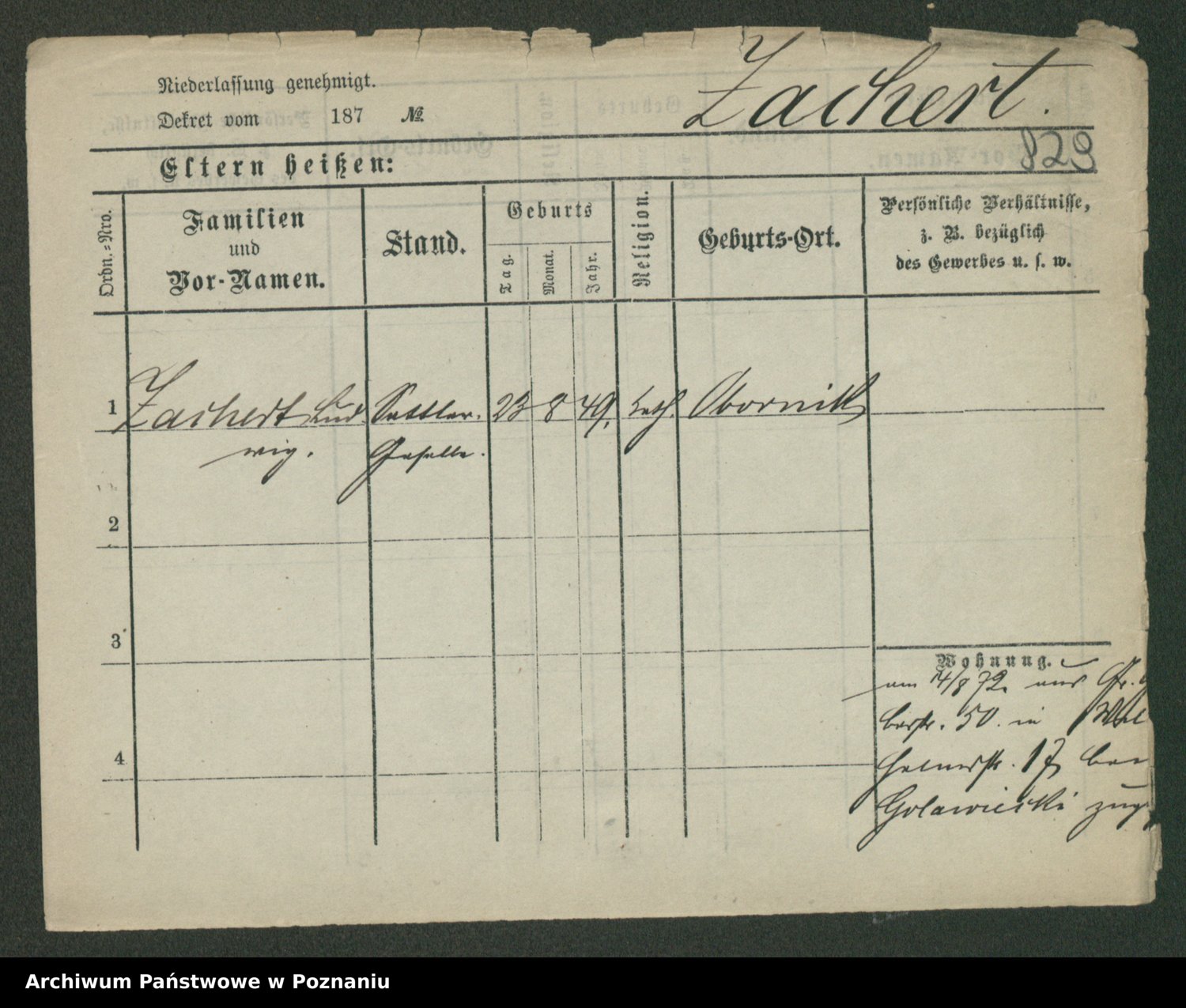 Podgląd karty osobowej dostępny jest po kliknięciu na nazwisko lub ikonkę karty. Można dokonywać powiększenia (ikony na górze) lub przechodzić między kolejnymi skanami (strzałki po bokach).