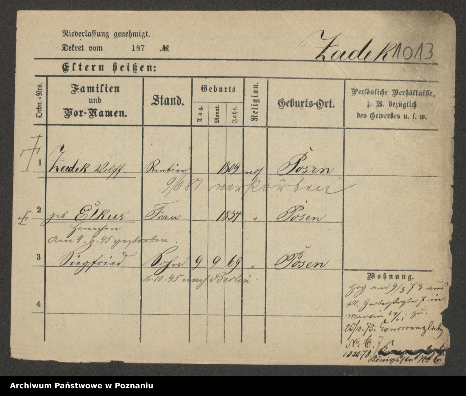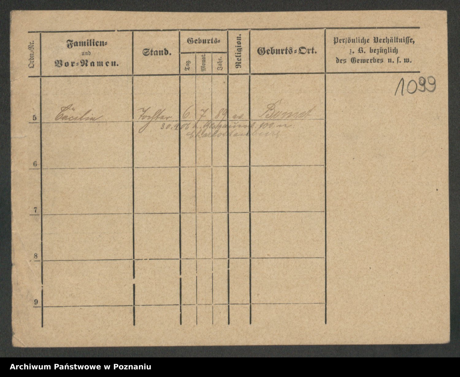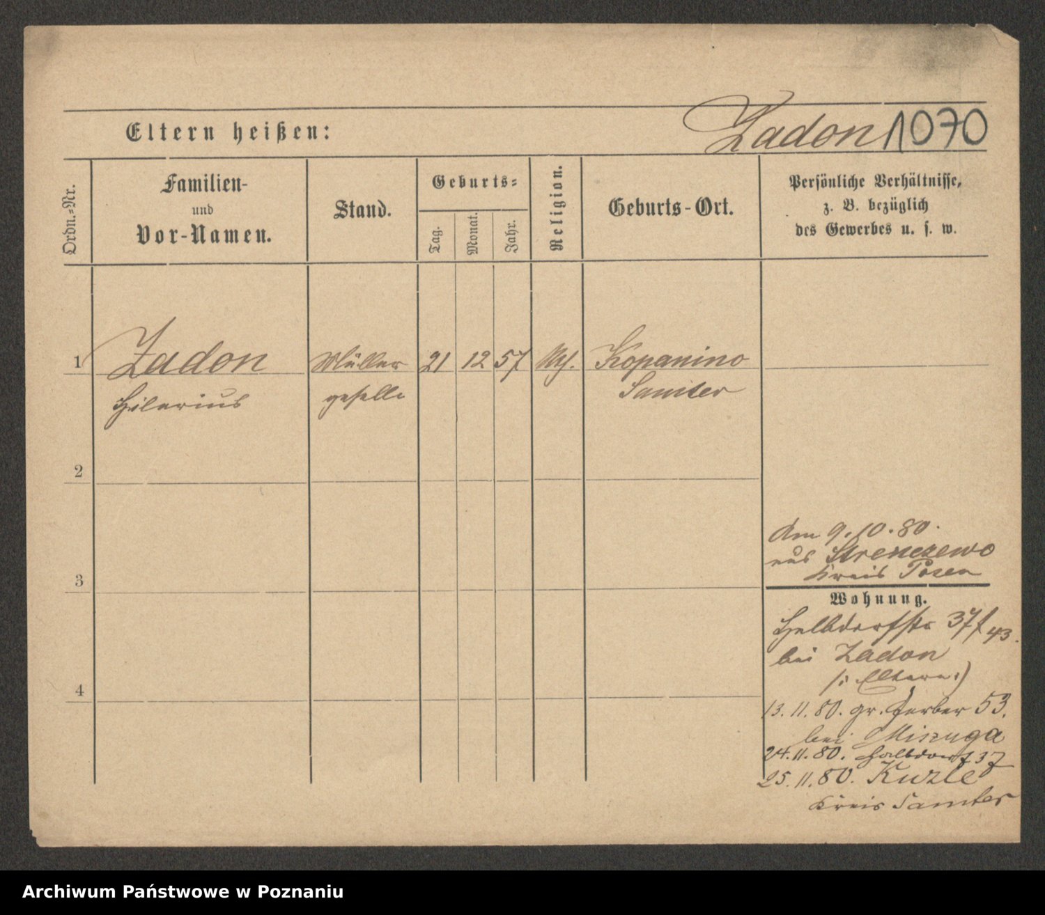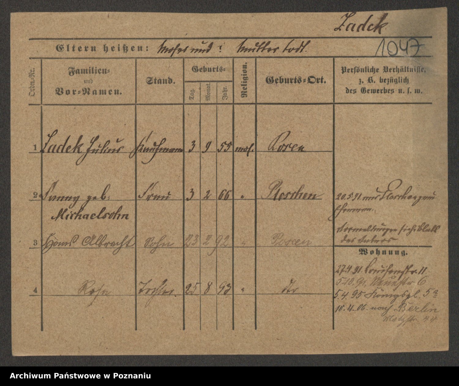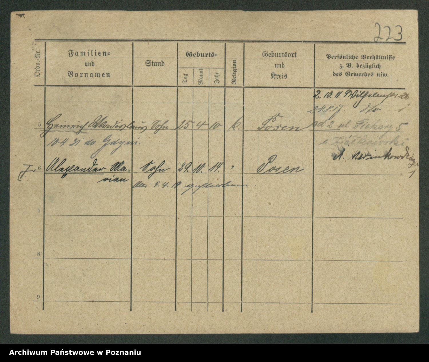 Podgląd karty osobowej dostępny jest po kliknięciu na nazwisko lub ikonkę karty. Można dokonywać powiększenia (ikony na górze) lub przechodzić między kolejnymi skanami (strzałki po bokach).