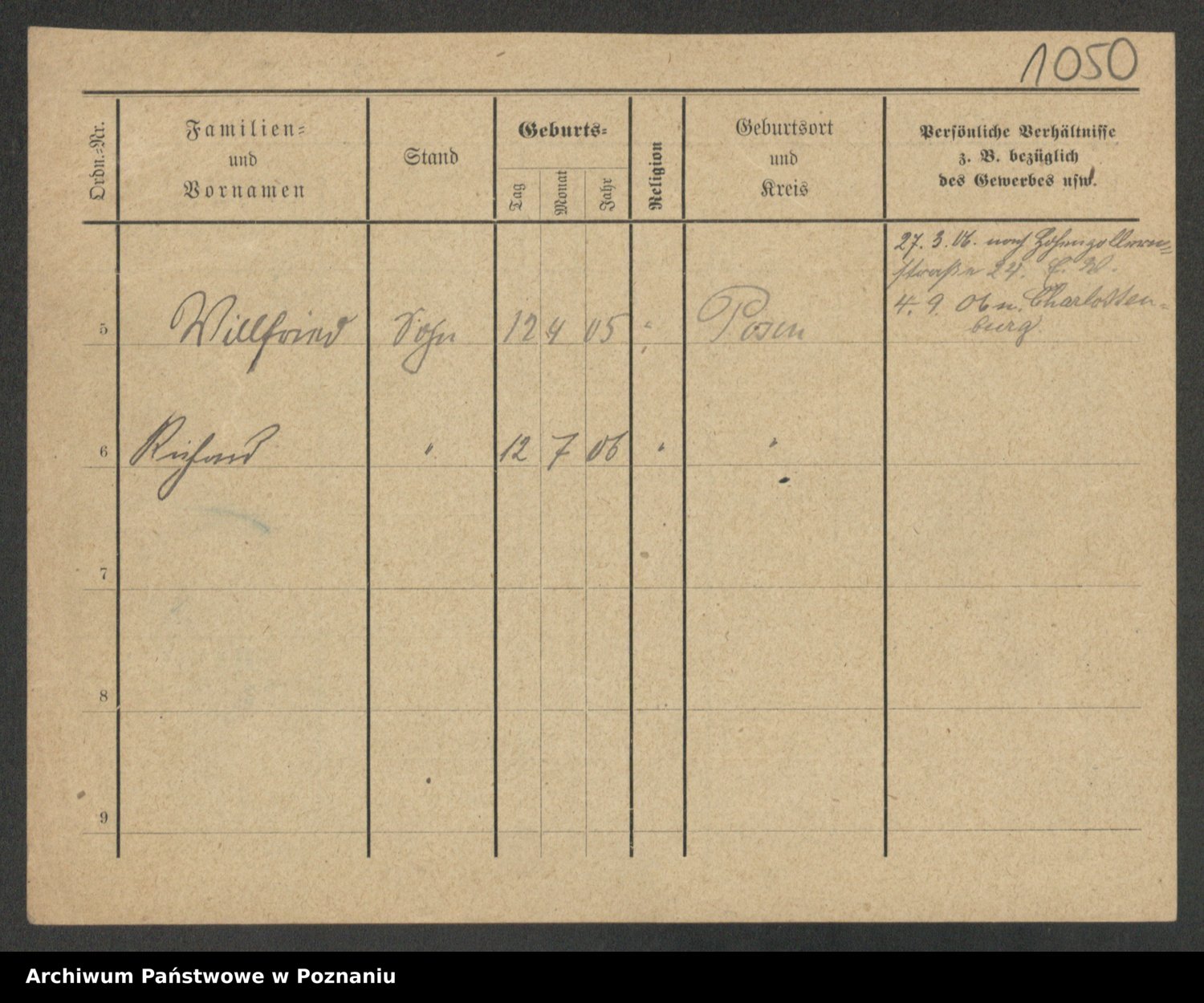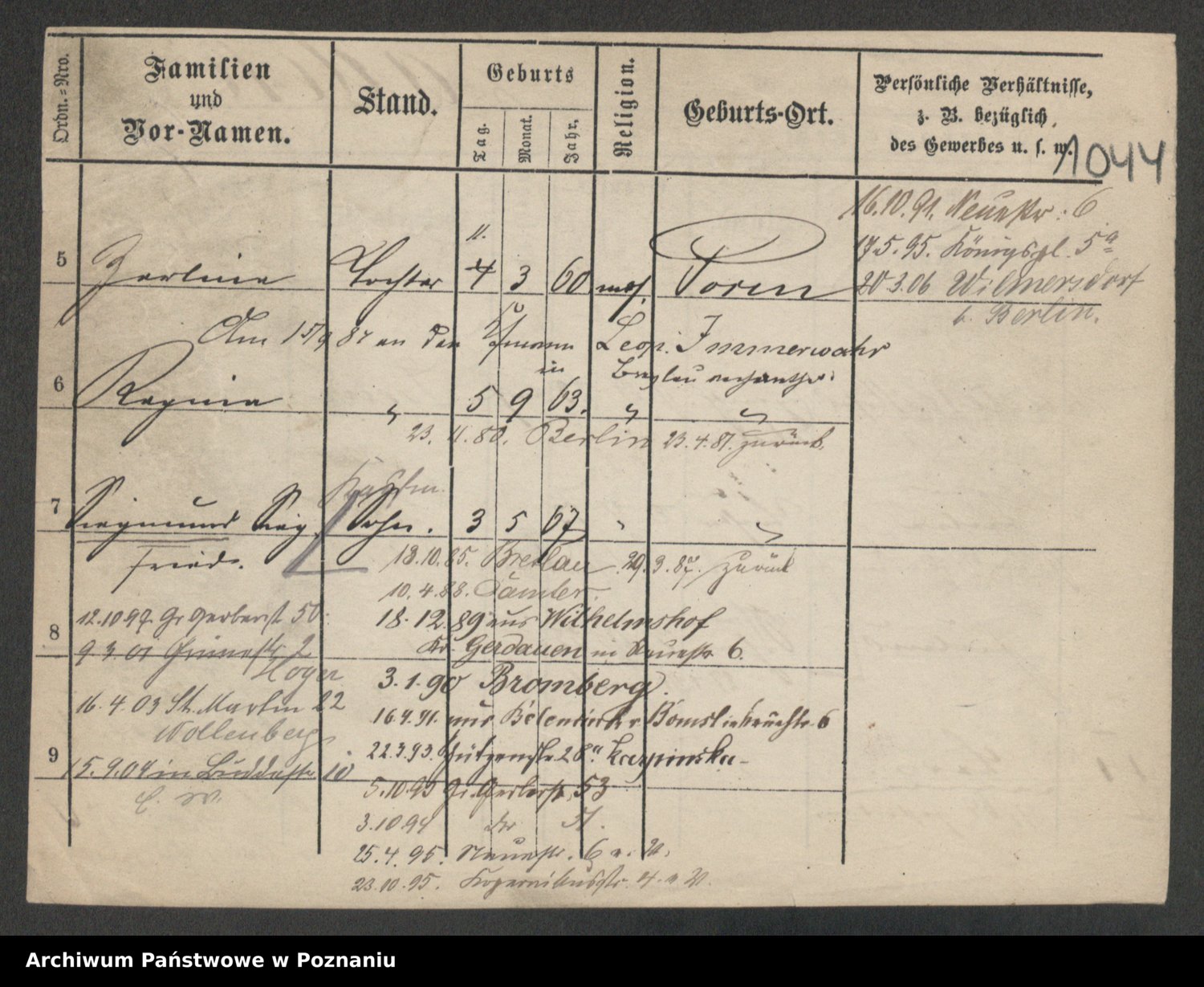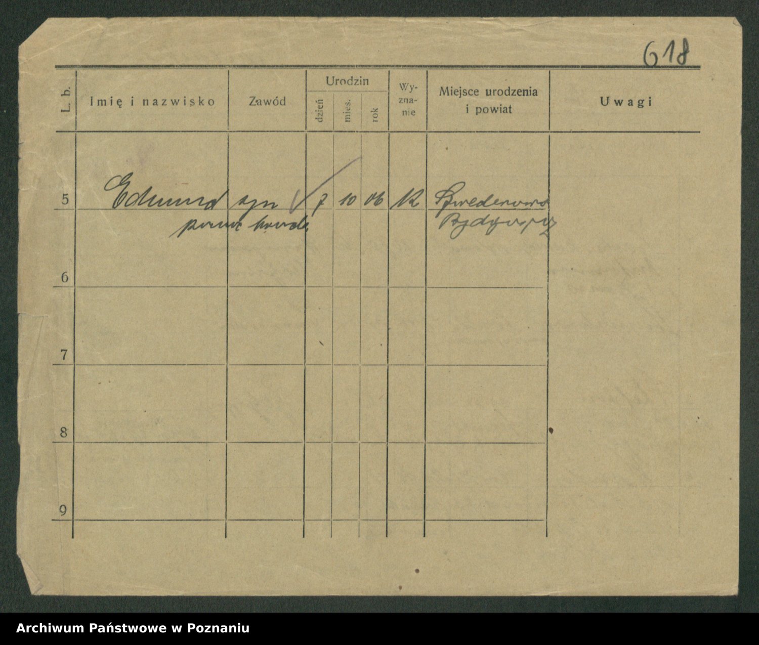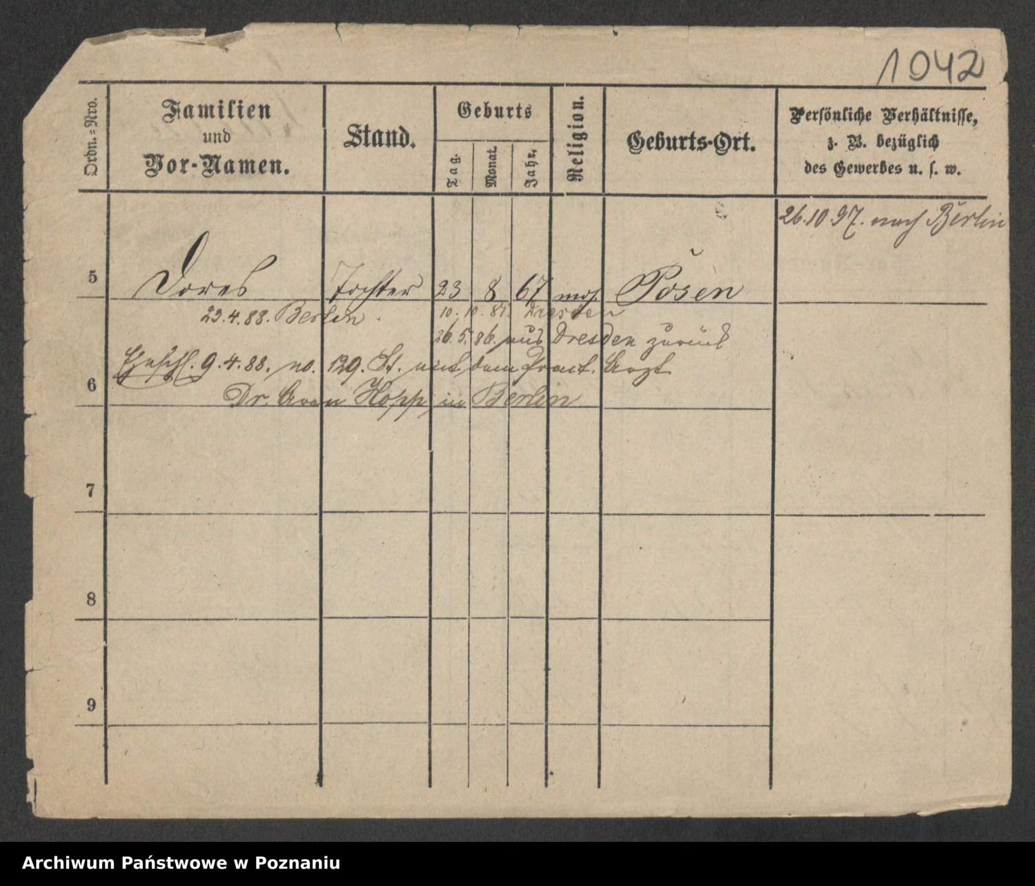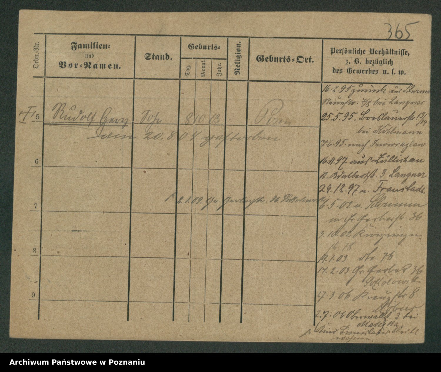 Podgląd karty osobowej dostępny jest po kliknięciu na nazwisko lub ikonkę karty. Można dokonywać powiększenia (ikony na górze) lub przechodzić między kolejnymi skanami (strzałki po bokach).