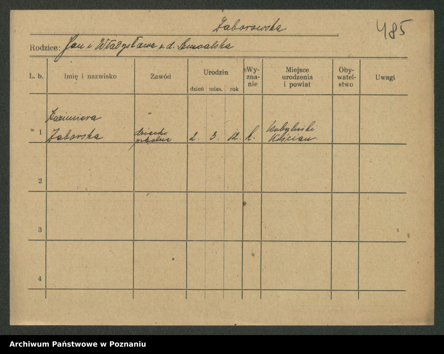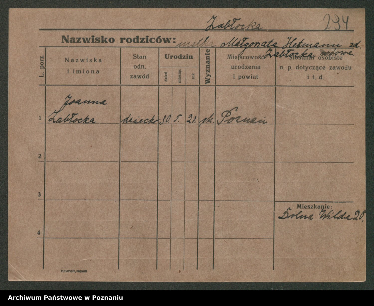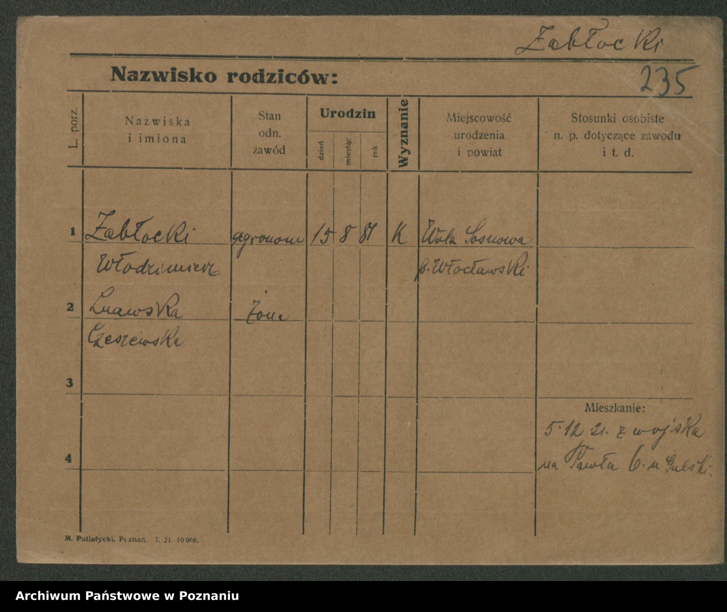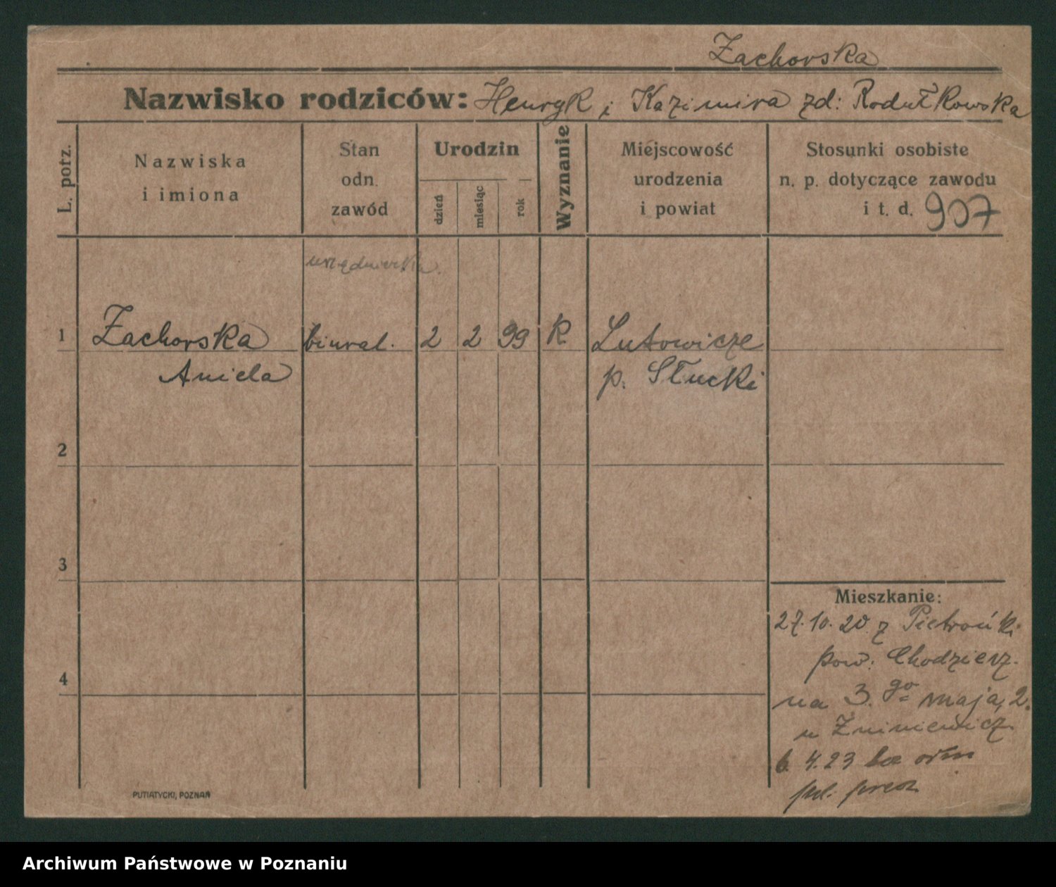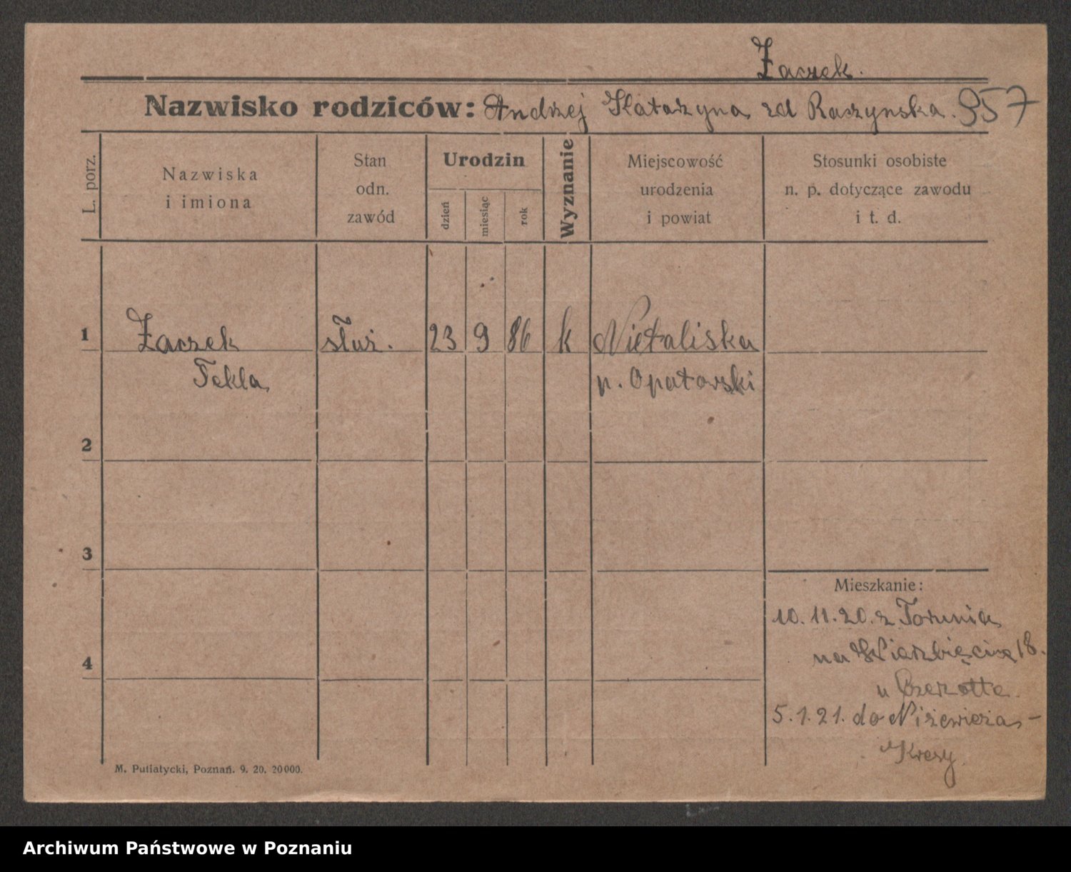 Zadrożyński z.d. Tomaszewska, Klara