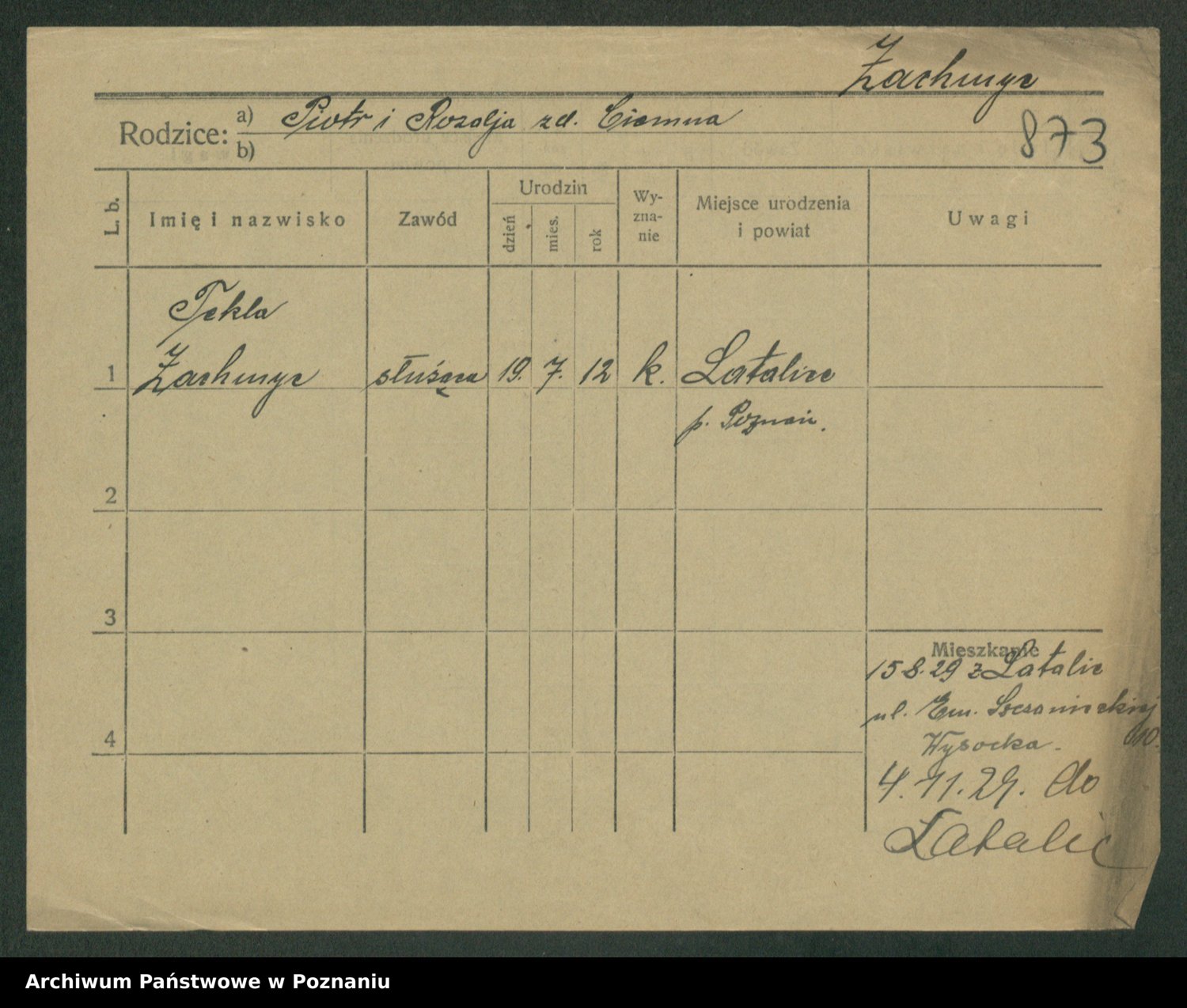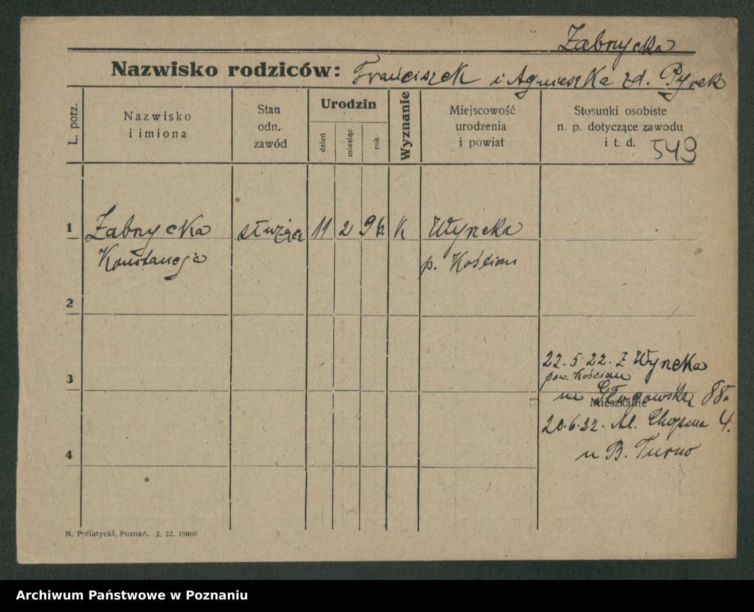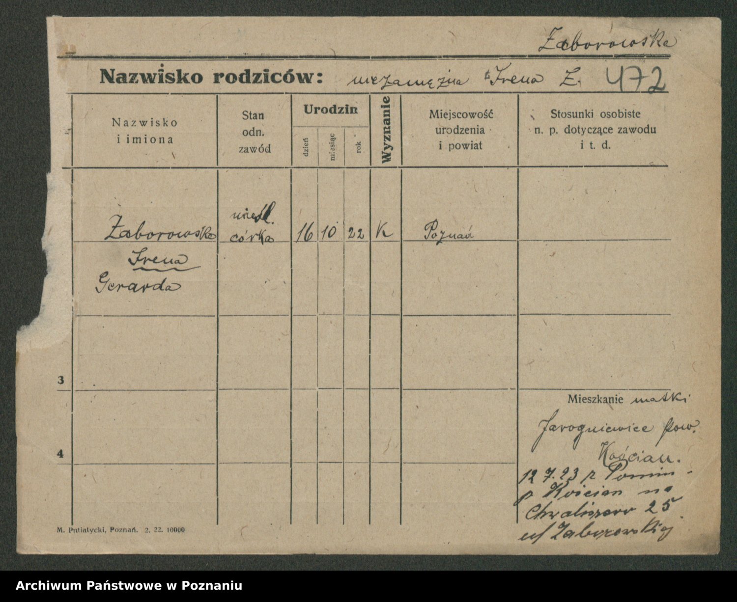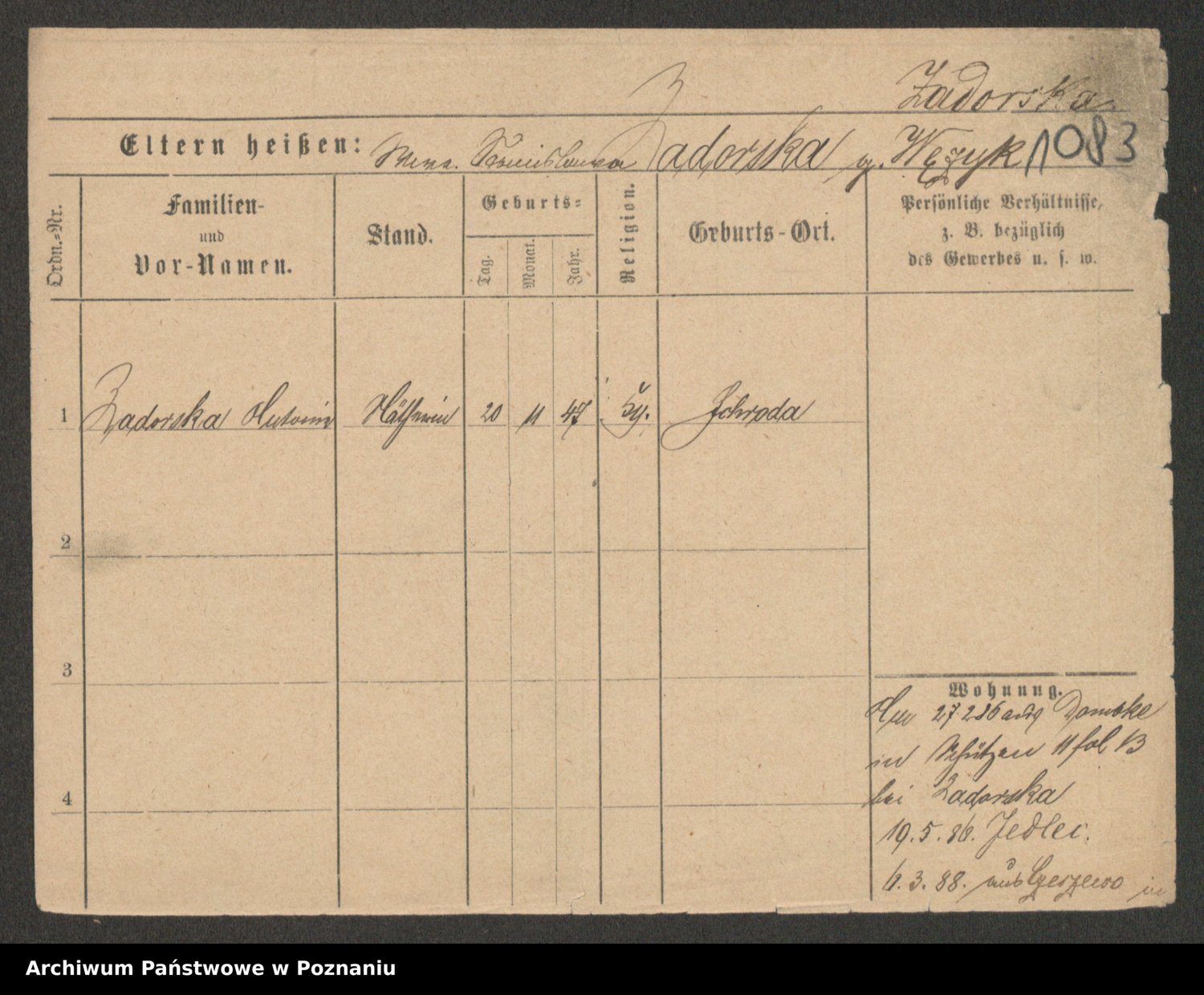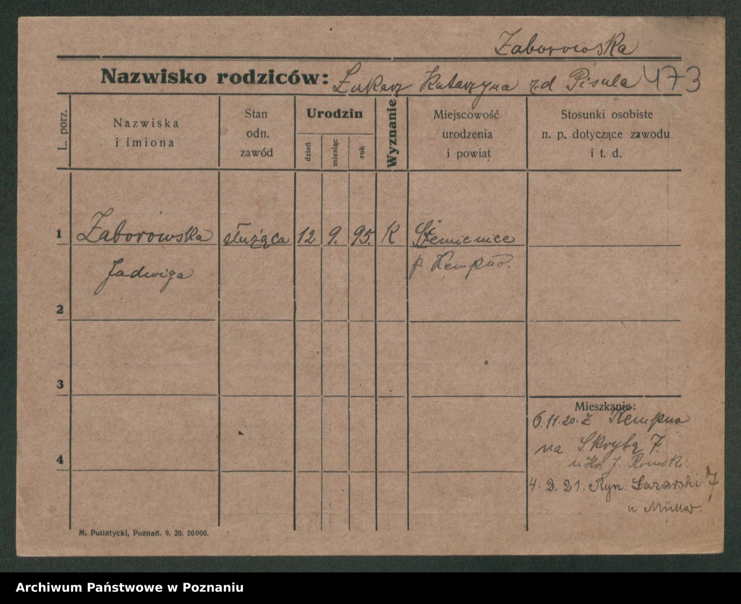 Zadrożyński z.d. Tomaszewska, Klara