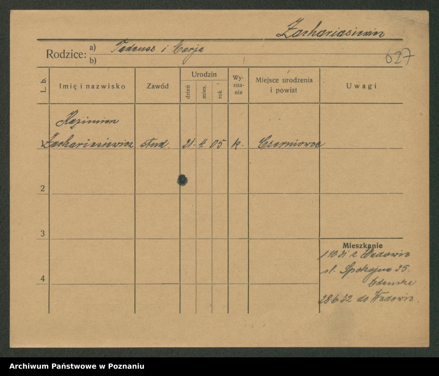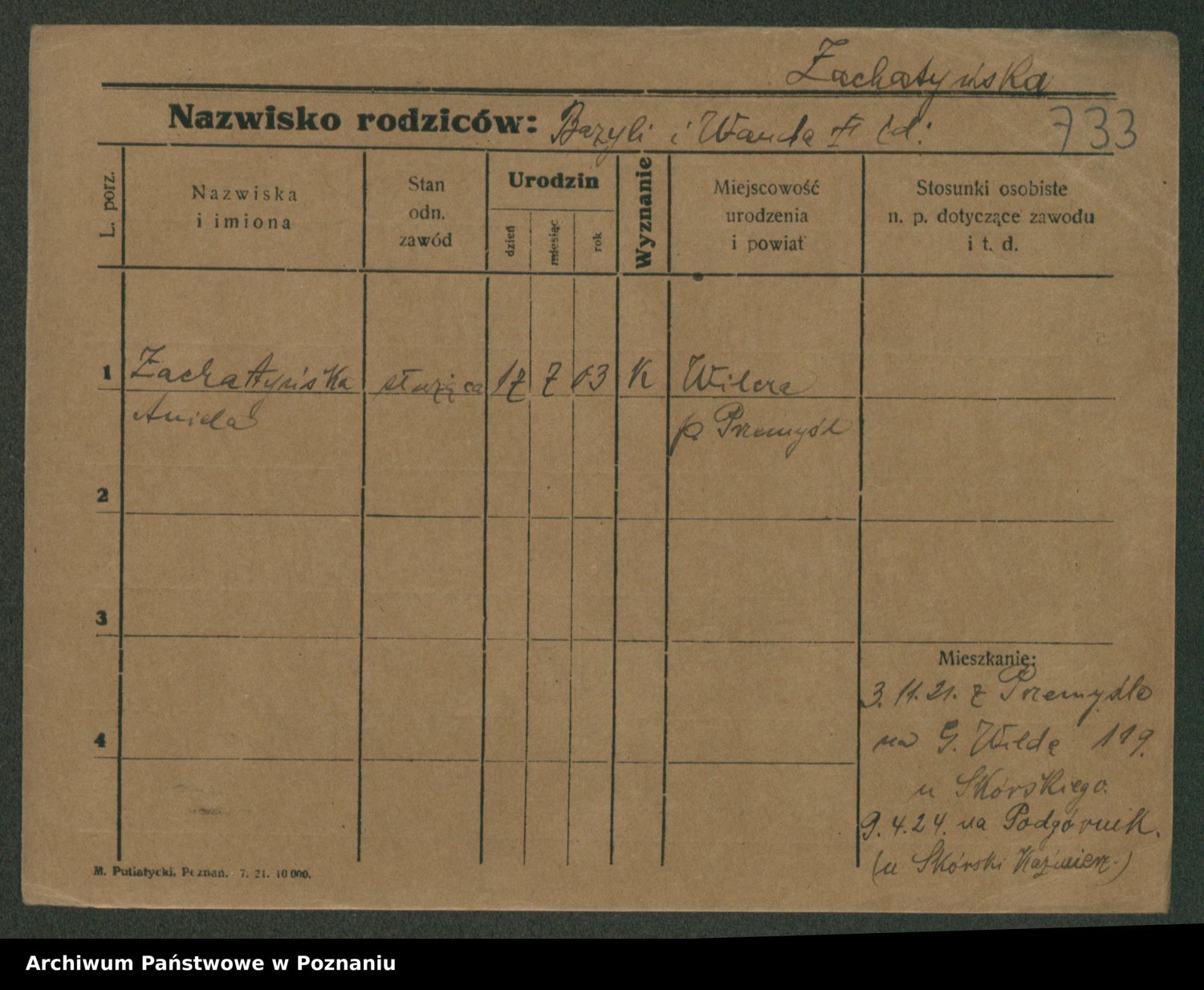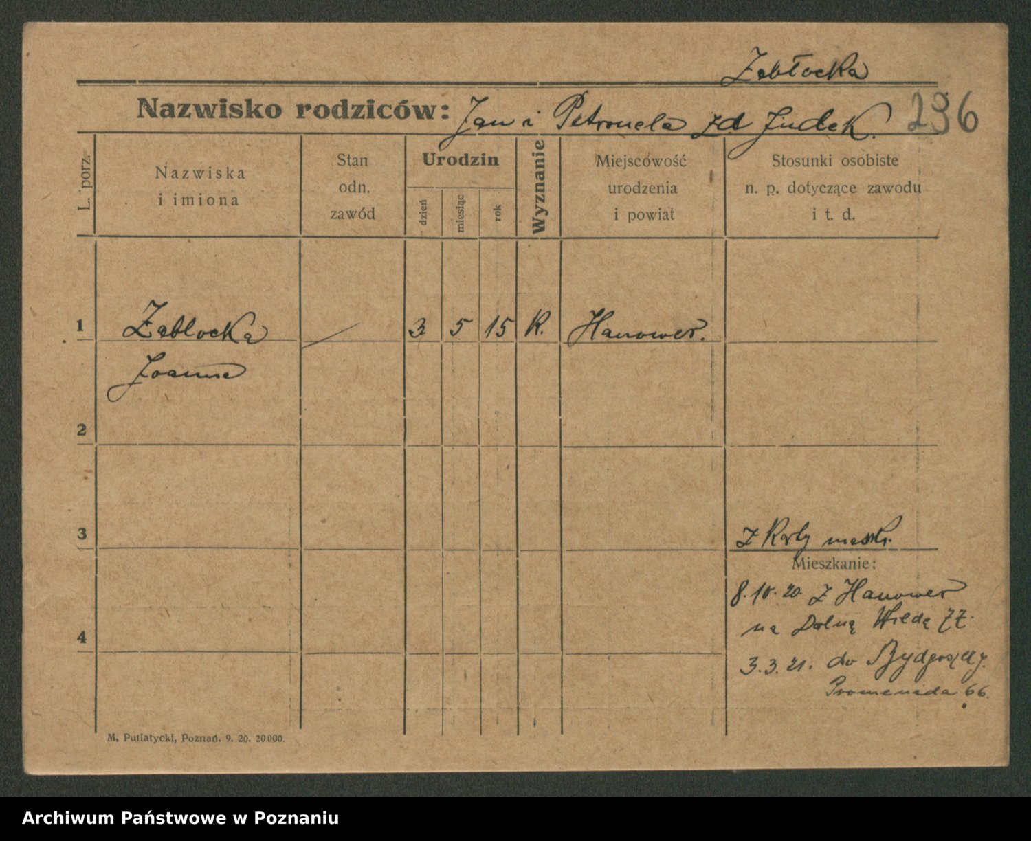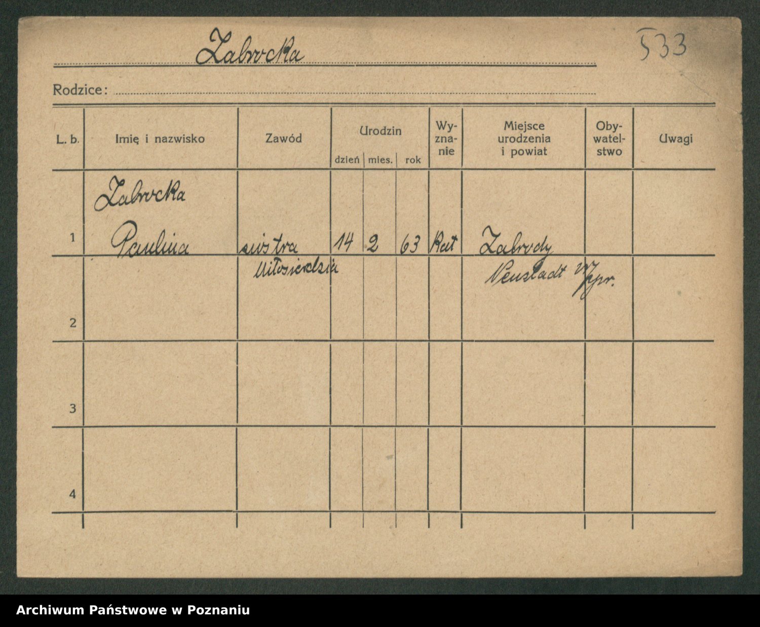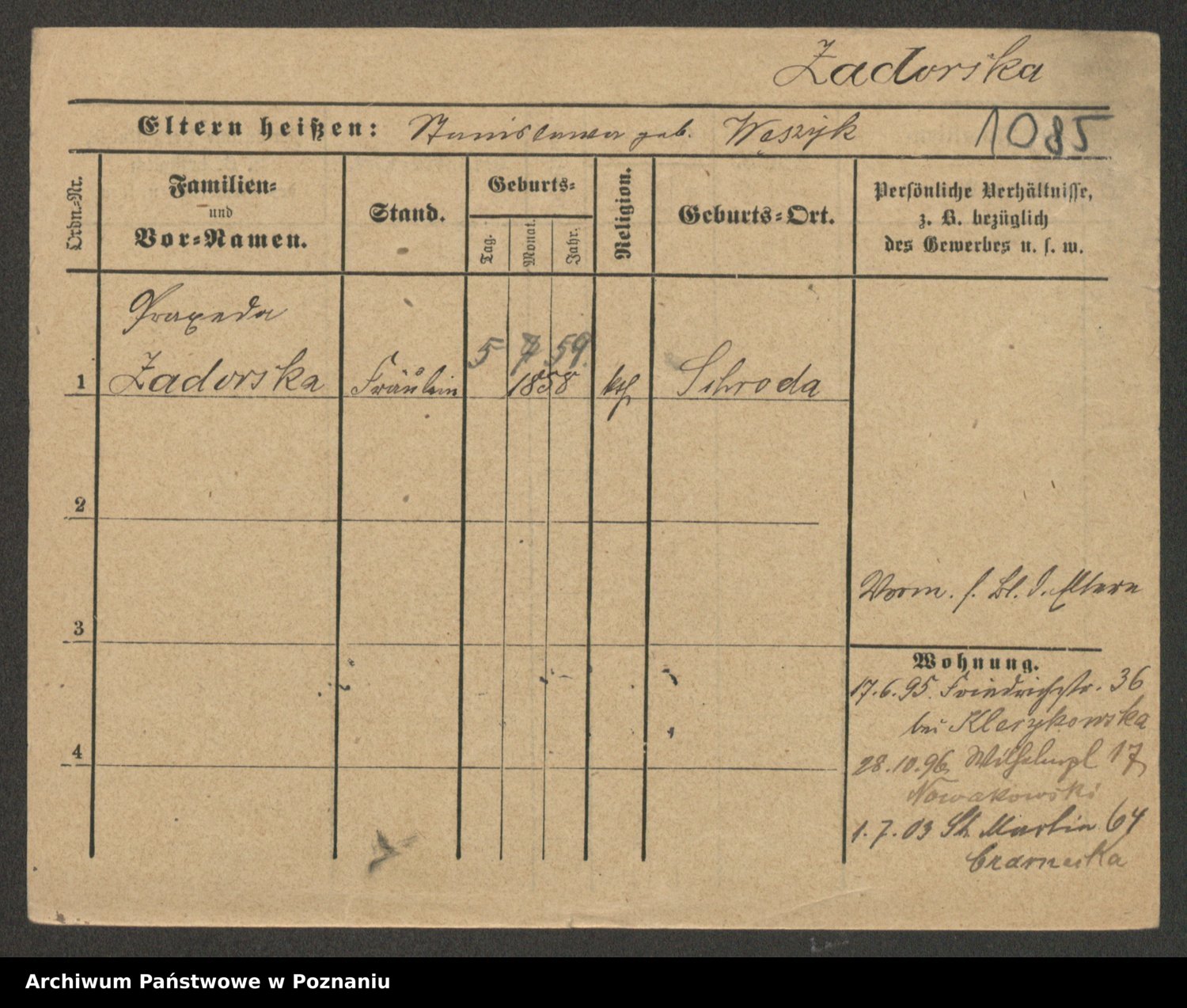 Zadrożyński z.d. Tomaszewska, Klara