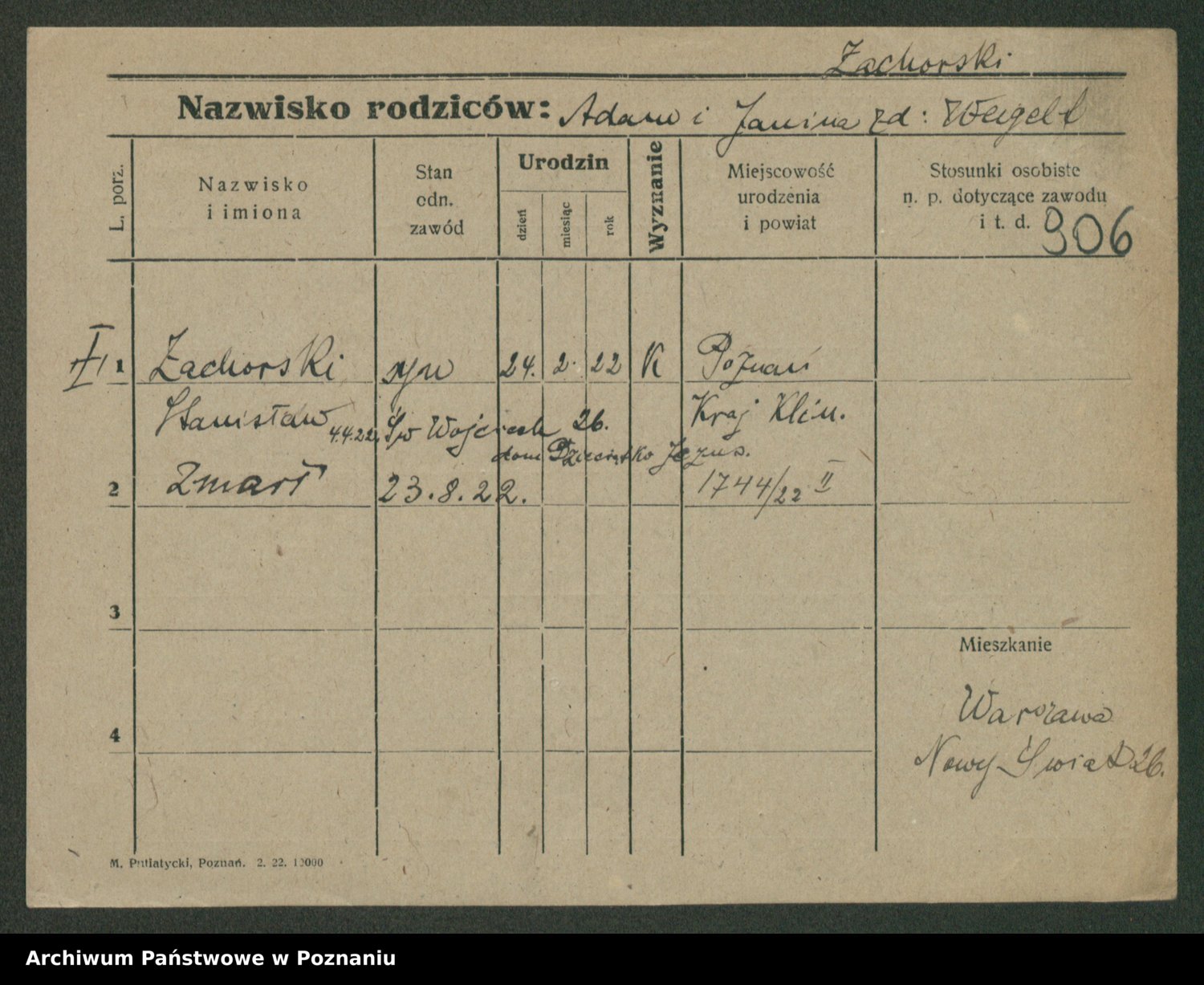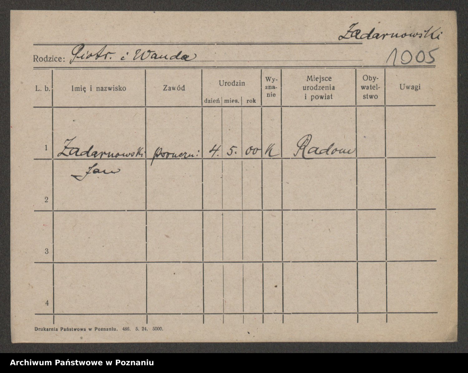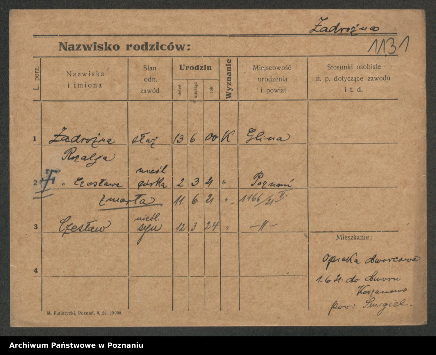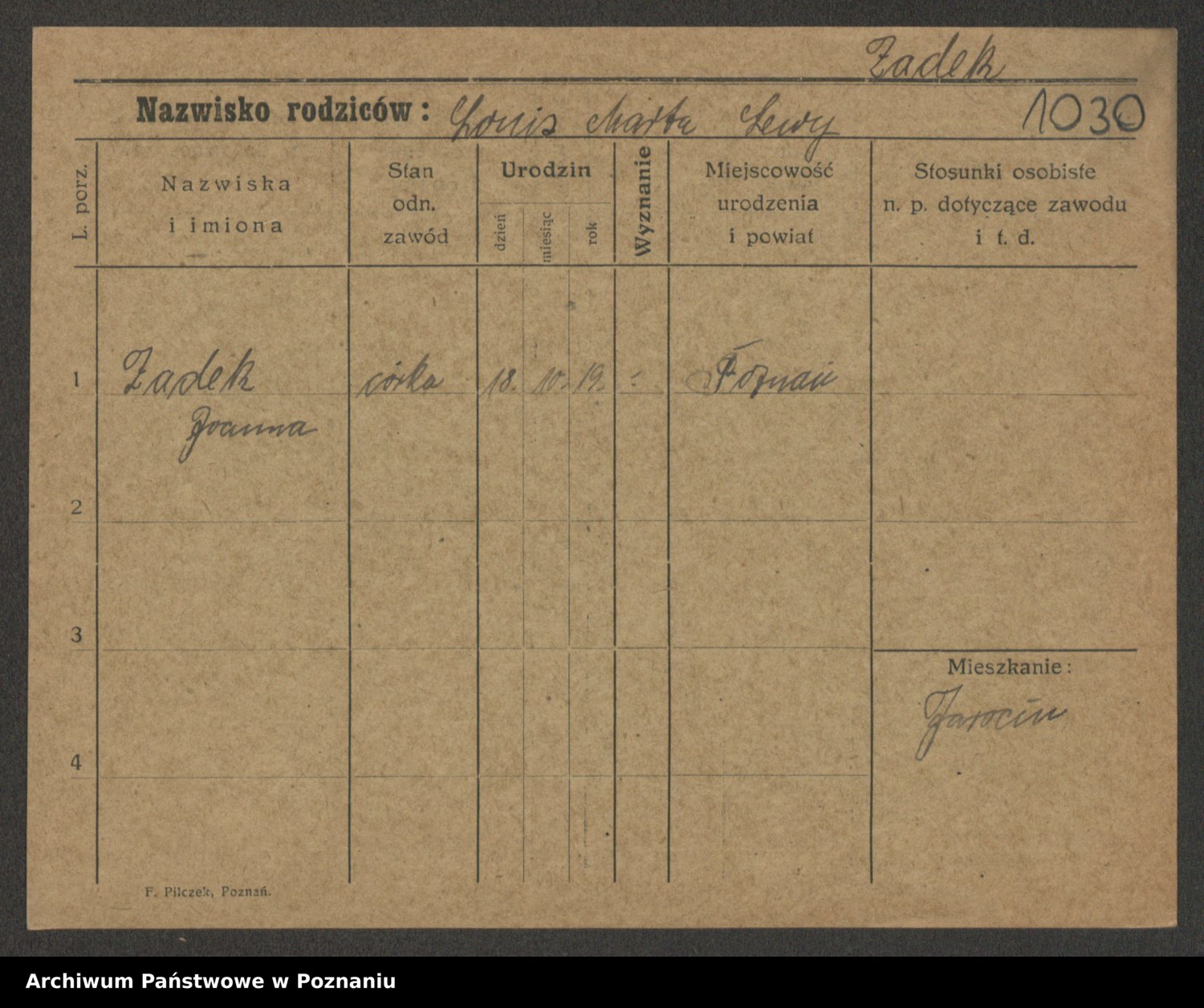 Zadrożyński z.d. Tomaszewska, Klara