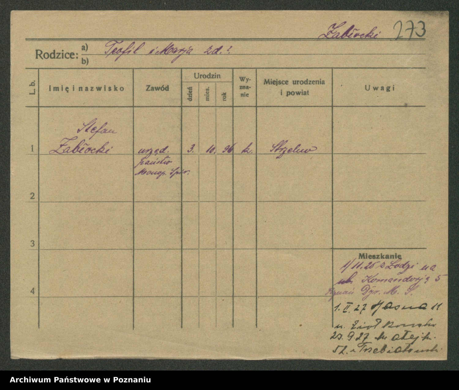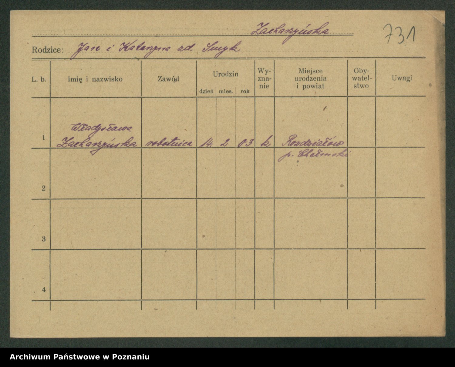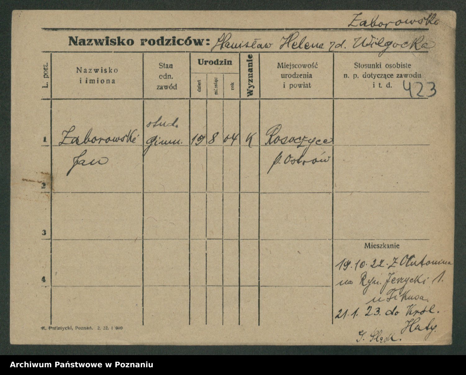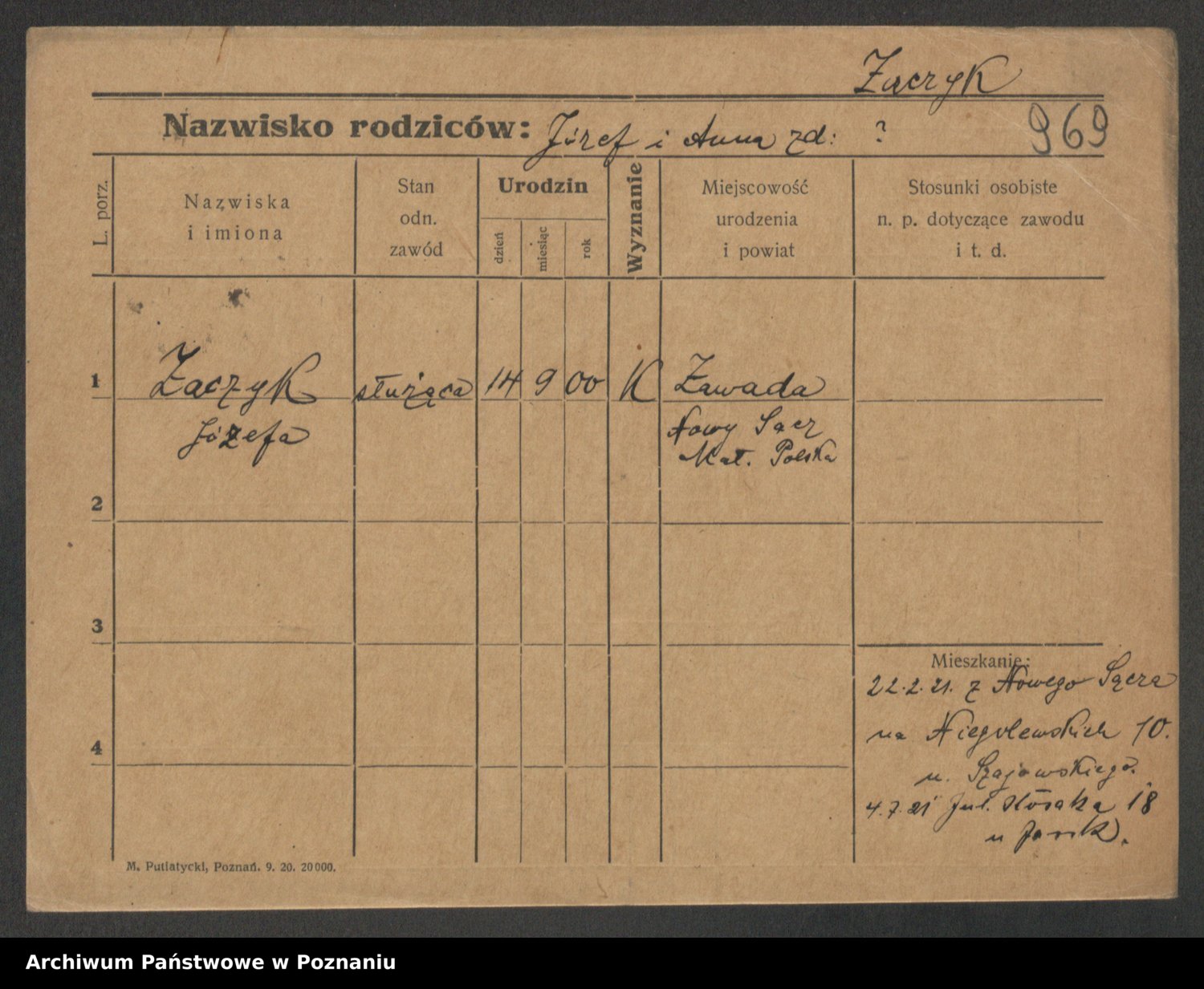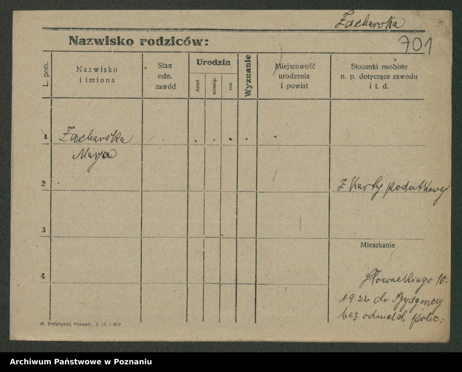 Zadrożyński z.d. Tomaszewska, Klara