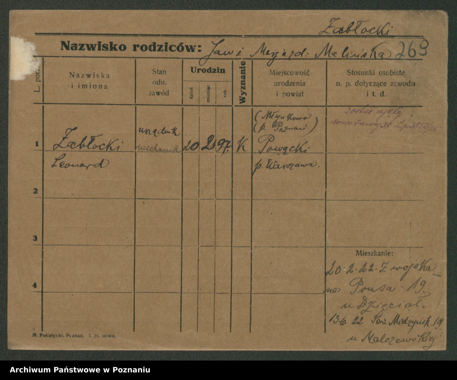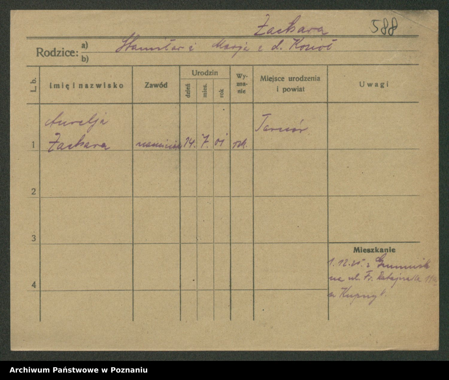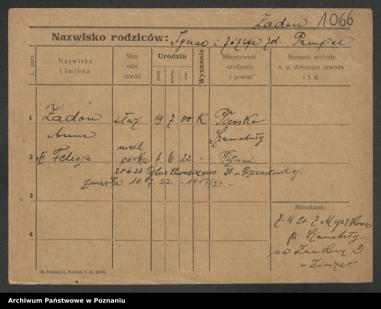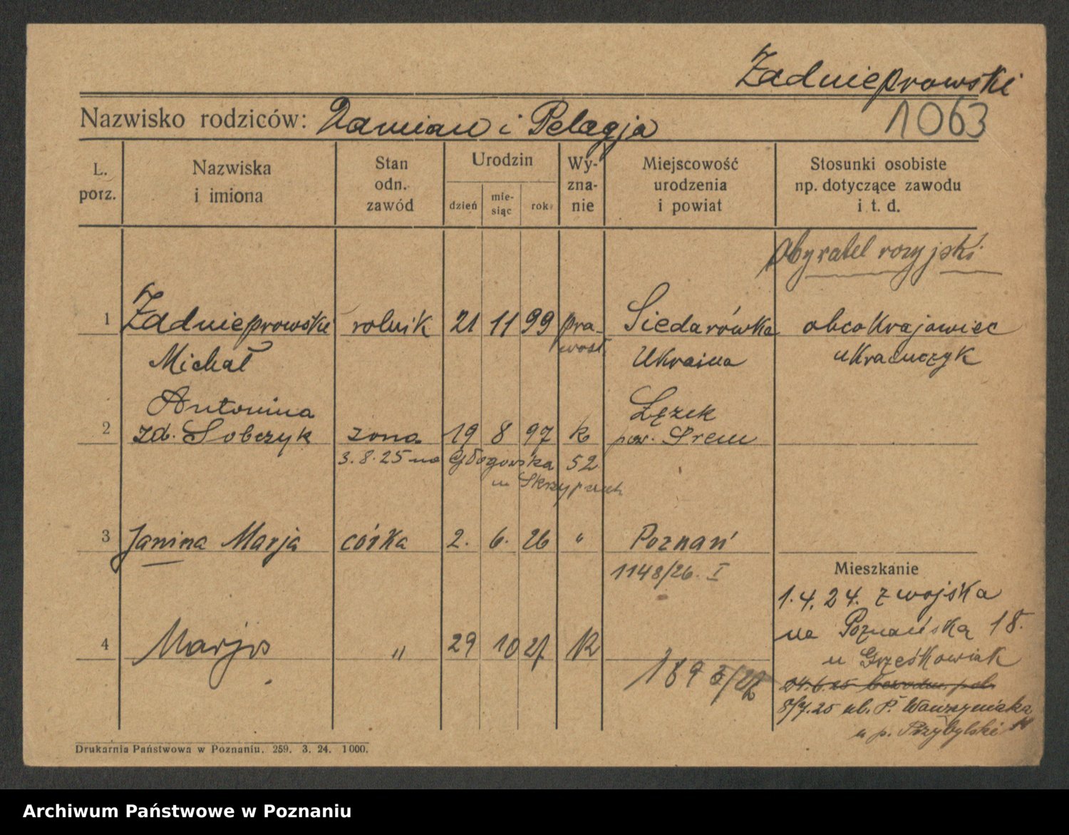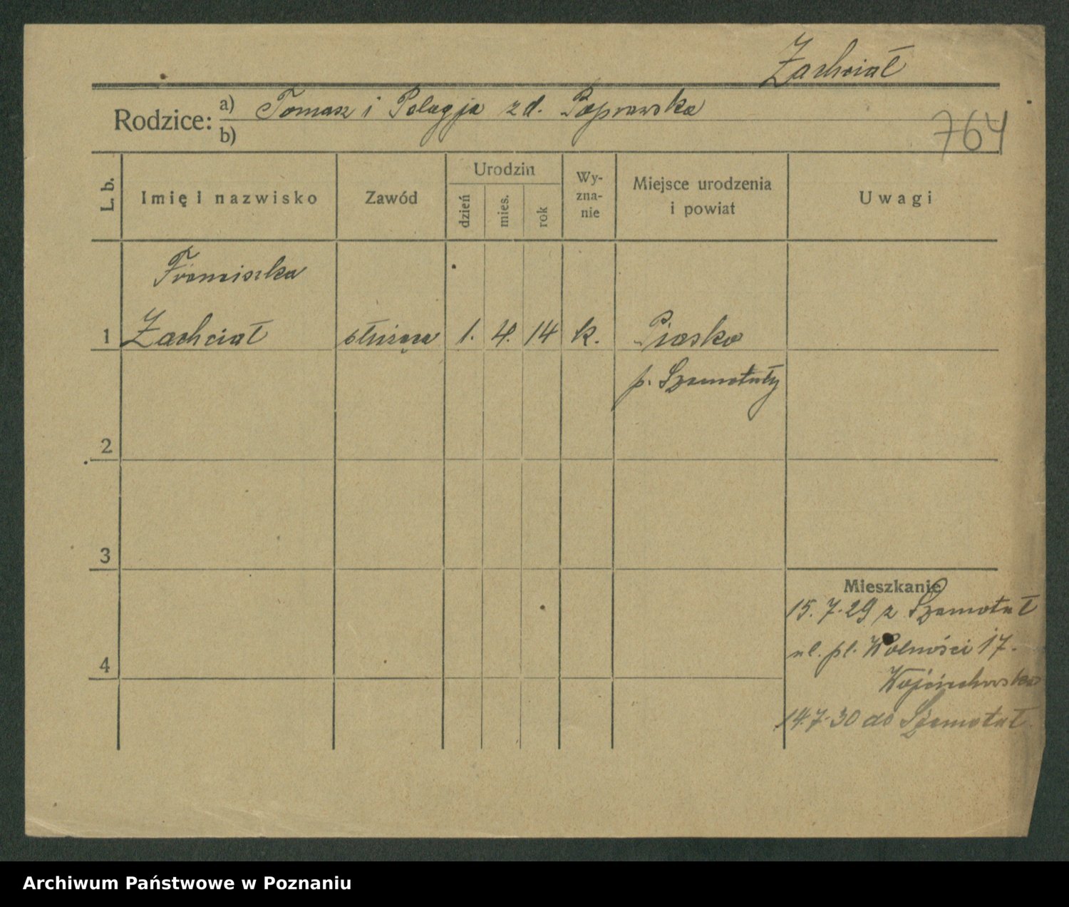Zadrożyński z.d. Tomaszewska, Klara