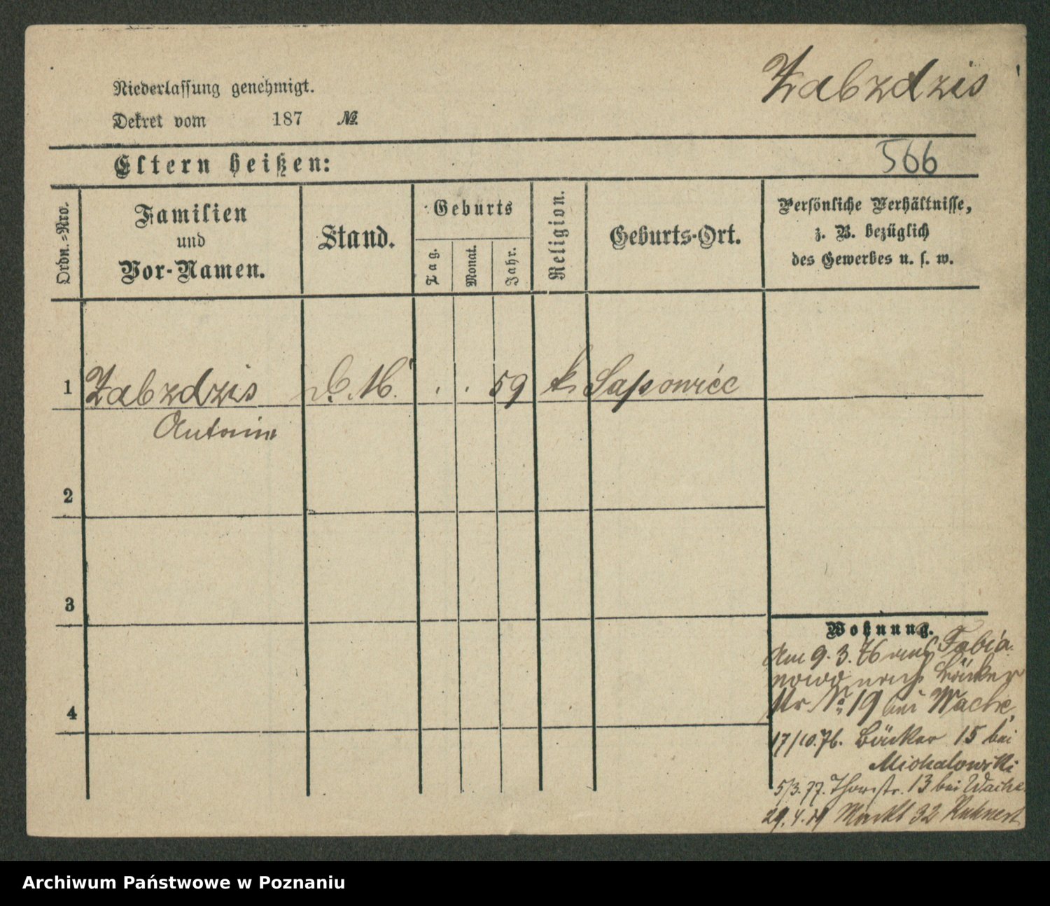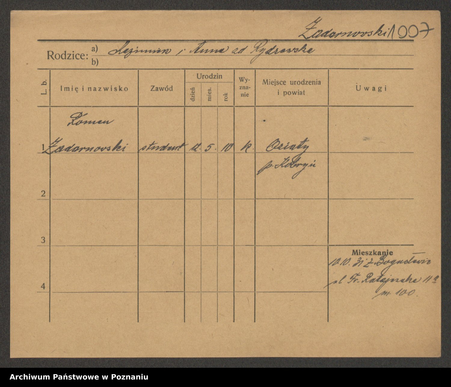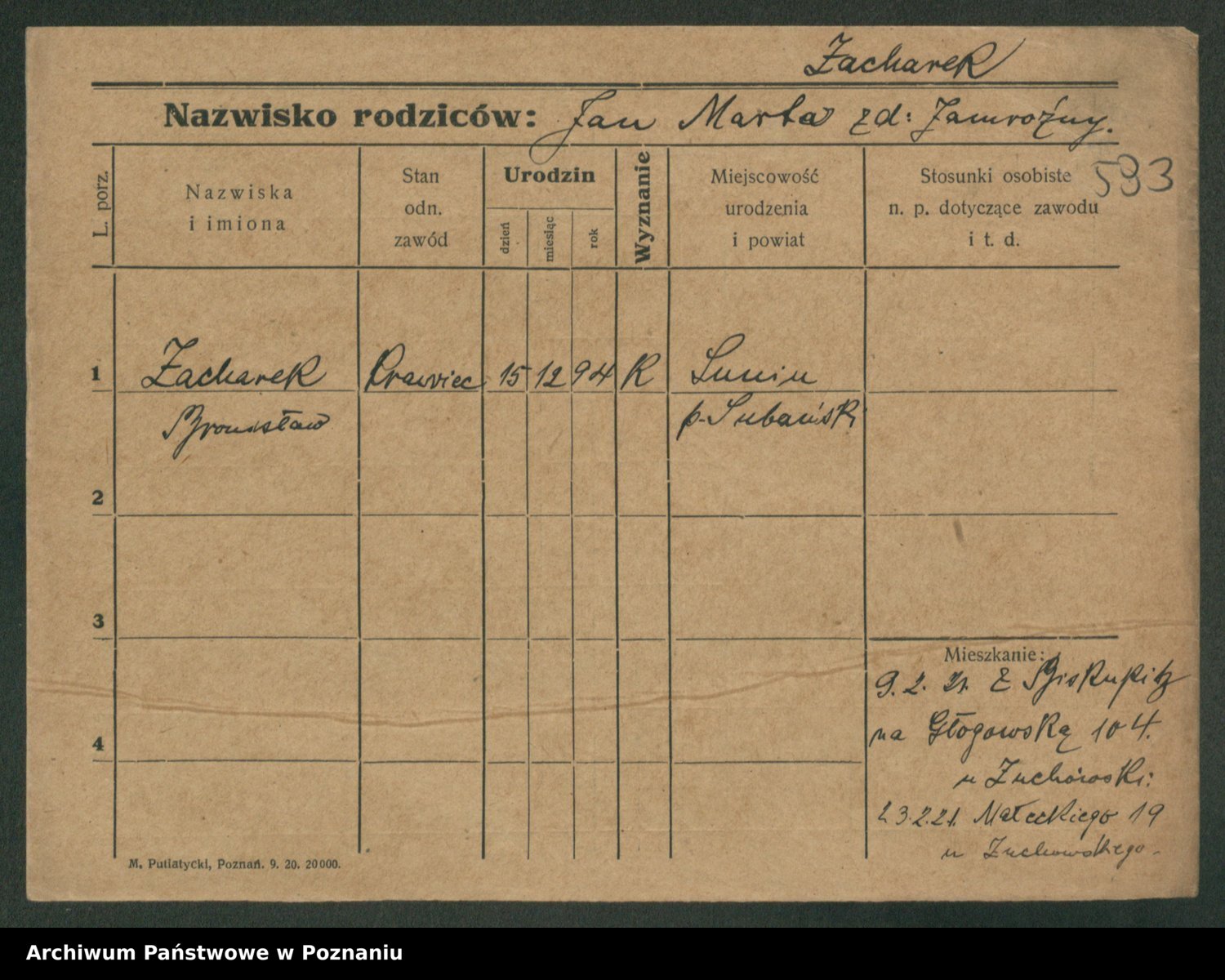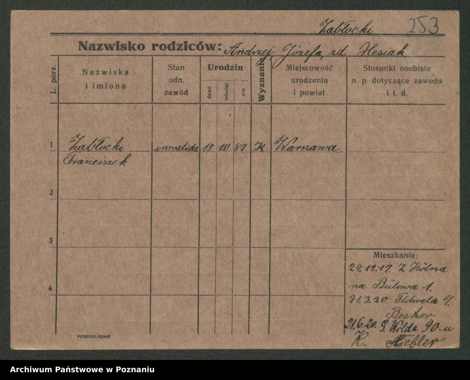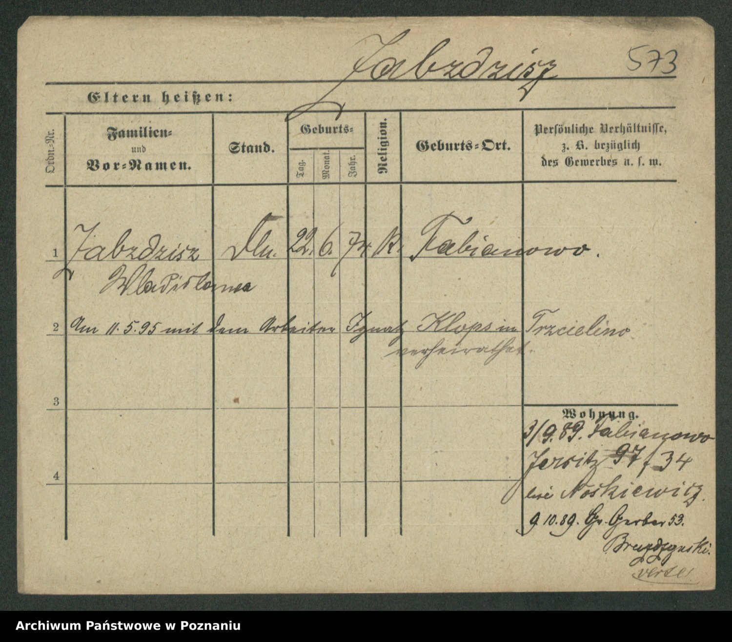 Zadrożyński z.d. Tomaszewska, Klara