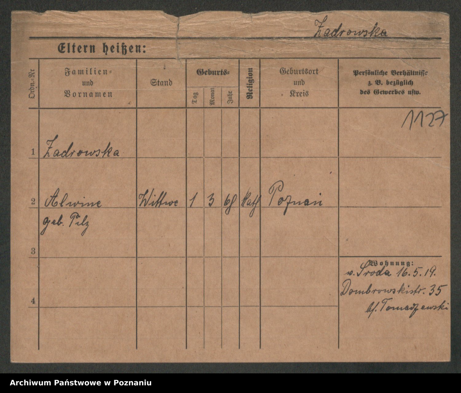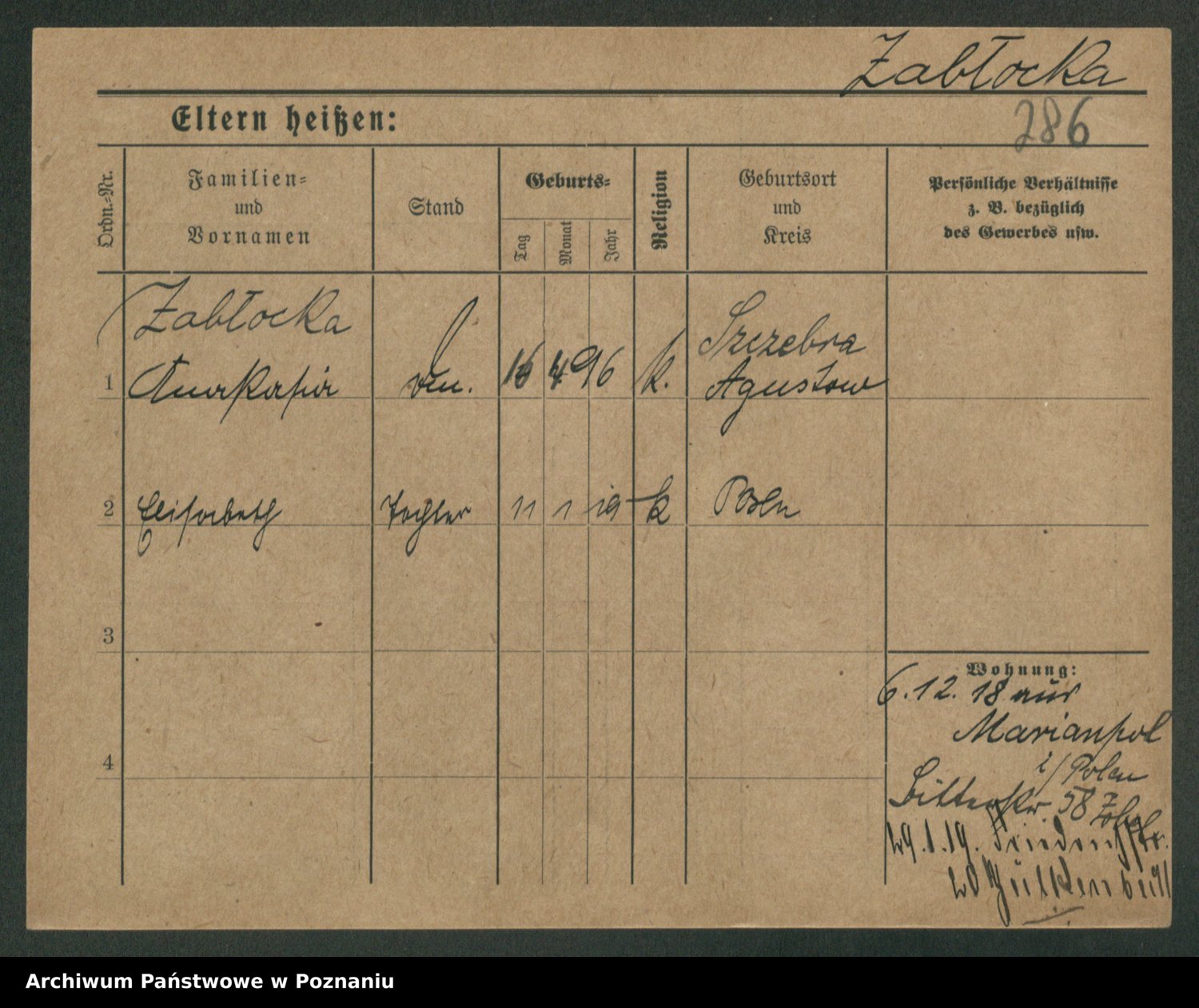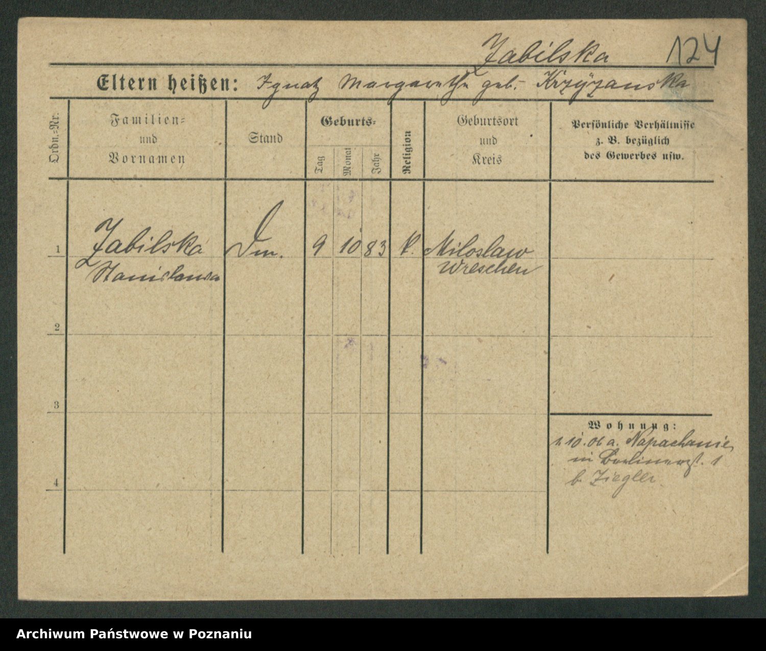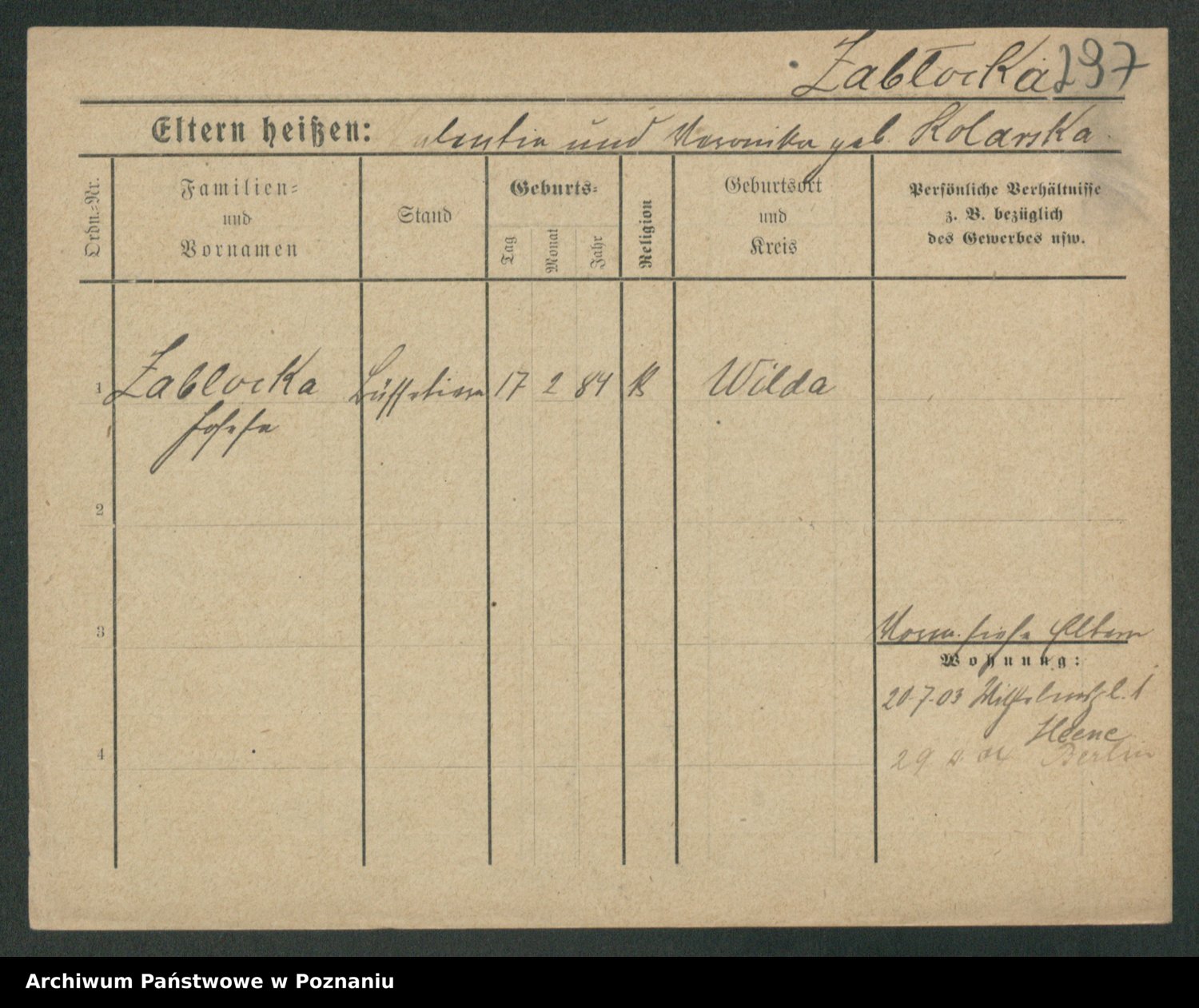 Zagatzki z.d. Wróblewska, Helene
