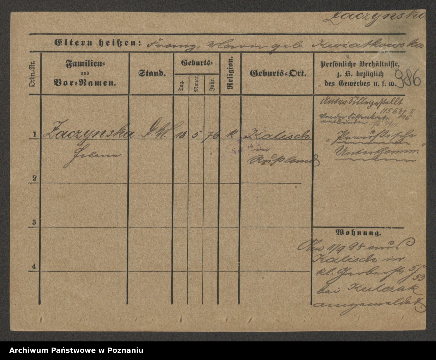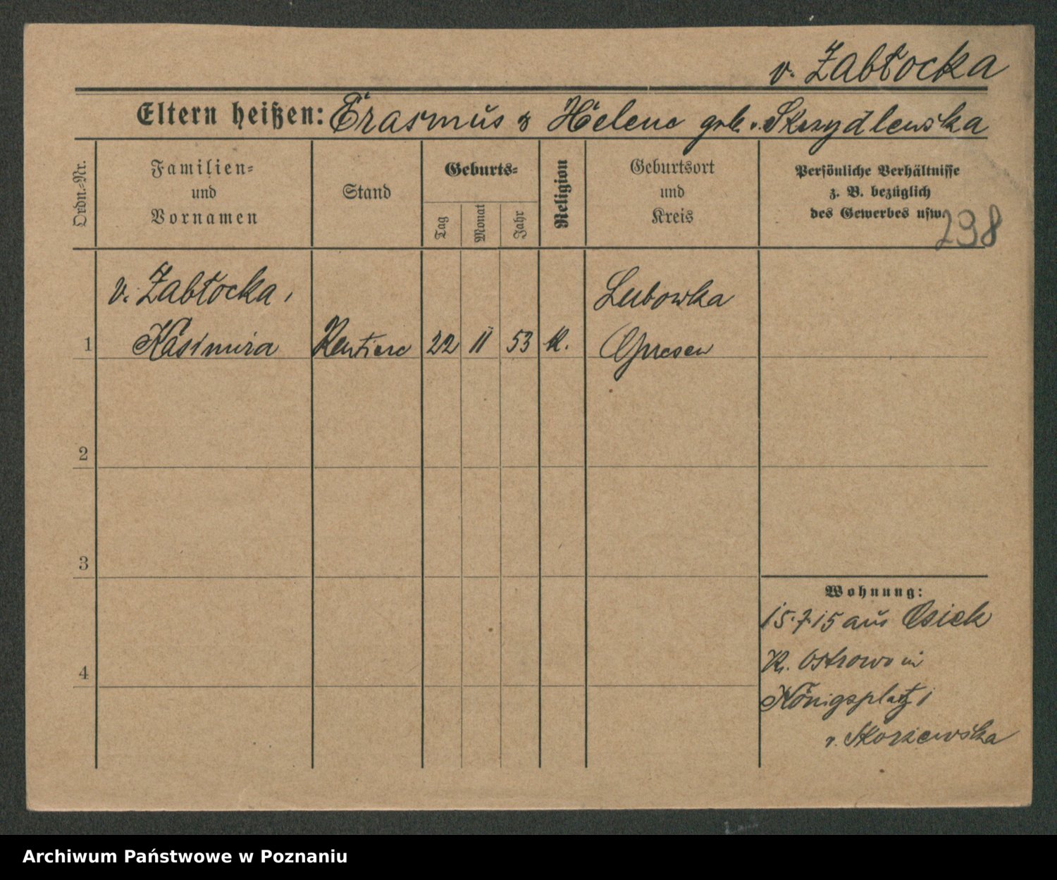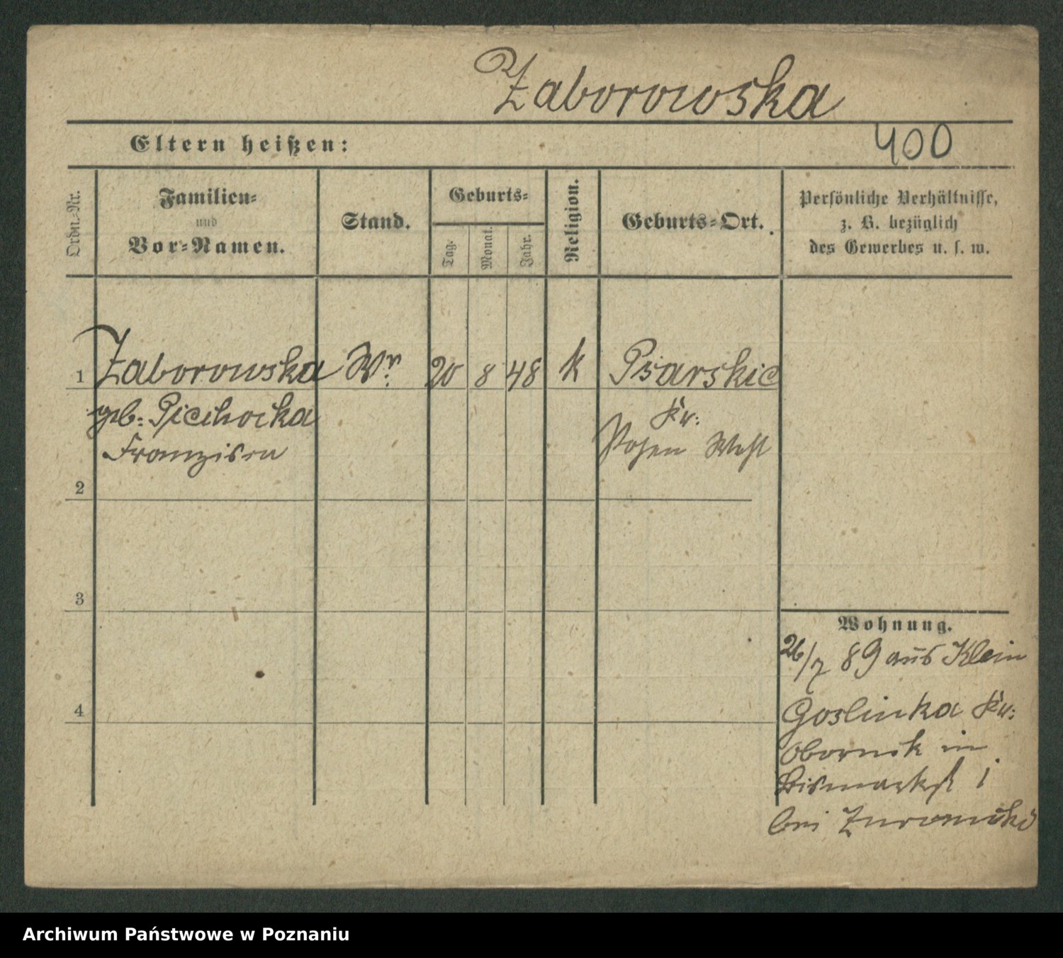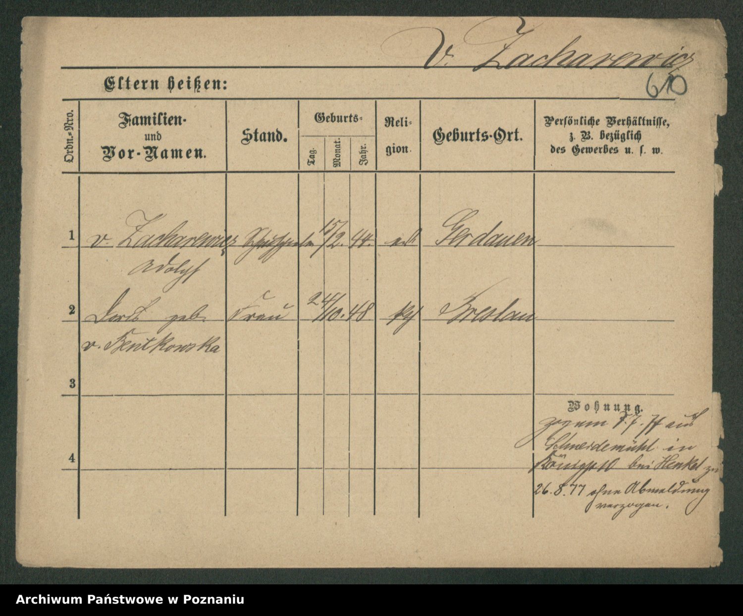 Zagatzki z.d. Wróblewska, Helene