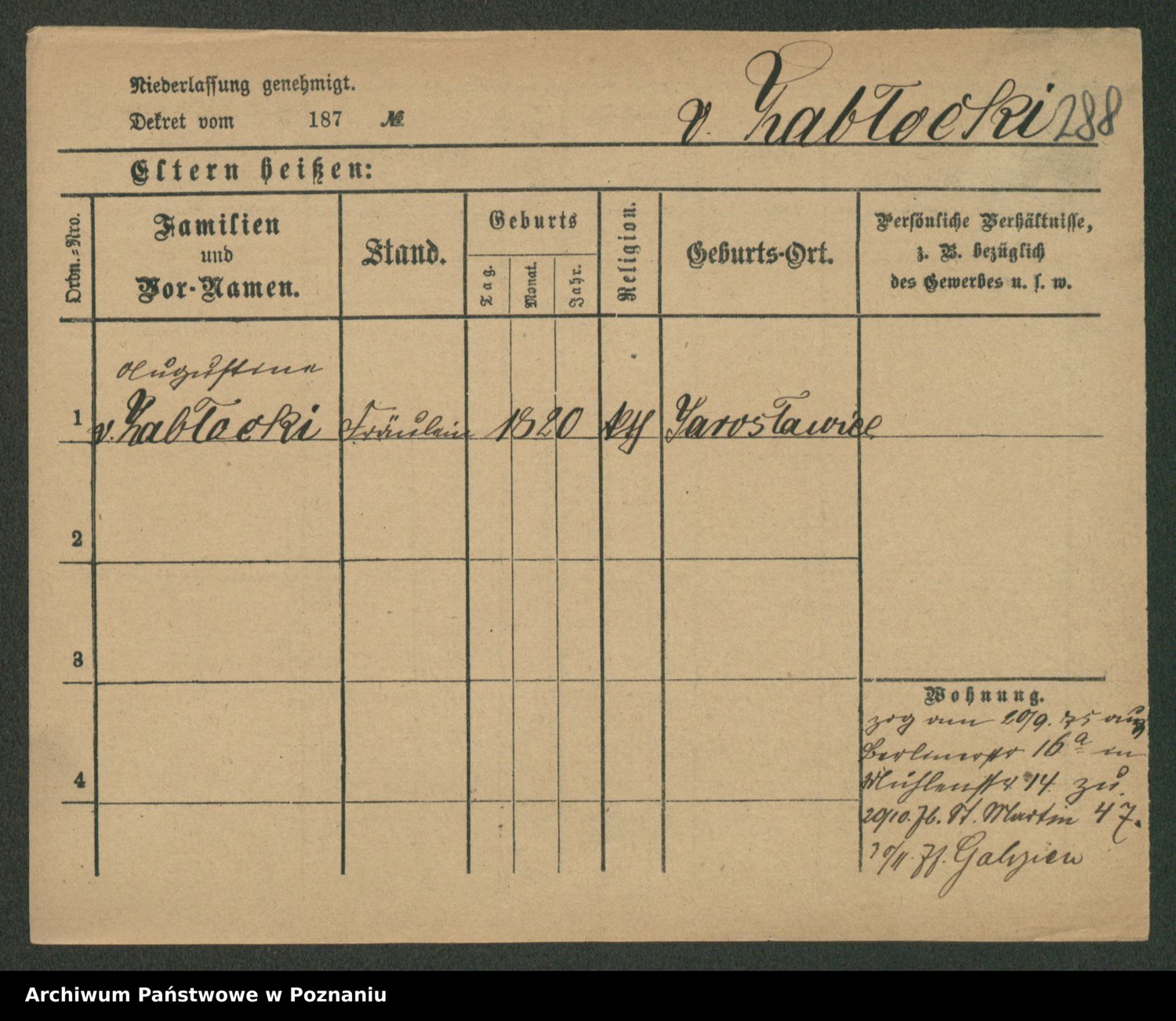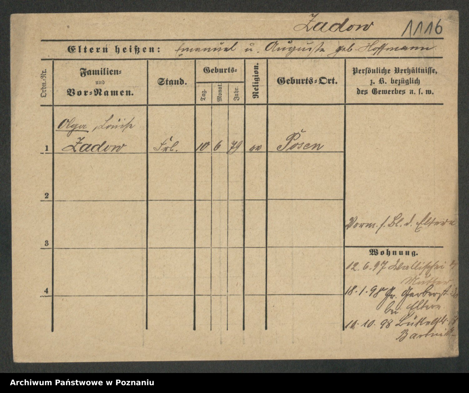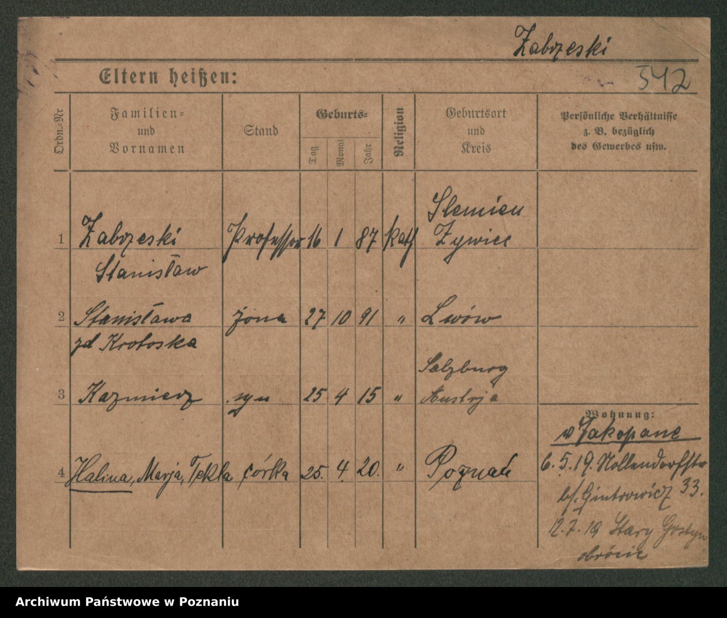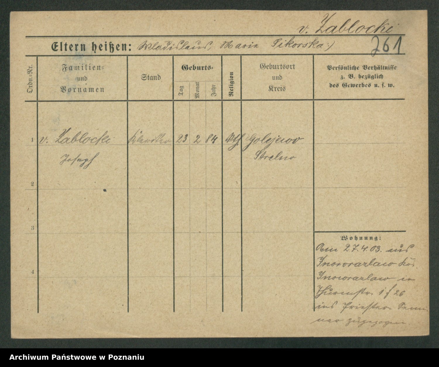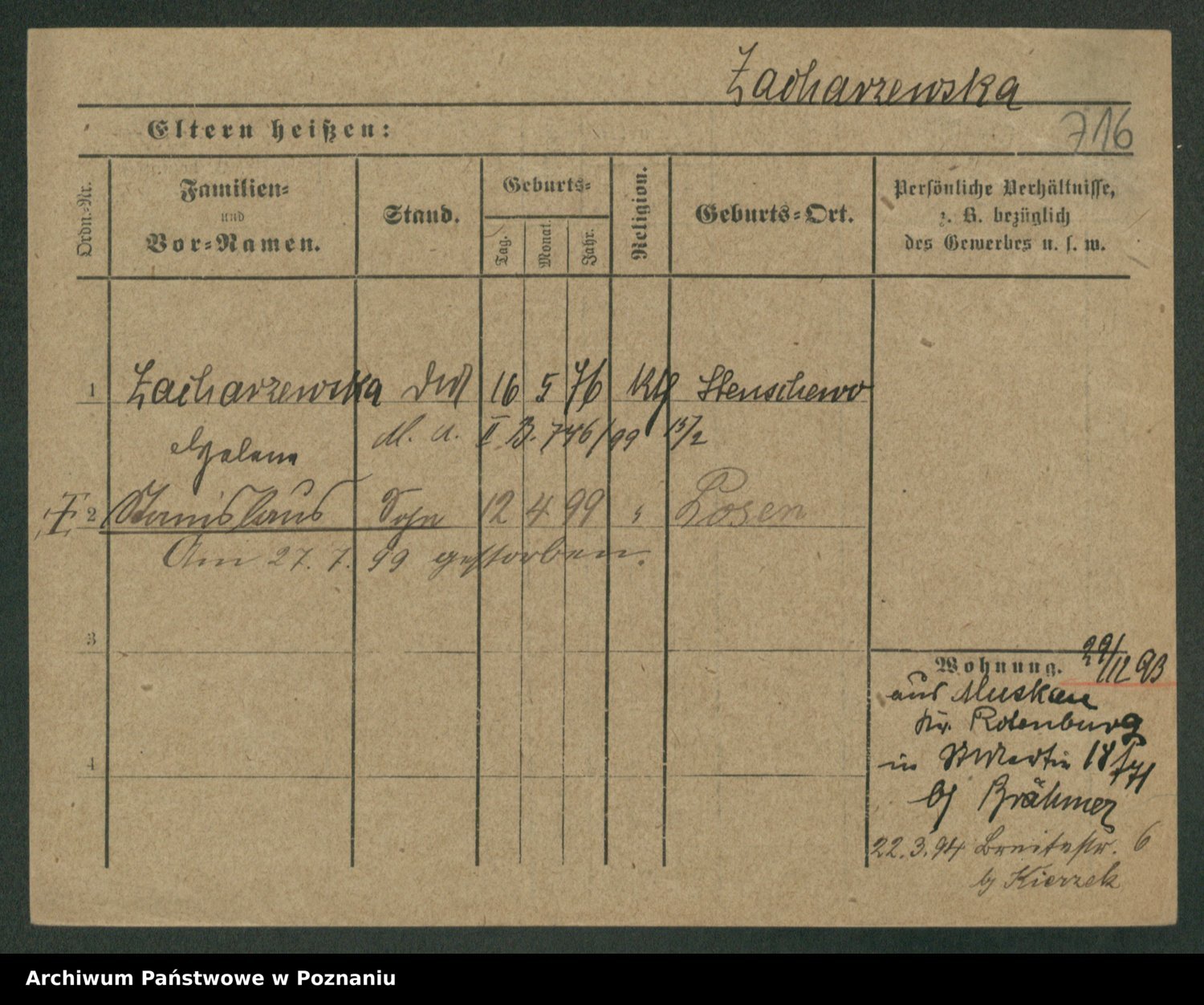 Zagatzki z.d. Wróblewska, Helene