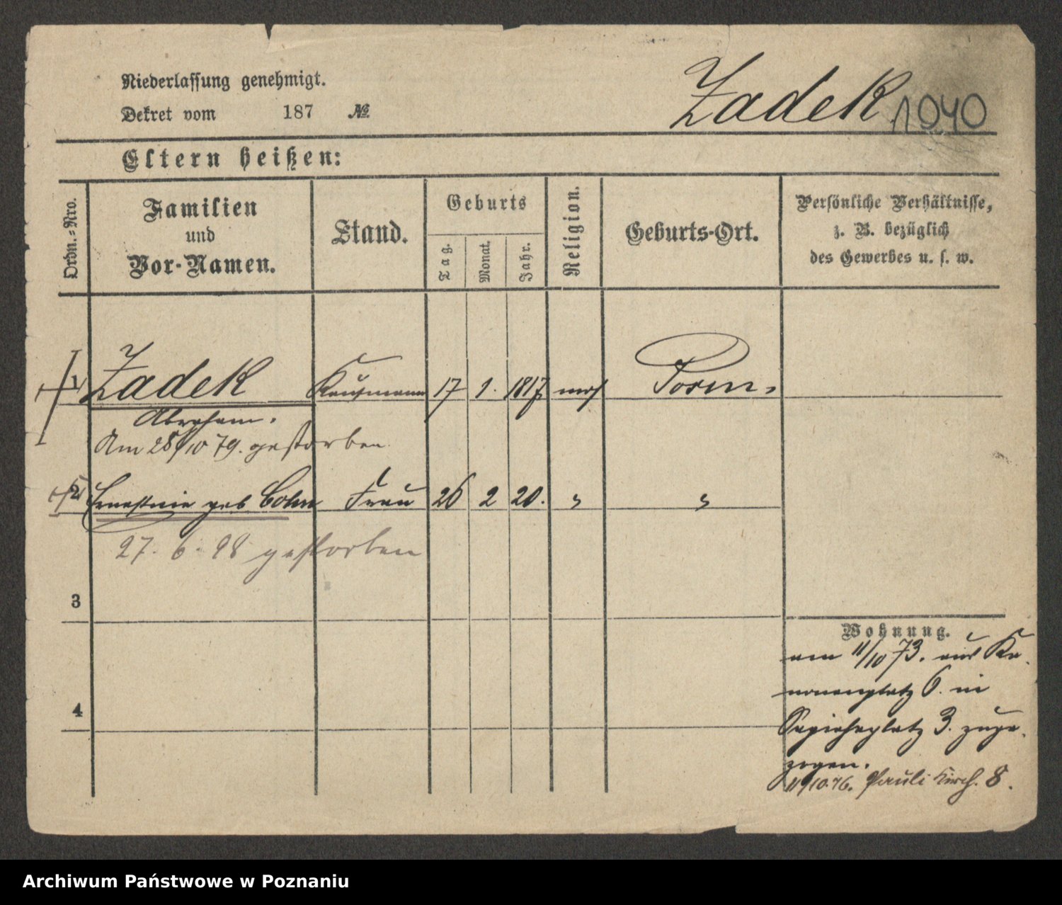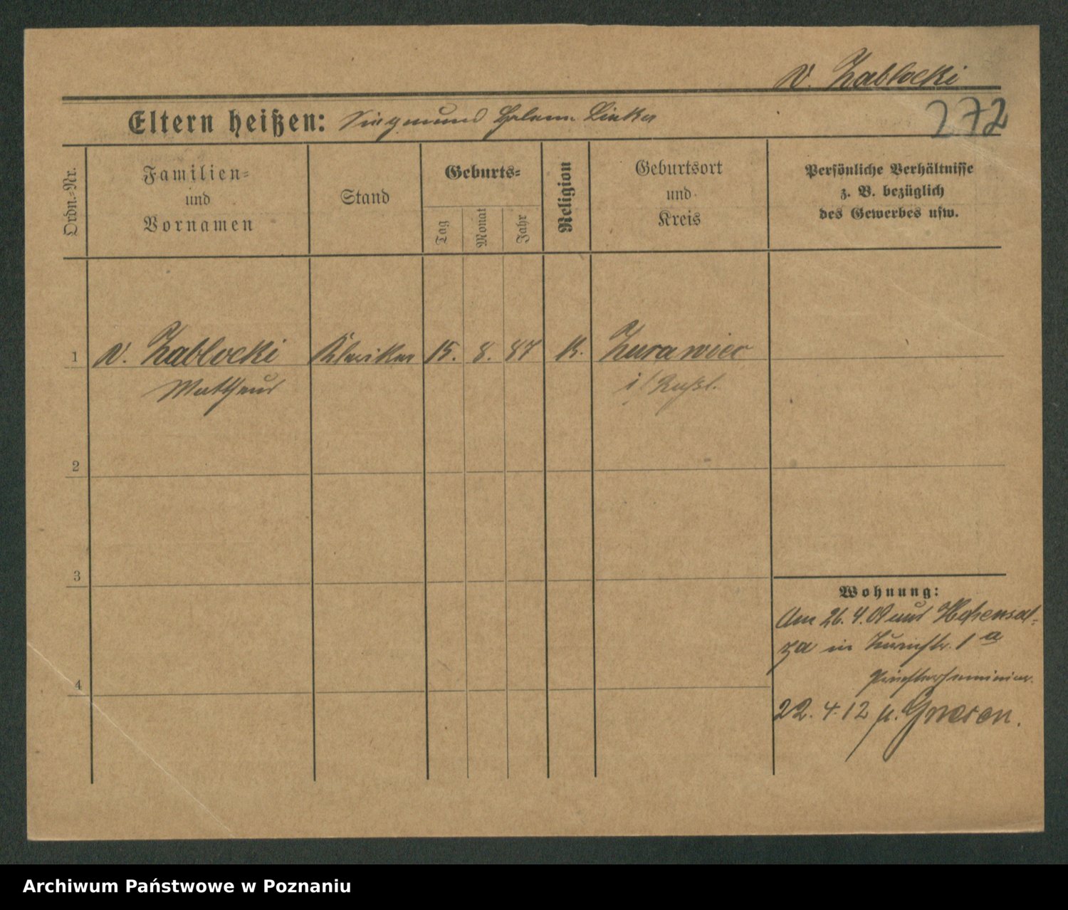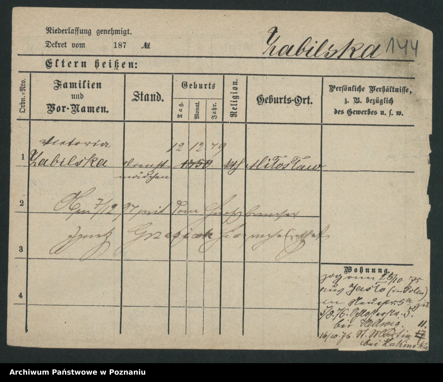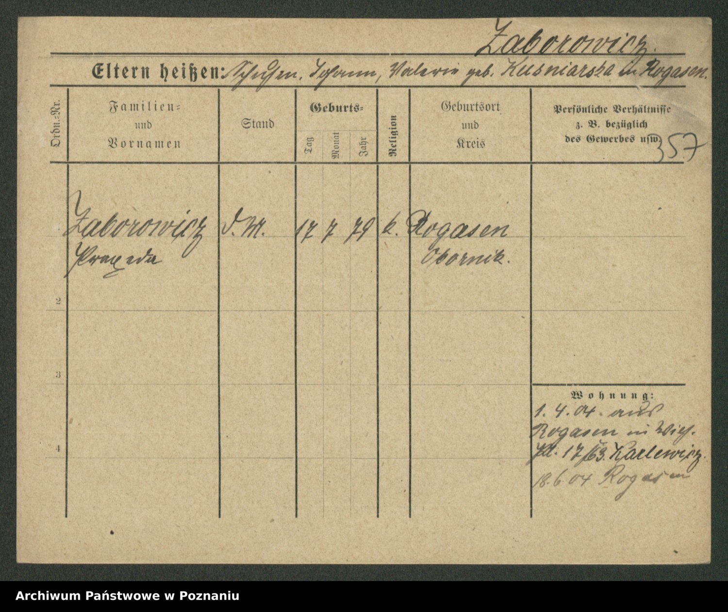 Zagatzki z.d. Wróblewska, Helene