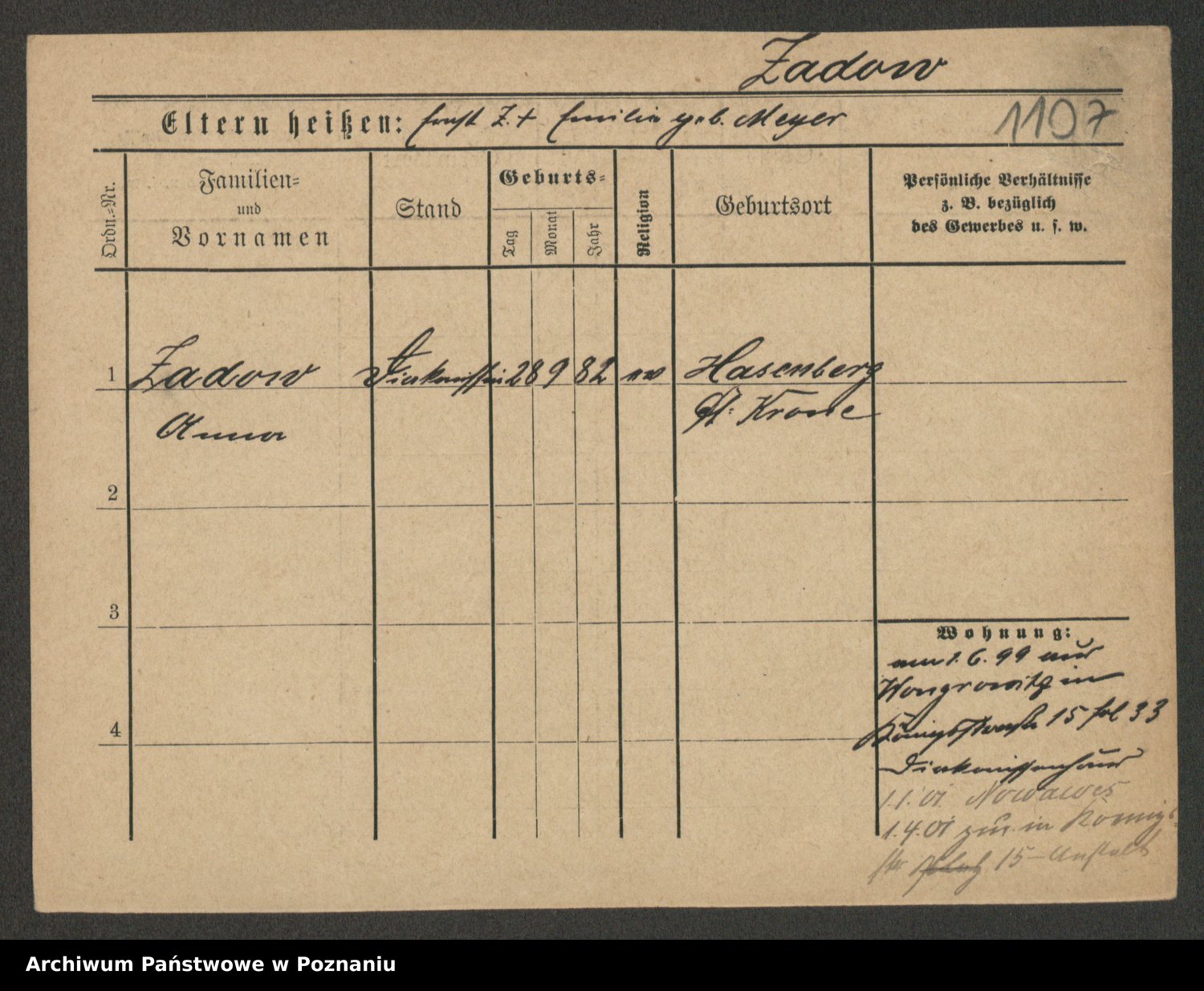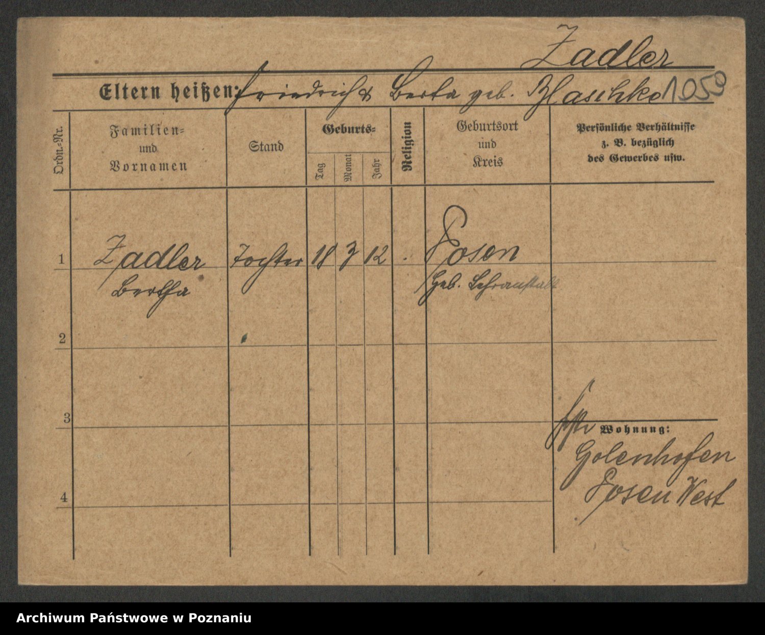 Zagadzki z.d. Peschke, Hedwig Alexandra