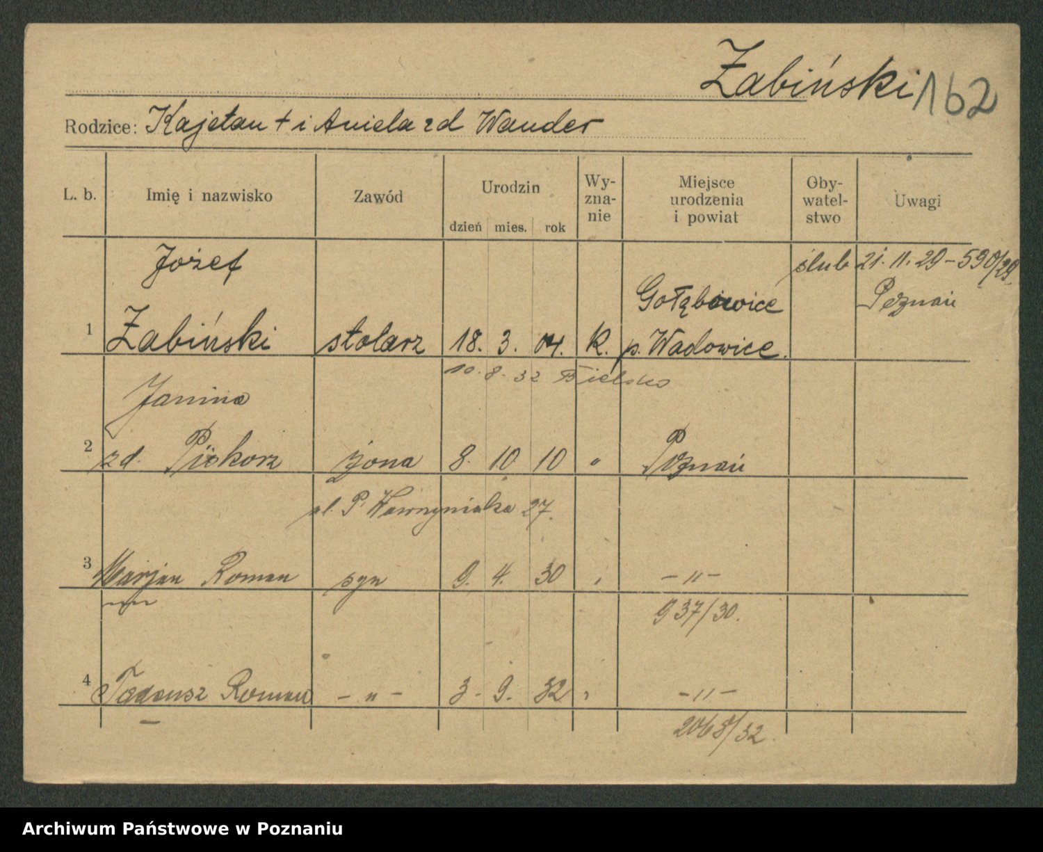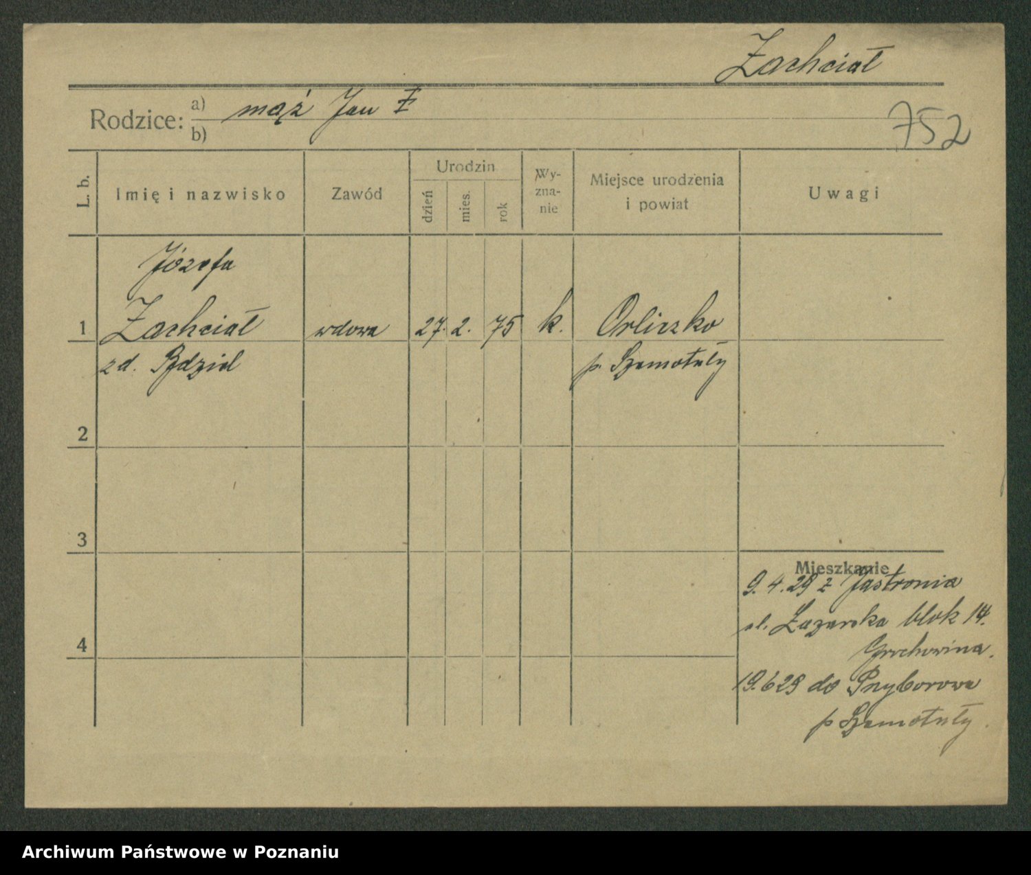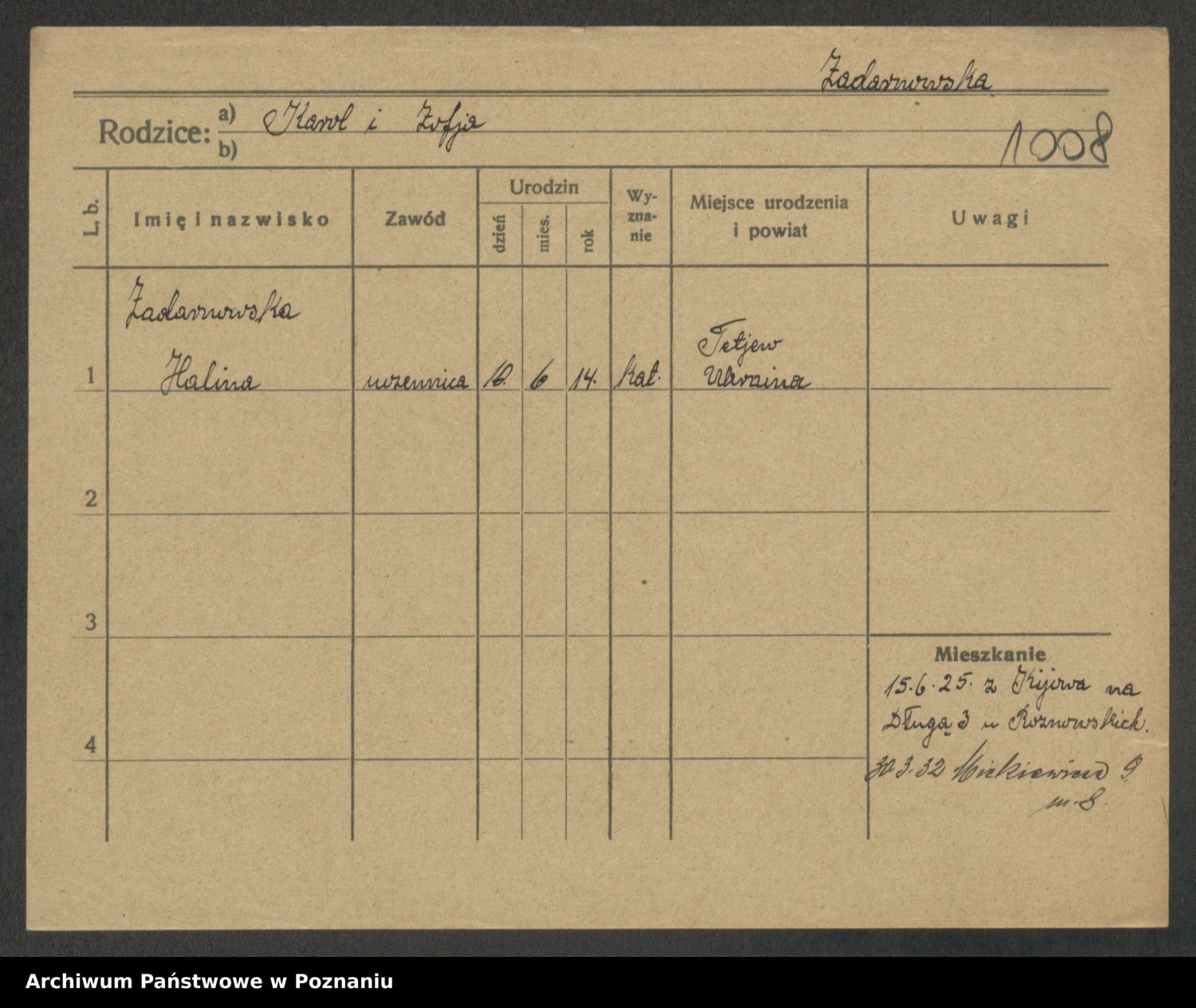 Zaba z.d. Łapińska, Jadwiga