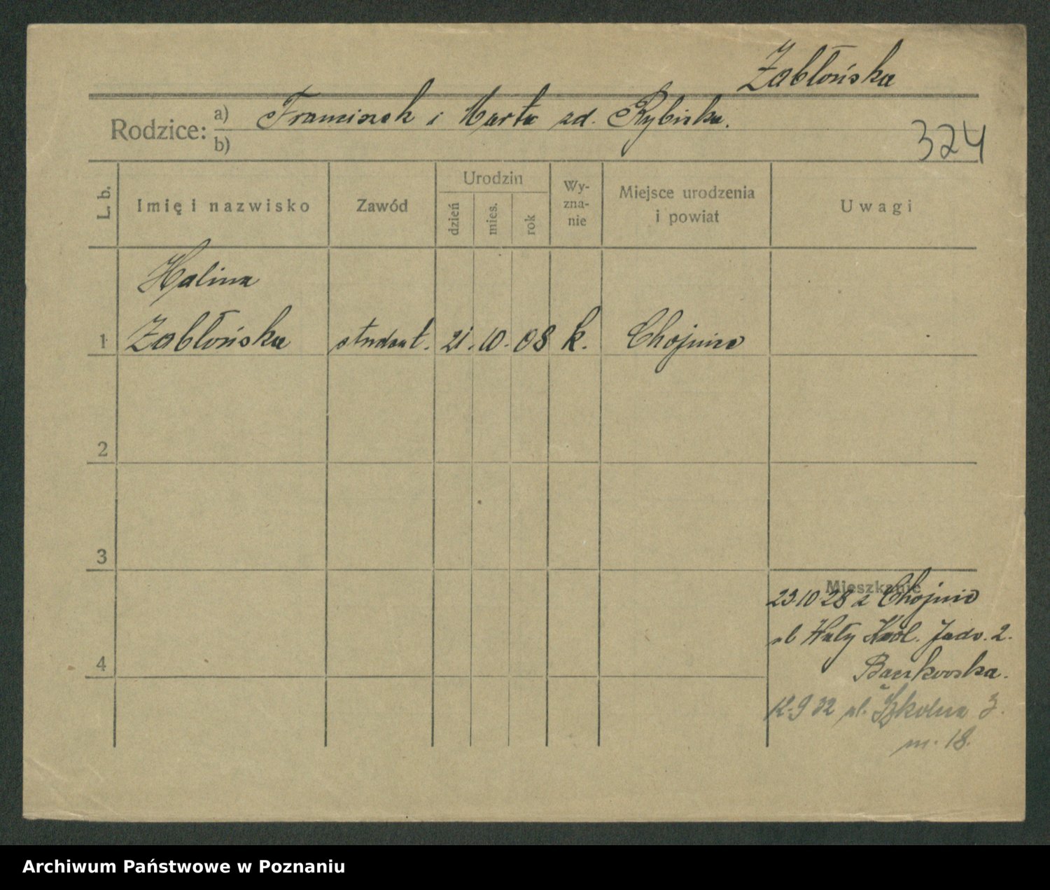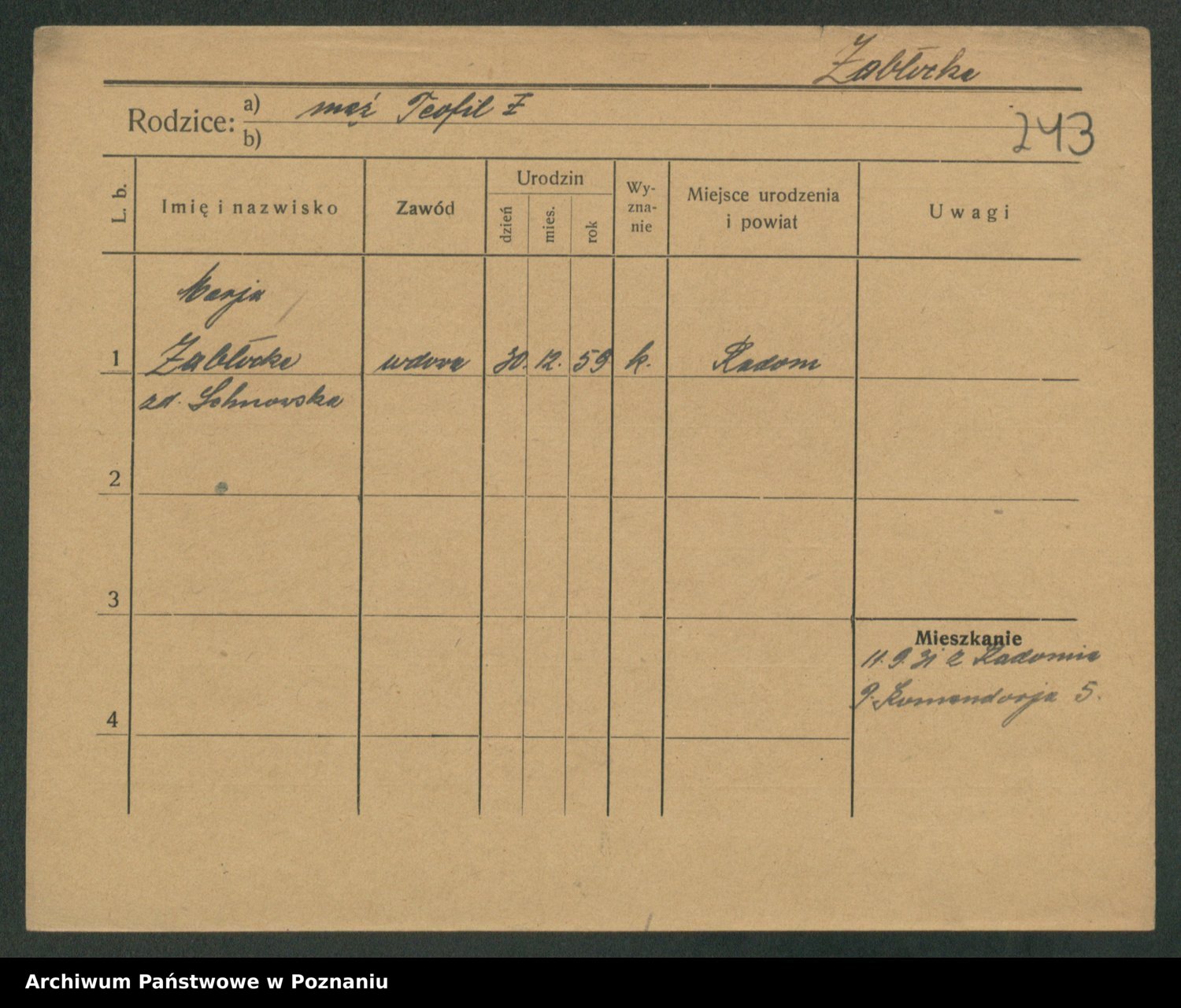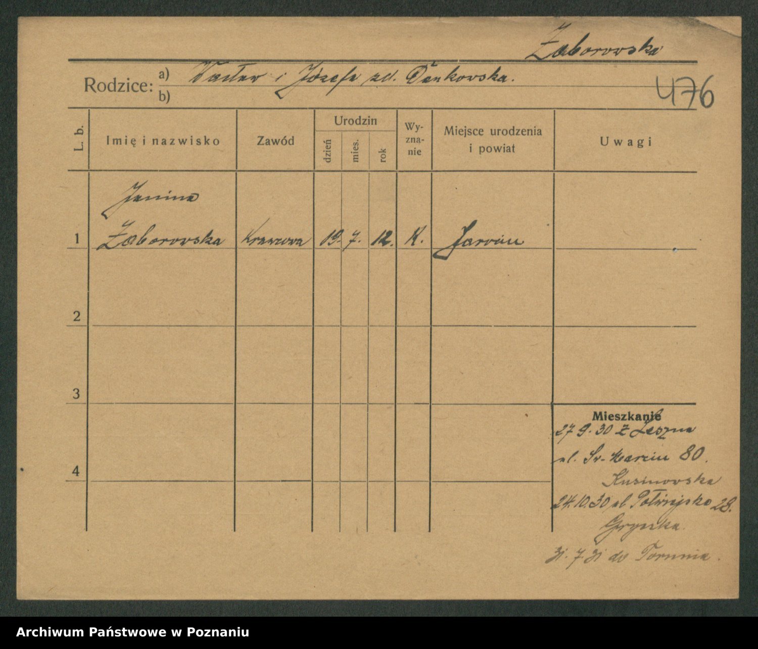 Zaba z.d. Łapińska, Jadwiga