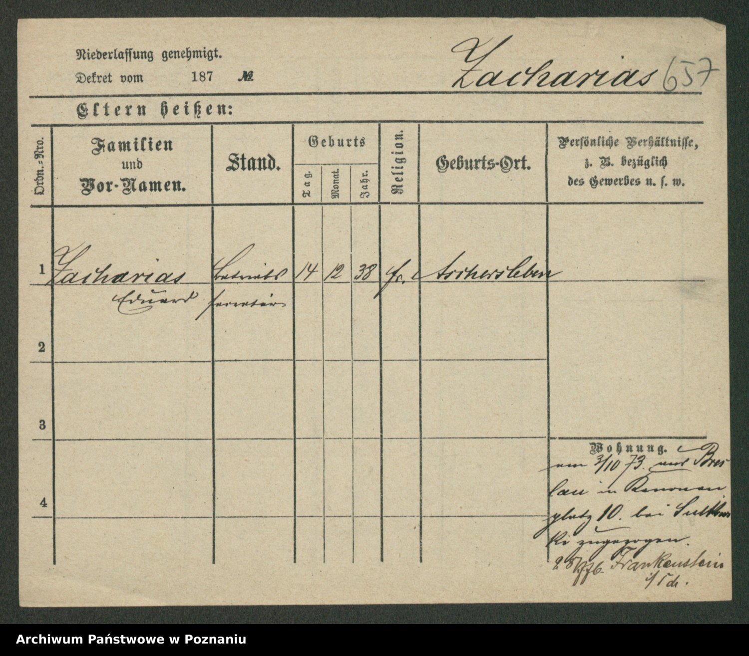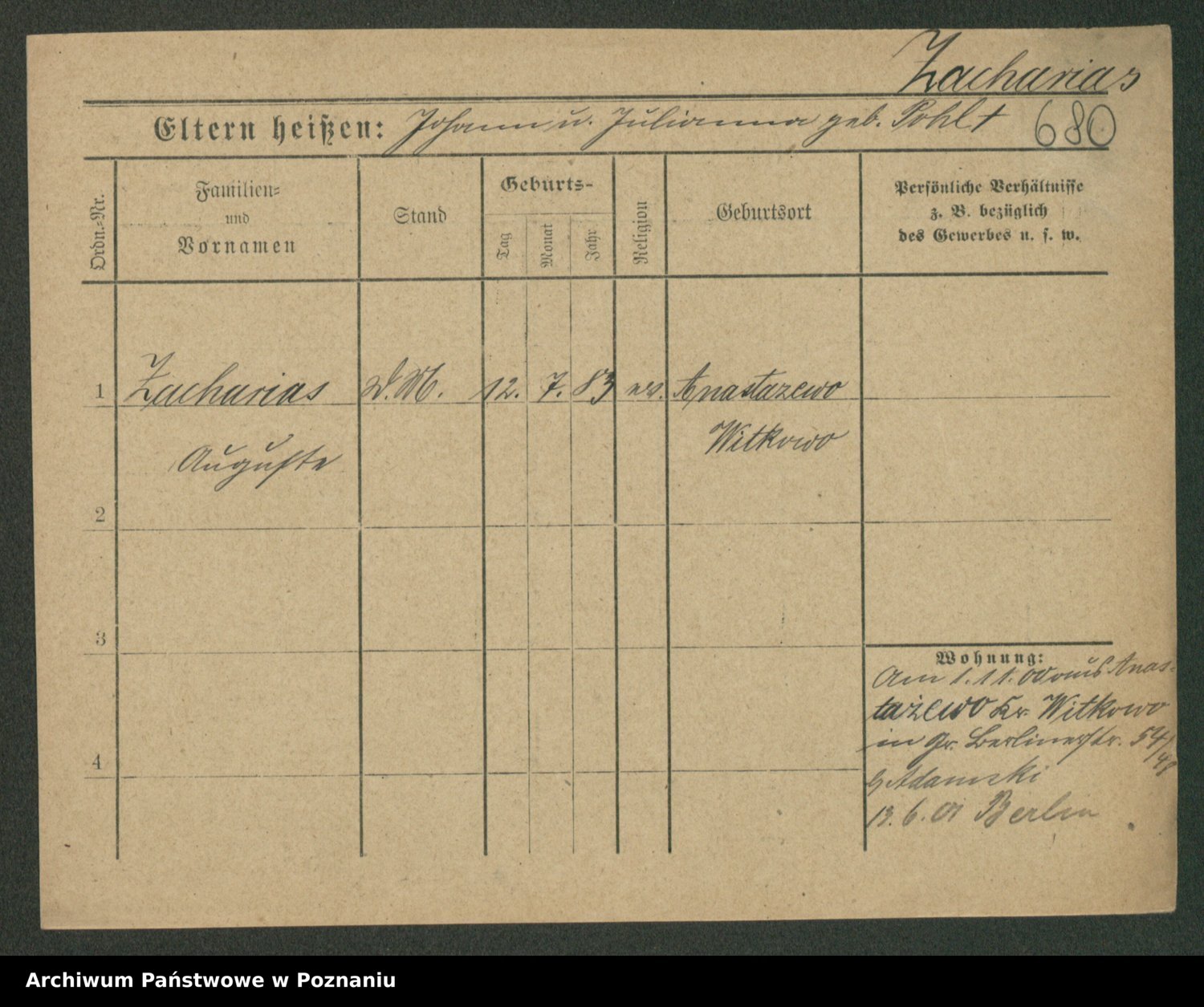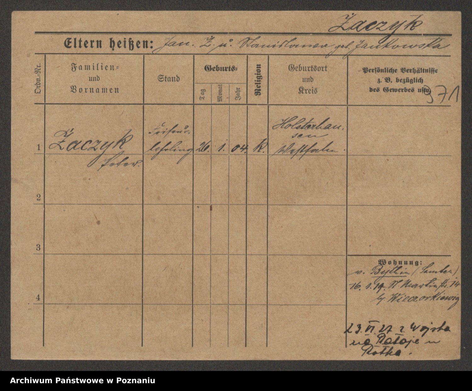 Zagalewska, Johann