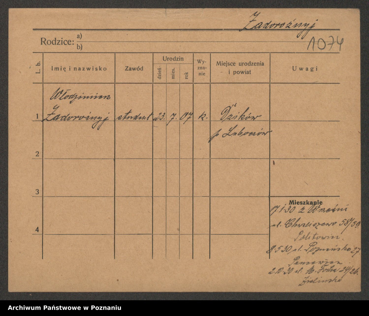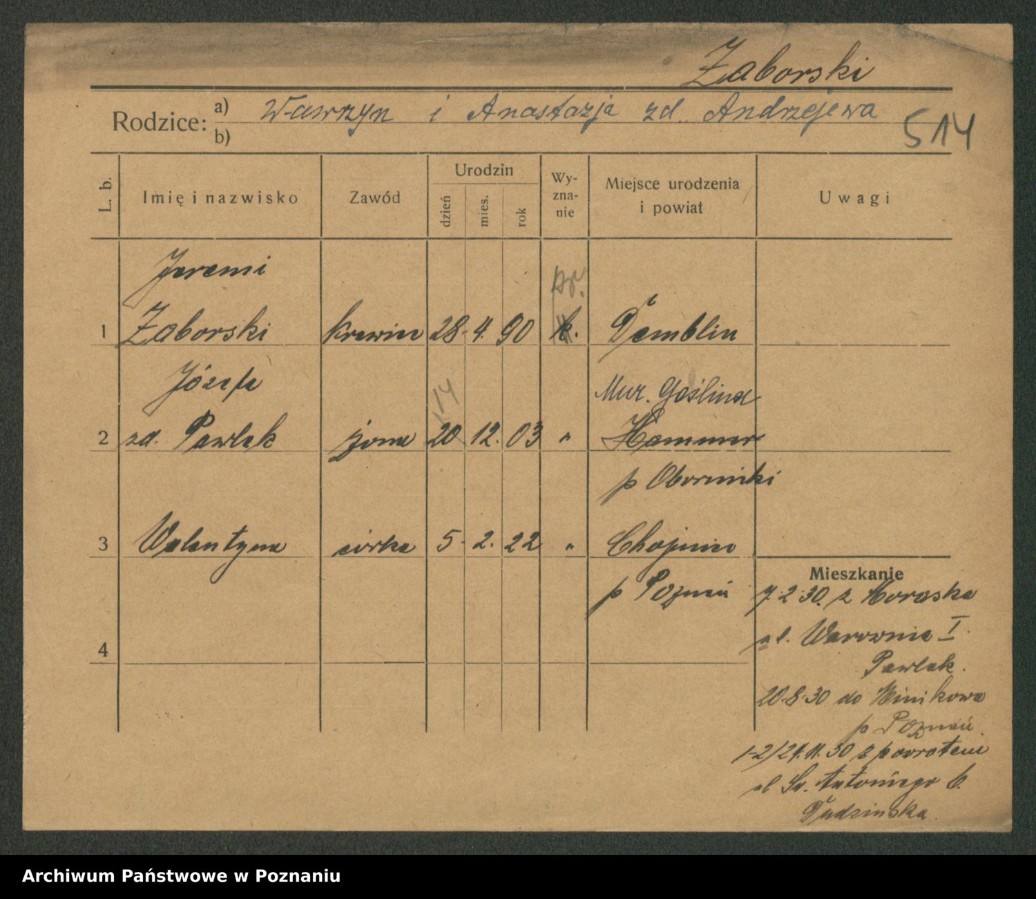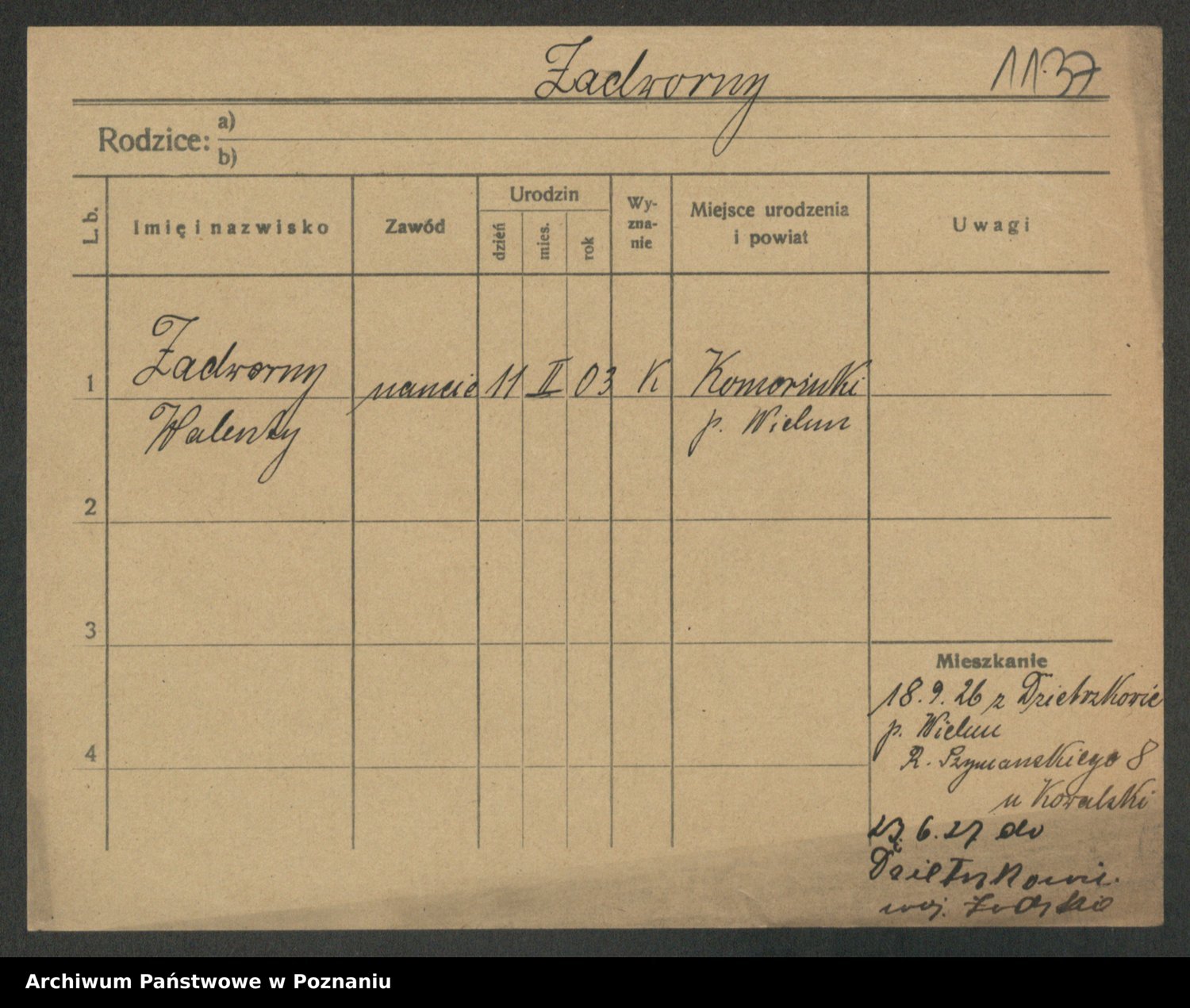 Zadworny, Walenty