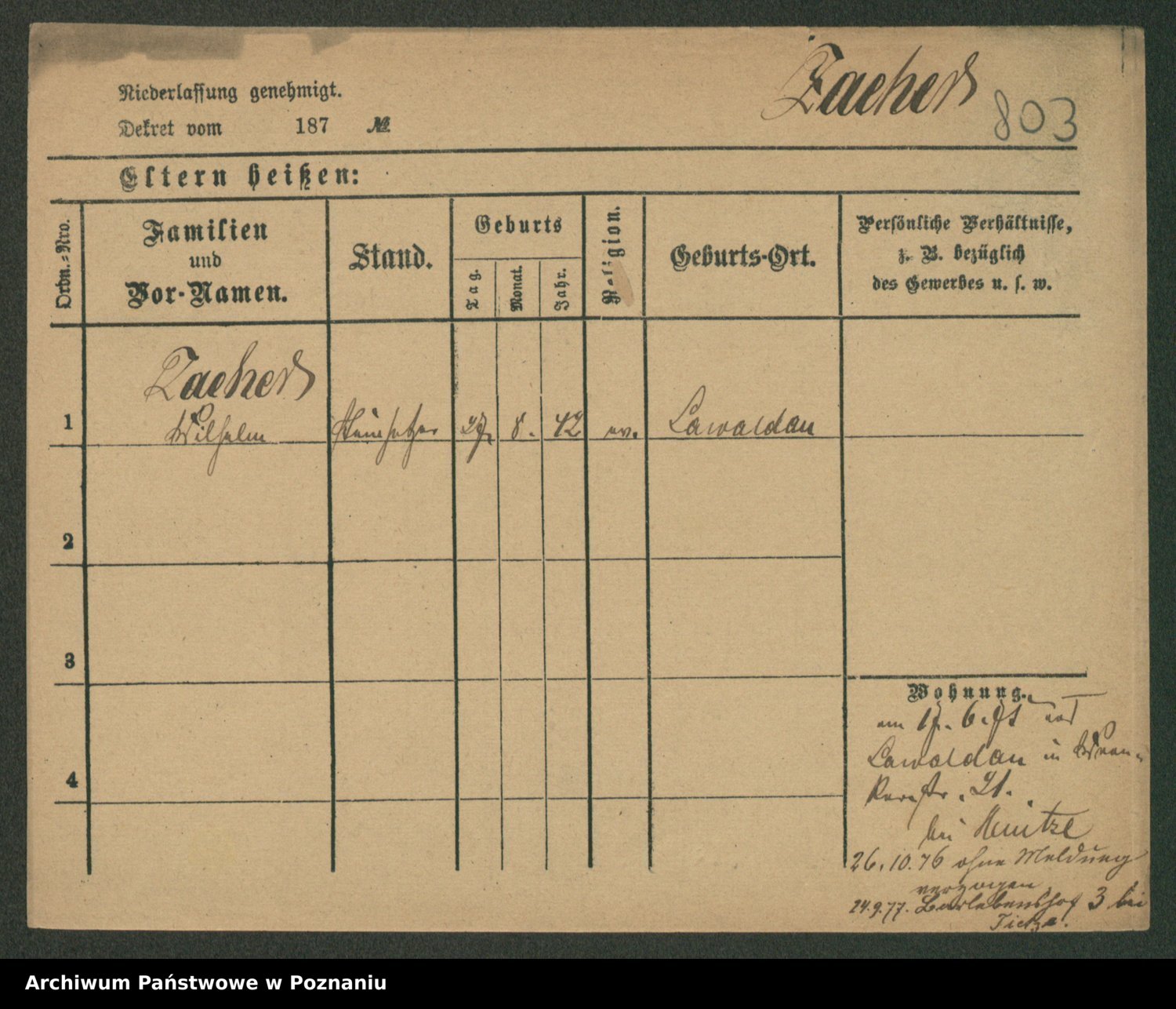 Zahbeil, Karl Gustaw Max