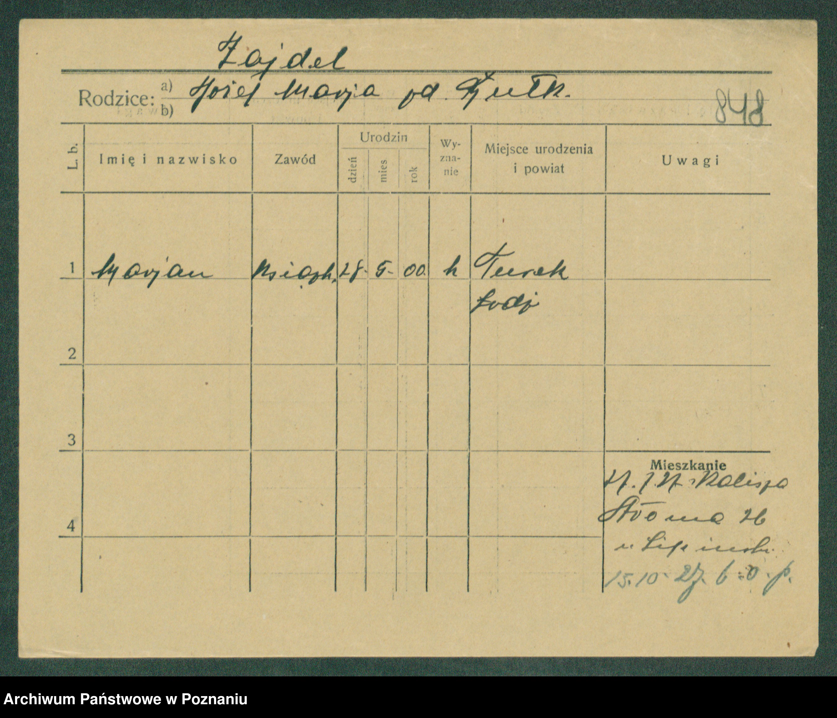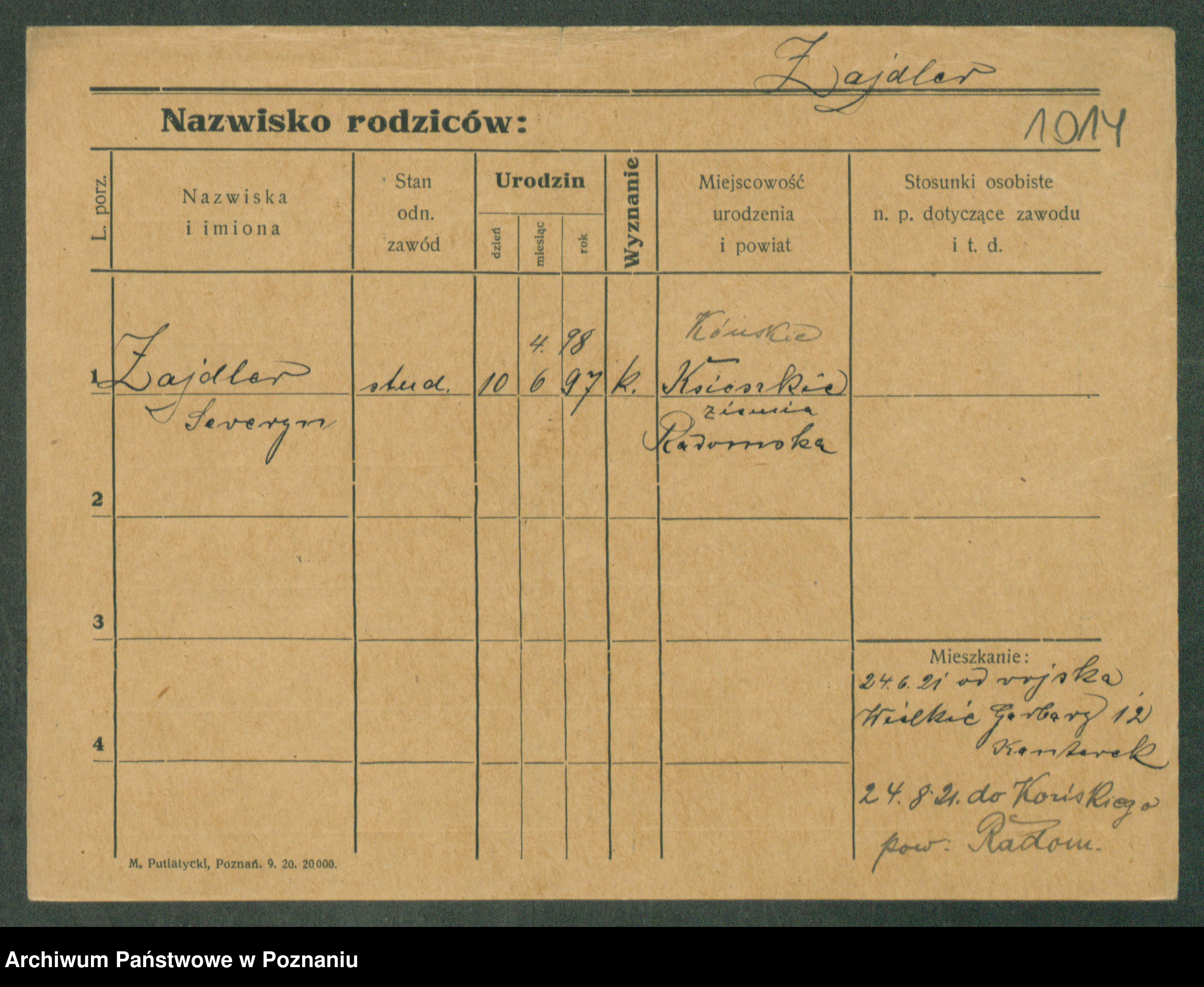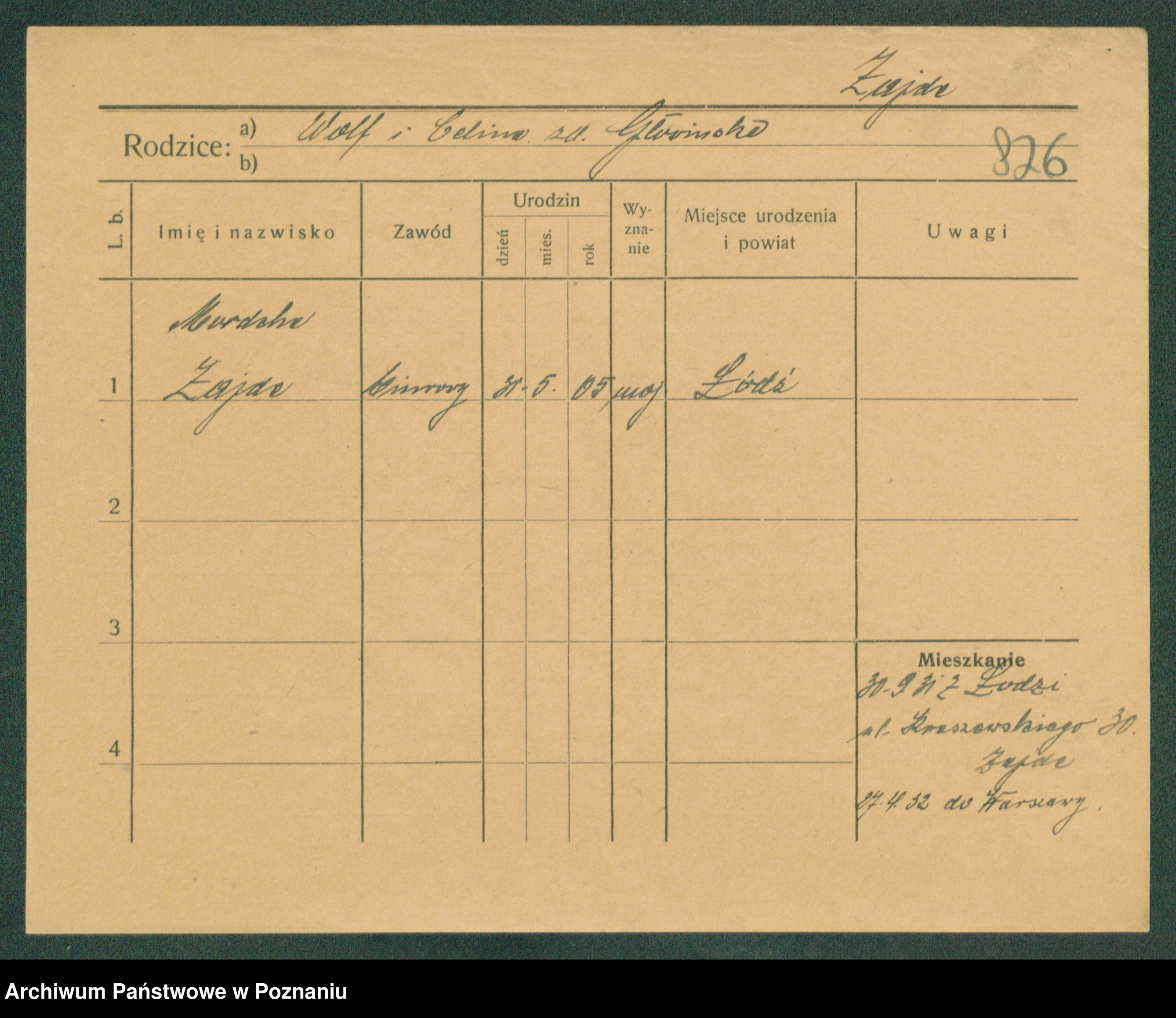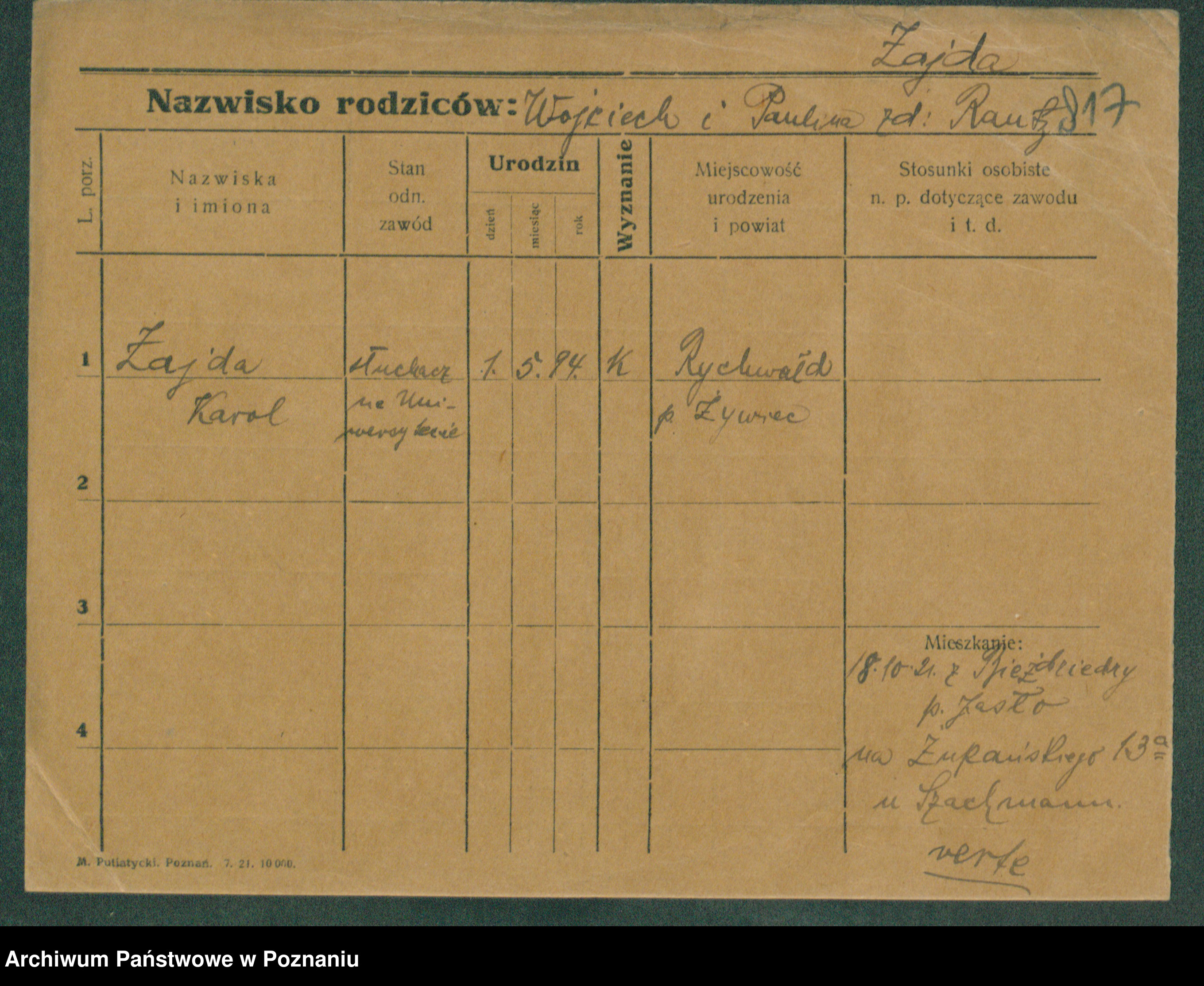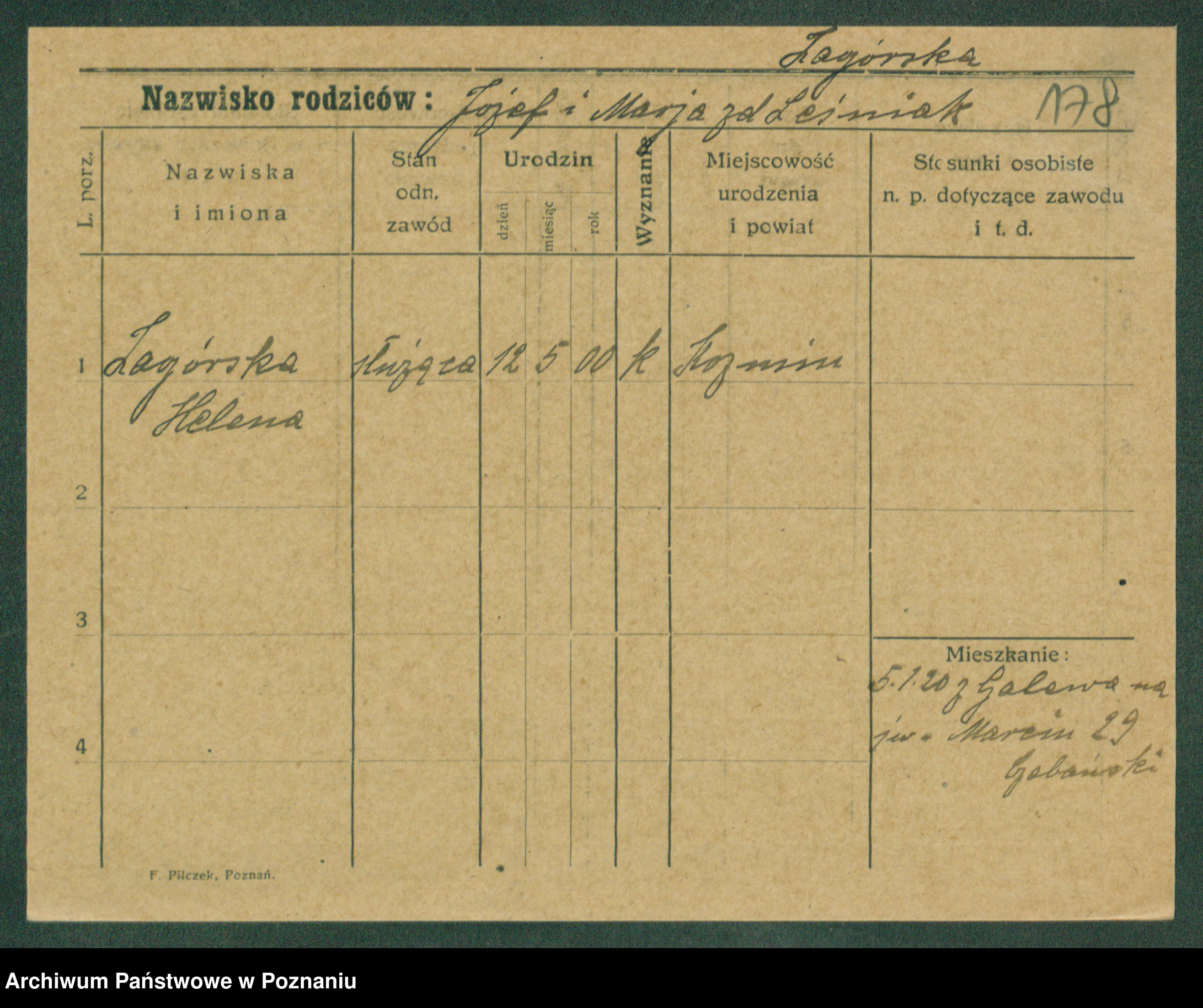 Podgląd karty osobowej dostępny jest po kliknięciu na nazwisko lub ikonkę karty. Można dokonywać powiększenia (ikony na górze) lub przechodzić między kolejnymi skanami (strzałki po bokach).