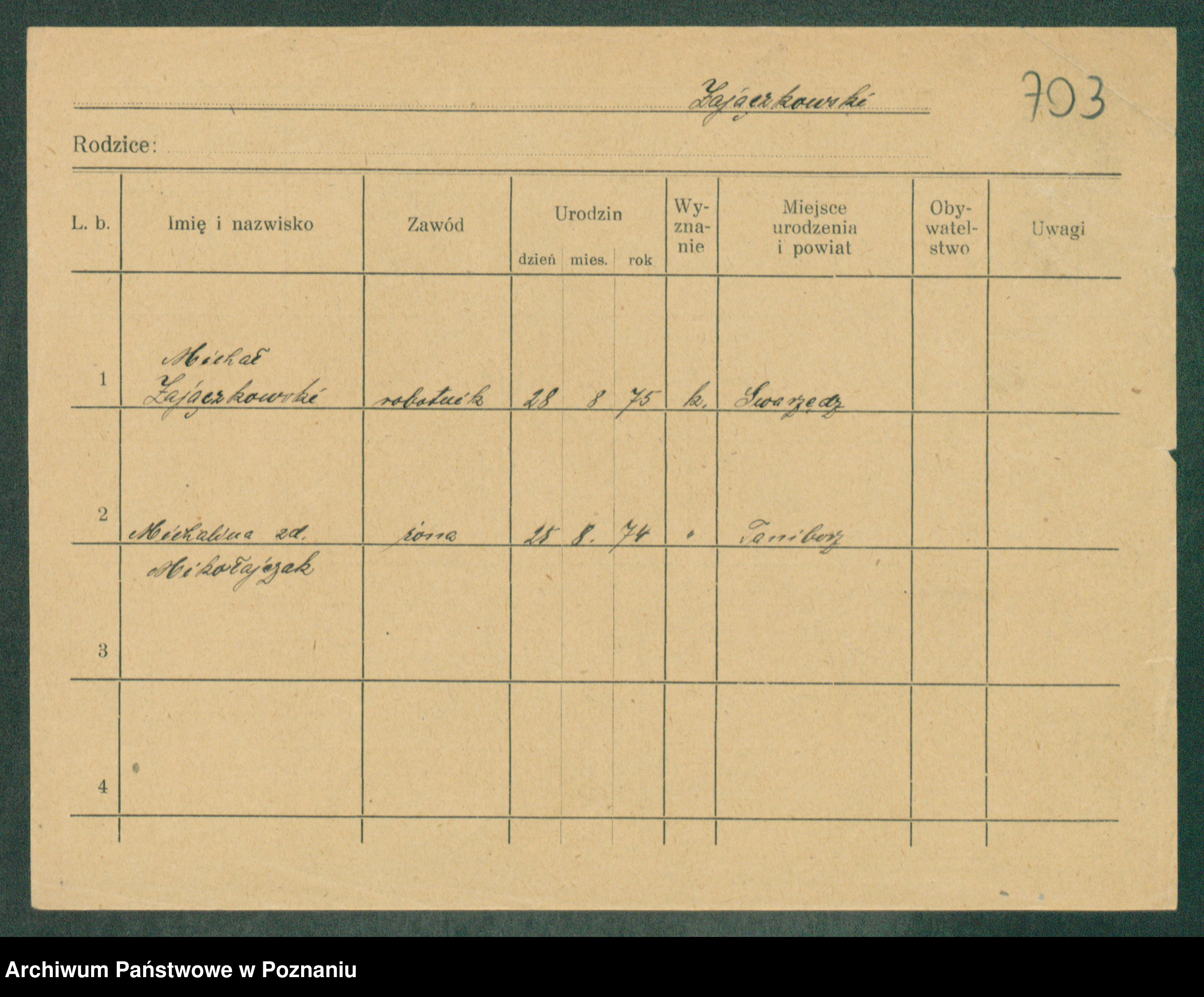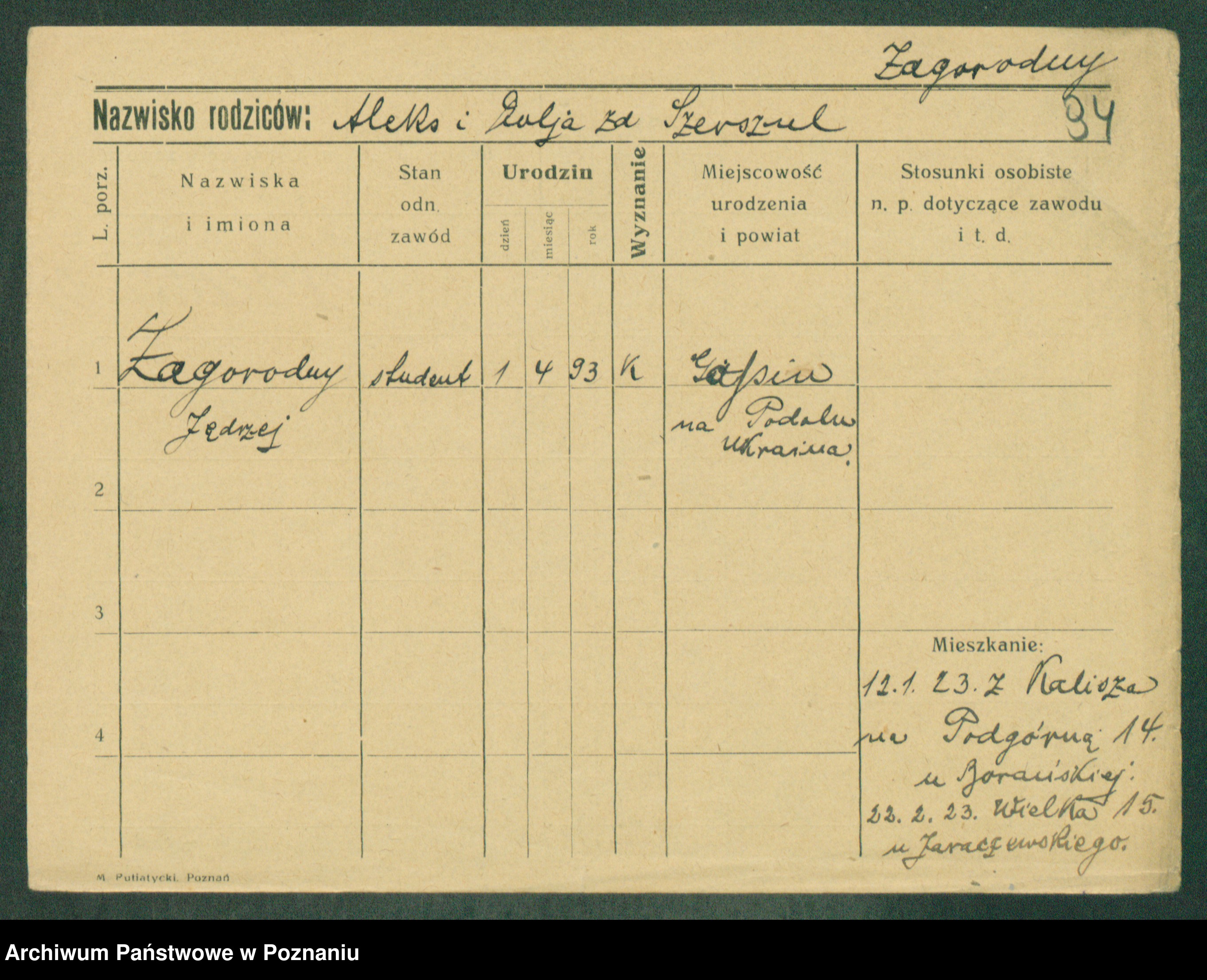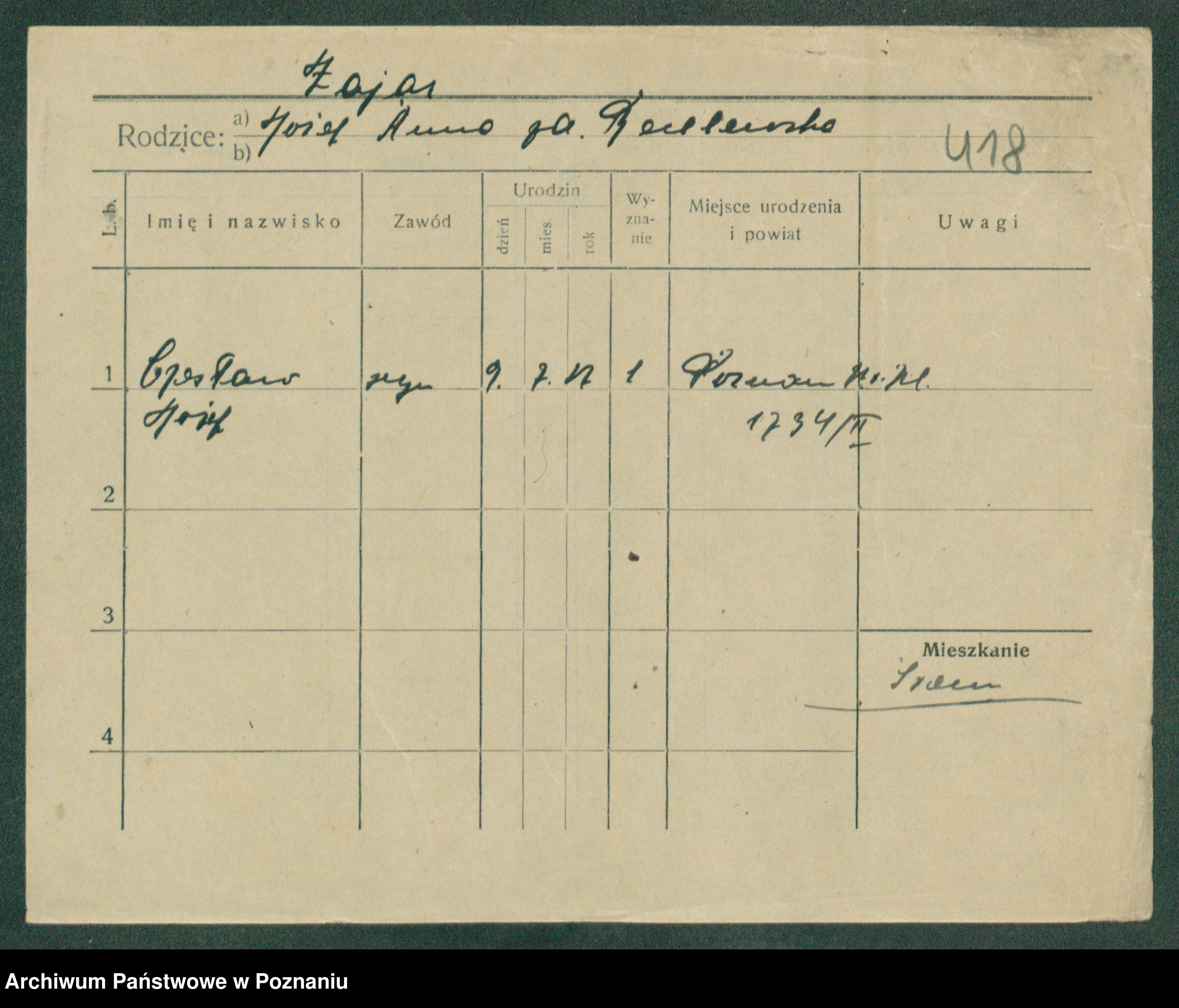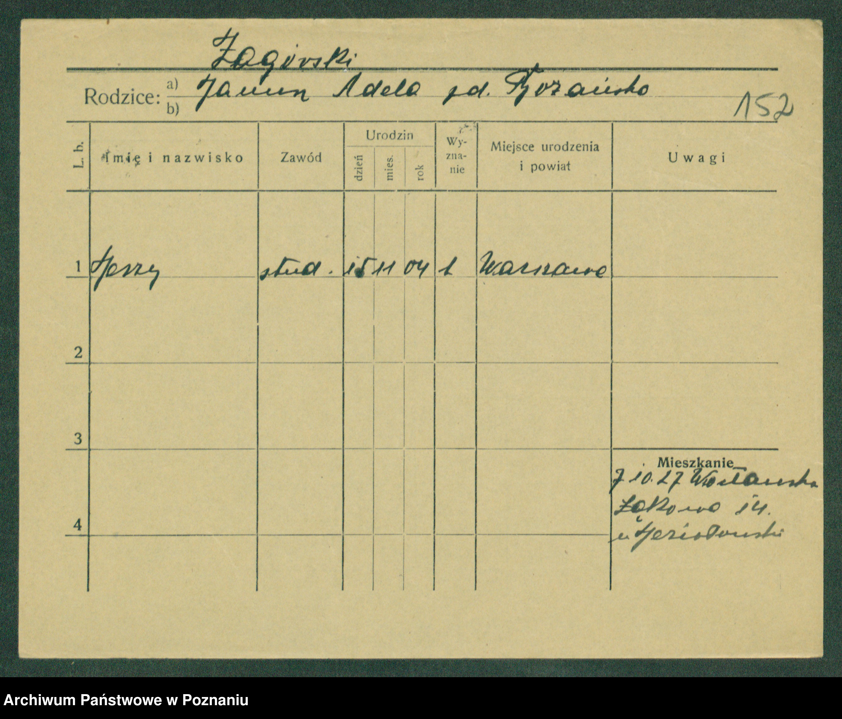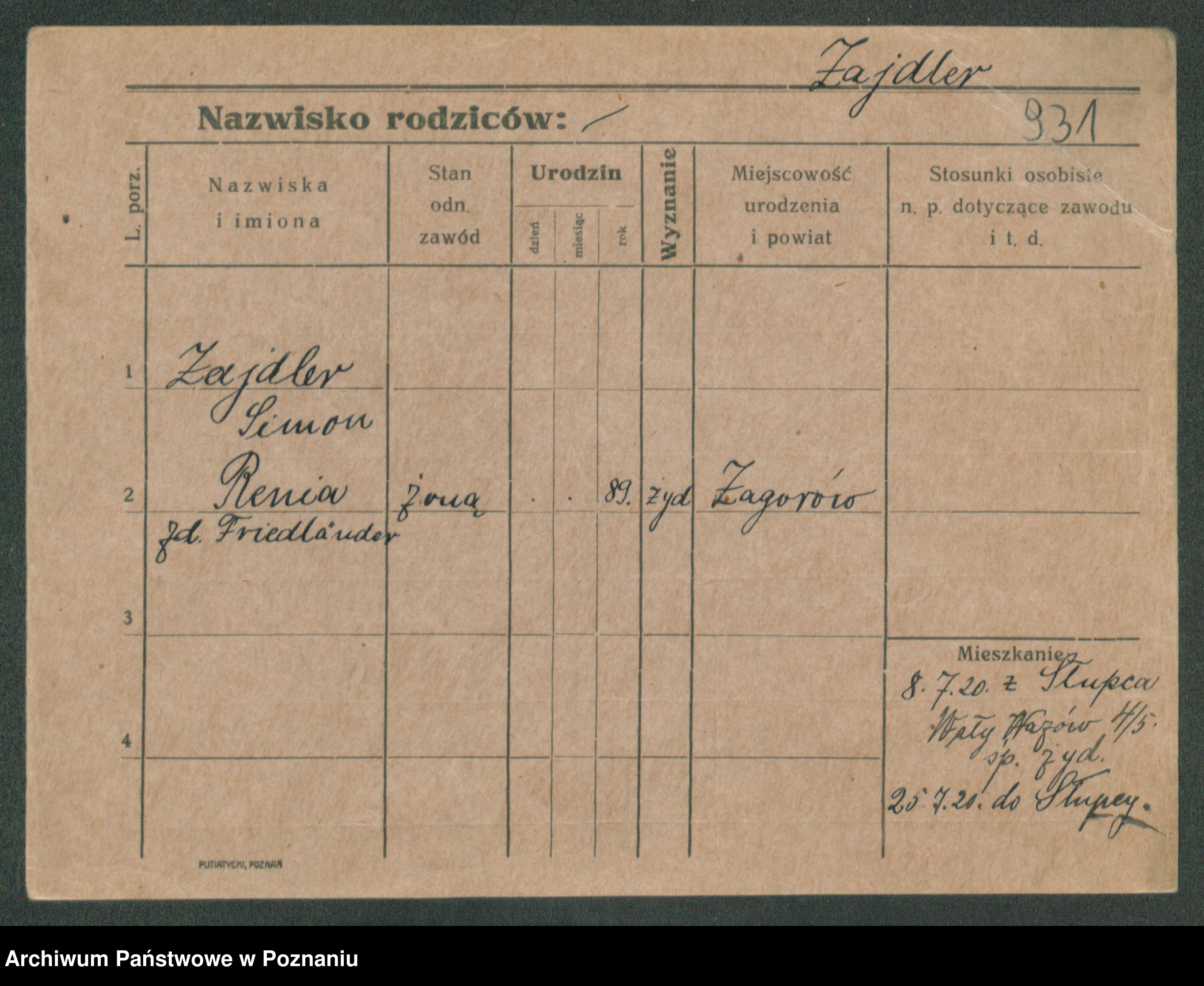 Podgląd karty osobowej dostępny jest po kliknięciu na nazwisko lub ikonkę karty. Można dokonywać powiększenia (ikony na górze) lub przechodzić między kolejnymi skanami (strzałki po bokach).