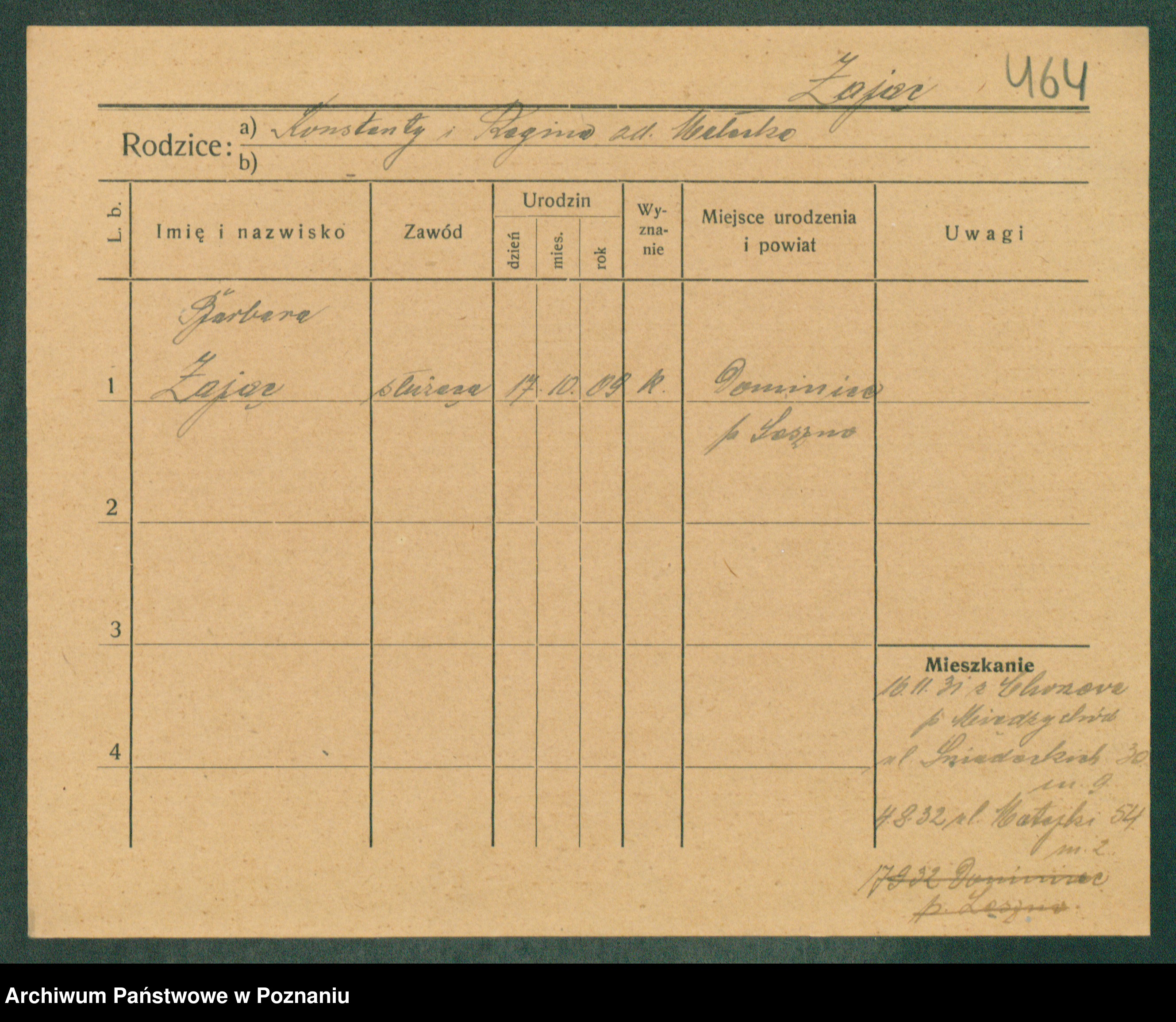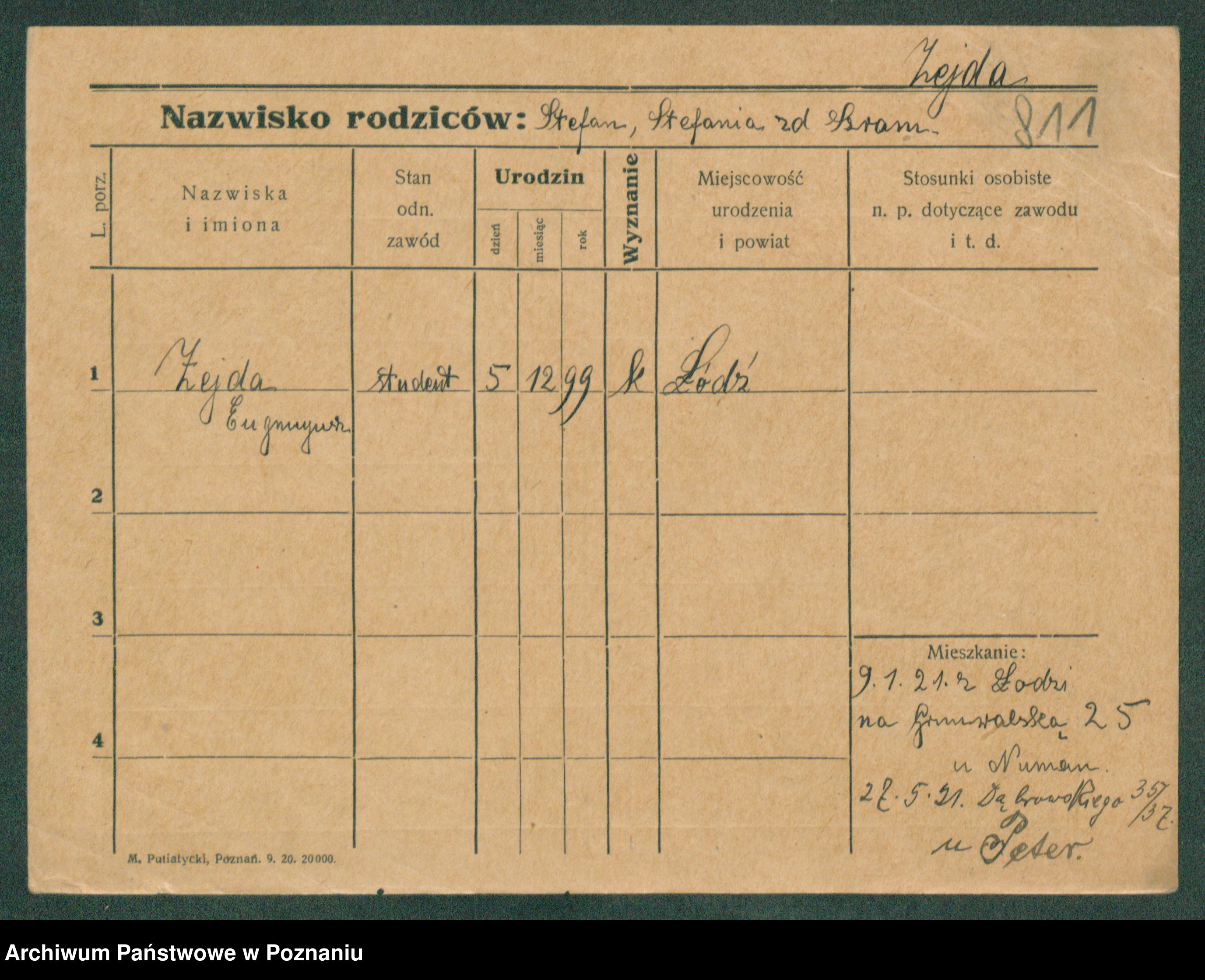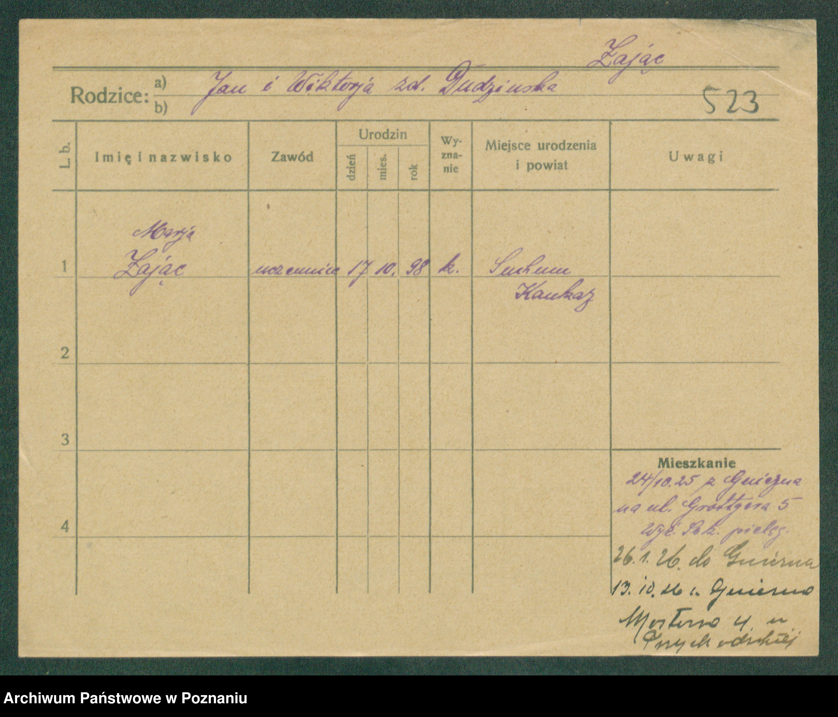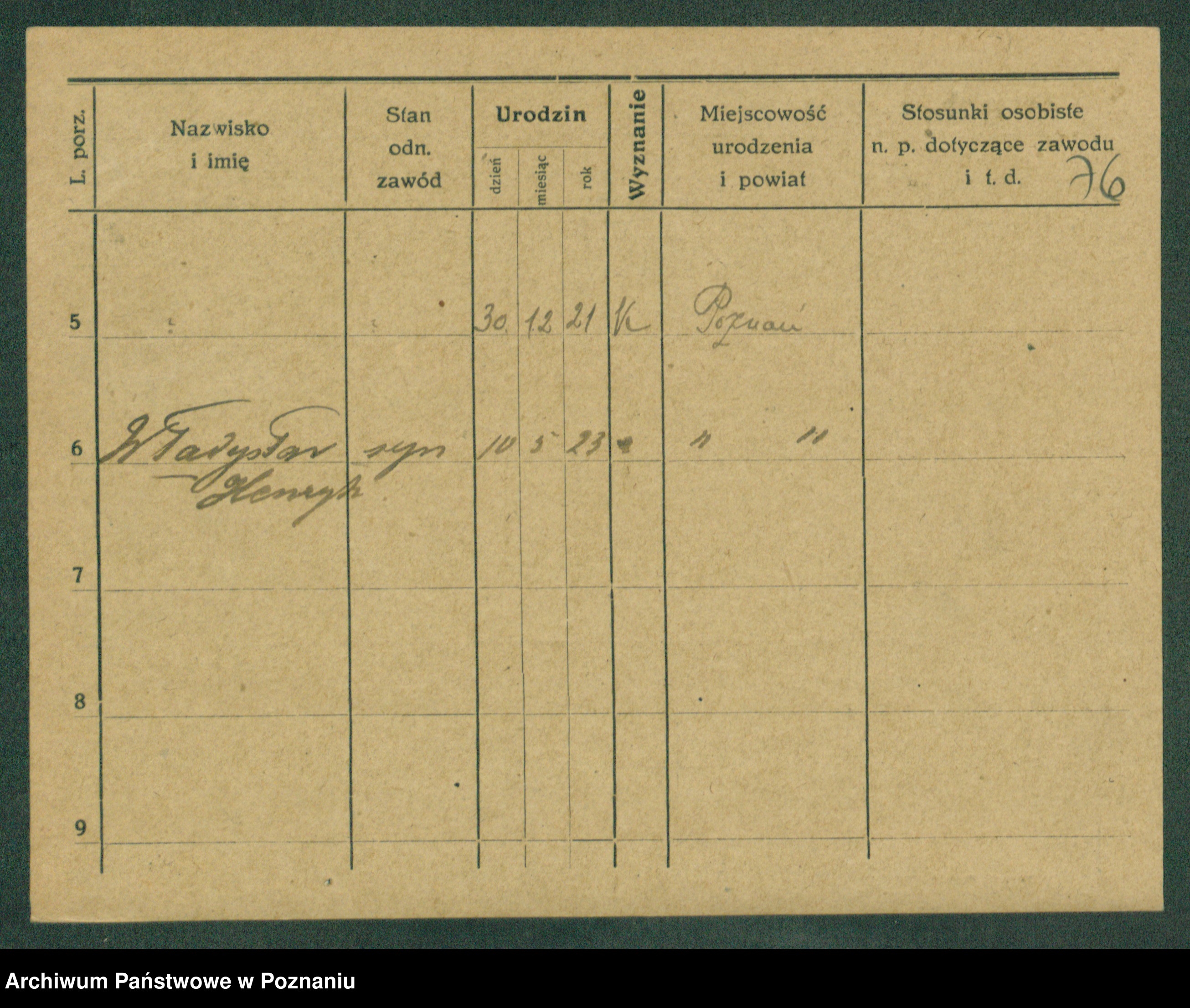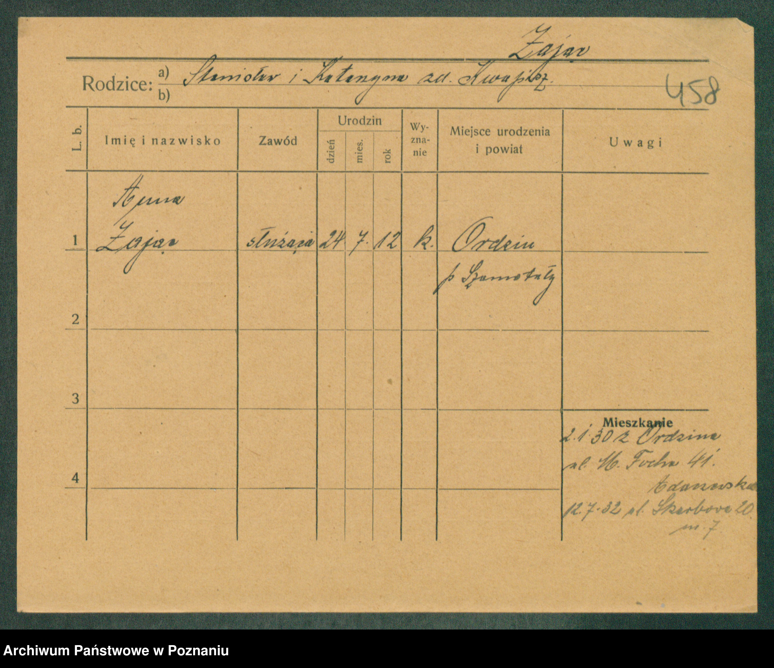 Podgląd karty osobowej dostępny jest po kliknięciu na nazwisko lub ikonkę karty. Można dokonywać powiększenia (ikony na górze) lub przechodzić między kolejnymi skanami (strzałki po bokach).