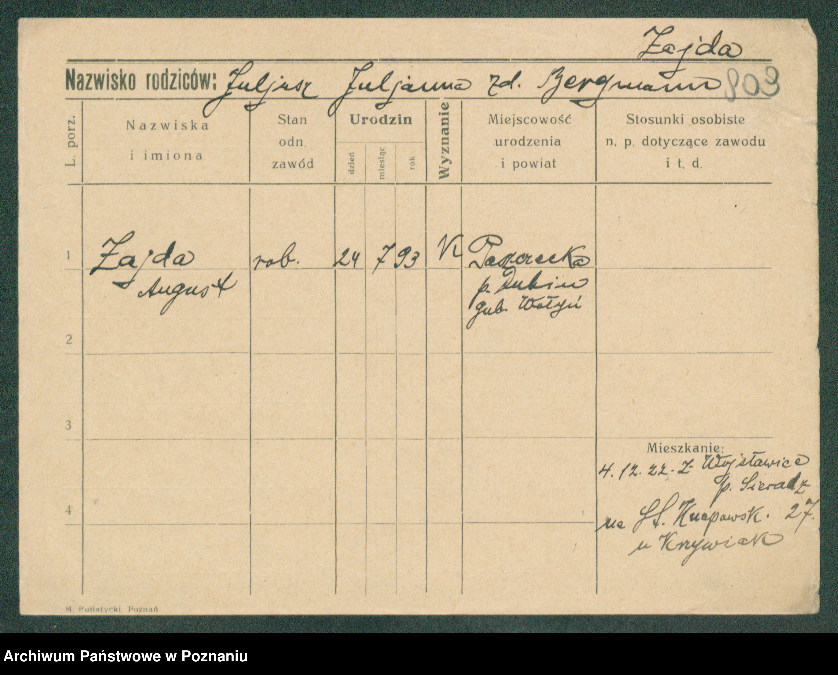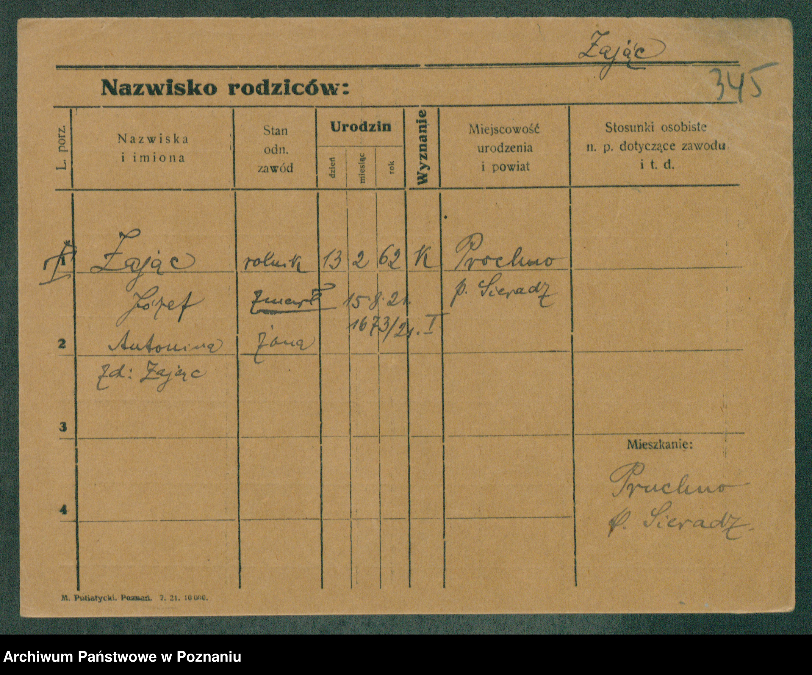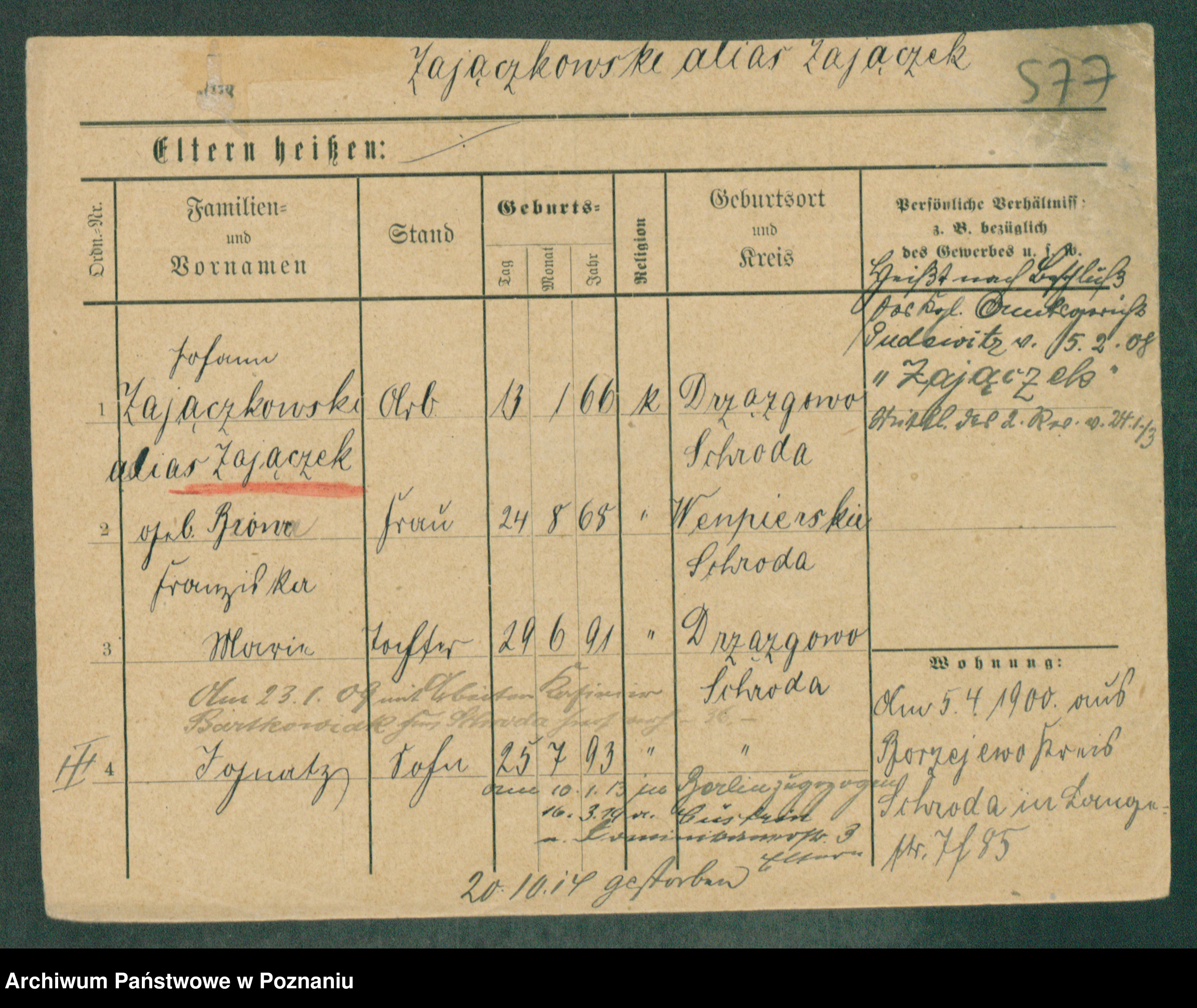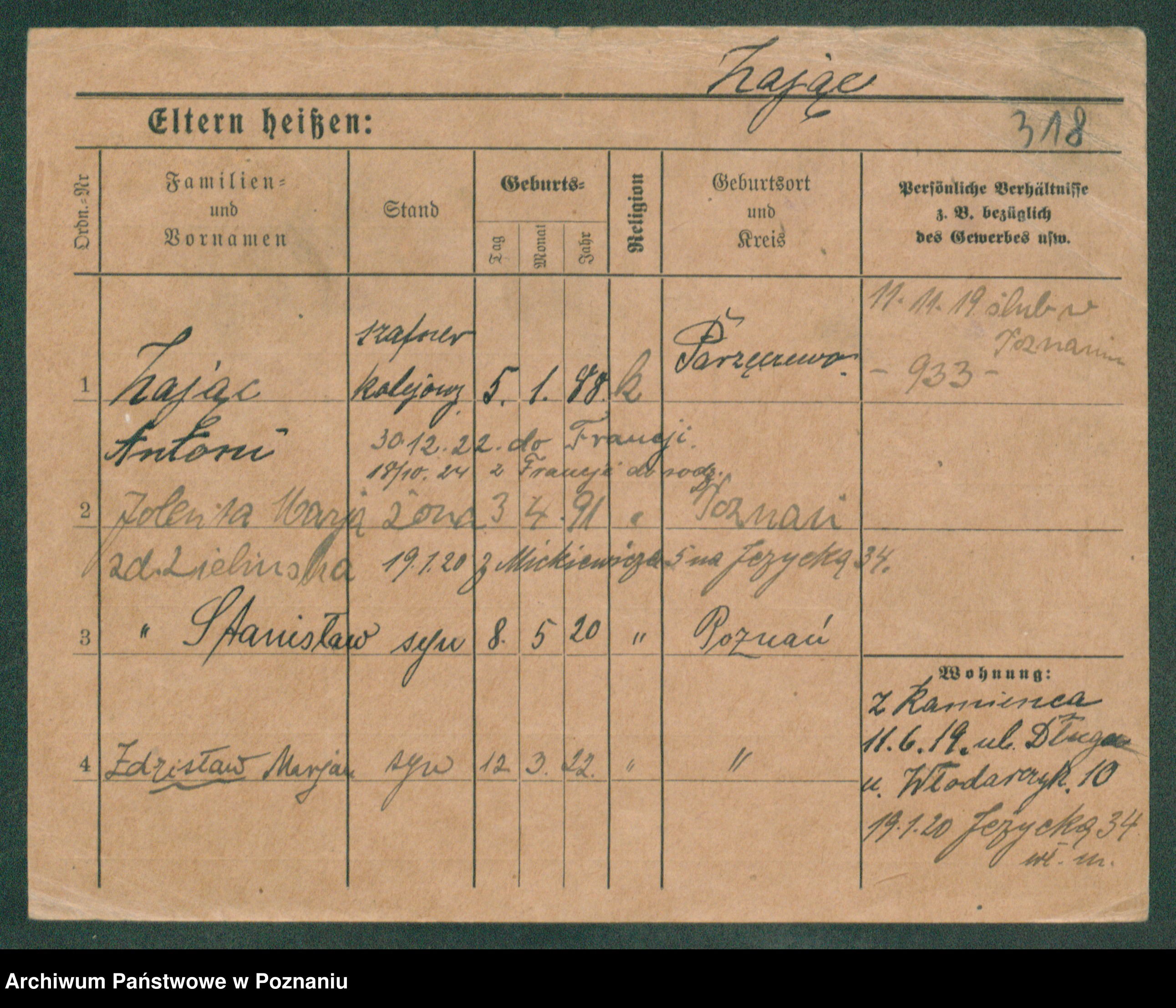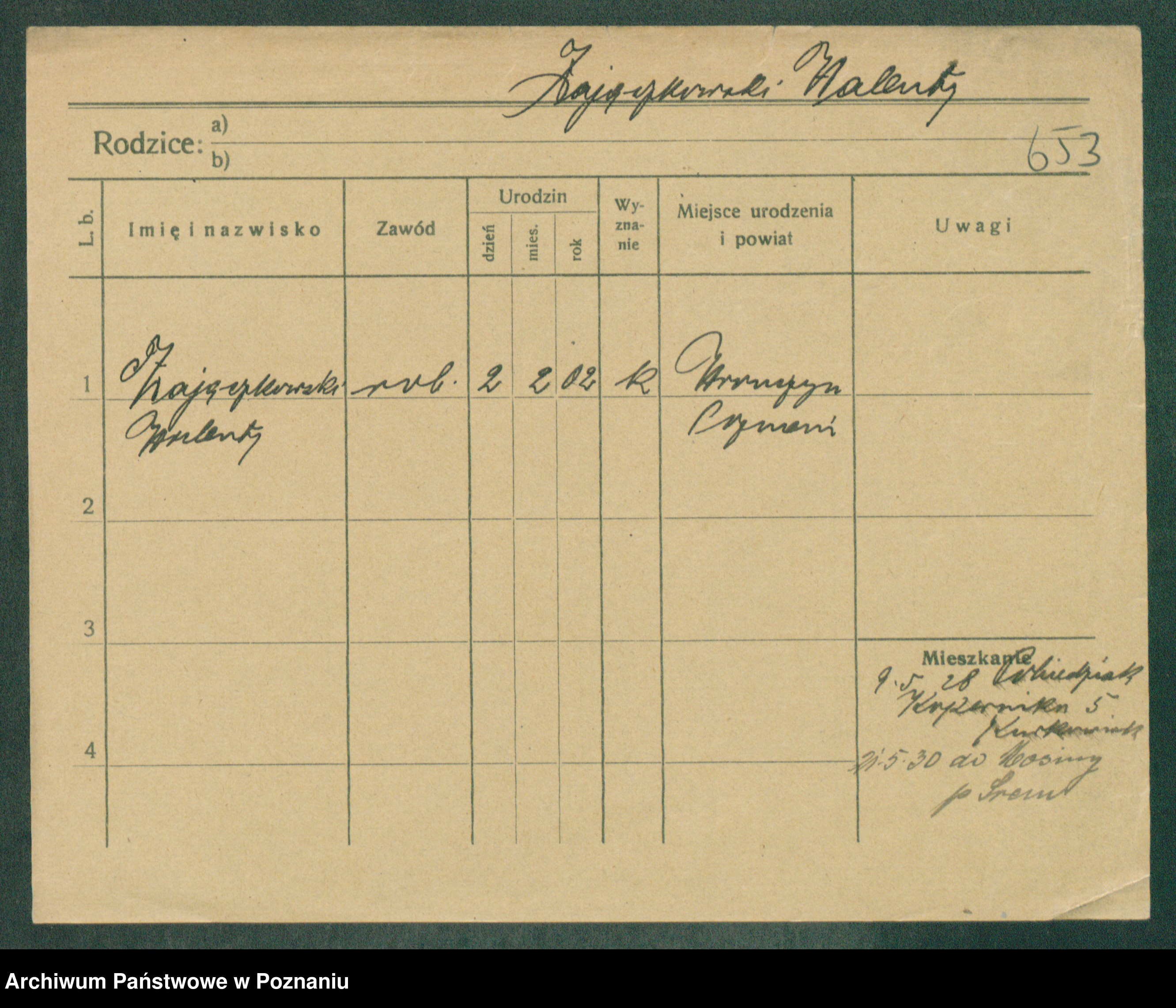 Podgląd karty osobowej dostępny jest po kliknięciu na nazwisko lub ikonkę karty. Można dokonywać powiększenia (ikony na górze) lub przechodzić między kolejnymi skanami (strzałki po bokach).