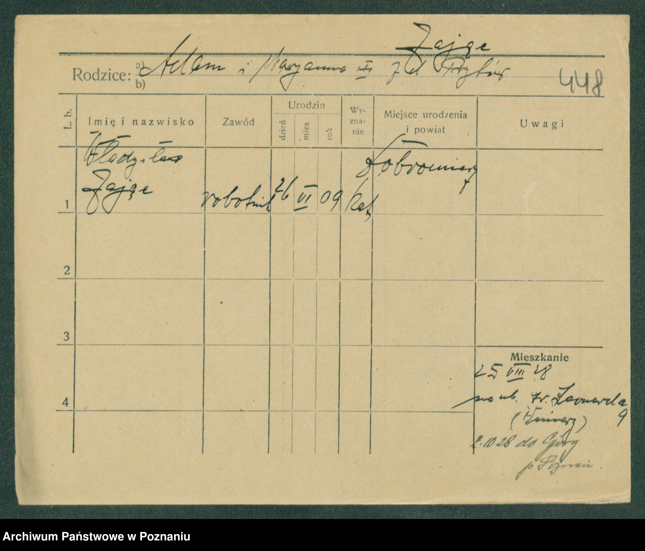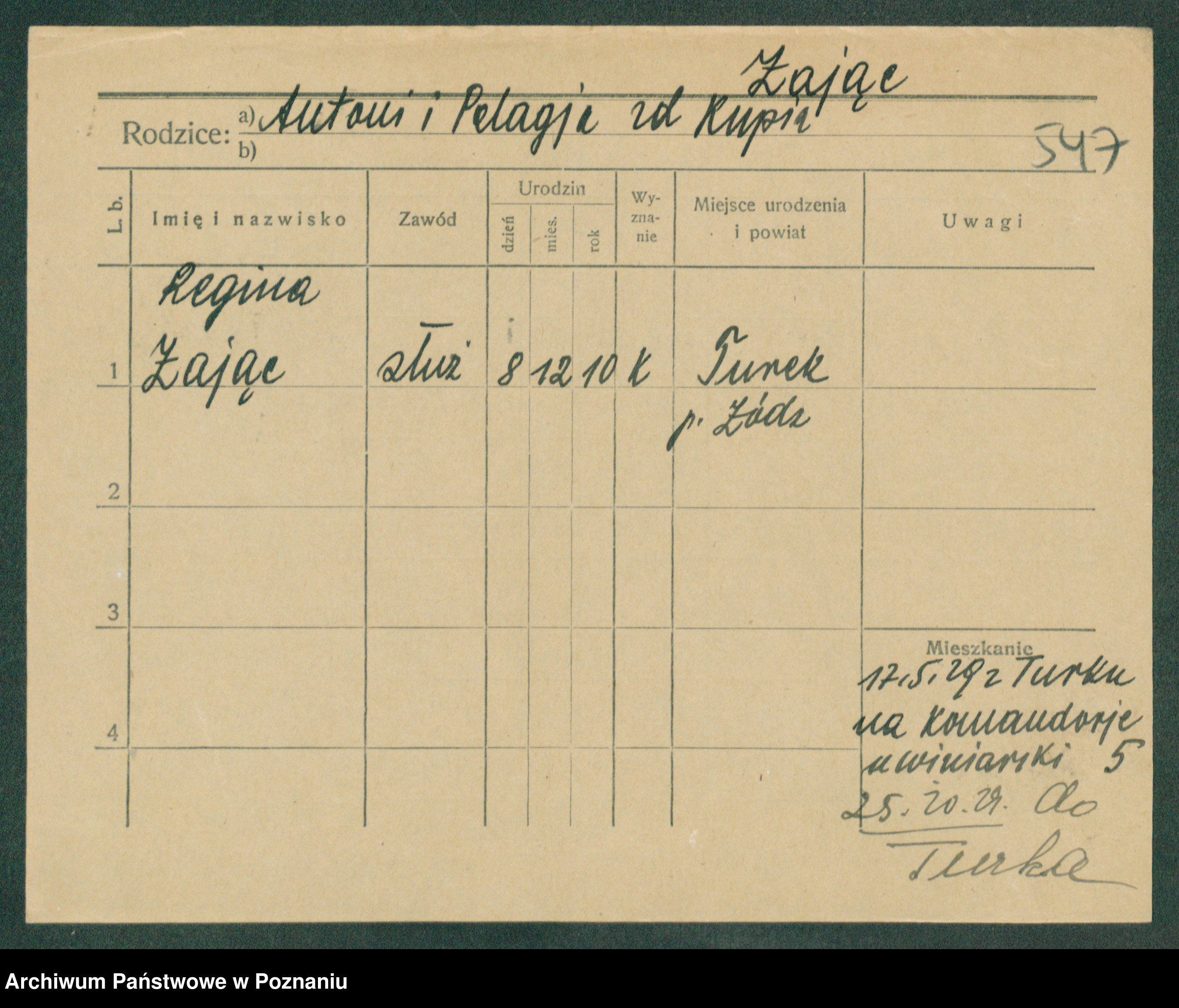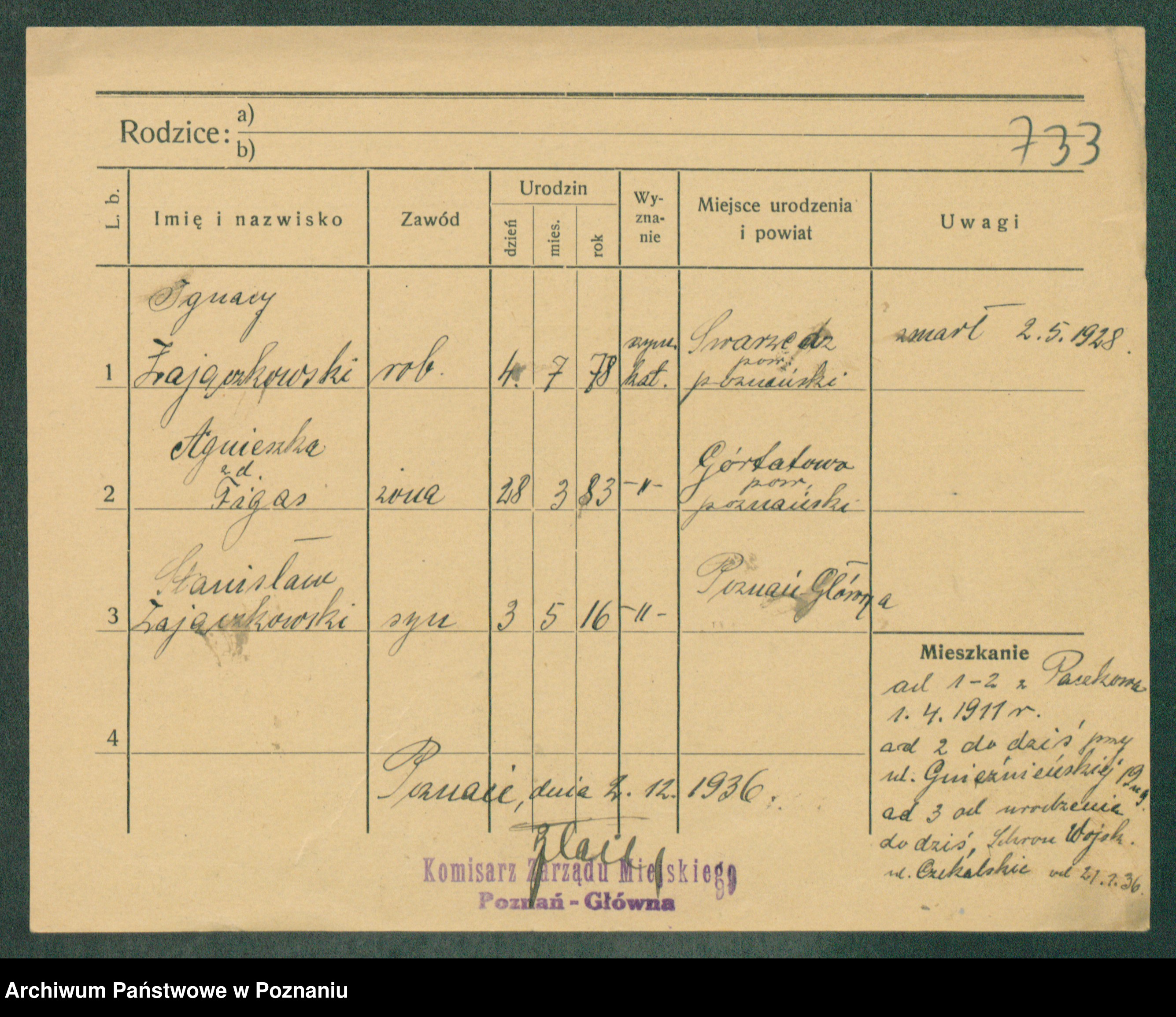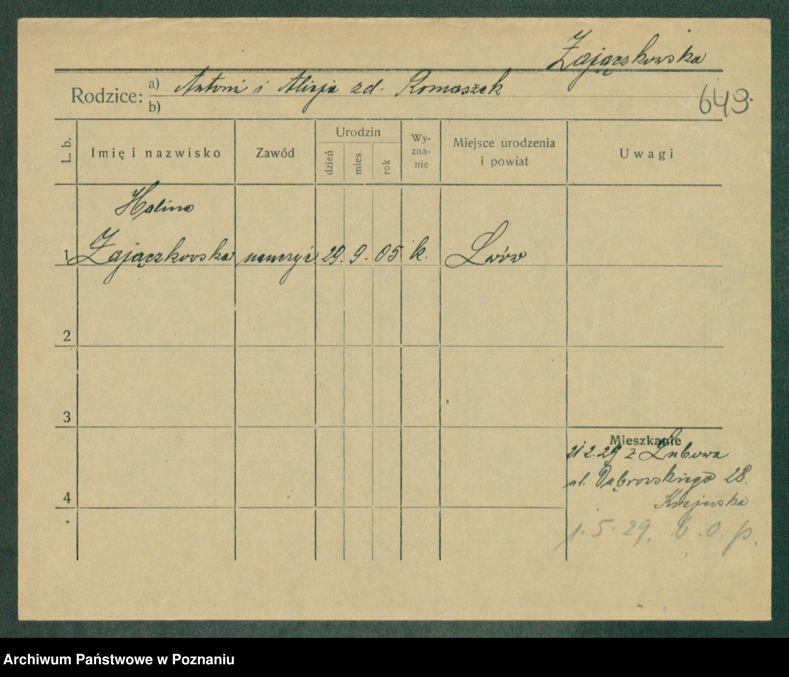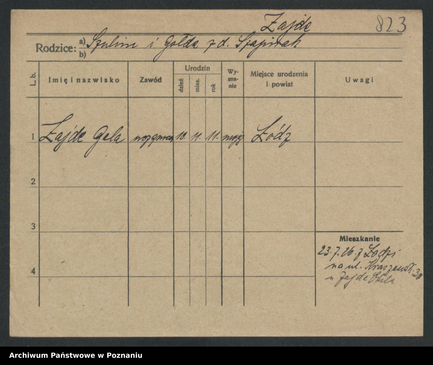 Podgląd karty osobowej dostępny jest po kliknięciu na nazwisko lub ikonkę karty. Można dokonywać powiększenia (ikony na górze) lub przechodzić między kolejnymi skanami (strzałki po bokach).