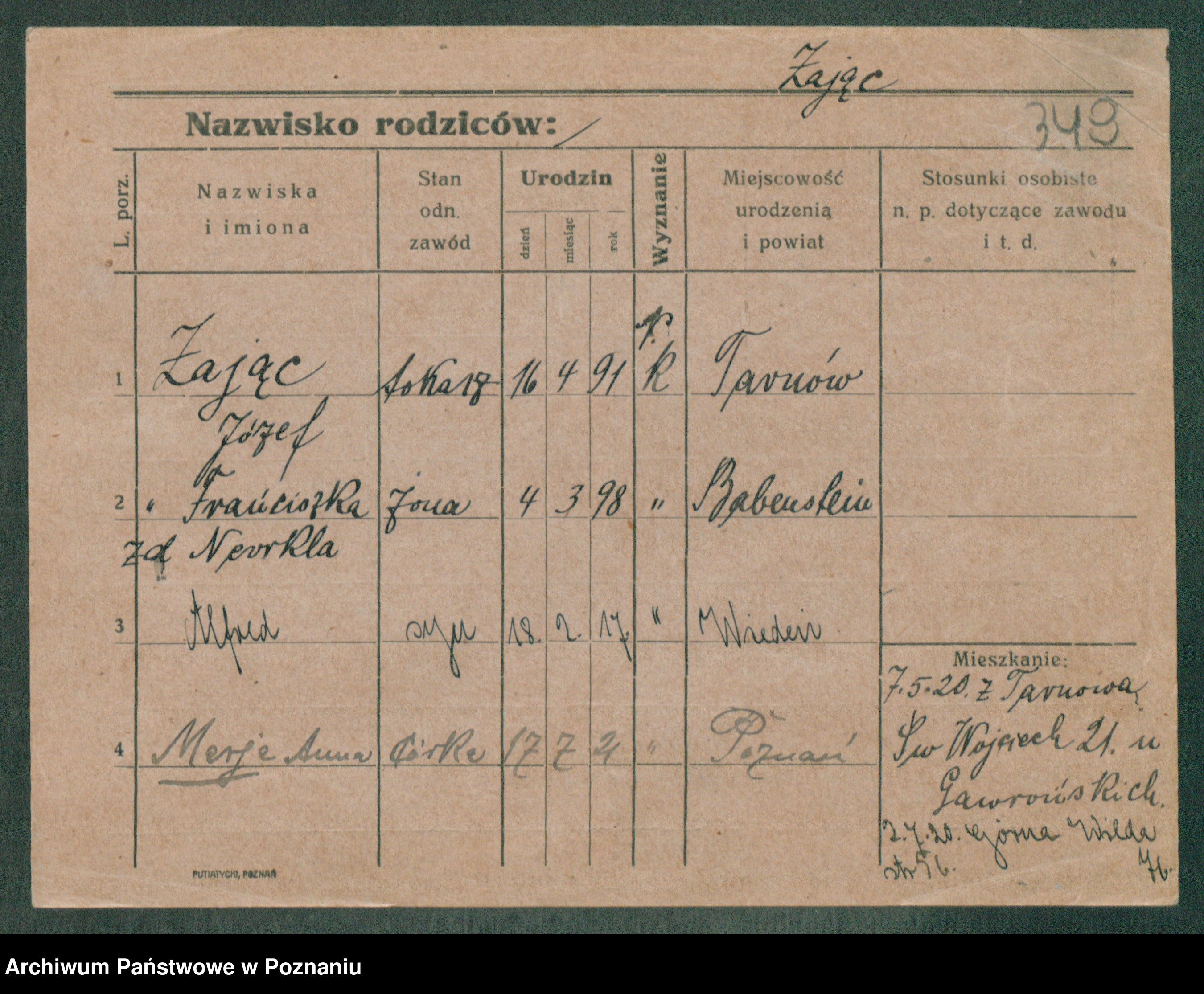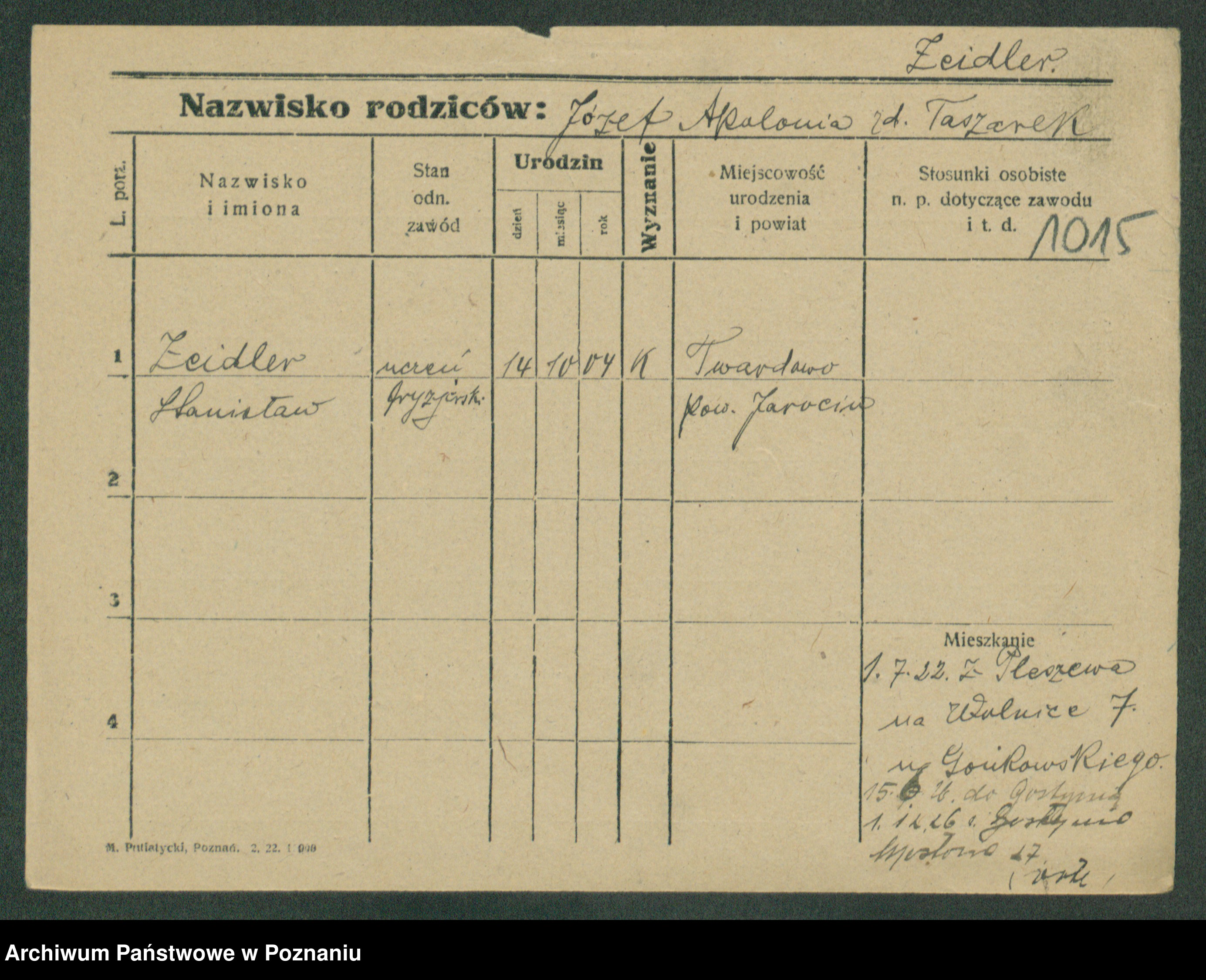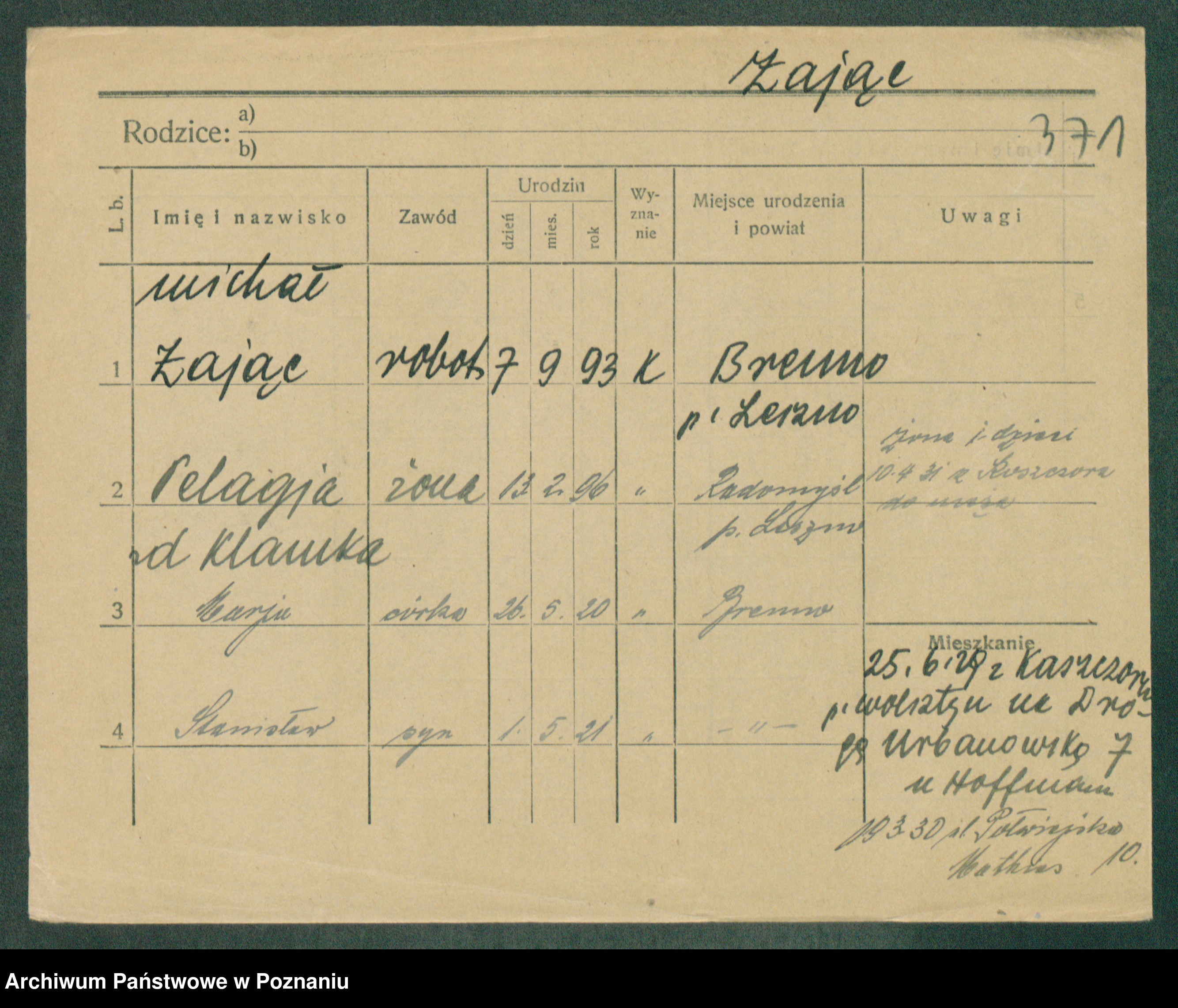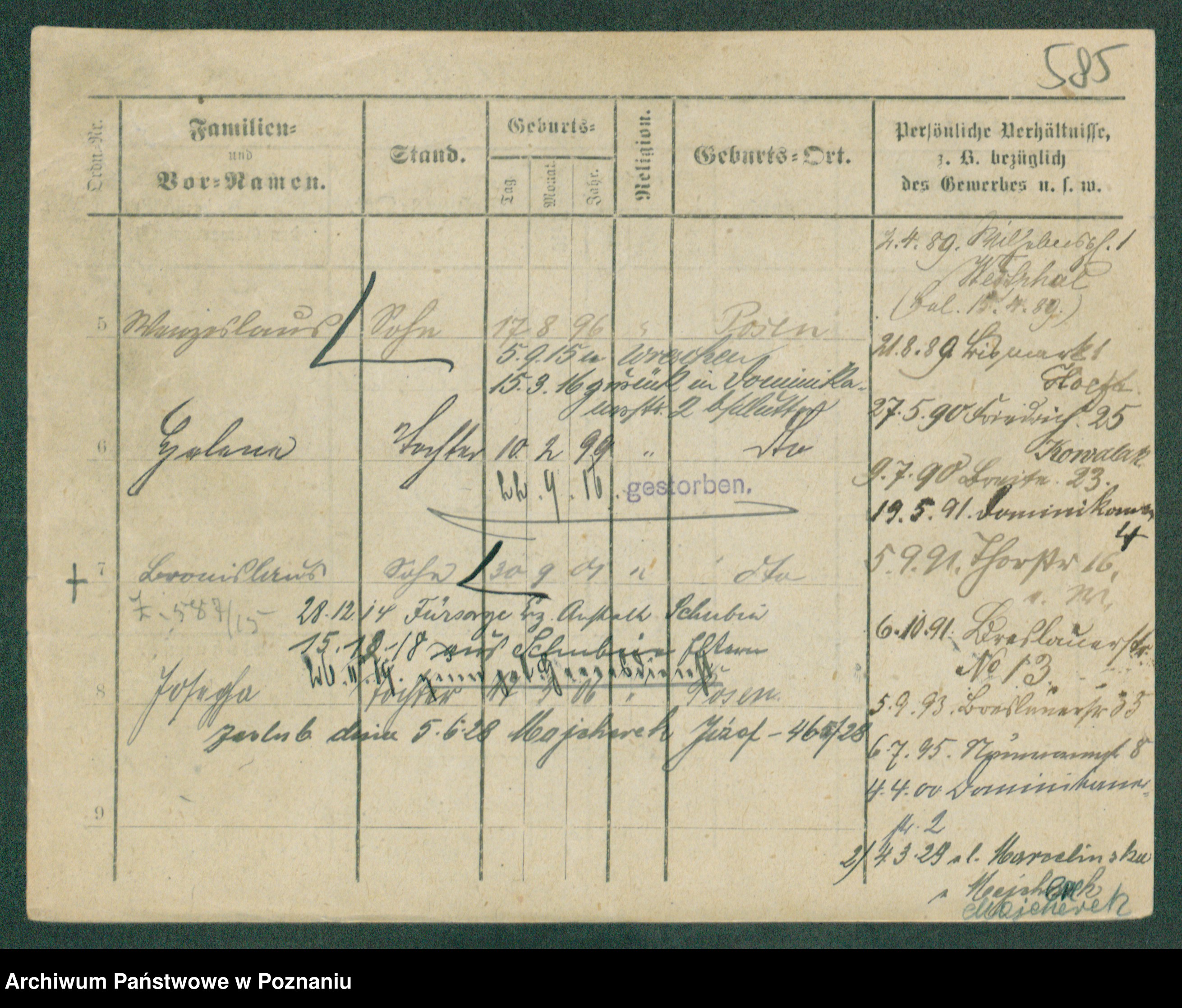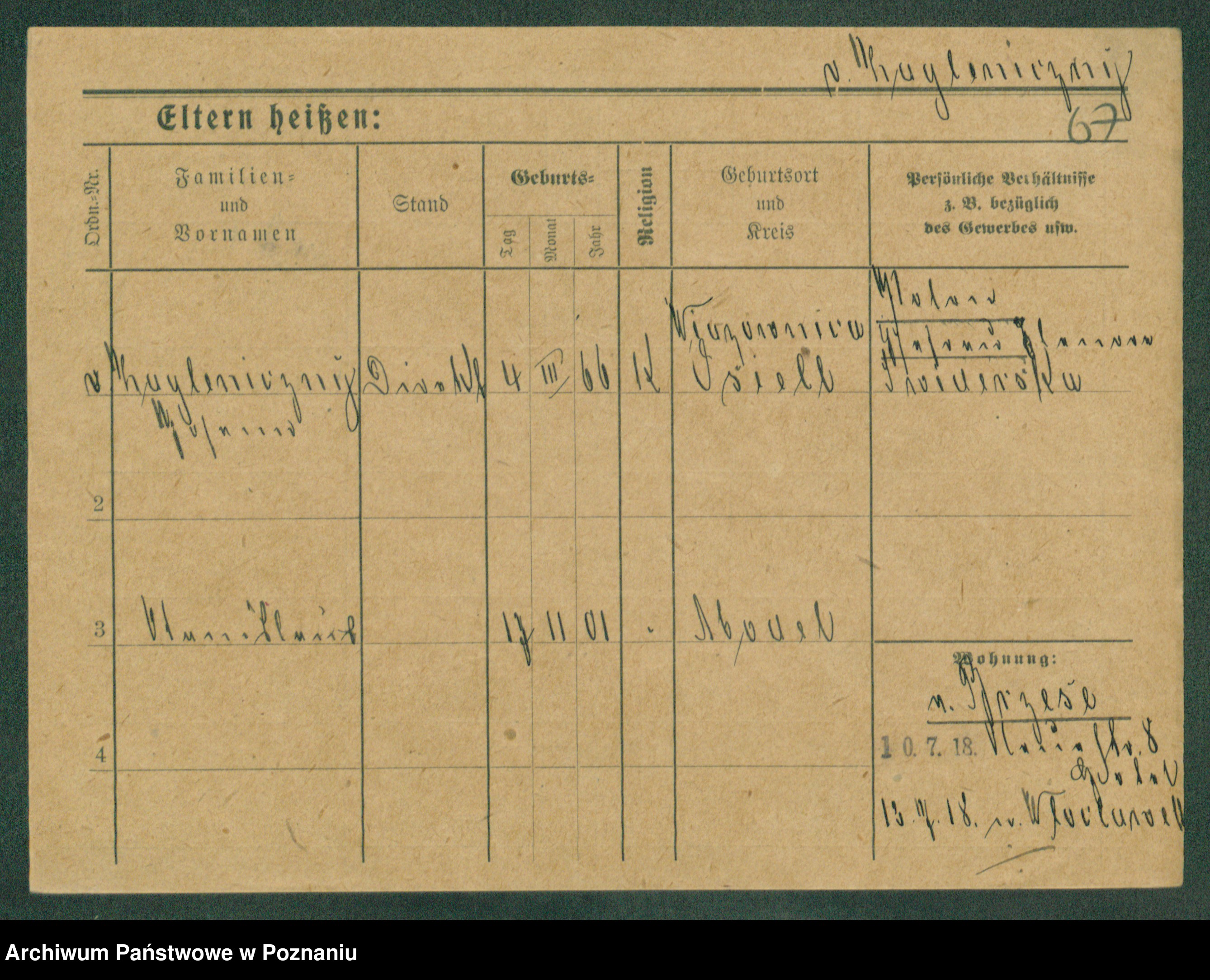 Podgląd karty osobowej dostępny jest po kliknięciu na nazwisko lub ikonkę karty. Można dokonywać powiększenia (ikony na górze) lub przechodzić między kolejnymi skanami (strzałki po bokach).