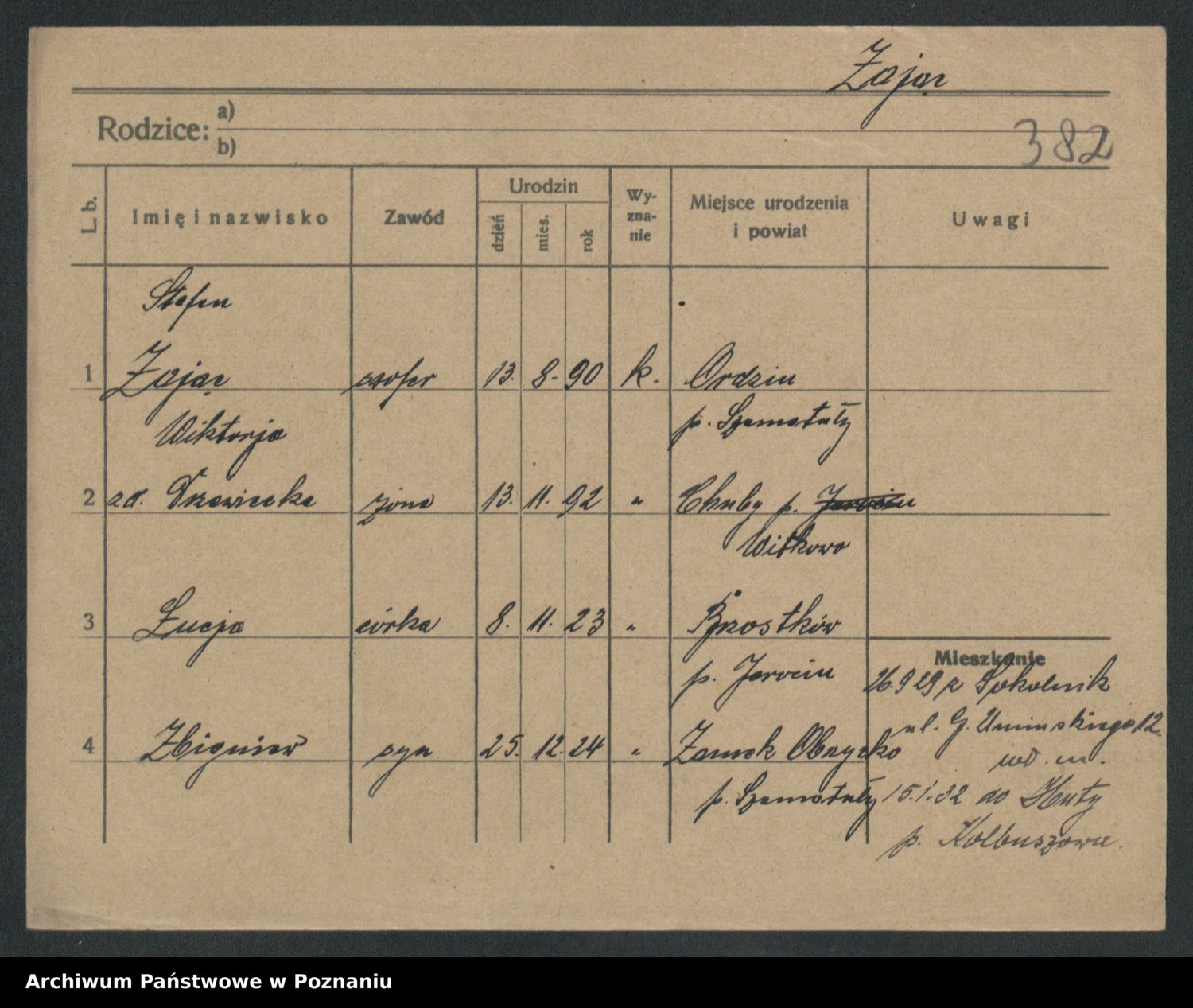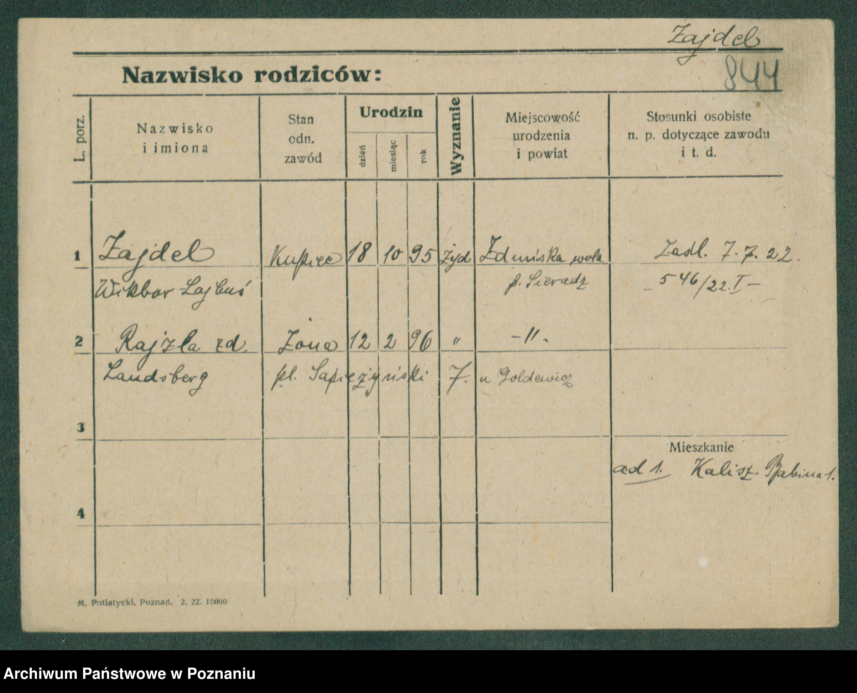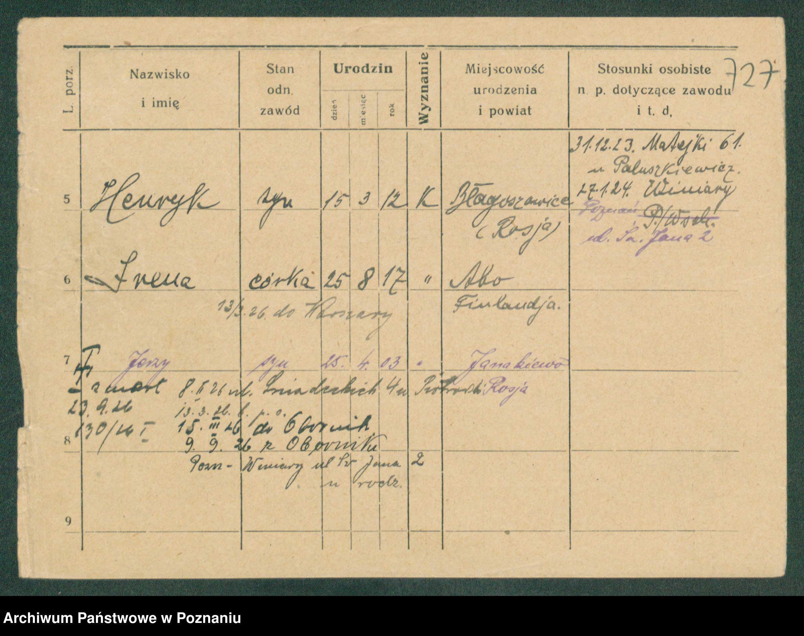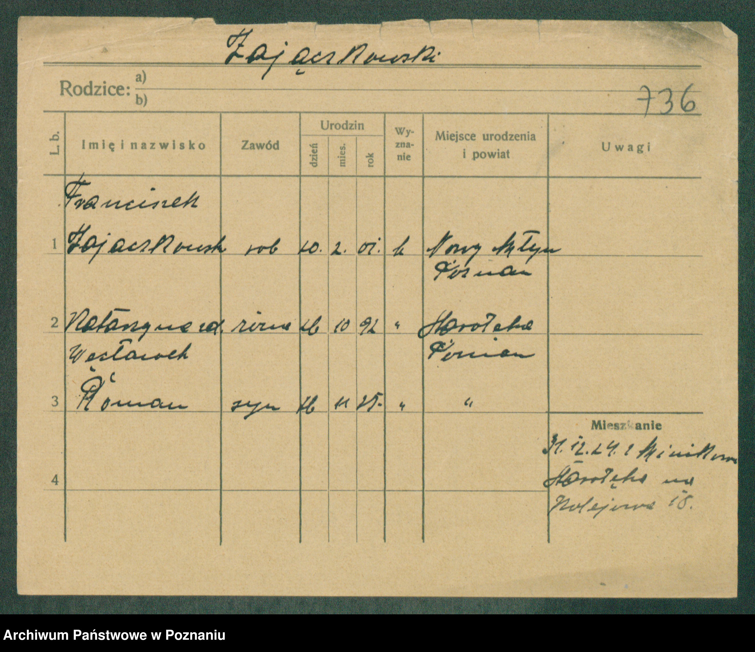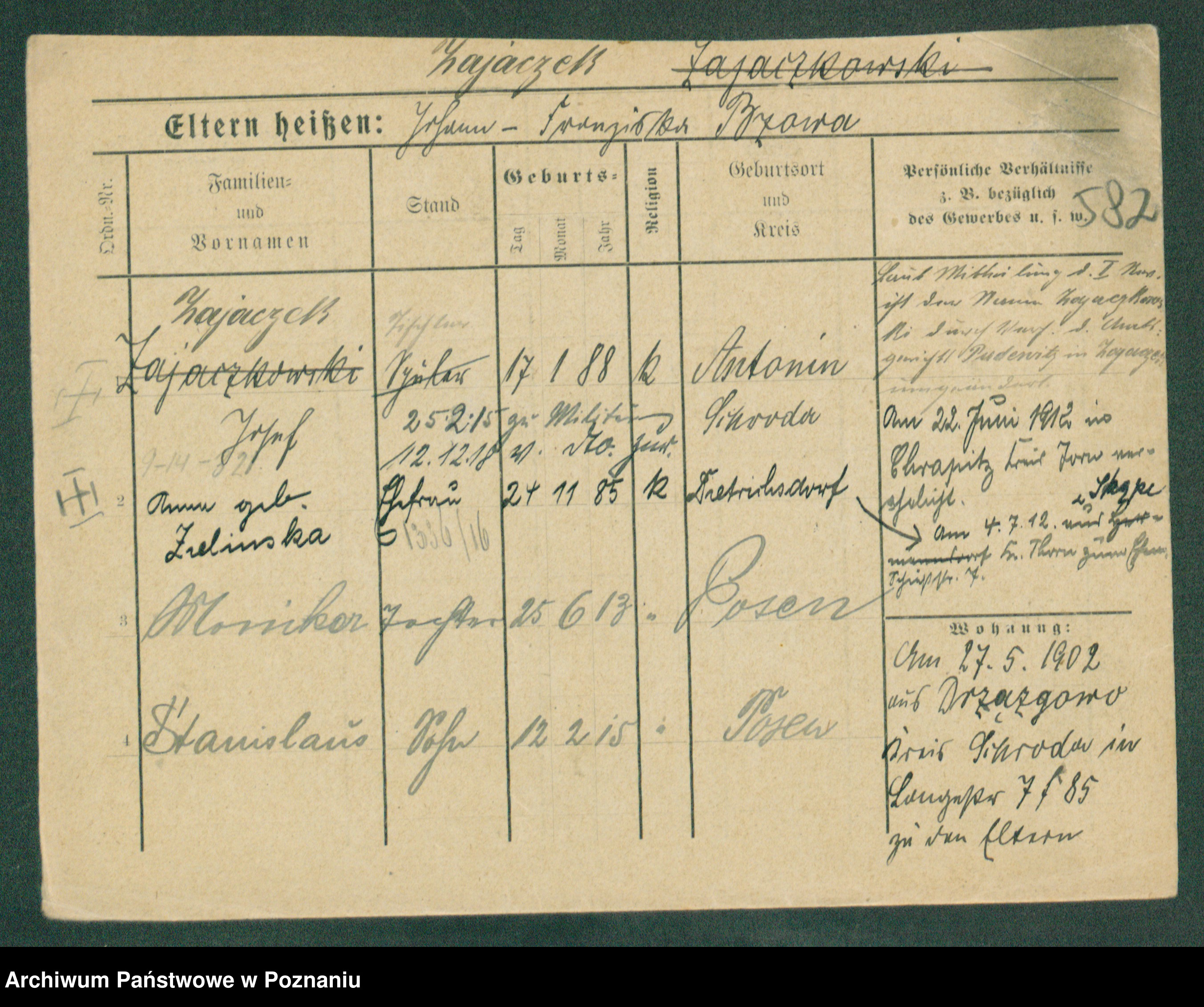 Podgląd karty osobowej dostępny jest po kliknięciu na nazwisko lub ikonkę karty. Można dokonywać powiększenia (ikony na górze) lub przechodzić między kolejnymi skanami (strzałki po bokach).