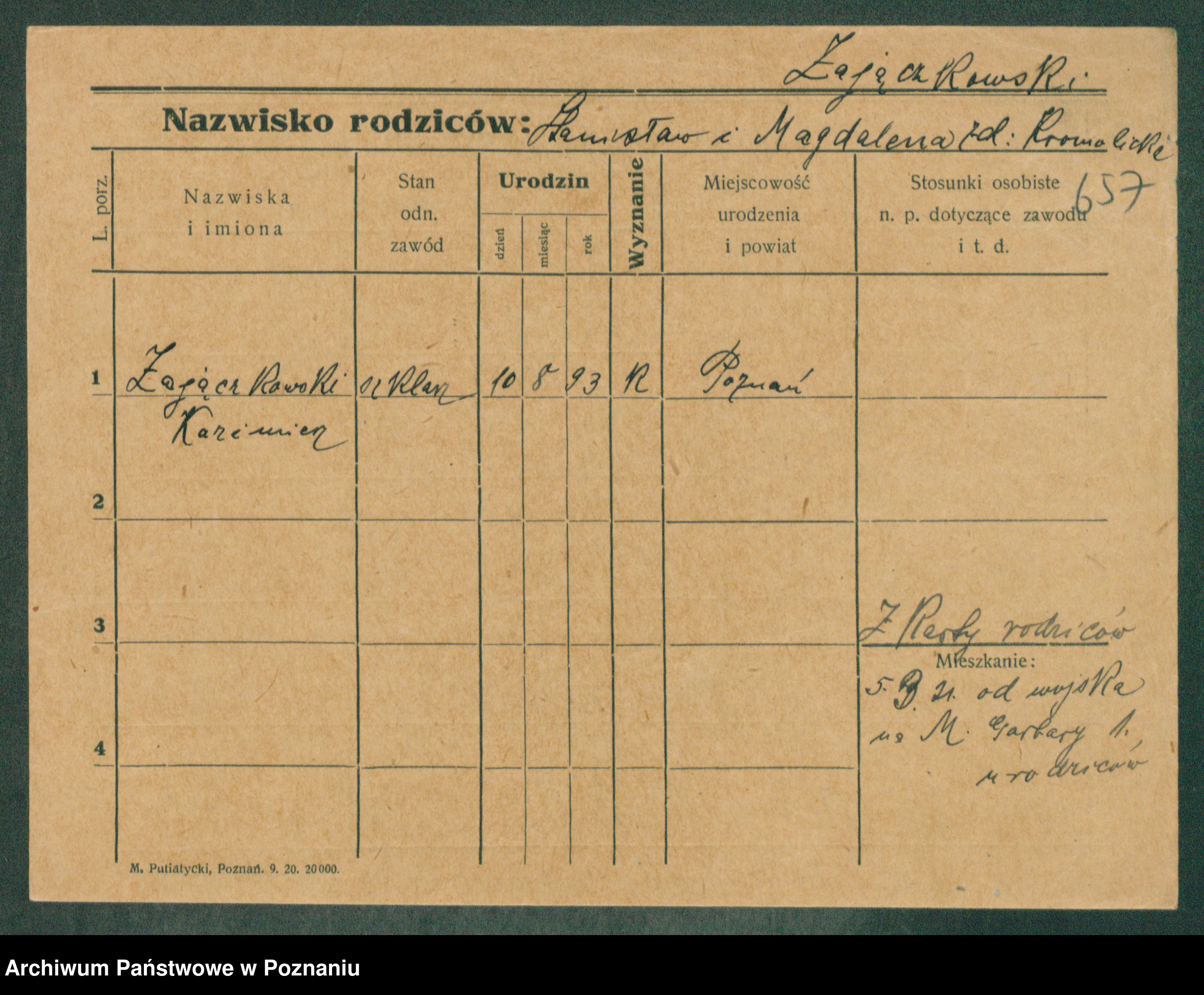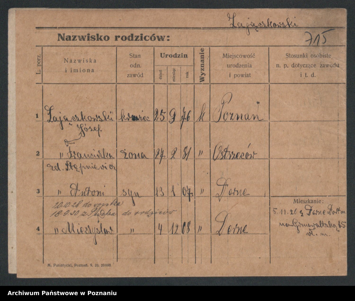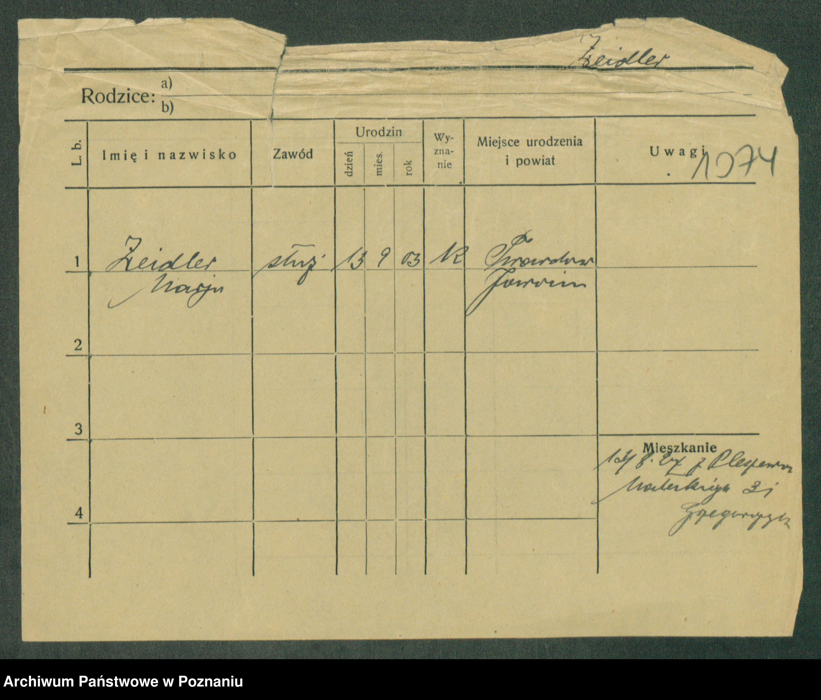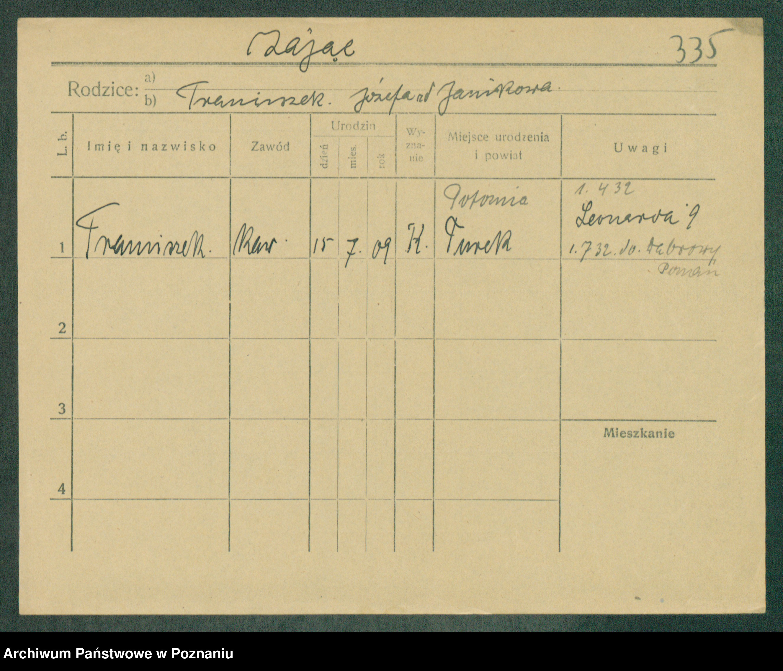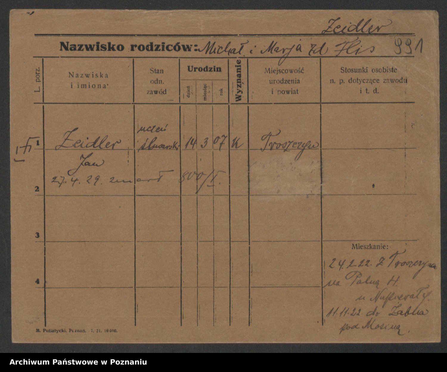 Podgląd karty osobowej dostępny jest po kliknięciu na nazwisko lub ikonkę karty. Można dokonywać powiększenia (ikony na górze) lub przechodzić między kolejnymi skanami (strzałki po bokach).