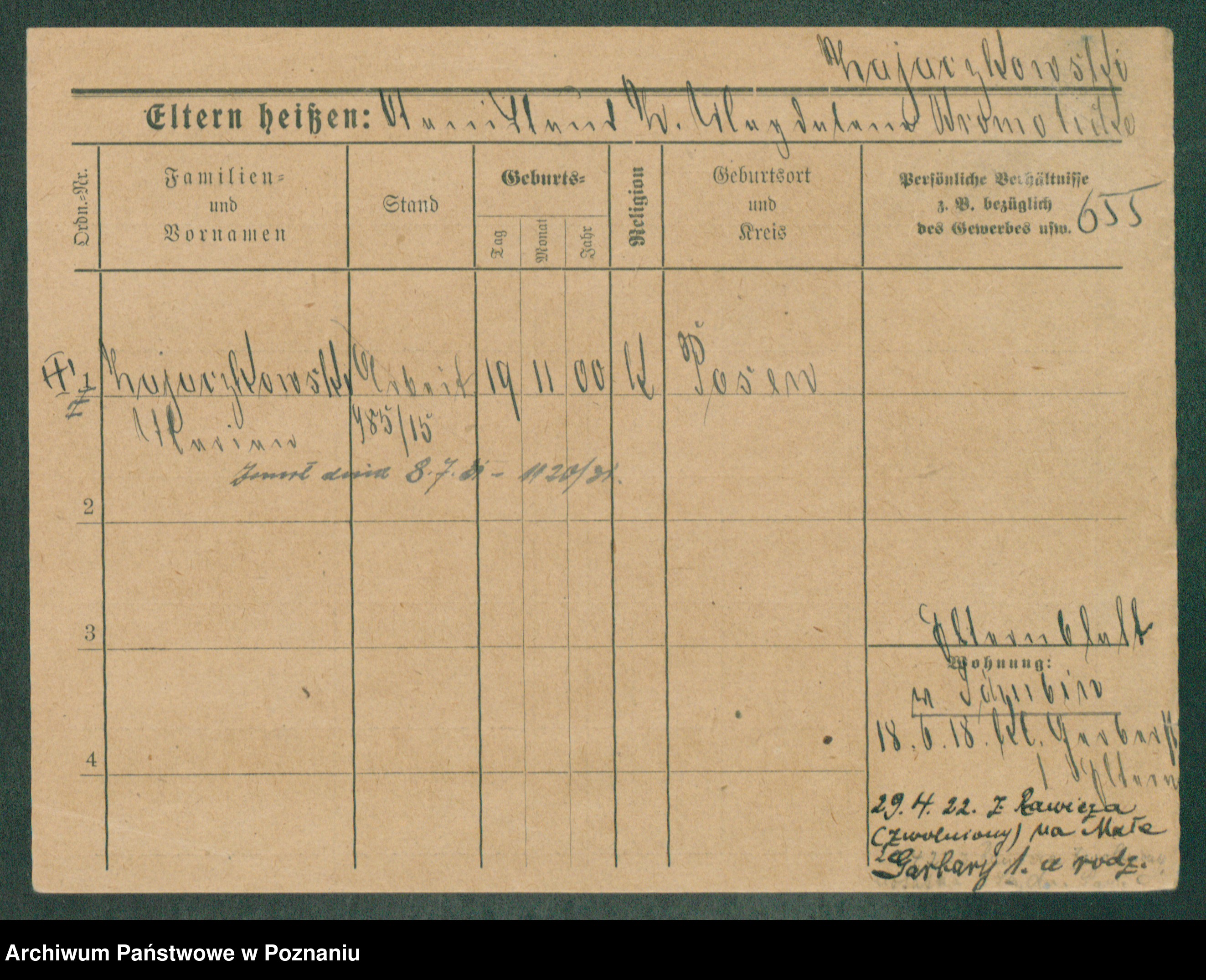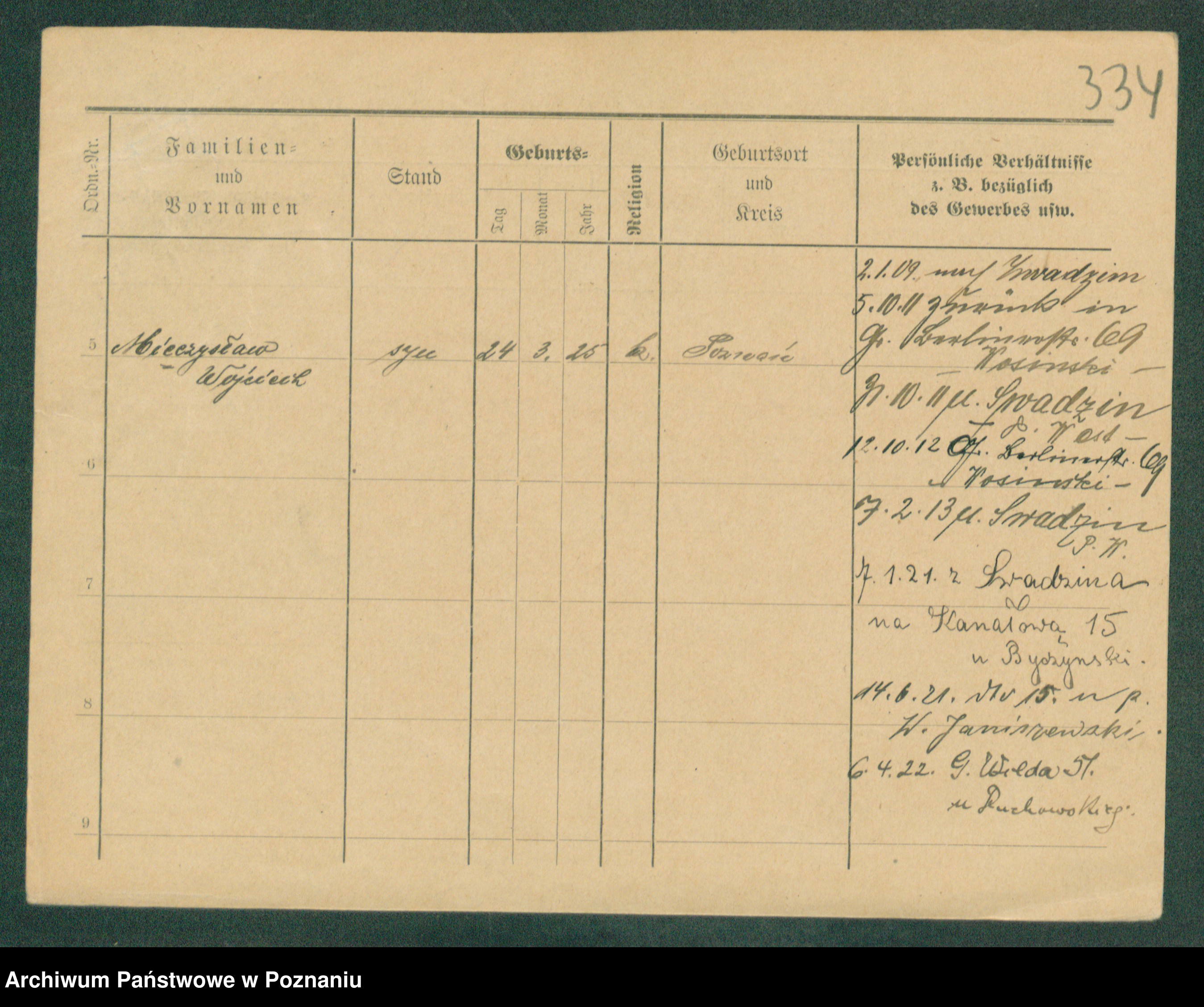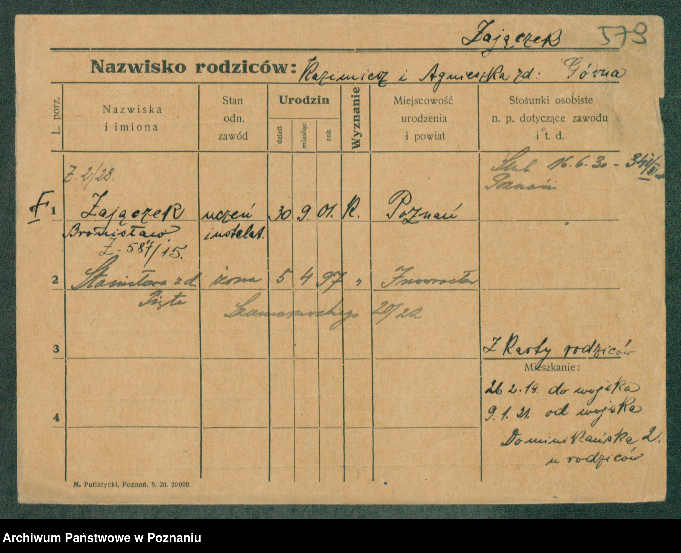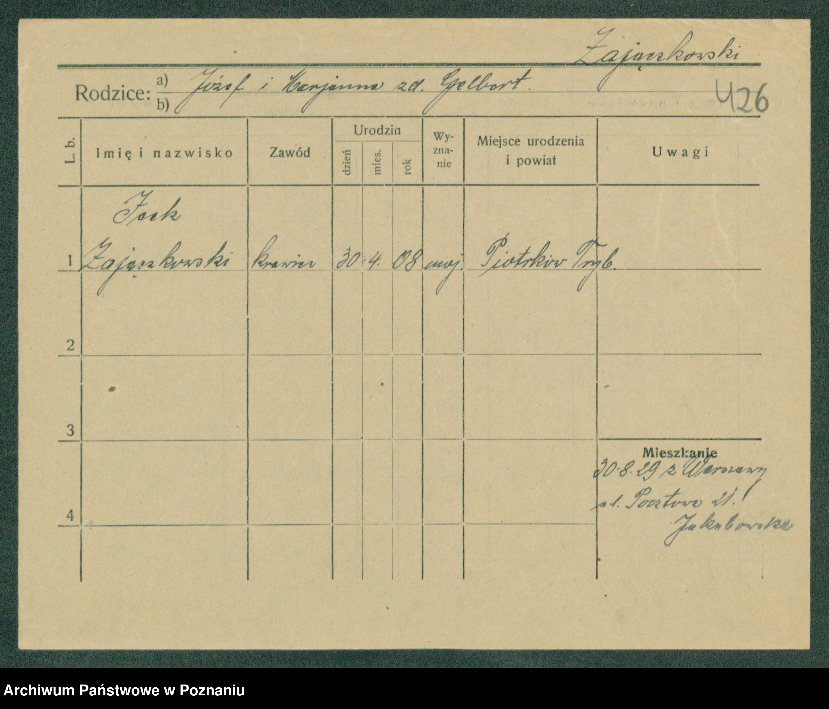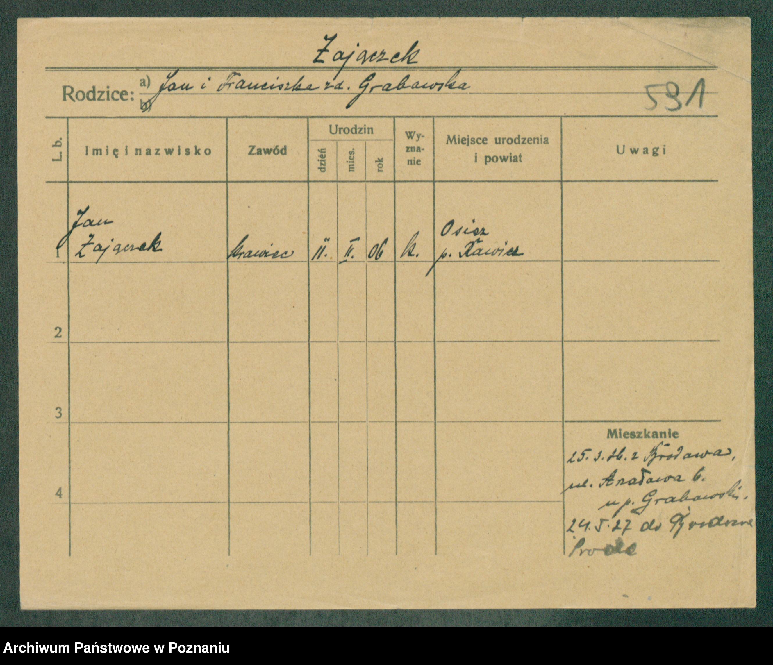 Podgląd karty osobowej dostępny jest po kliknięciu na nazwisko lub ikonkę karty. Można dokonywać powiększenia (ikony na górze) lub przechodzić między kolejnymi skanami (strzałki po bokach).
