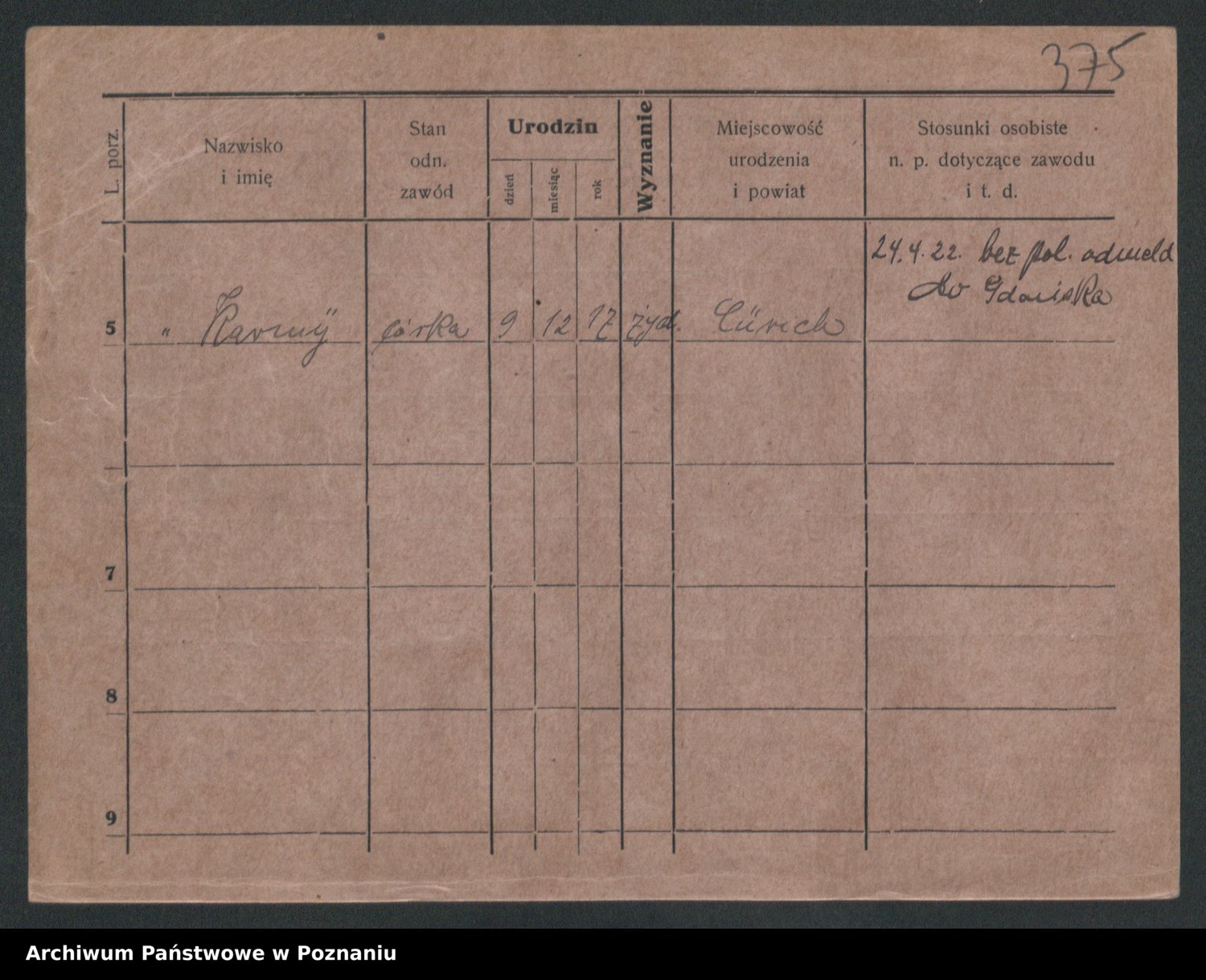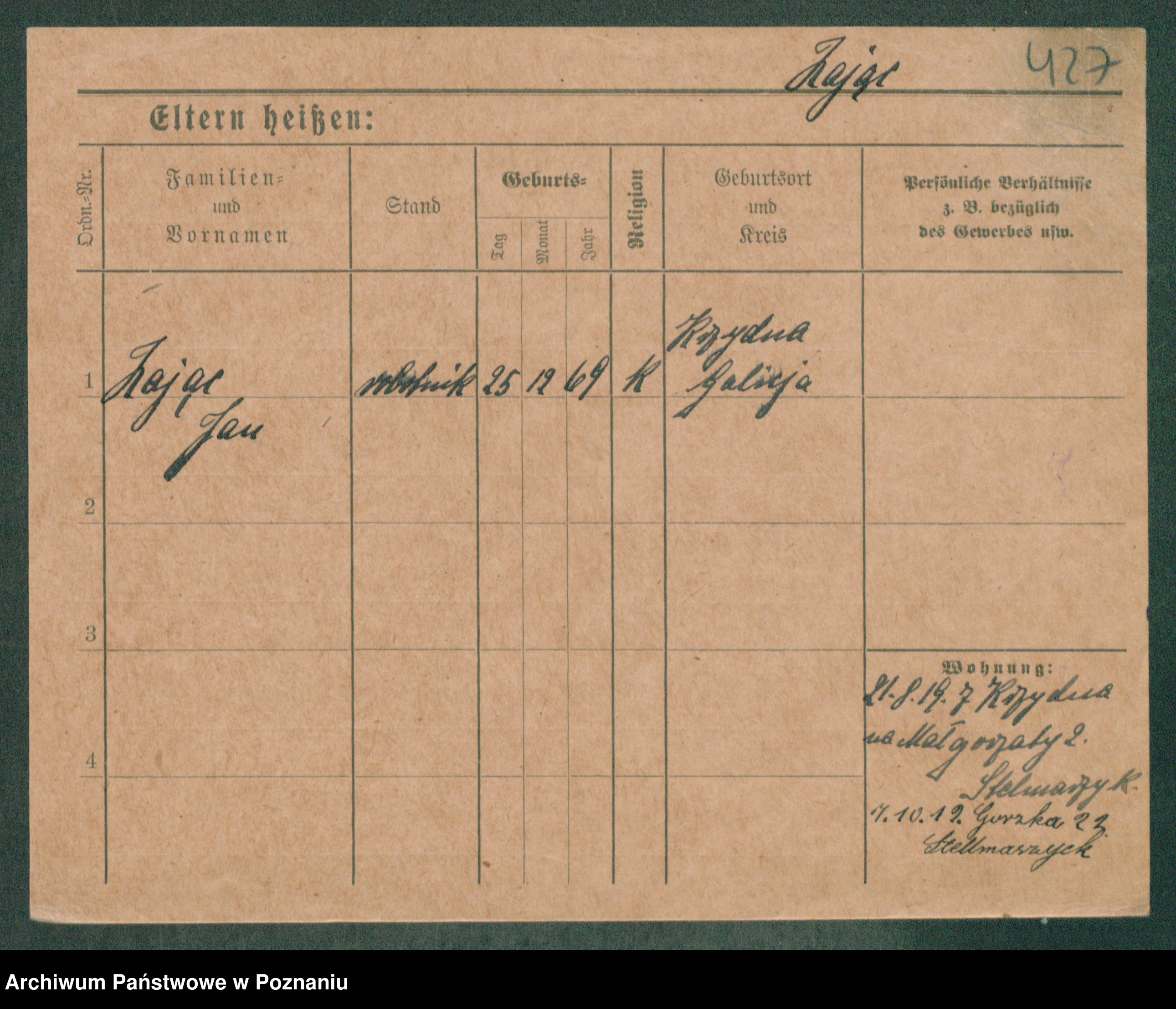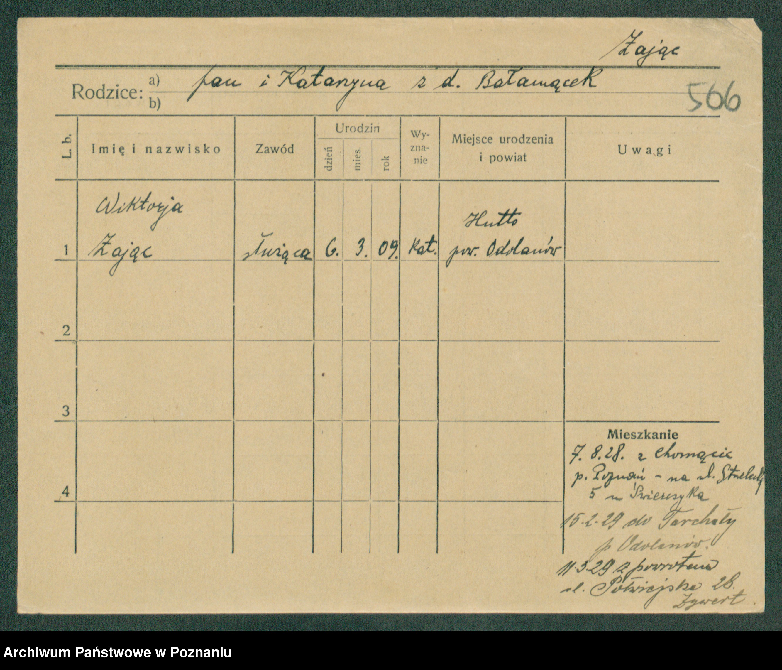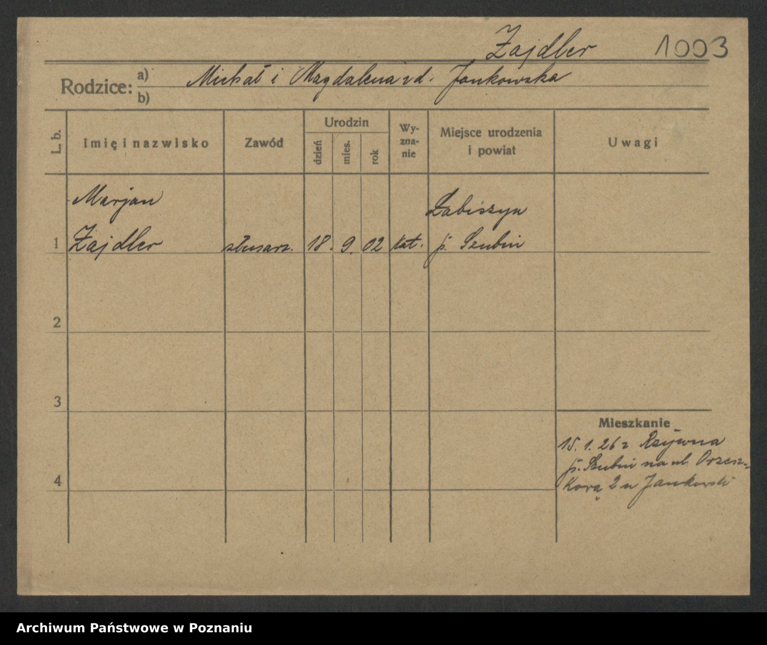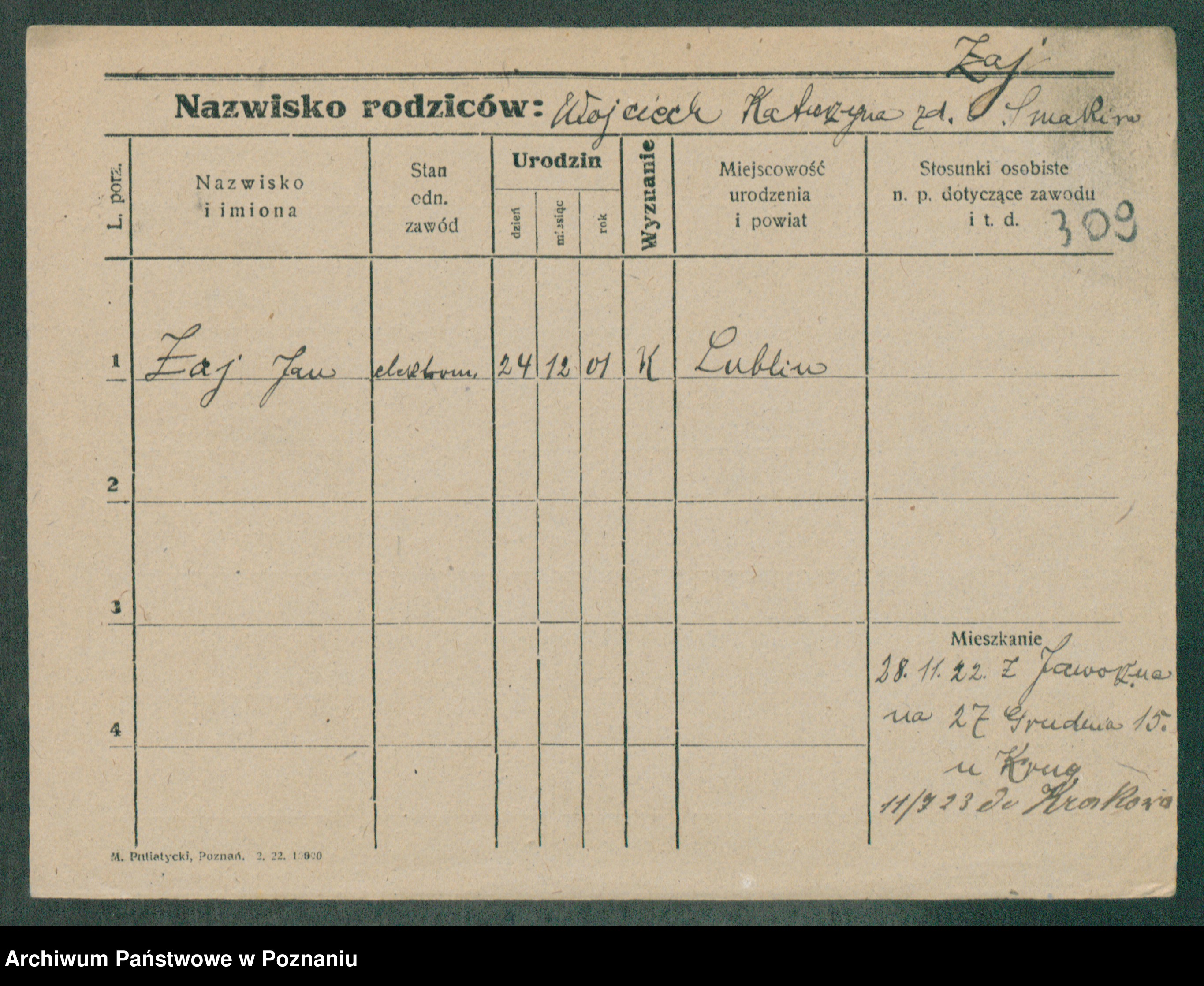 Podgląd karty osobowej dostępny jest po kliknięciu na nazwisko lub ikonkę karty. Można dokonywać powiększenia (ikony na górze) lub przechodzić między kolejnymi skanami (strzałki po bokach).
