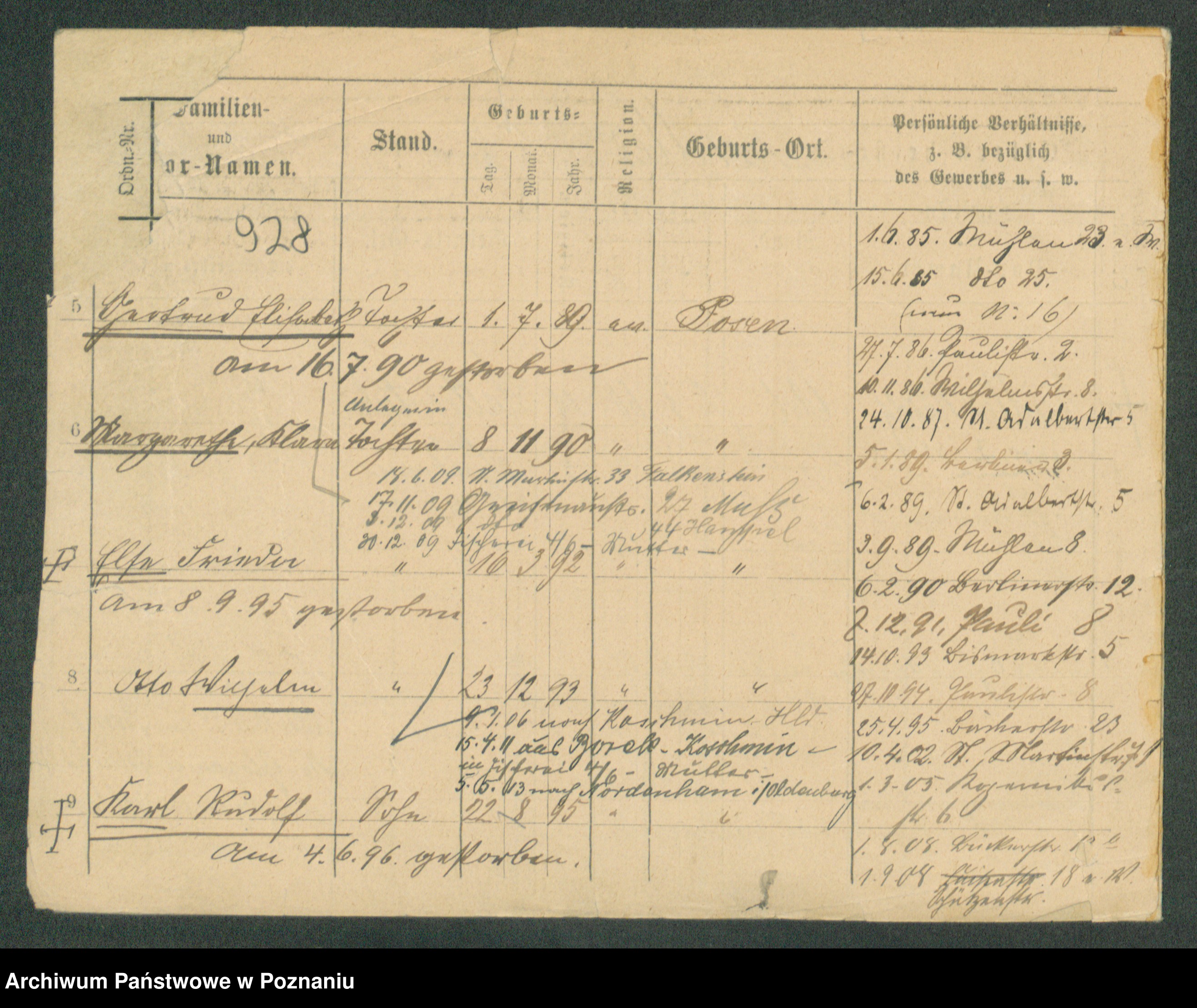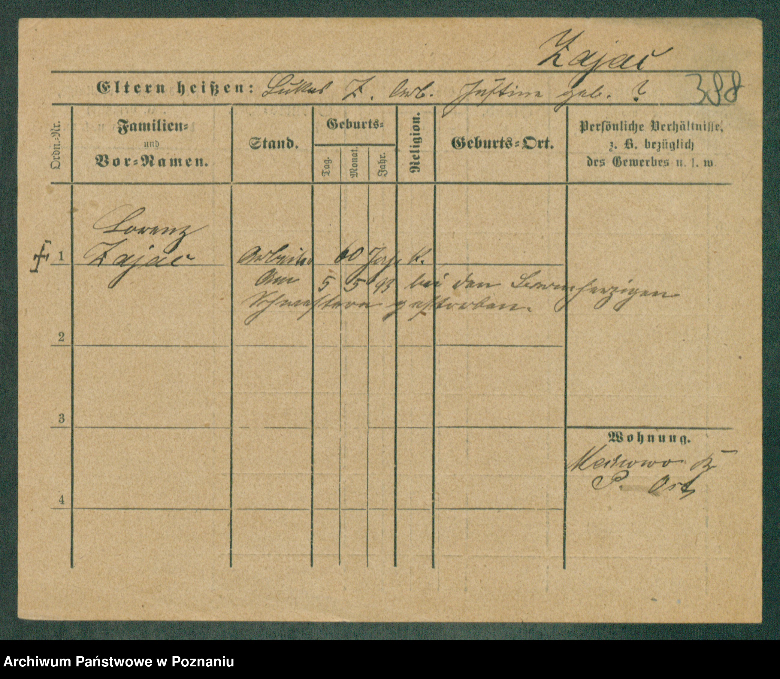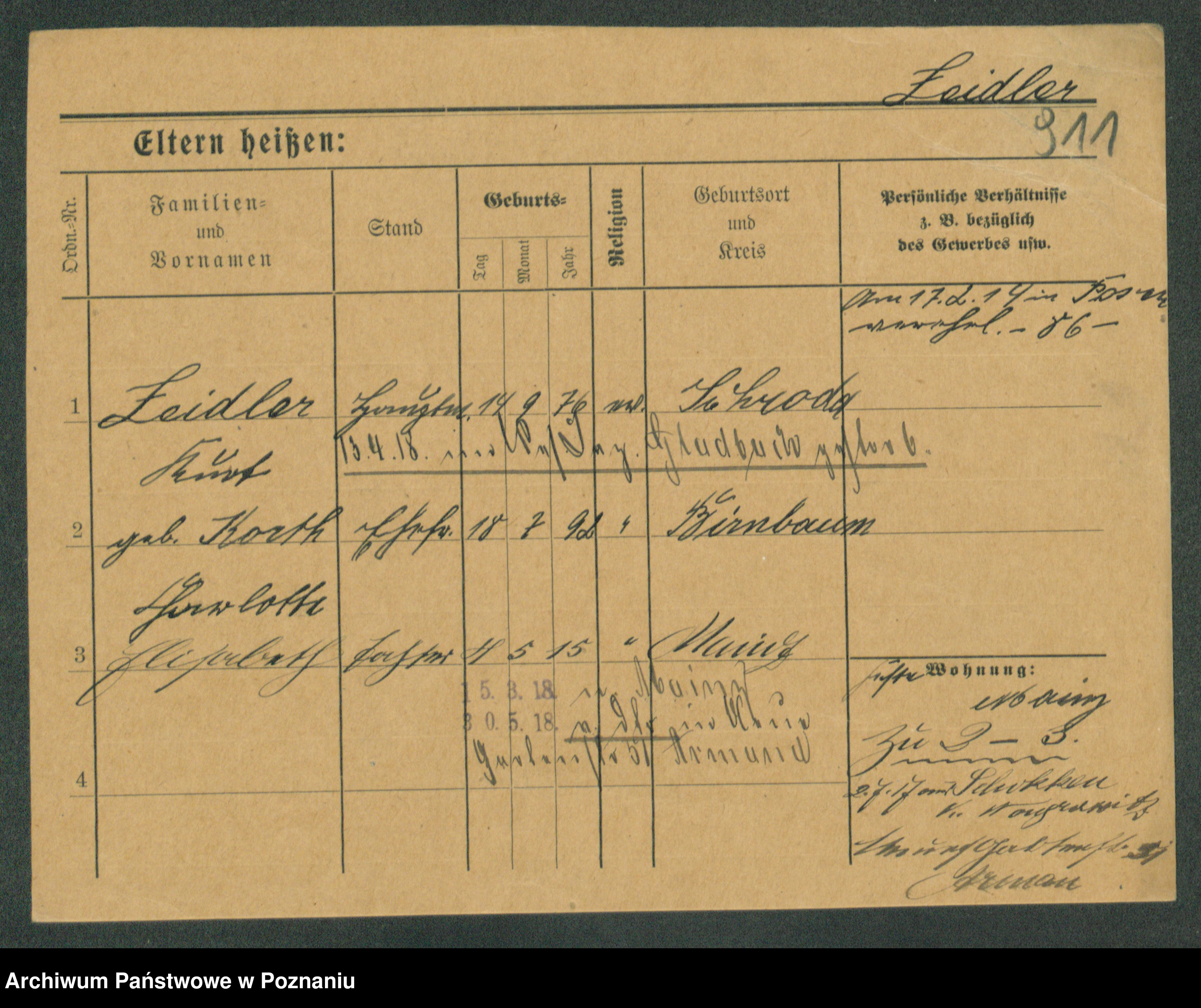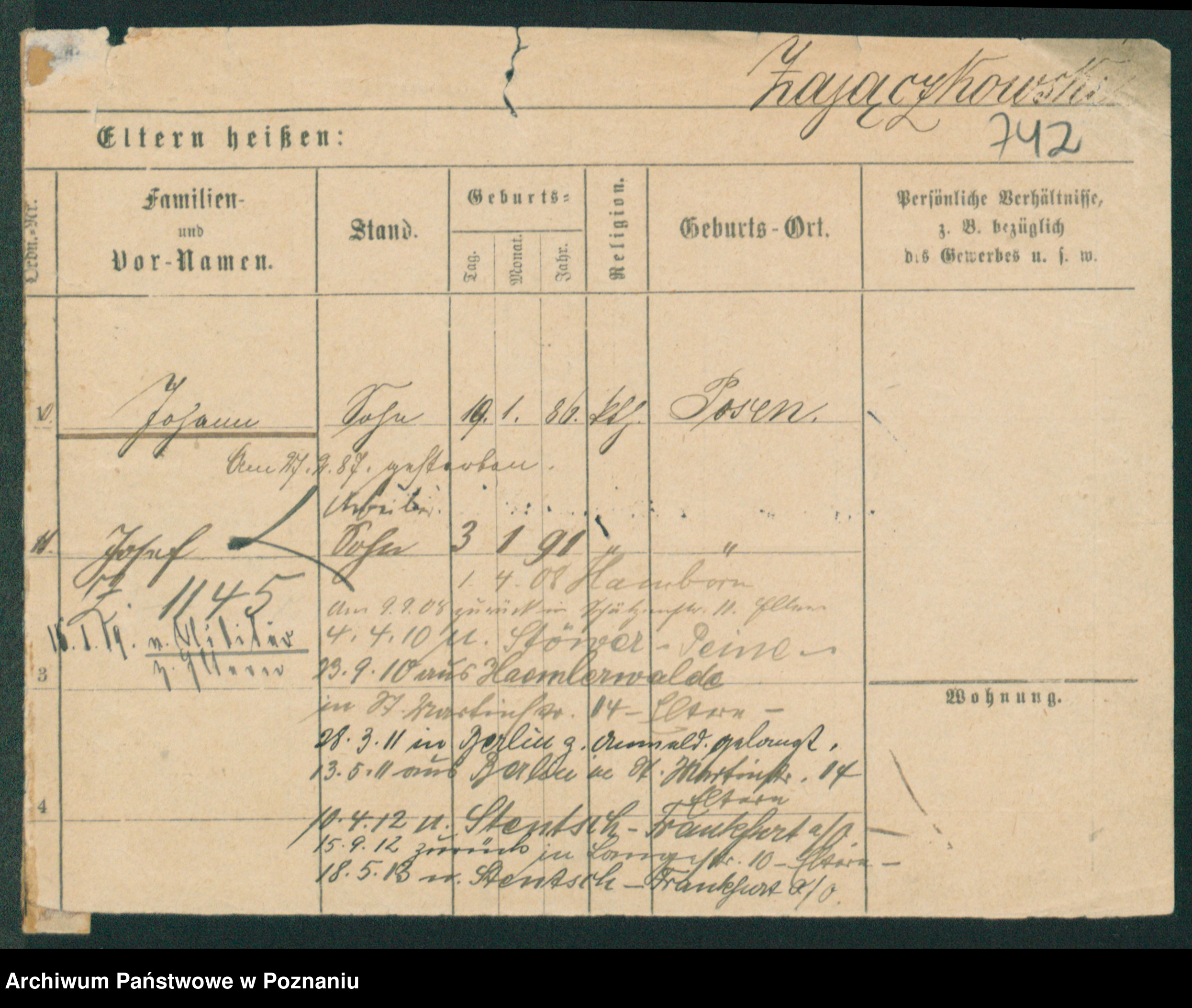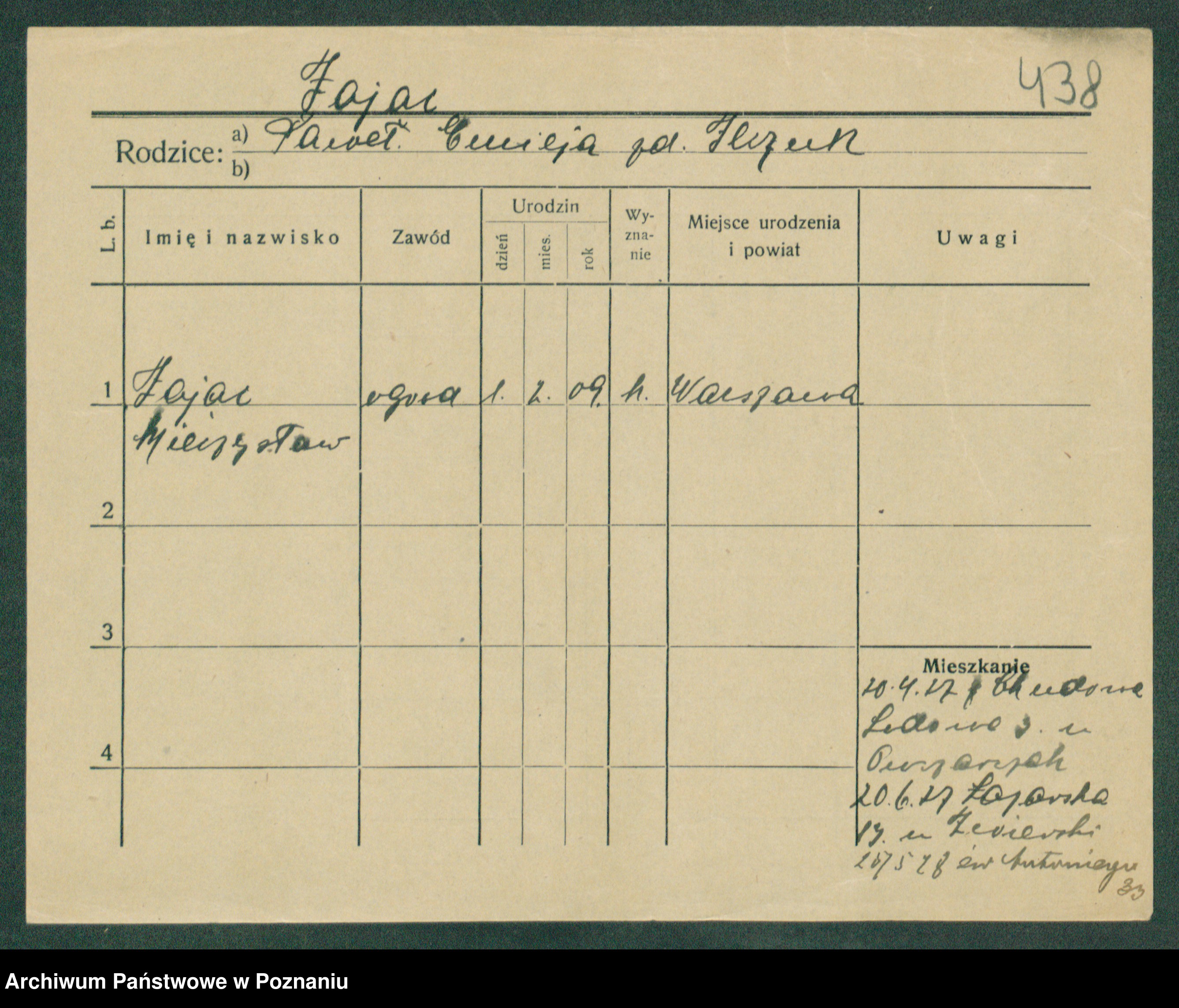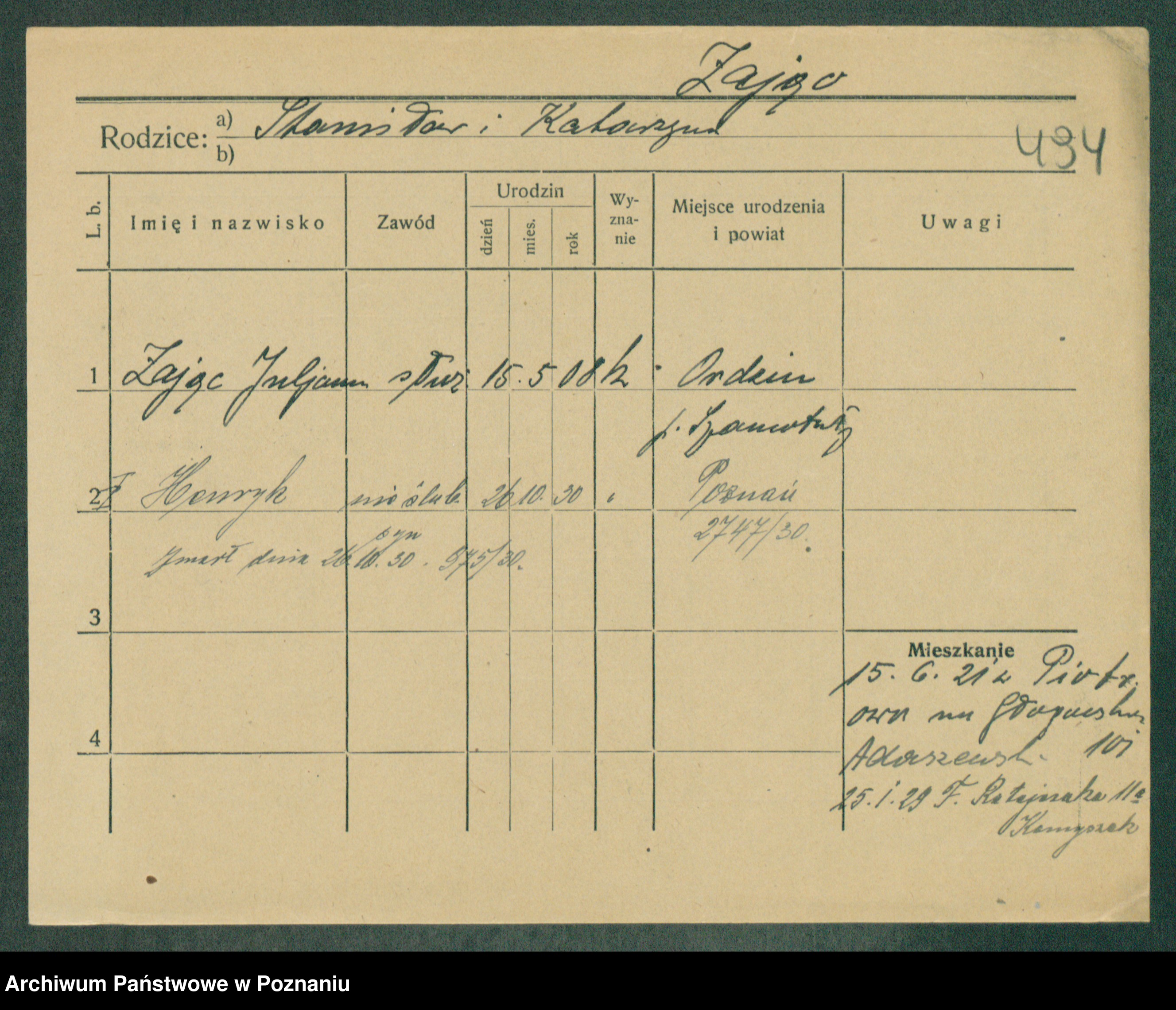Podgląd karty osobowej dostępny jest po kliknięciu na nazwisko lub ikonkę karty. Można dokonywać powiększenia (ikony na górze) lub przechodzić między kolejnymi skanami (strzałki po bokach).