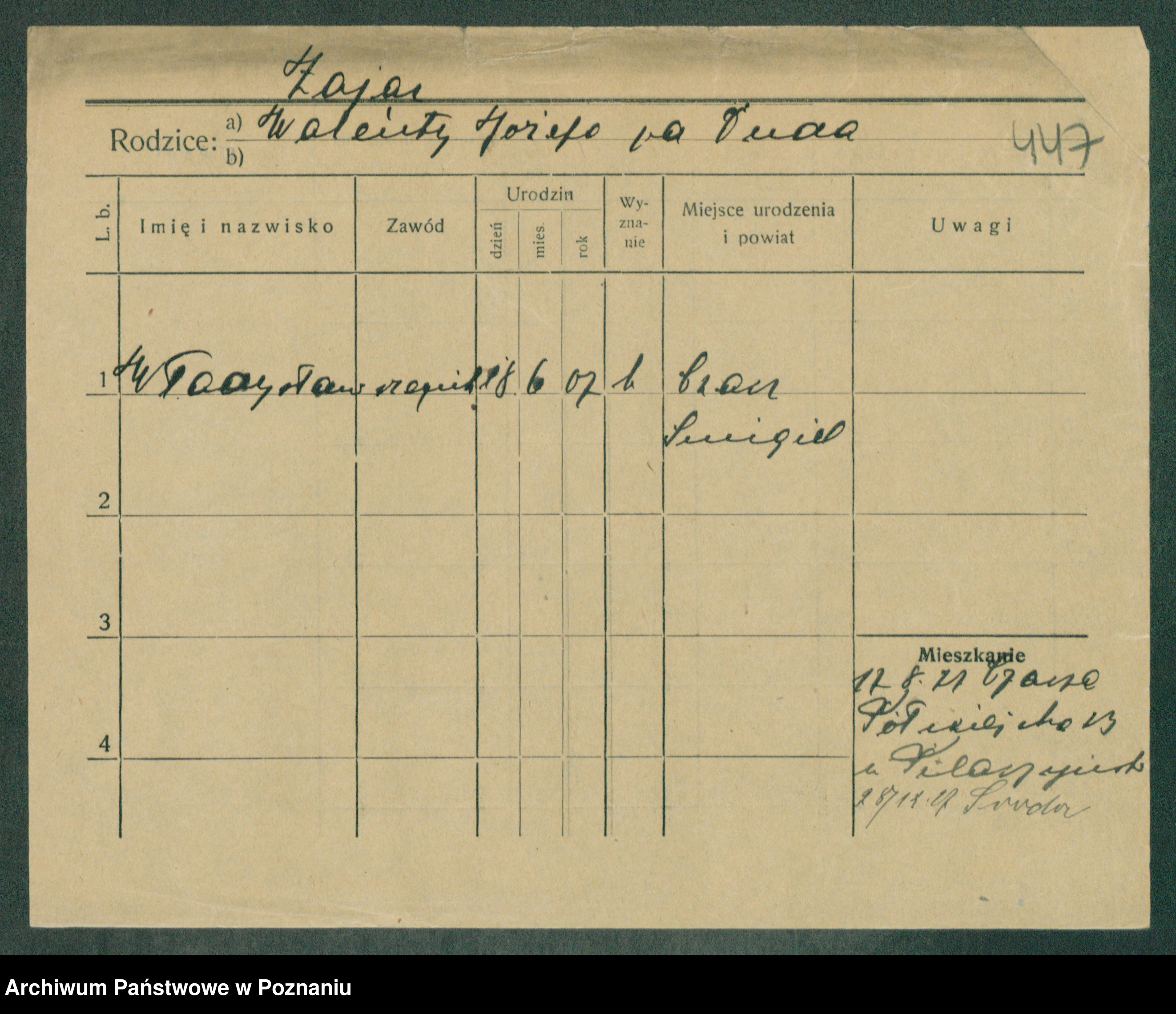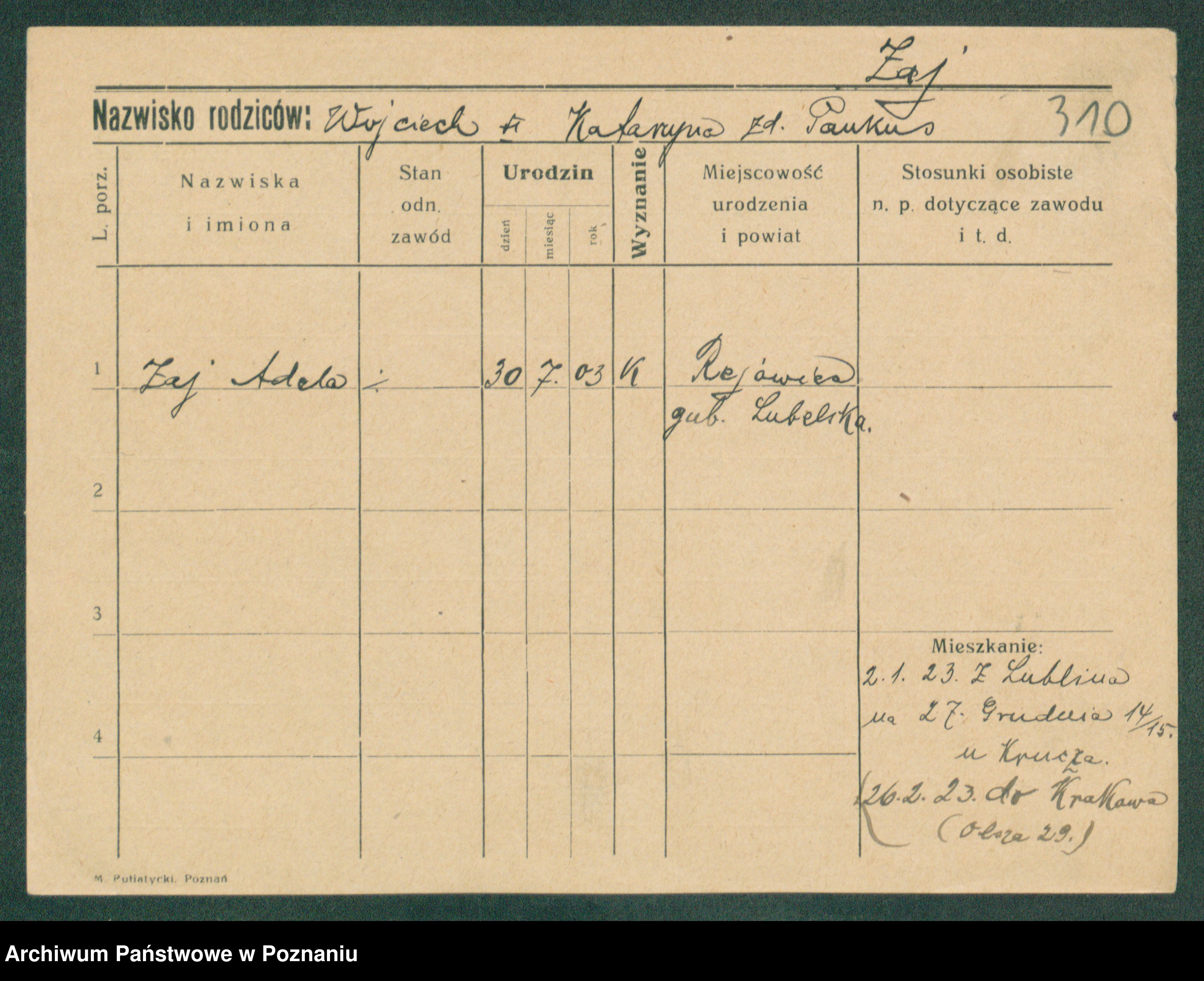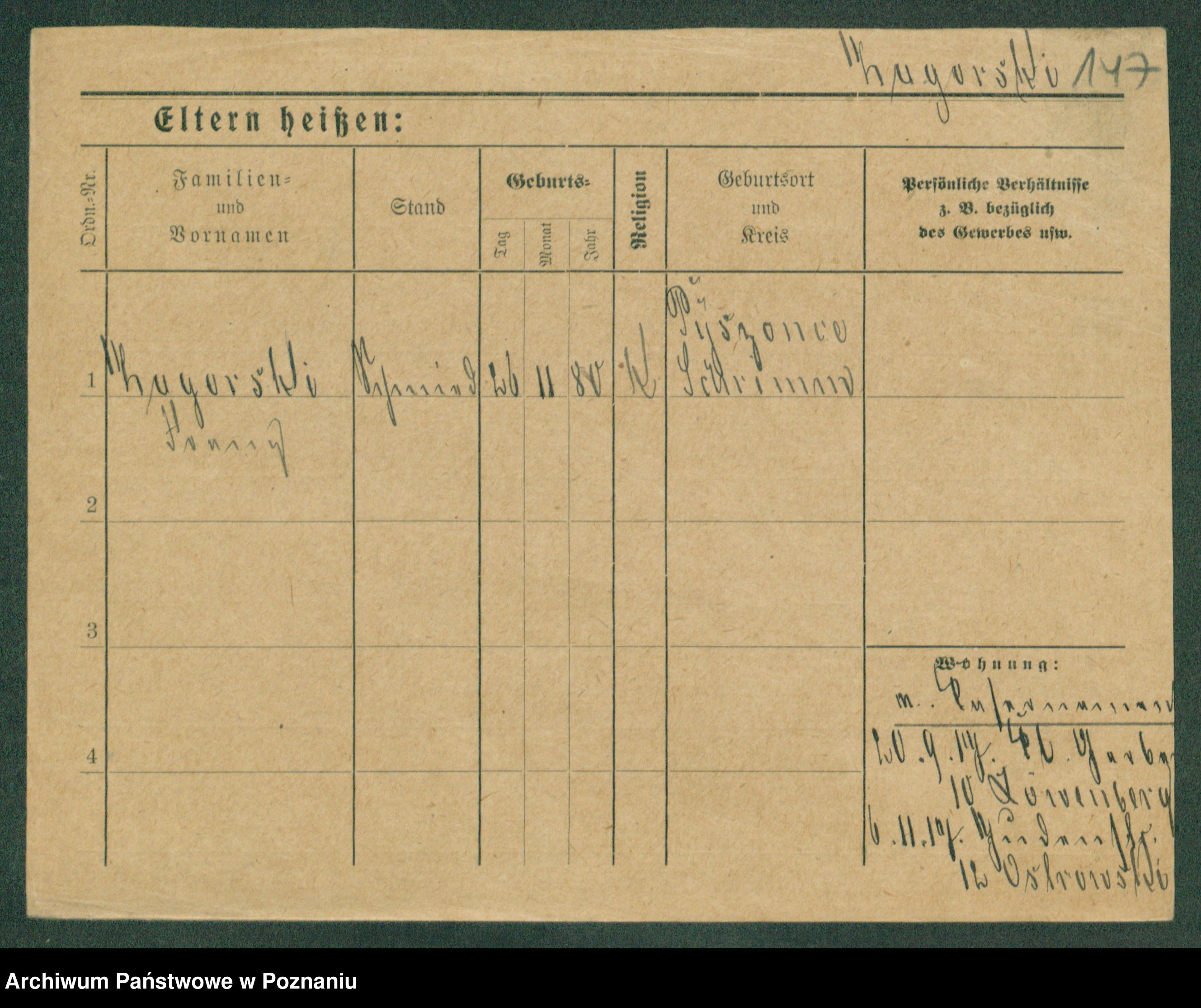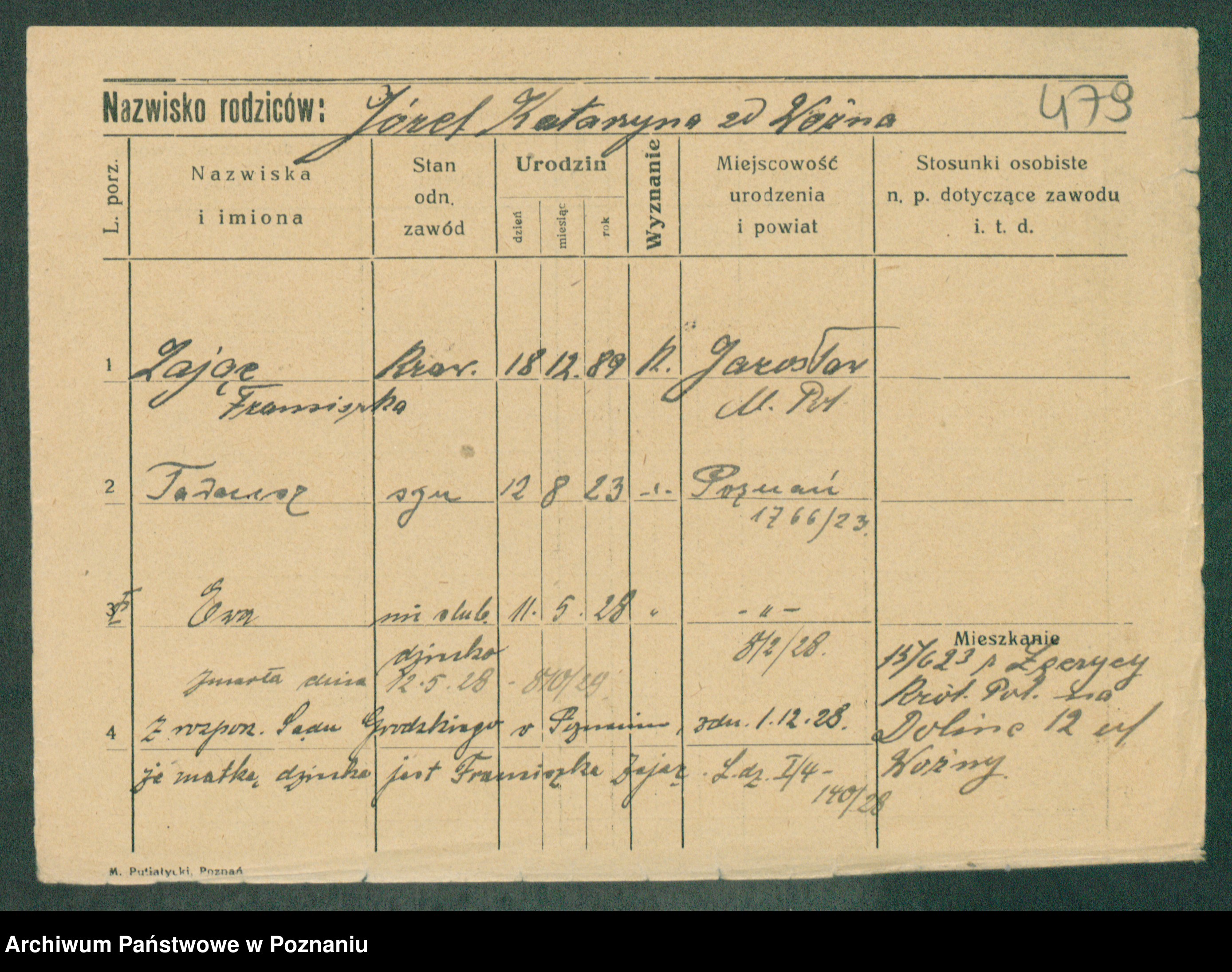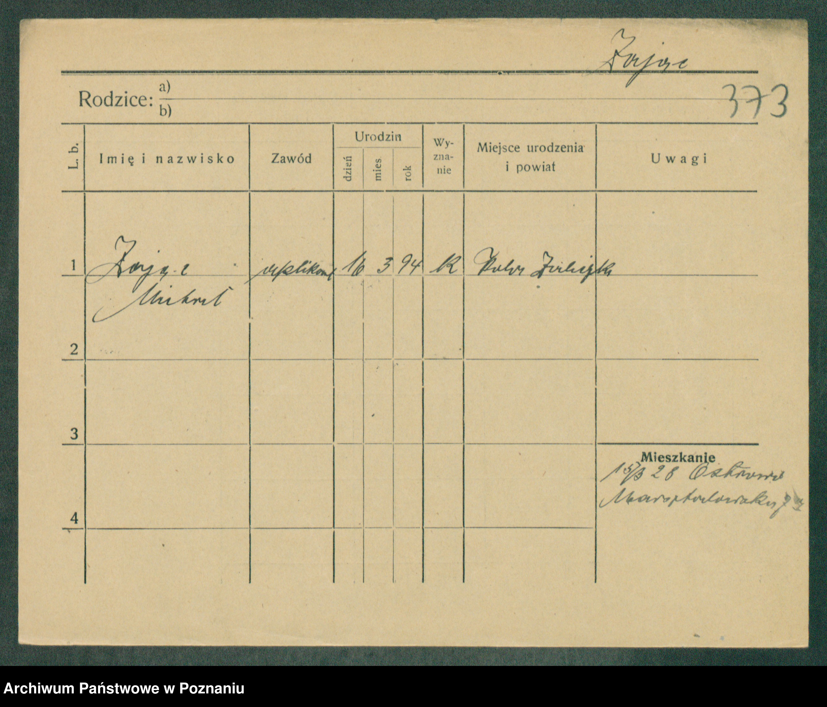 Podgląd karty osobowej dostępny jest po kliknięciu na nazwisko lub ikonkę karty. Można dokonywać powiększenia (ikony na górze) lub przechodzić między kolejnymi skanami (strzałki po bokach).