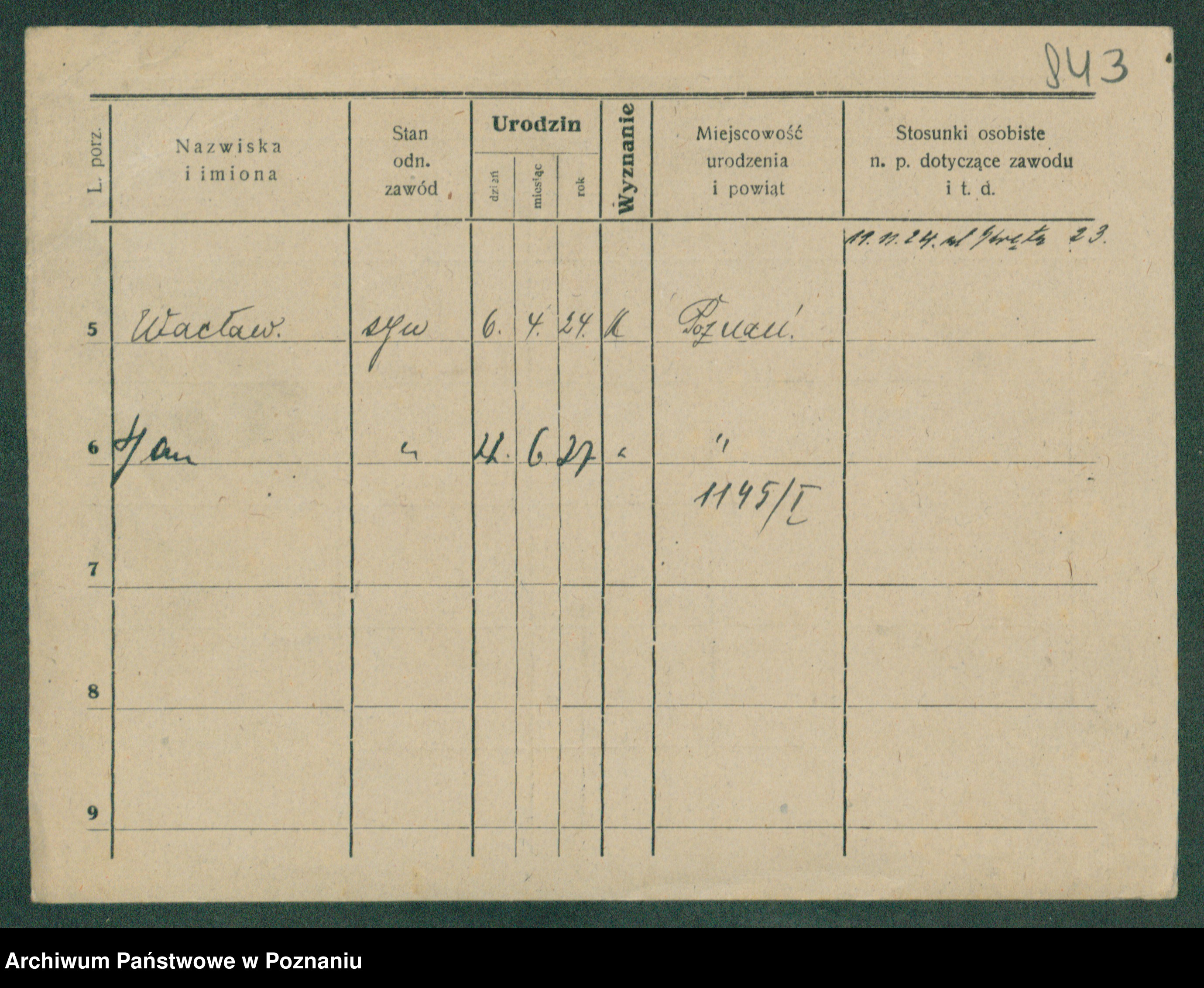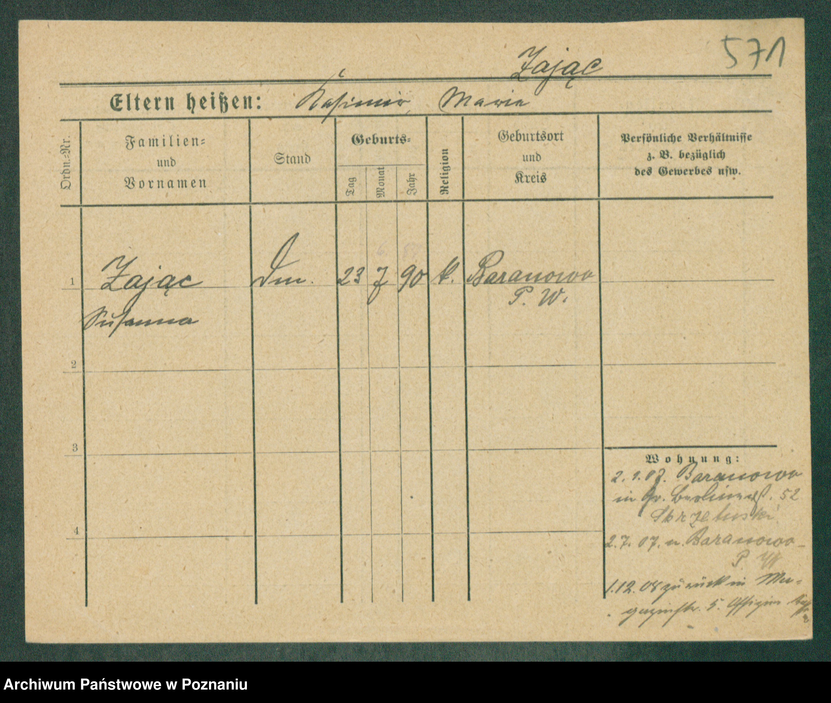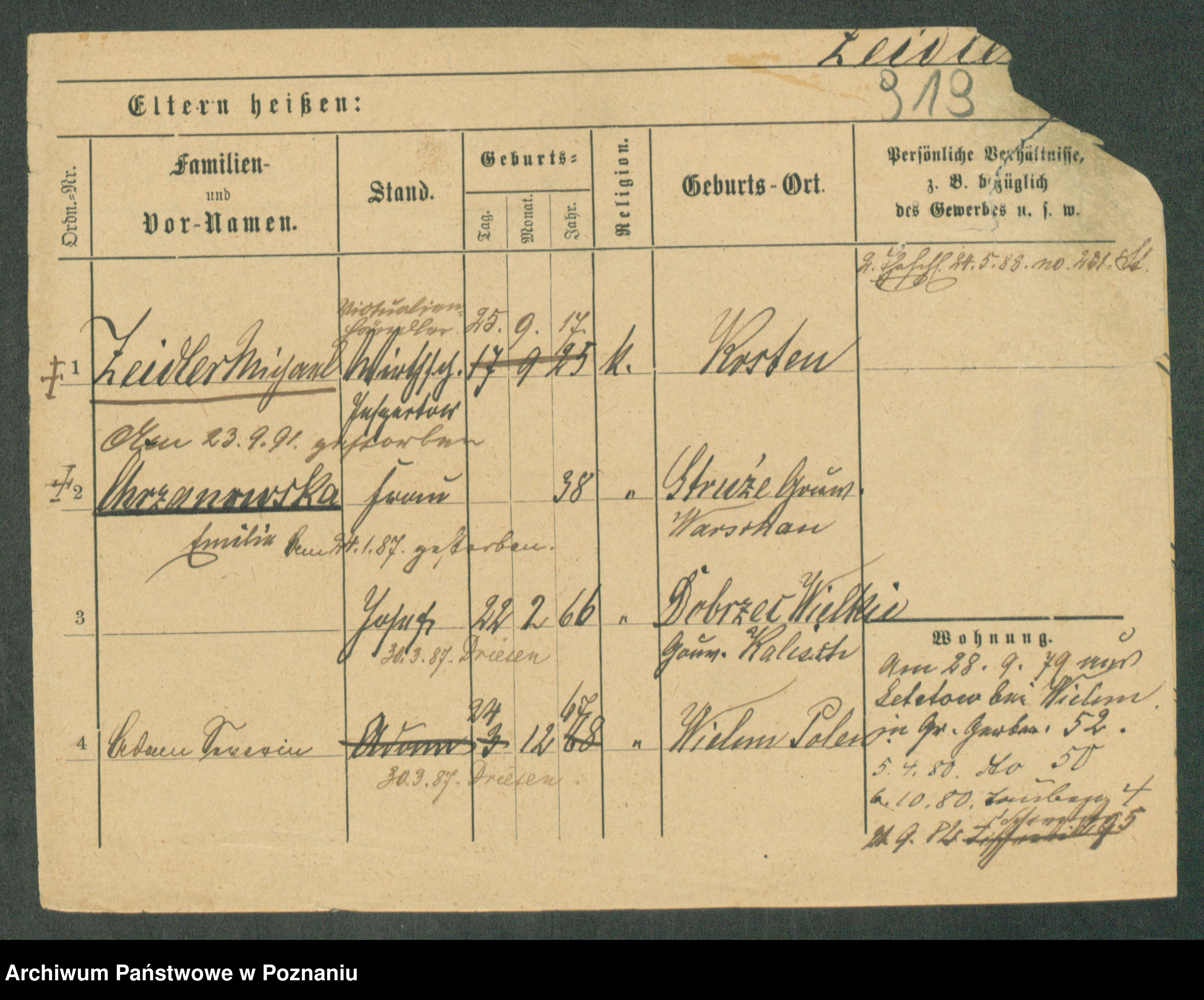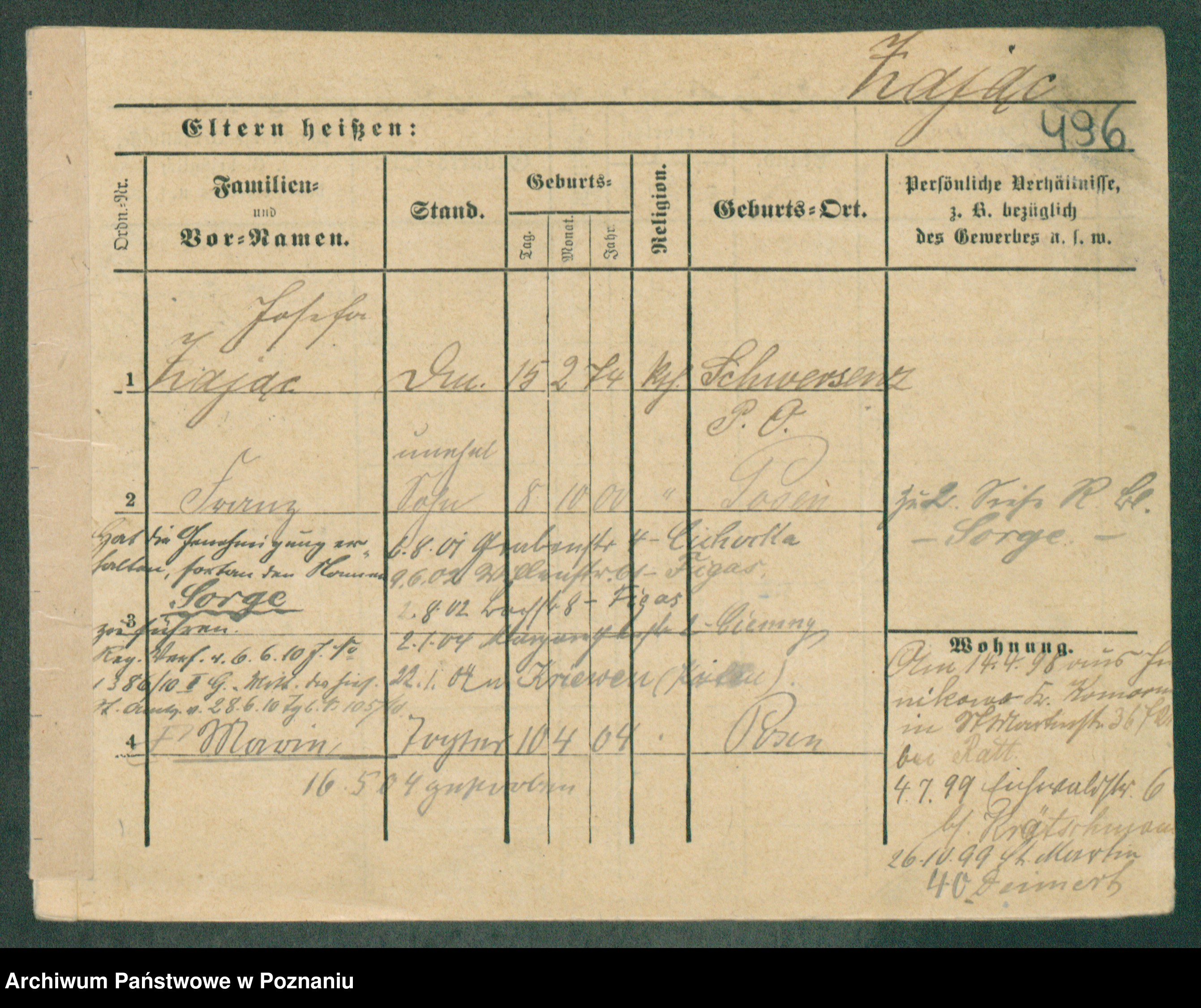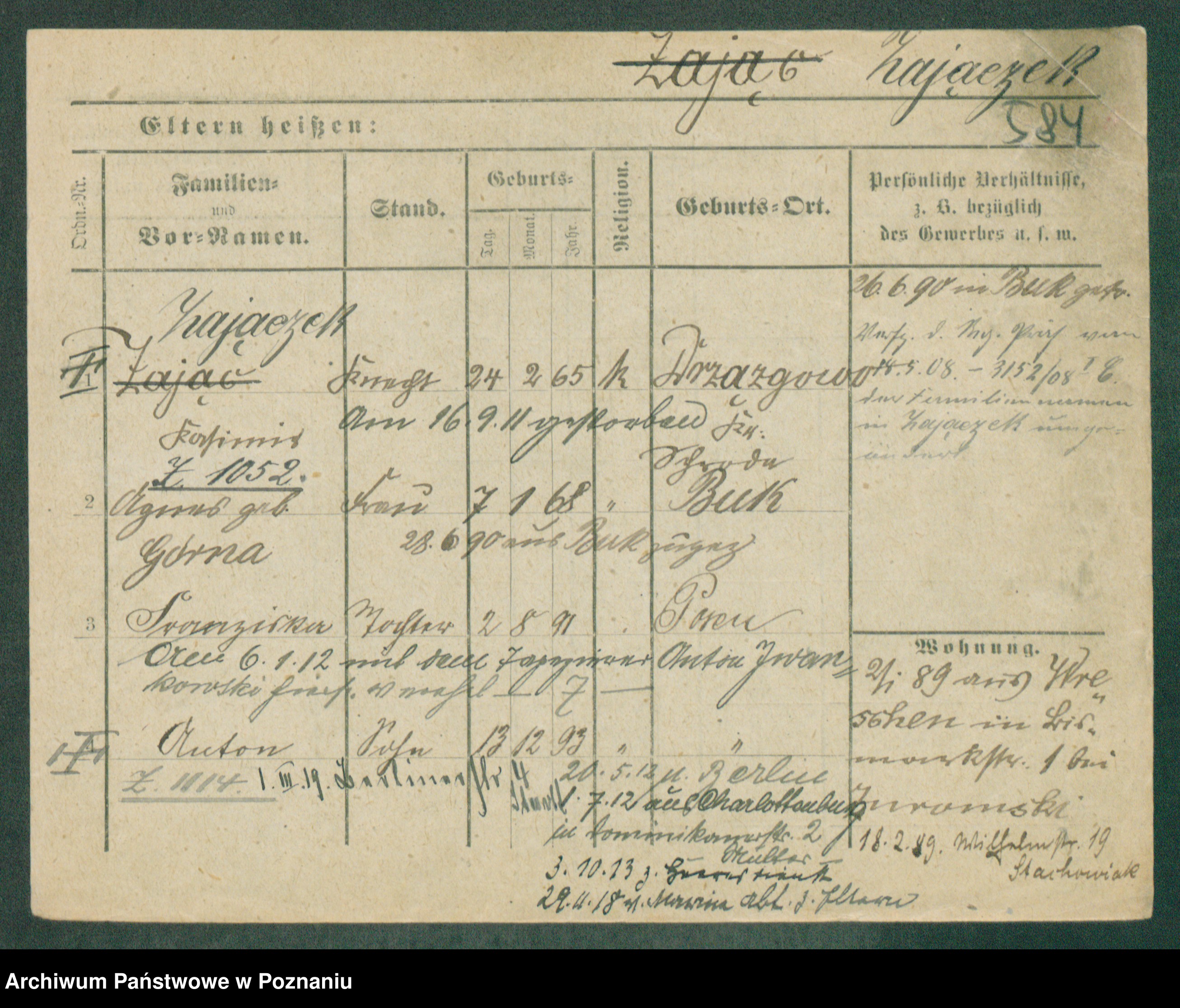 Podgląd karty osobowej dostępny jest po kliknięciu na nazwisko lub ikonkę karty. Można dokonywać powiększenia (ikony na górze) lub przechodzić między kolejnymi skanami (strzałki po bokach).