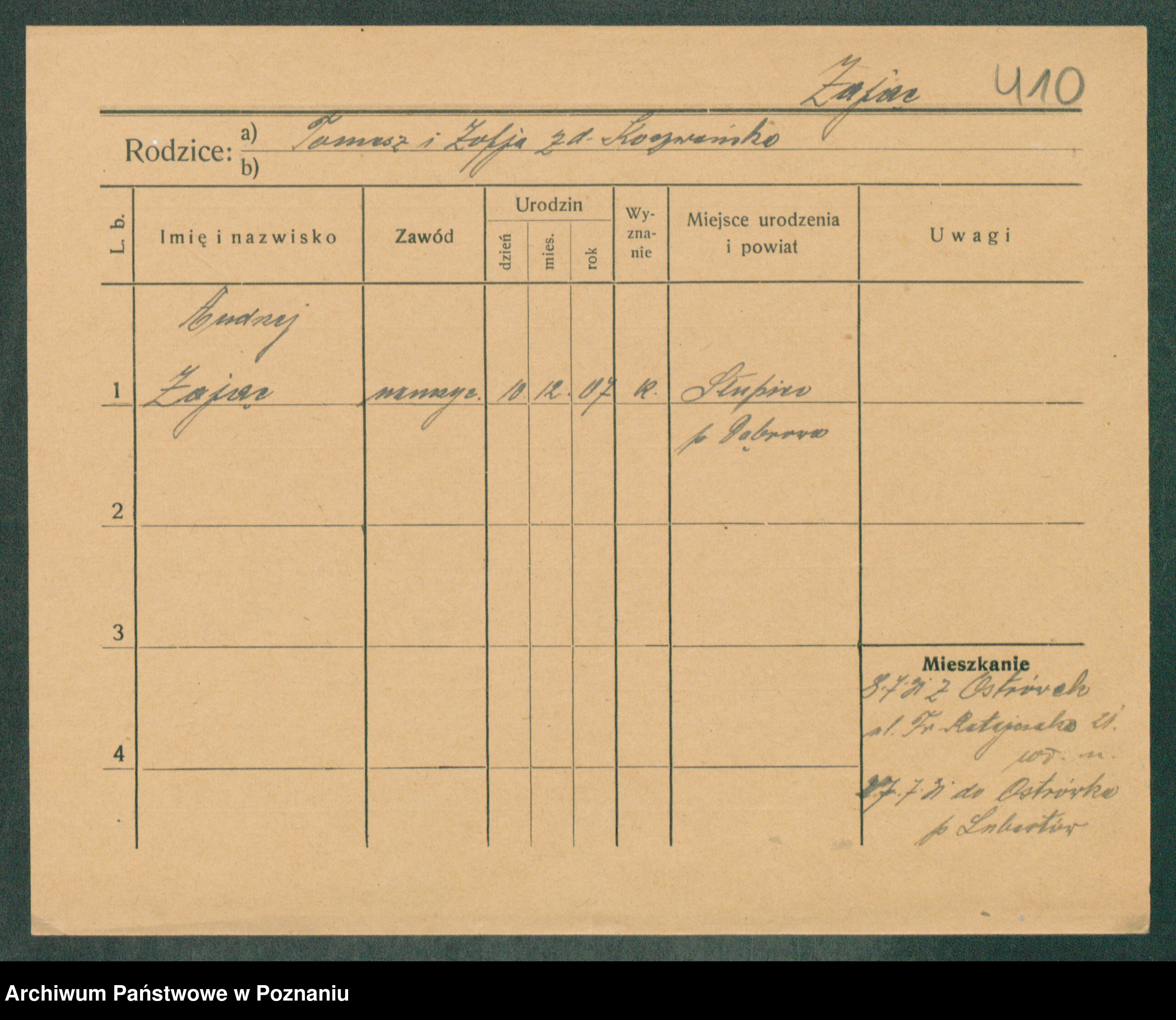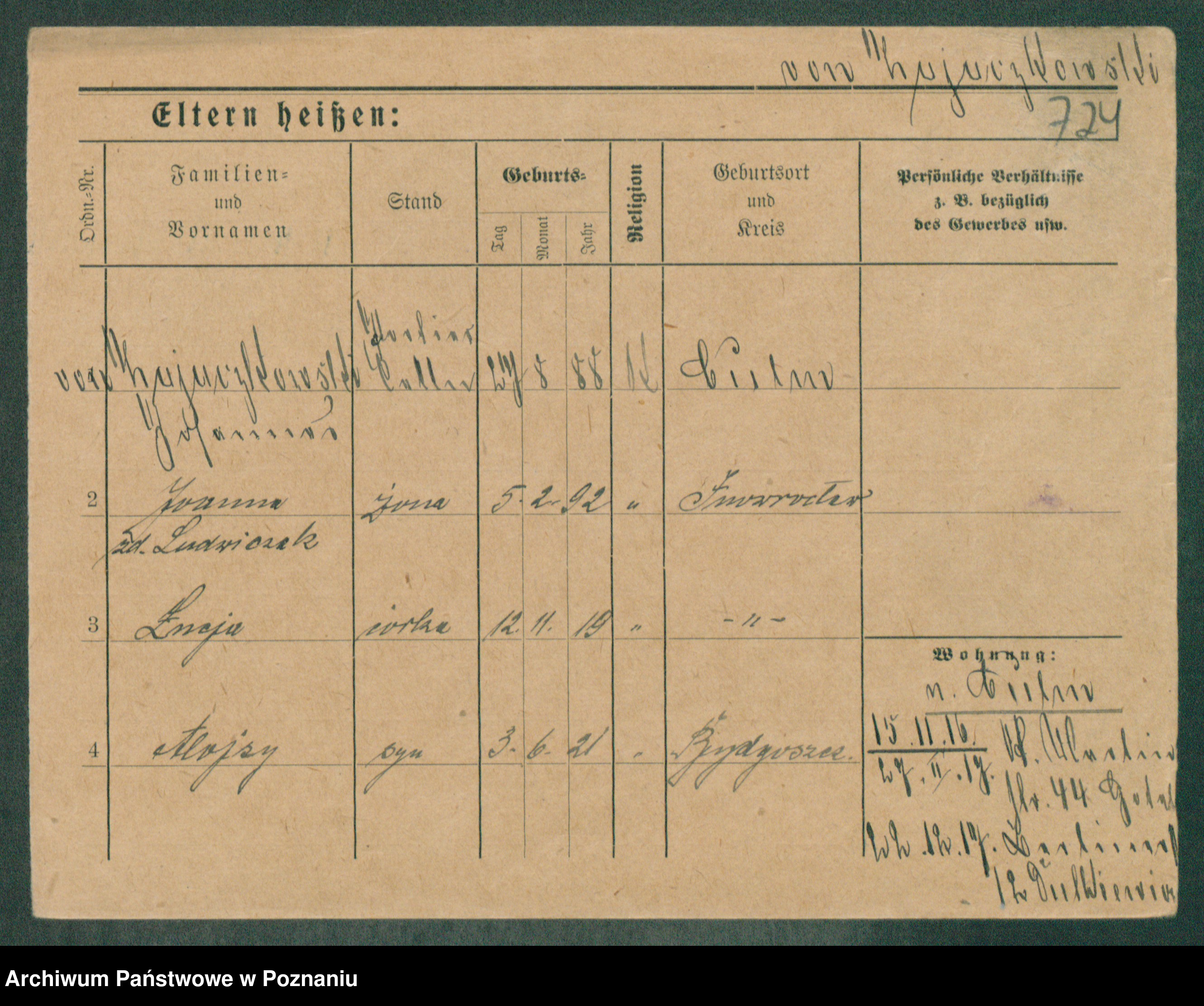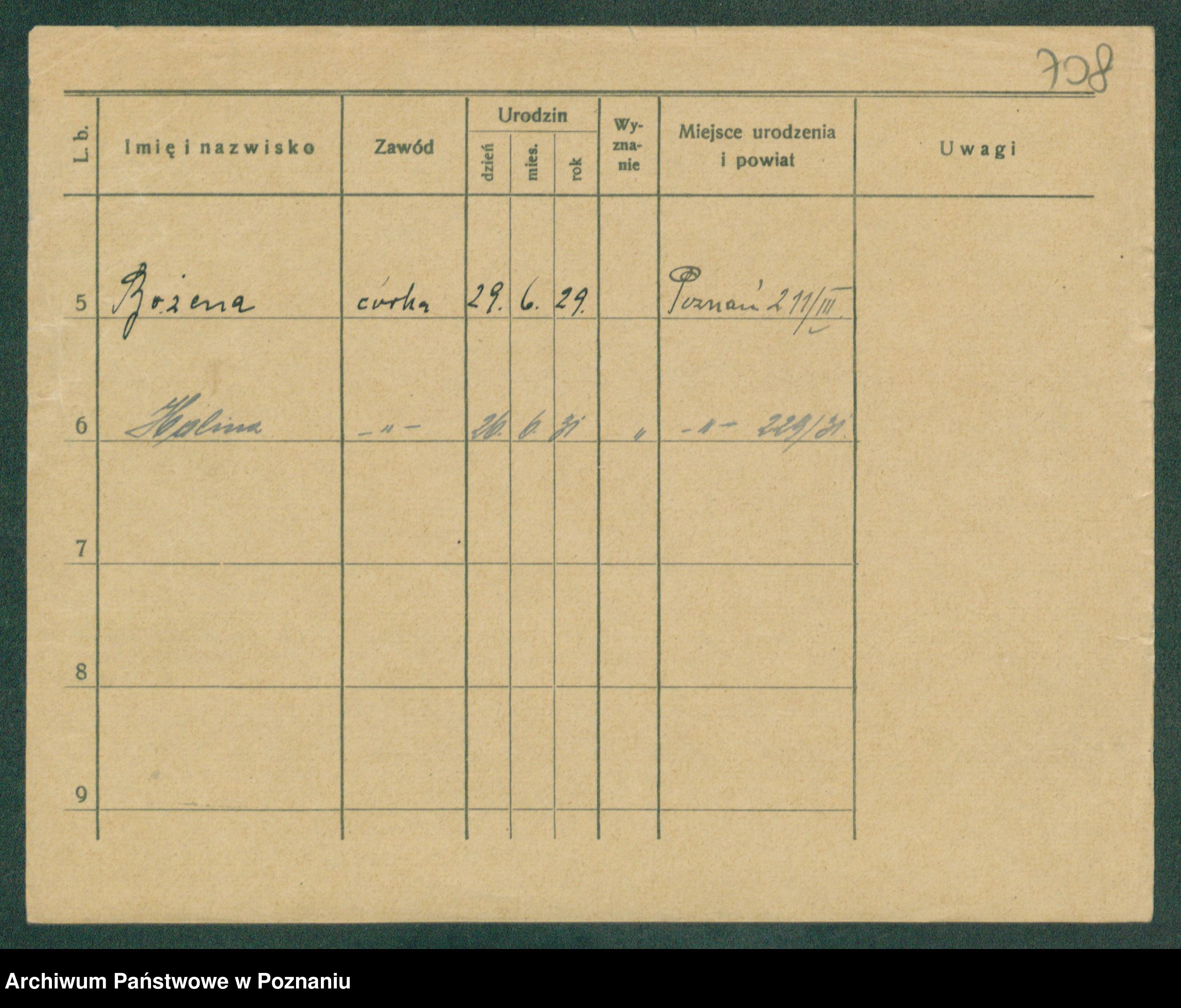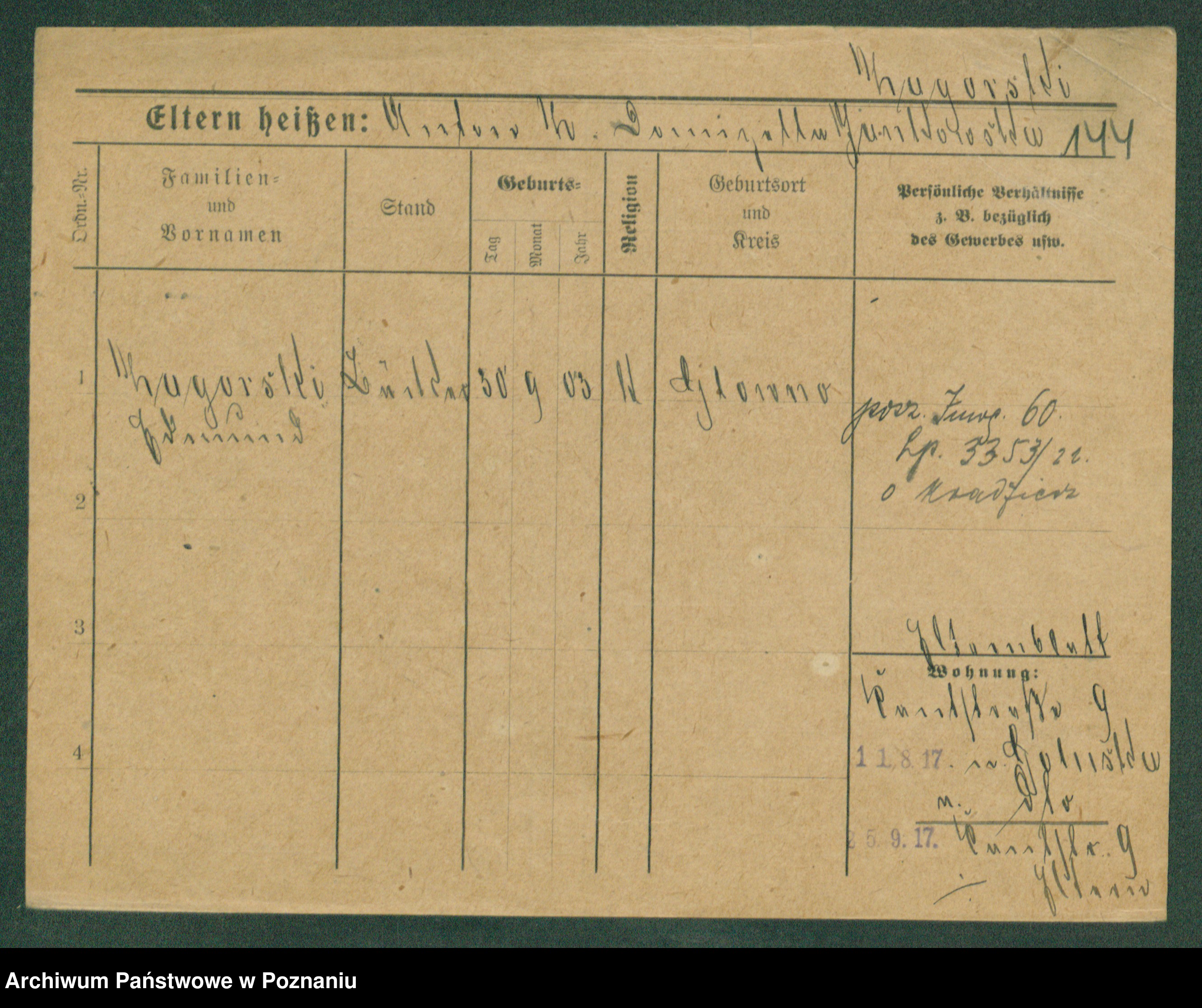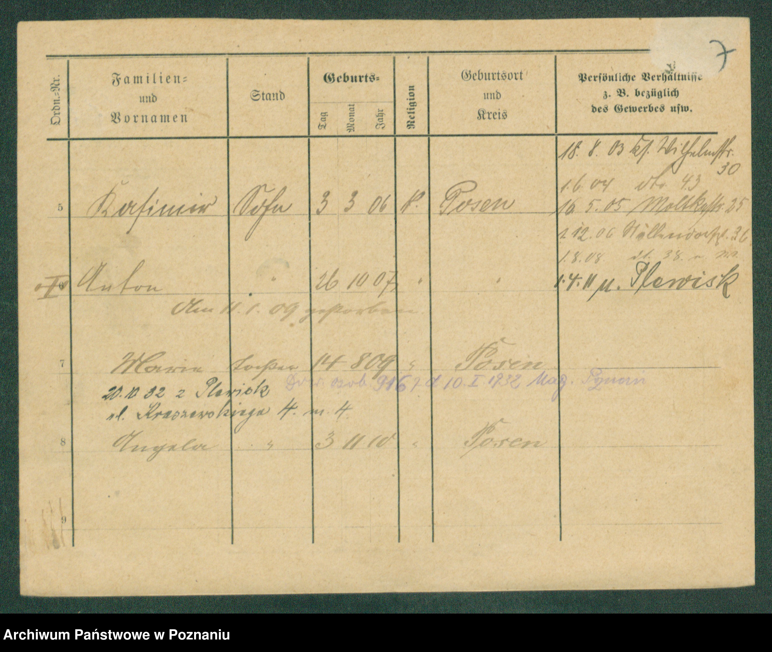 Podgląd karty osobowej dostępny jest po kliknięciu na nazwisko lub ikonkę karty. Można dokonywać powiększenia (ikony na górze) lub przechodzić między kolejnymi skanami (strzałki po bokach).