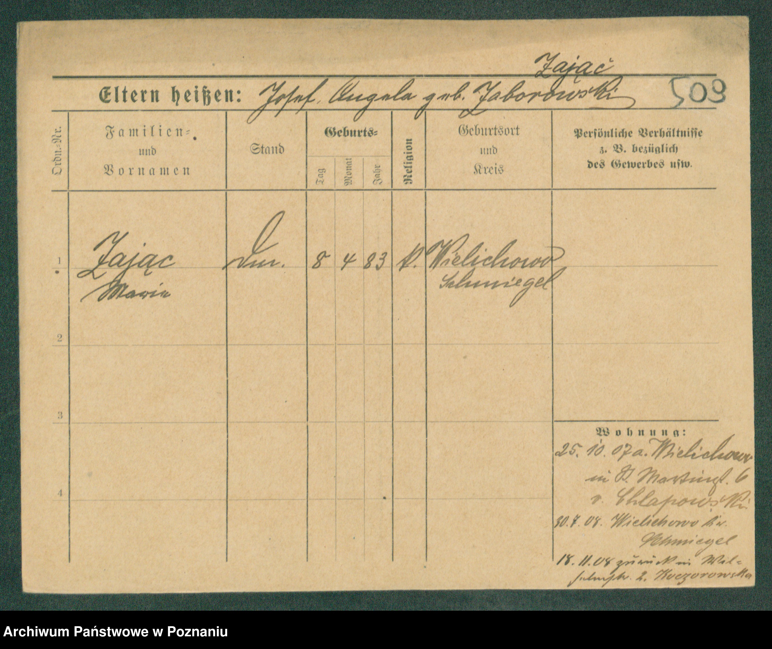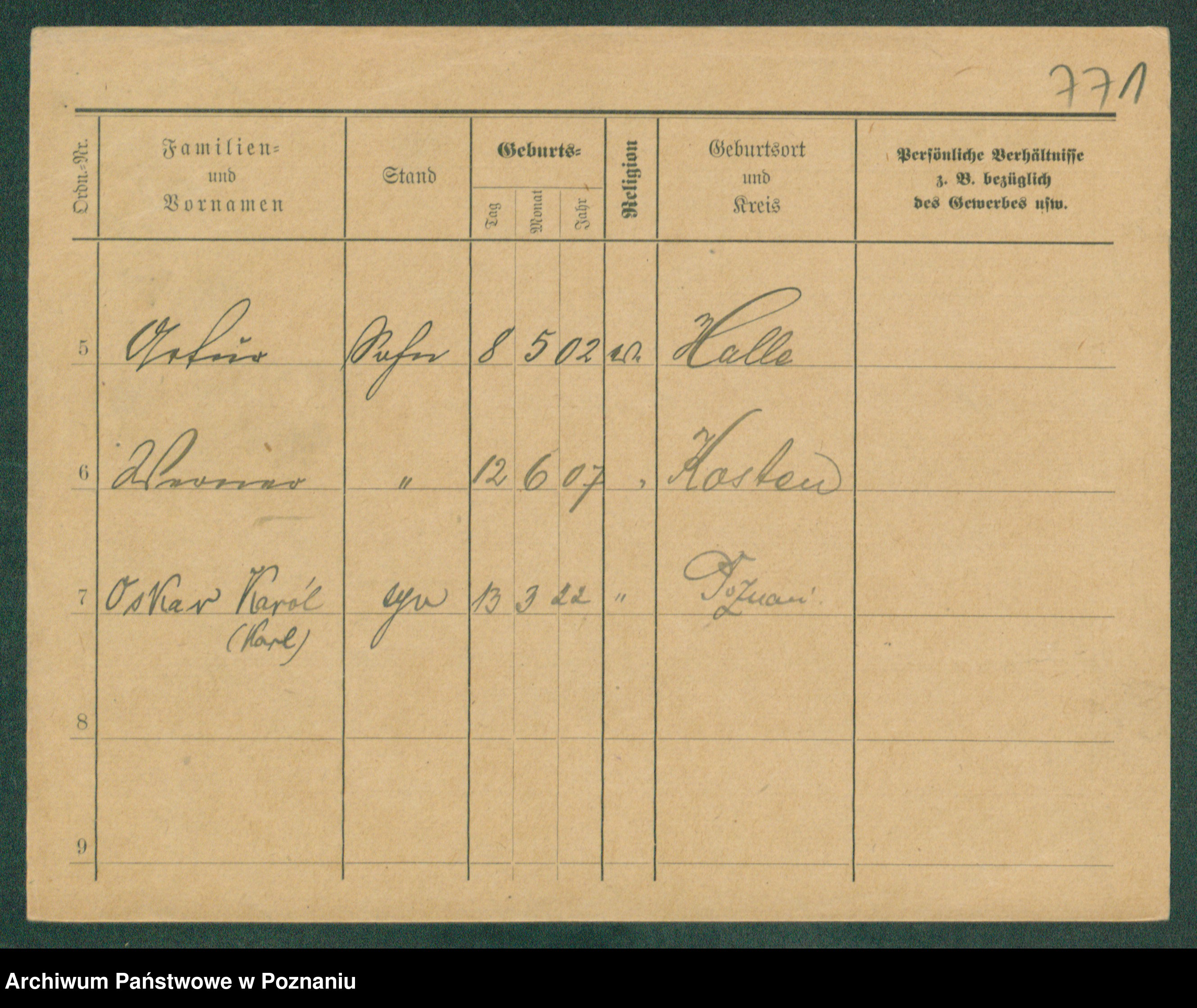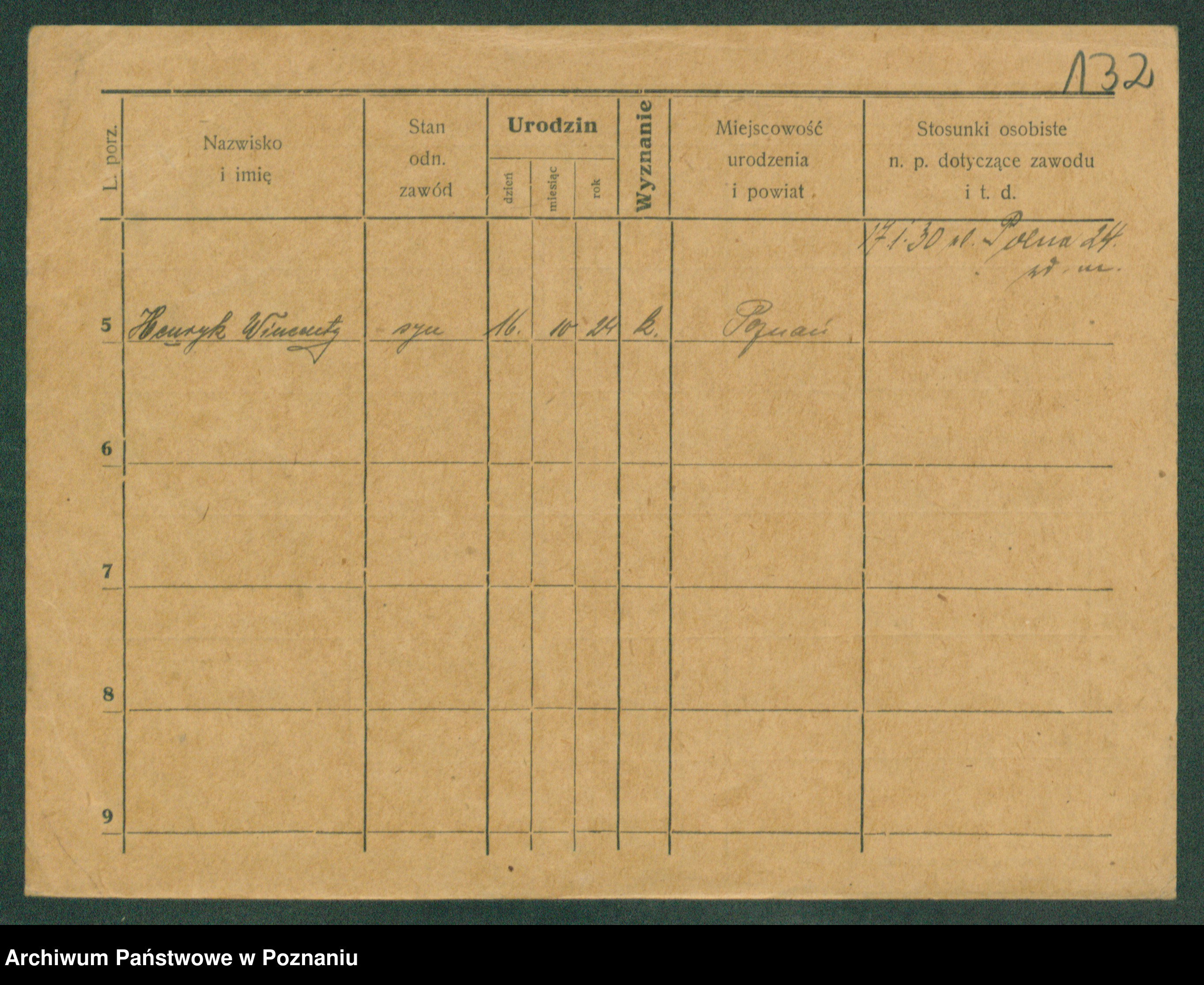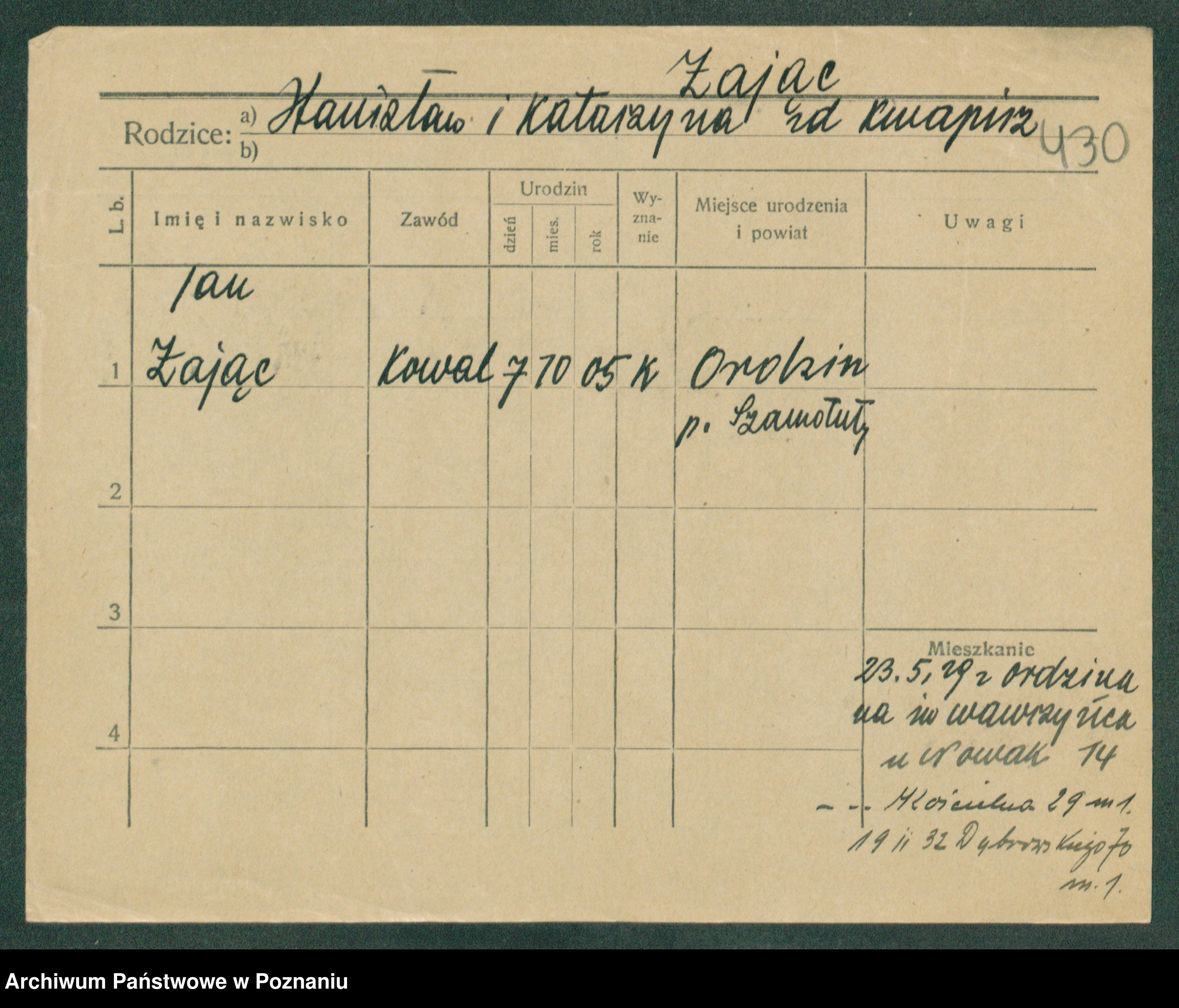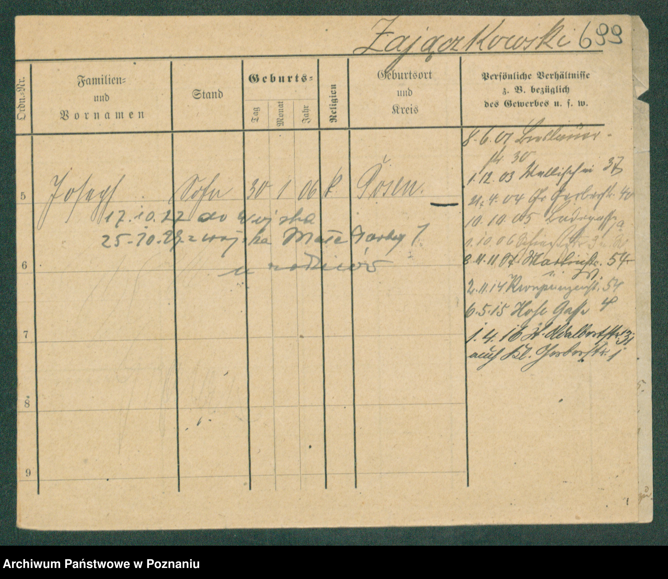 Podgląd karty osobowej dostępny jest po kliknięciu na nazwisko lub ikonkę karty. Można dokonywać powiększenia (ikony na górze) lub przechodzić między kolejnymi skanami (strzałki po bokach).
