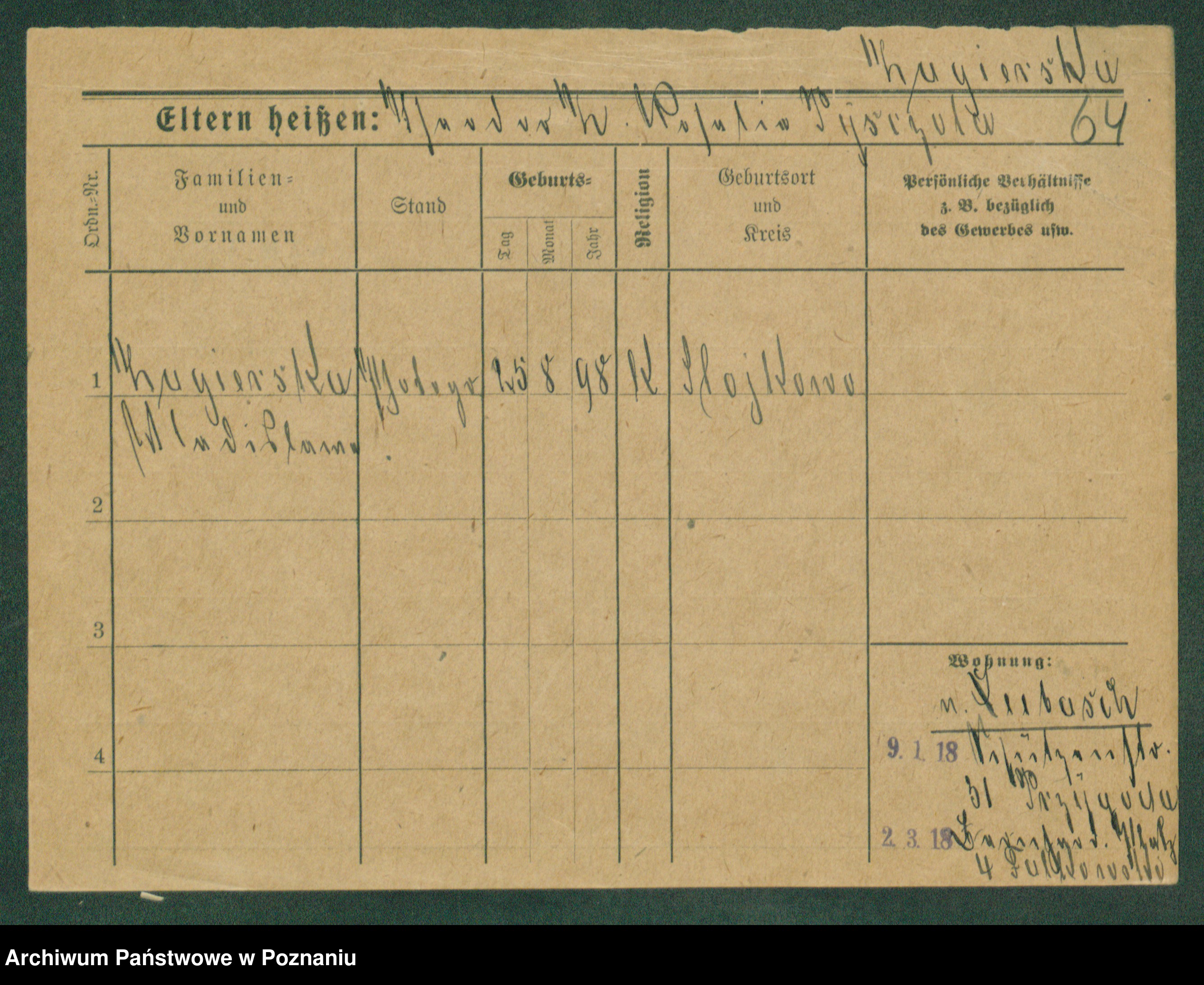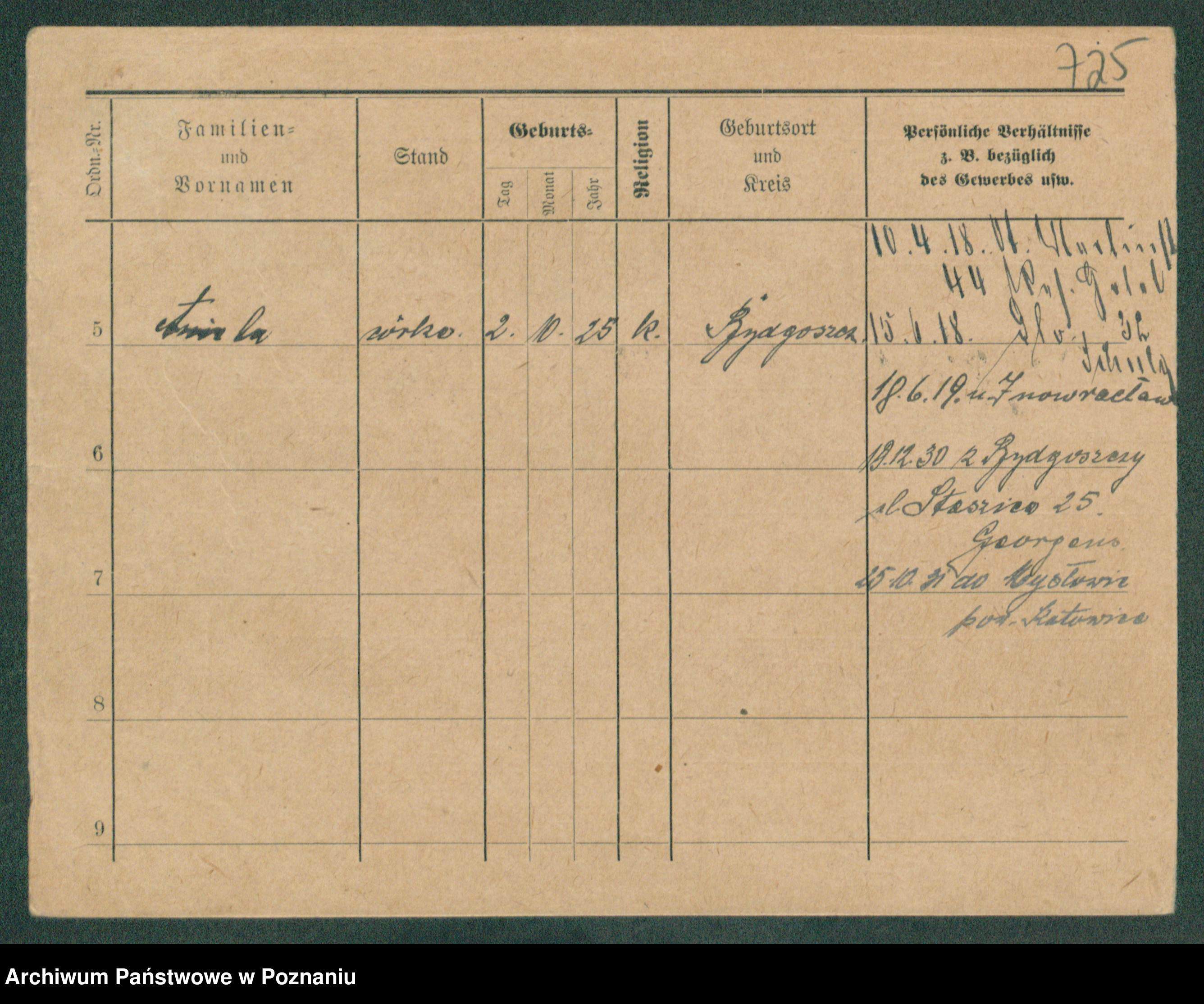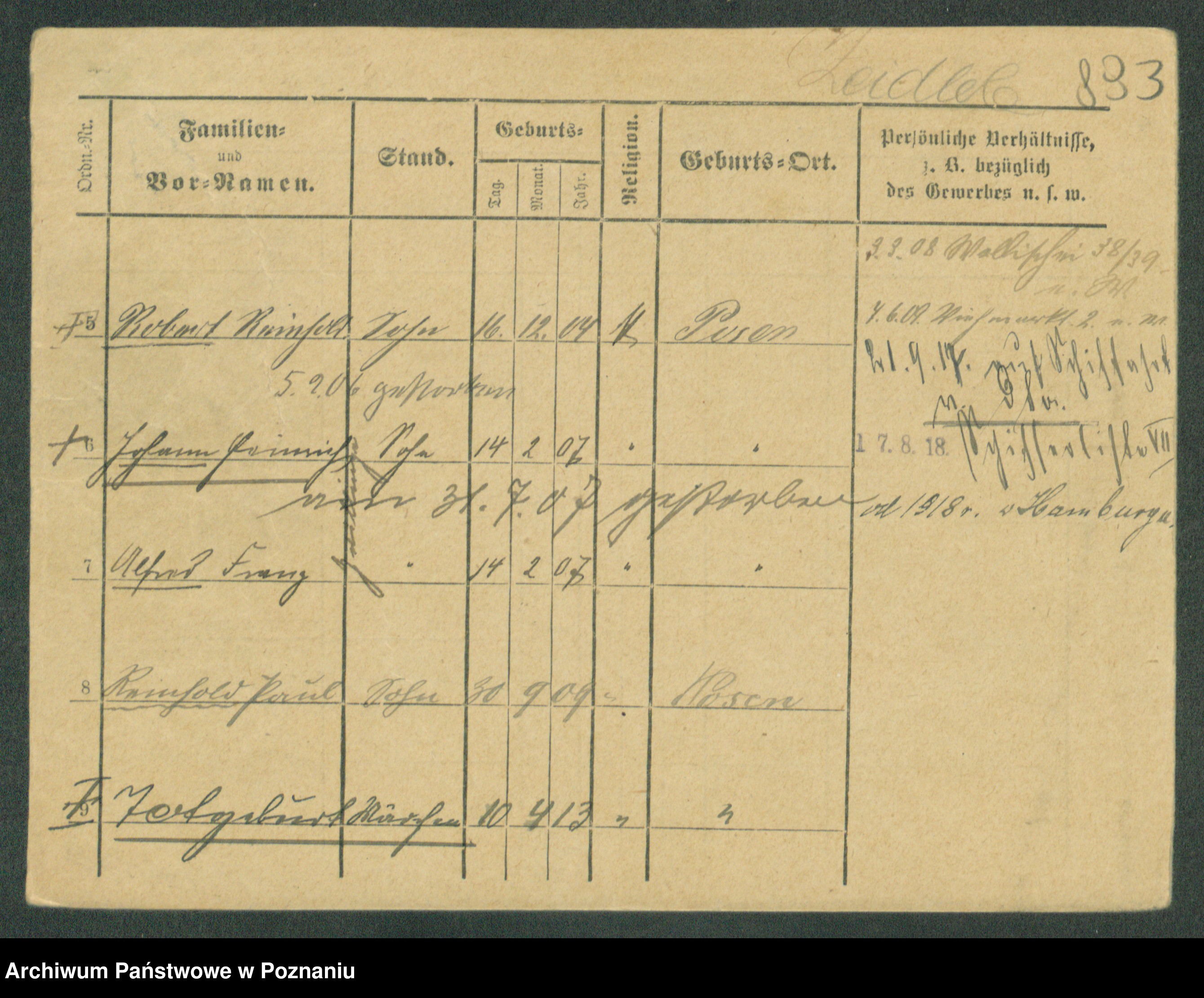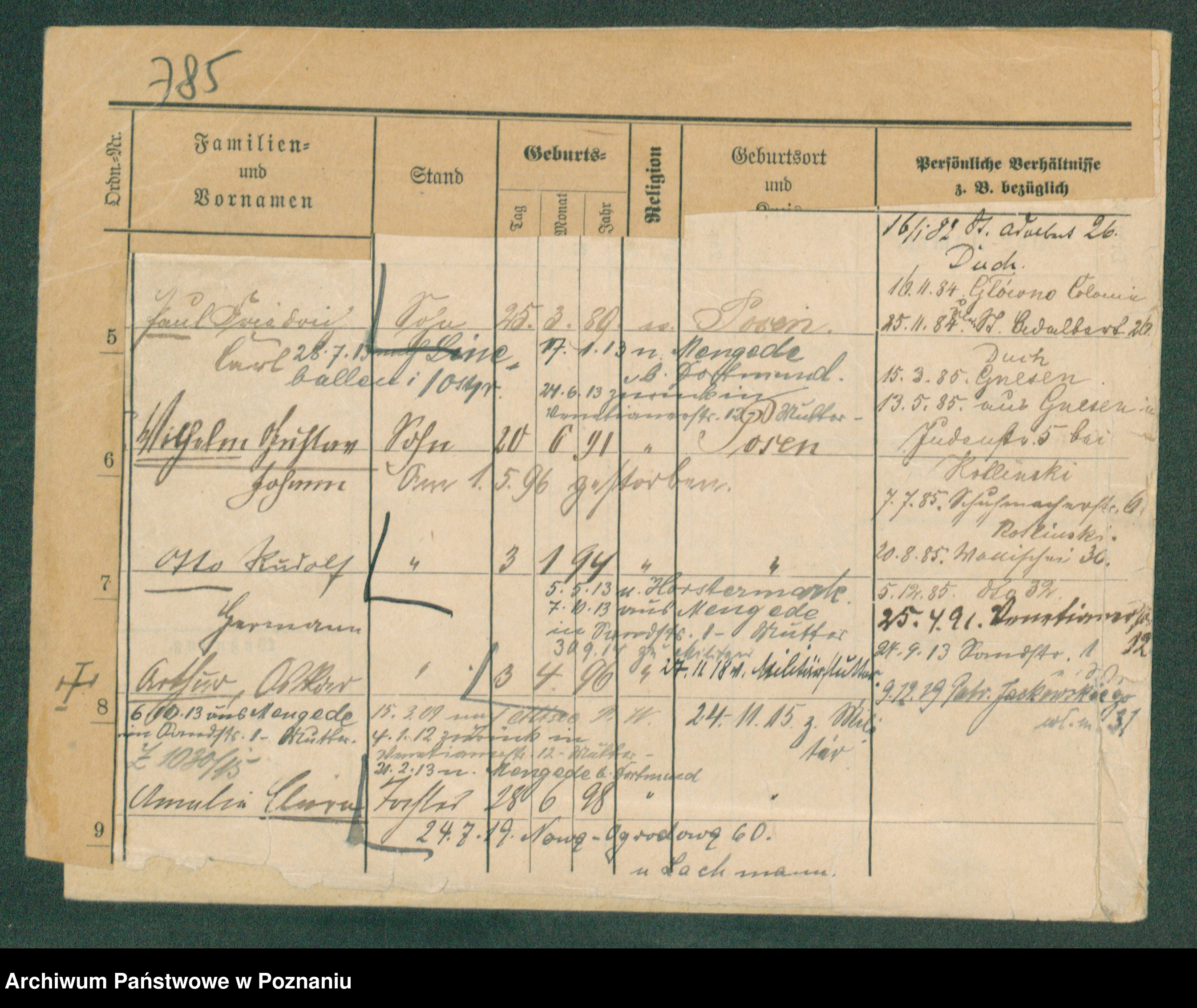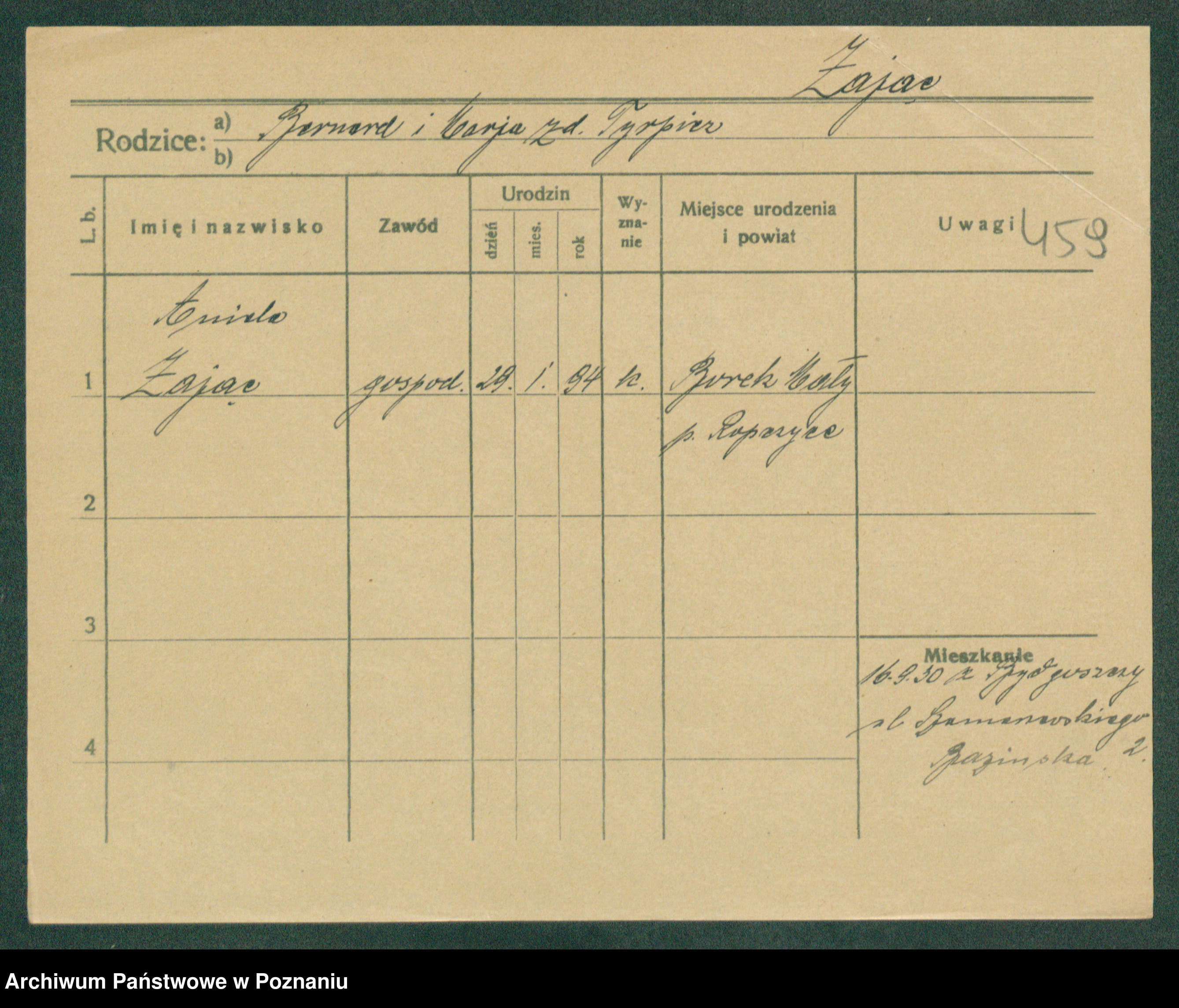 Podgląd karty osobowej dostępny jest po kliknięciu na nazwisko lub ikonkę karty. Można dokonywać powiększenia (ikony na górze) lub przechodzić między kolejnymi skanami (strzałki po bokach).