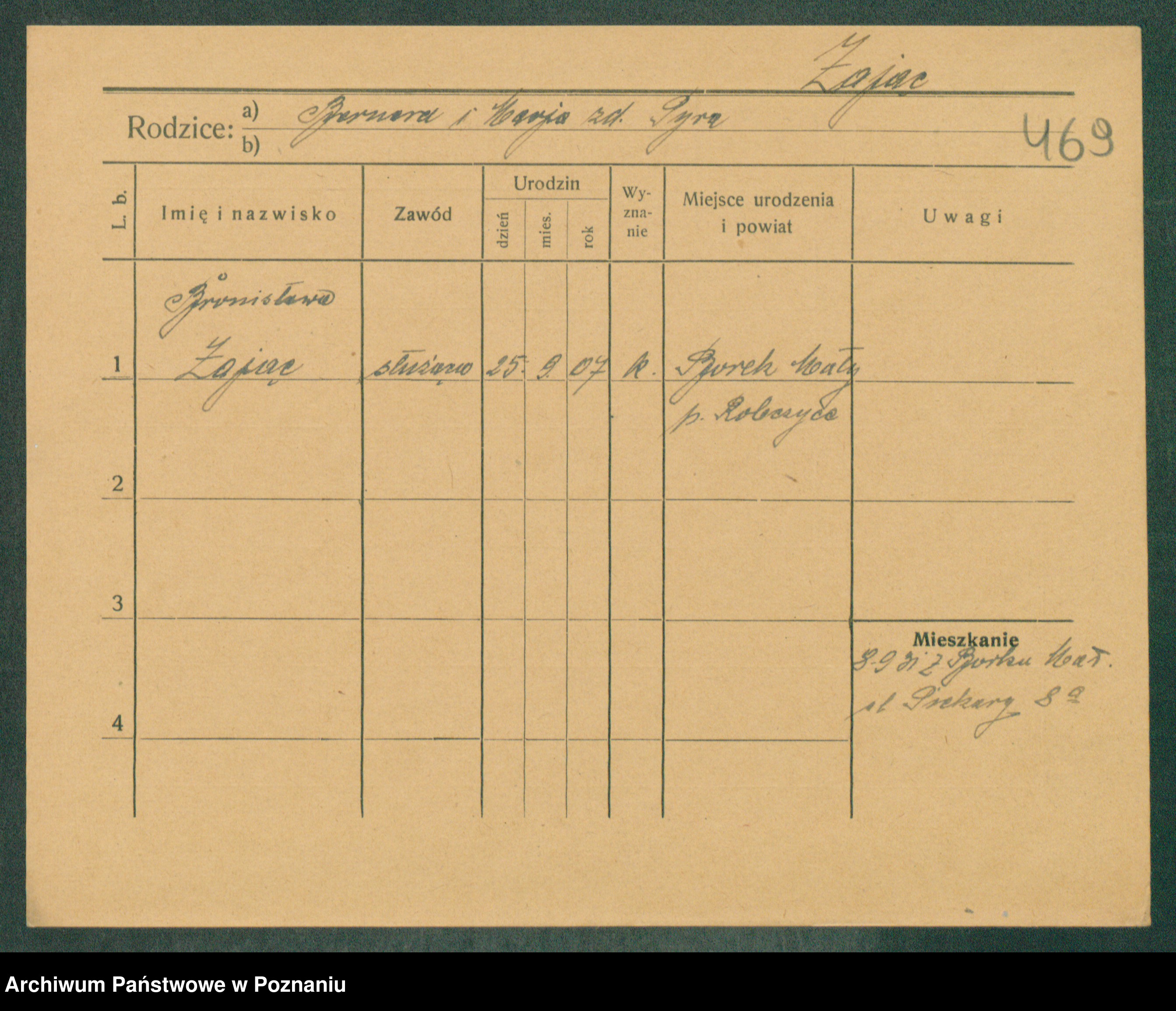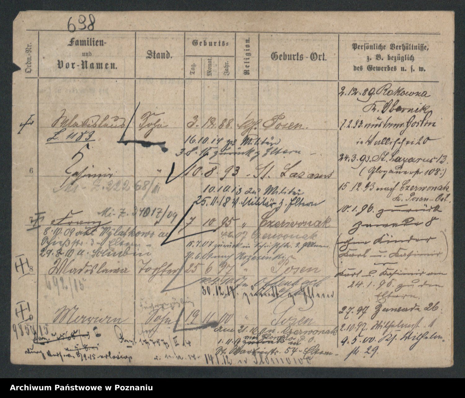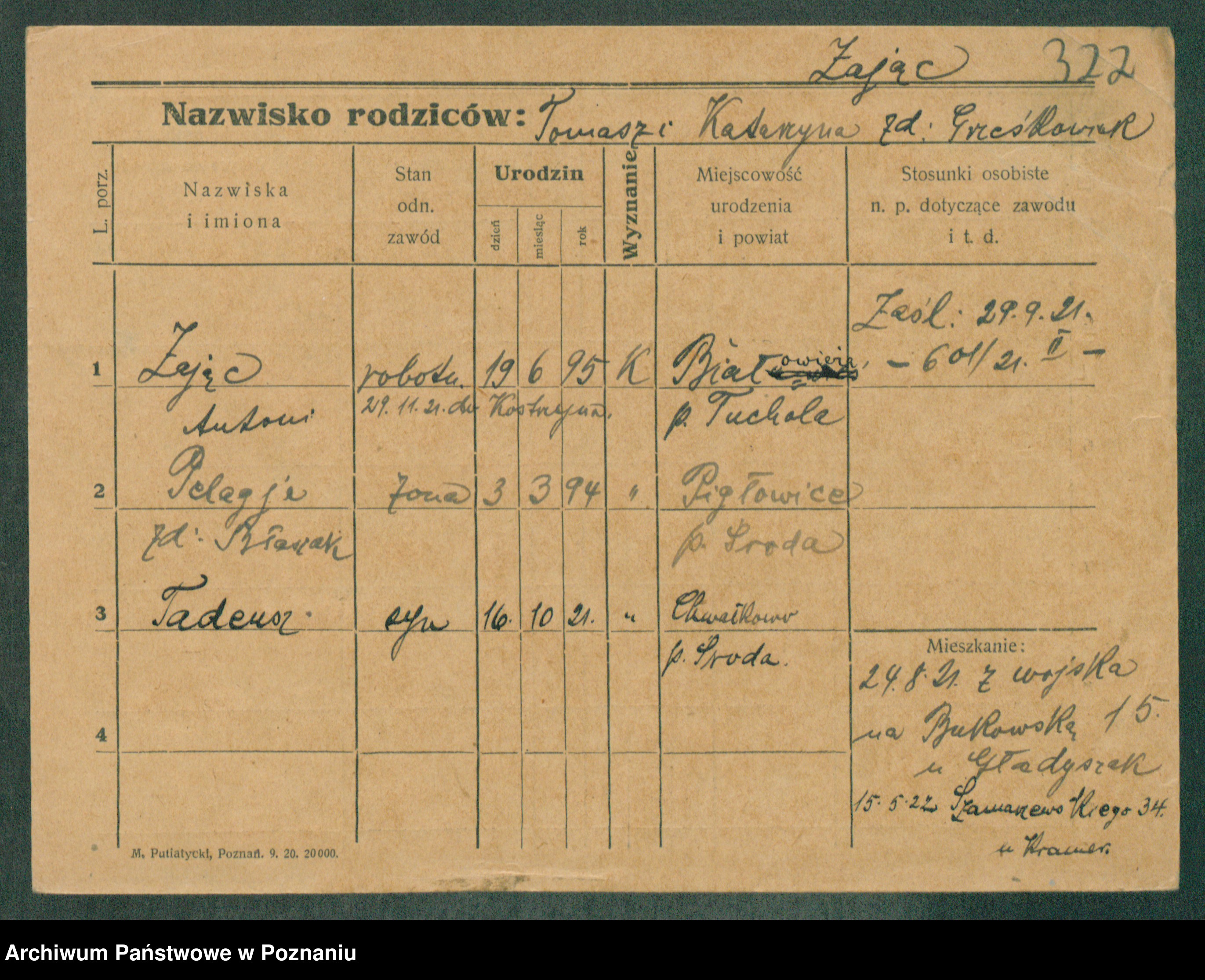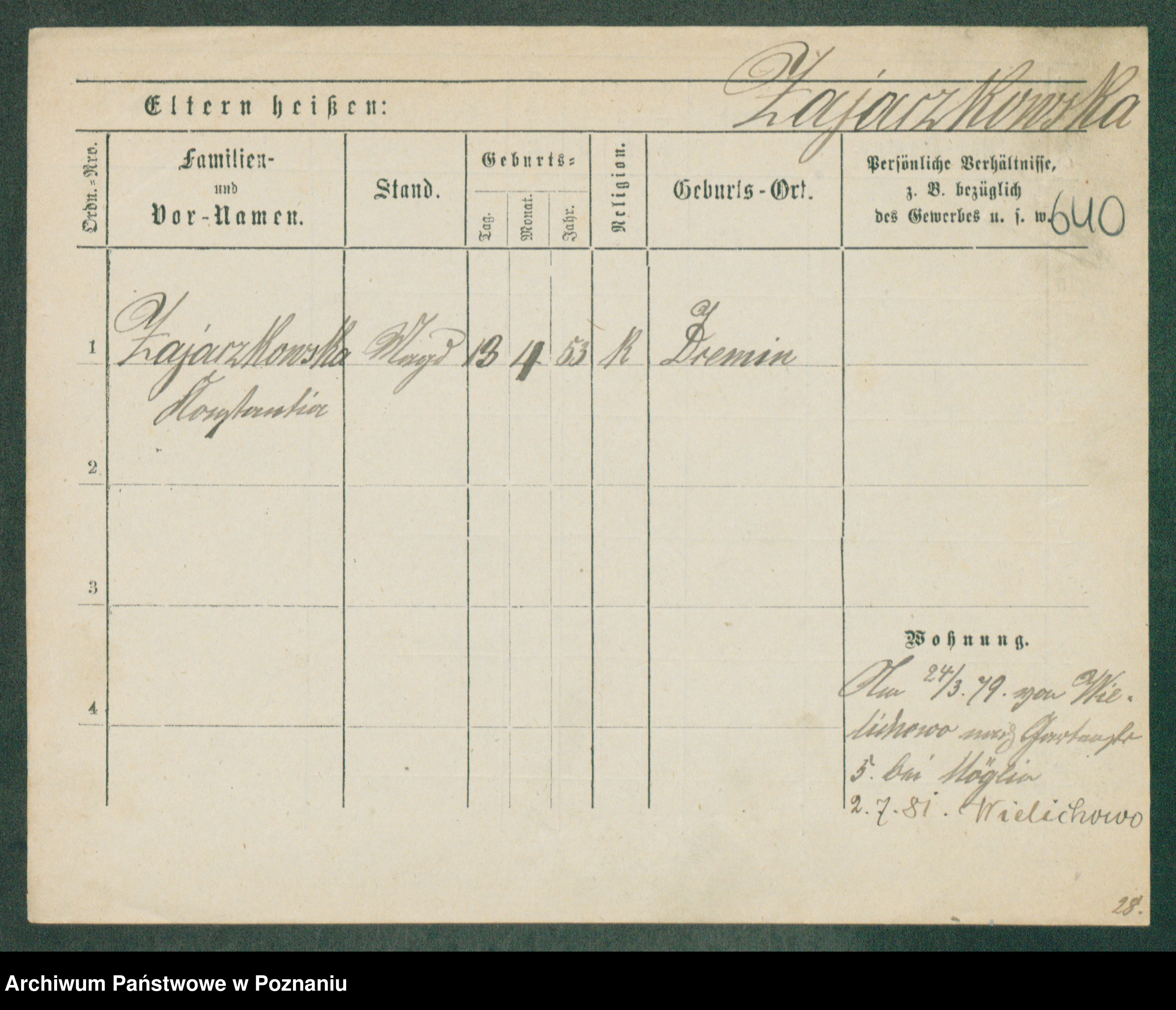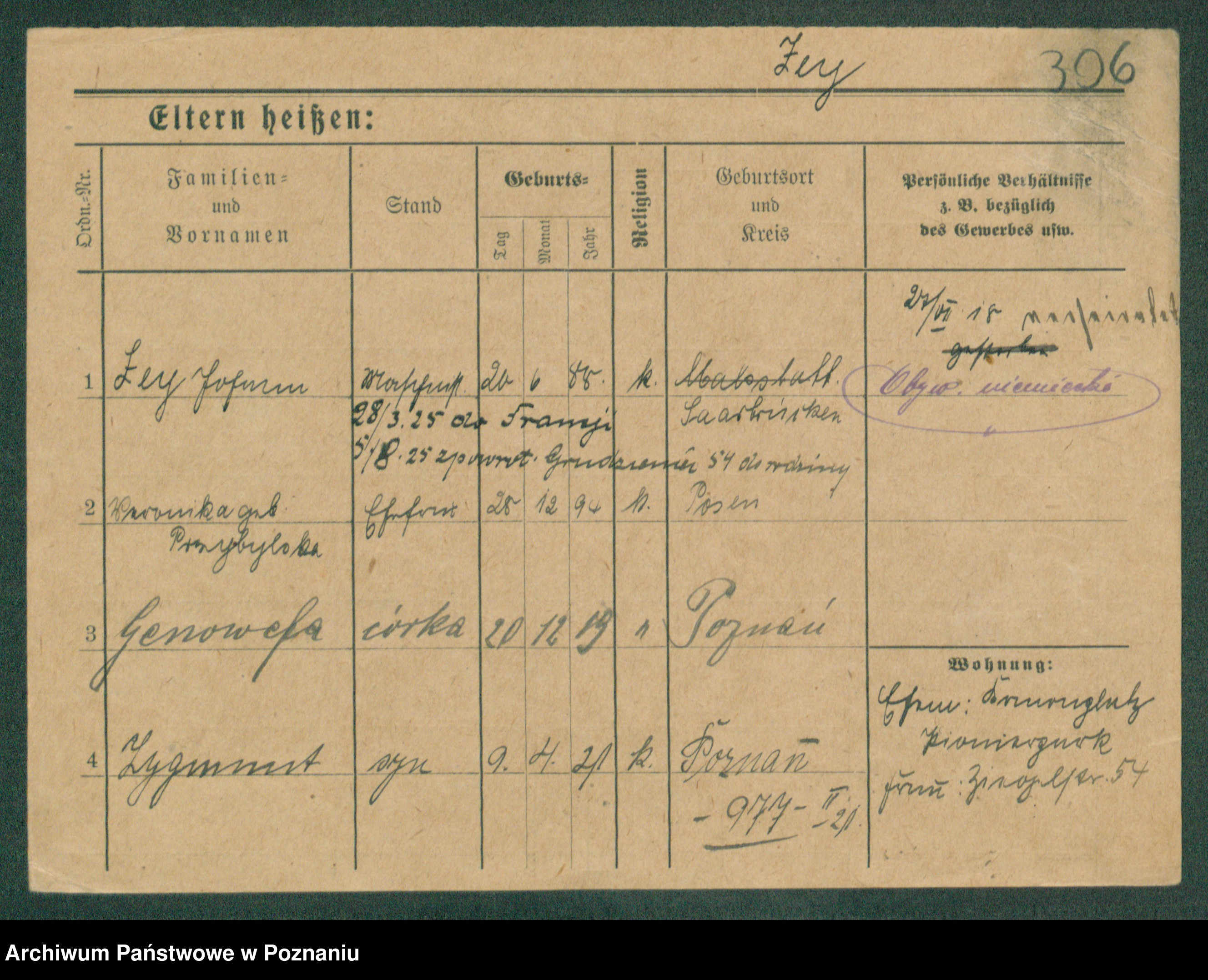 Podgląd karty osobowej dostępny jest po kliknięciu na nazwisko lub ikonkę karty. Można dokonywać powiększenia (ikony na górze) lub przechodzić między kolejnymi skanami (strzałki po bokach).